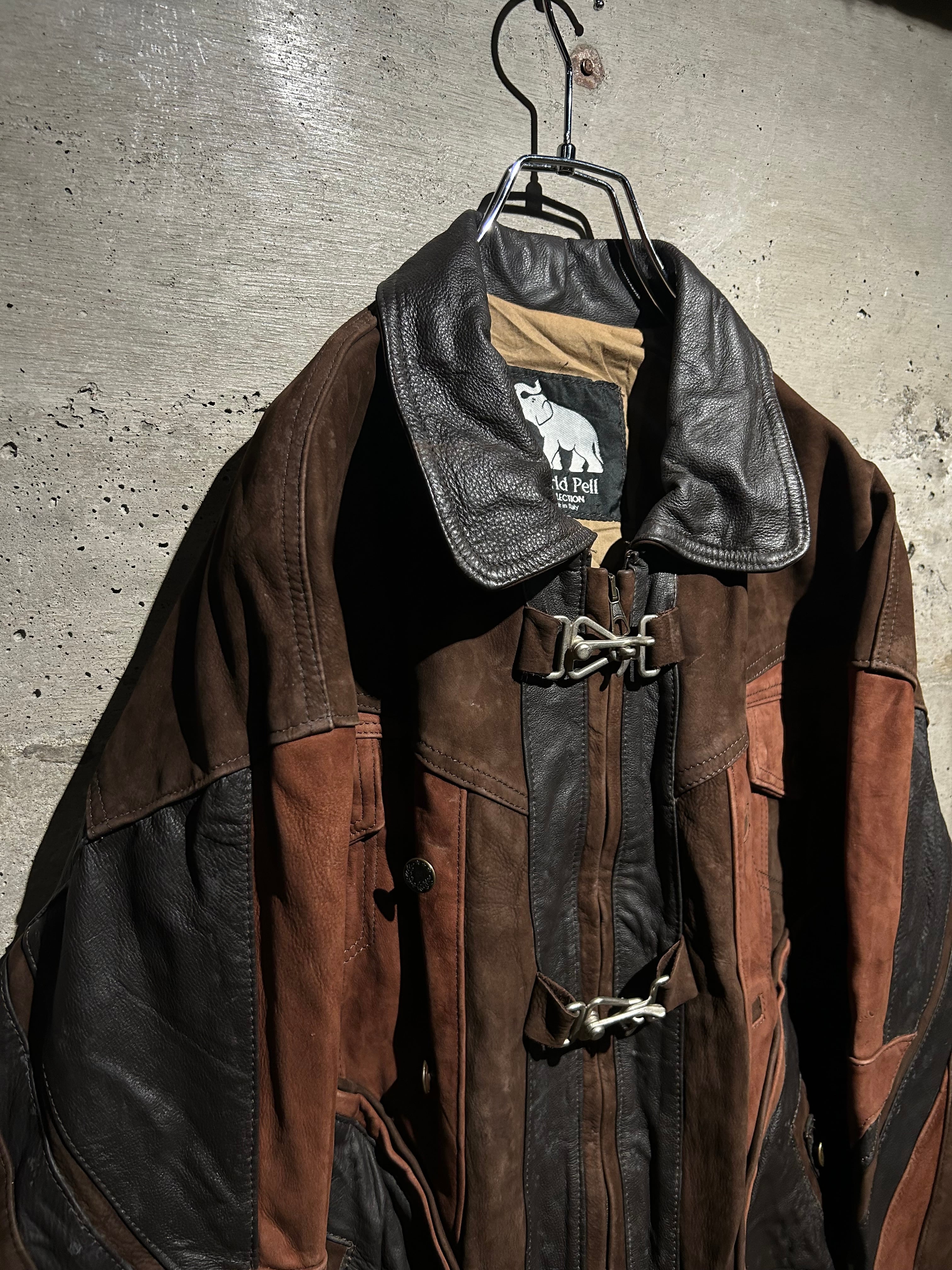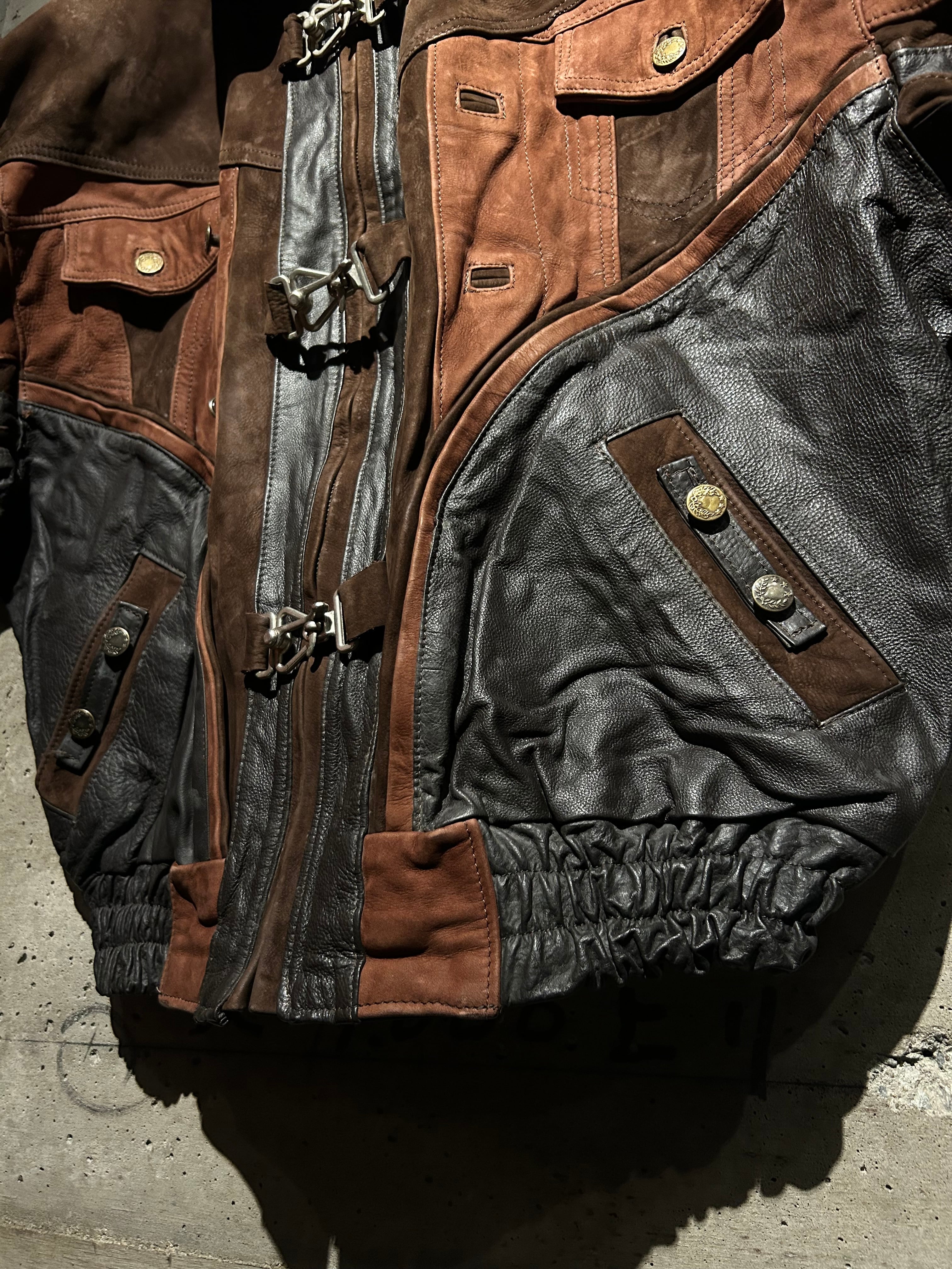80’s〜90’sユーロヴィンテージの、スムースレザー×スエードレザー切り替えのレザージャケット。