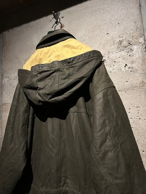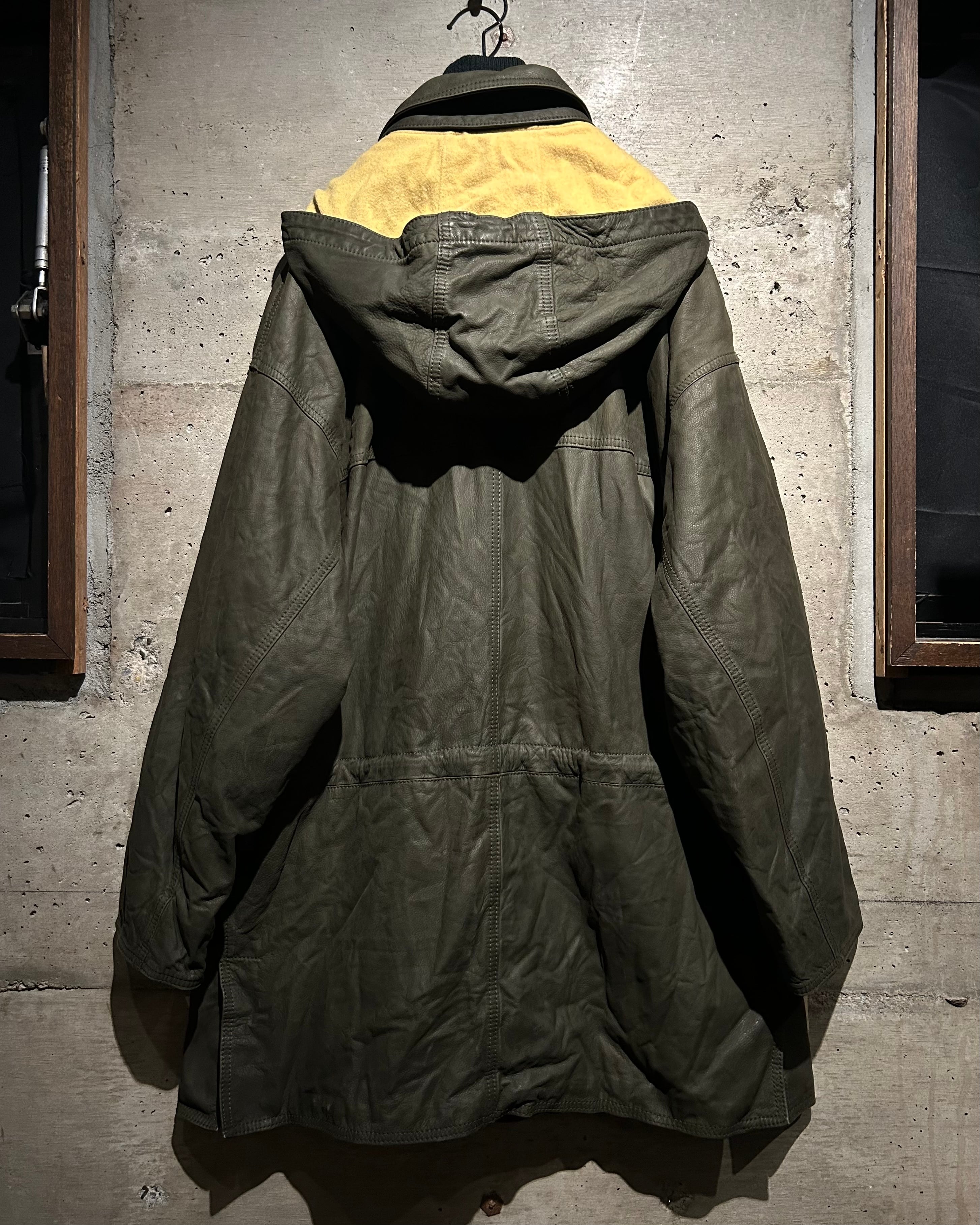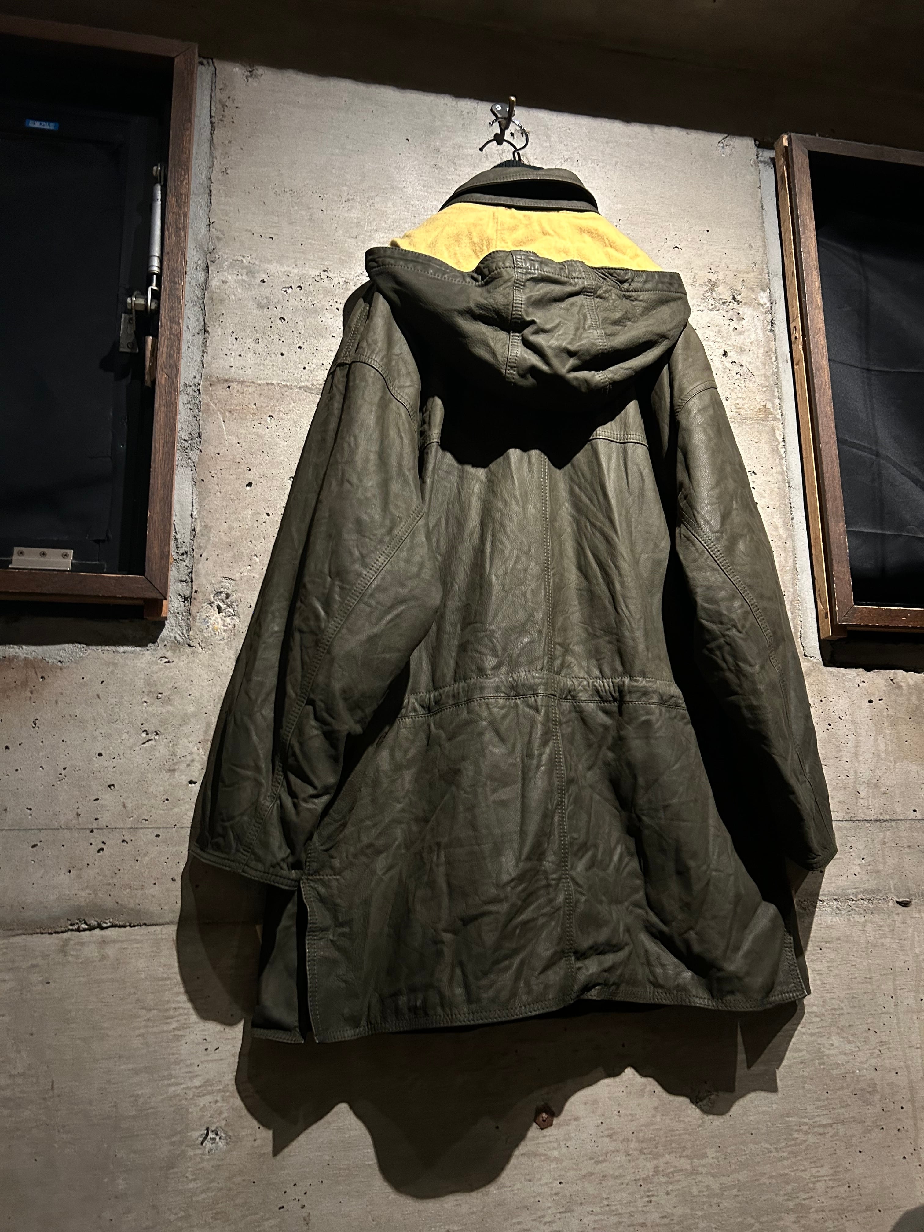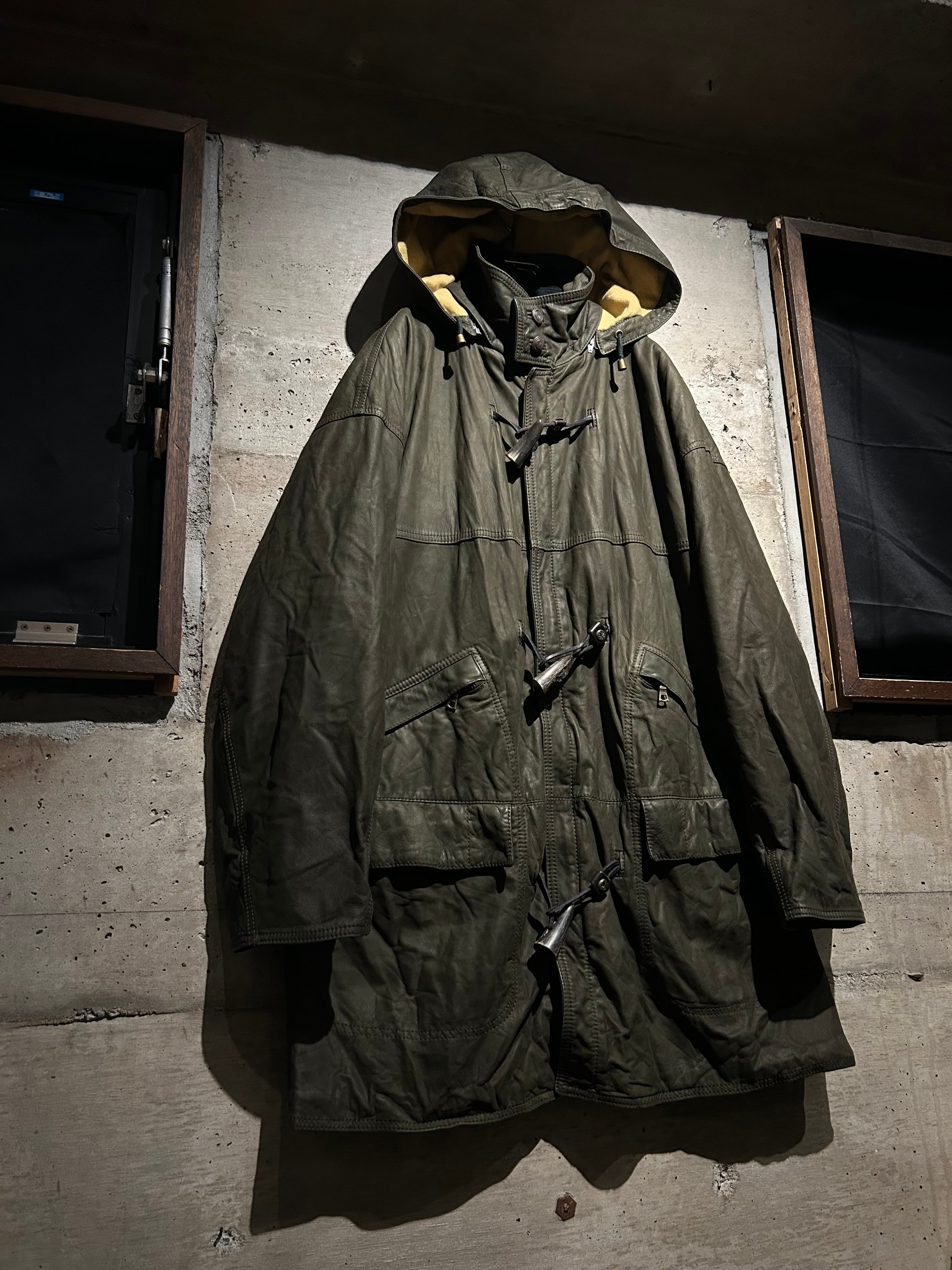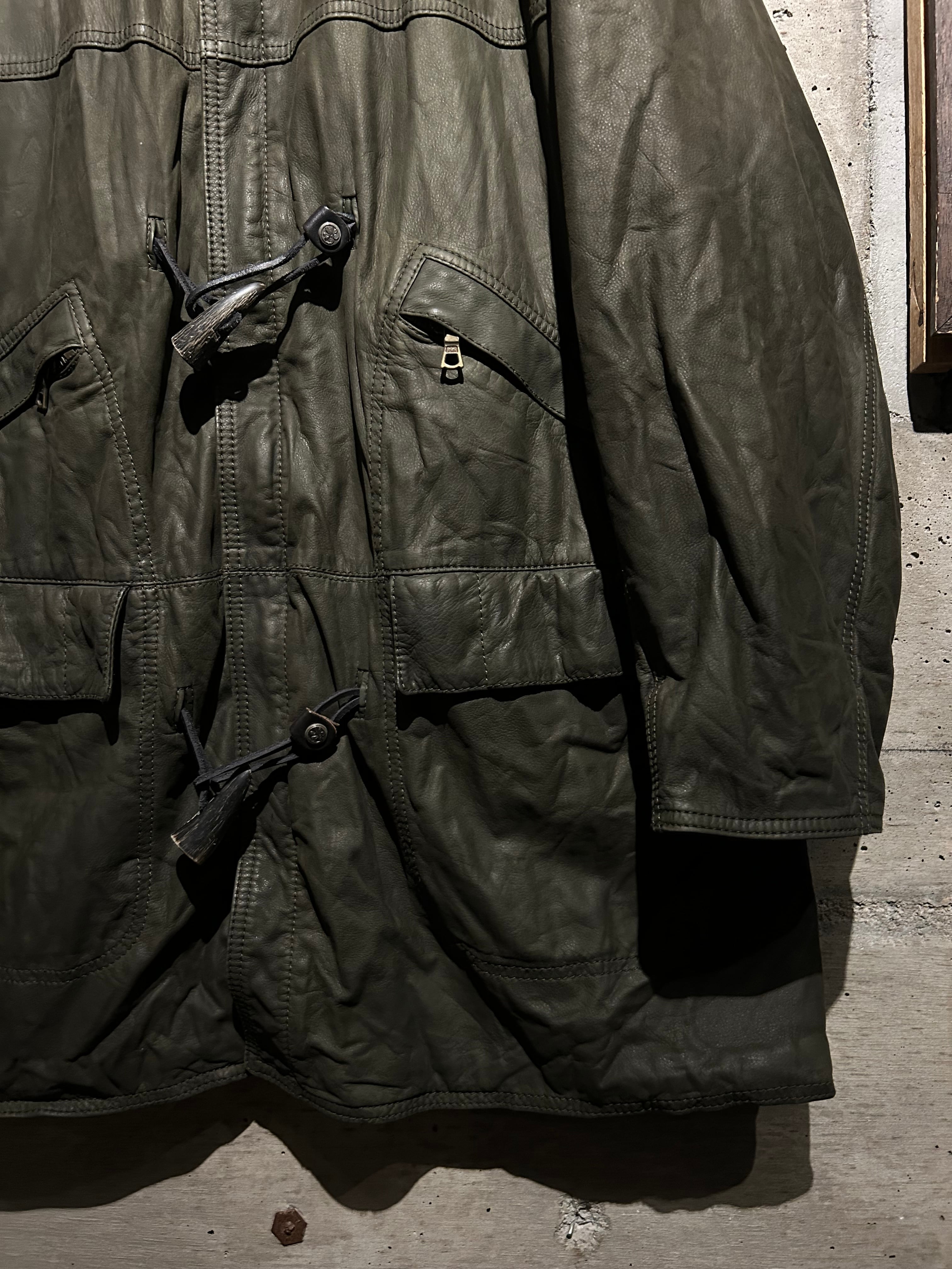 ヴァルサーチやジルボーとのコラボレーション、レザーのファブリックを提供していた80's〜90'sの“Ruffo” より、重厚感のあるレザーを贅沢に用い、ダッフルコートの意匠へと落とし込んだスペシャルな1着。