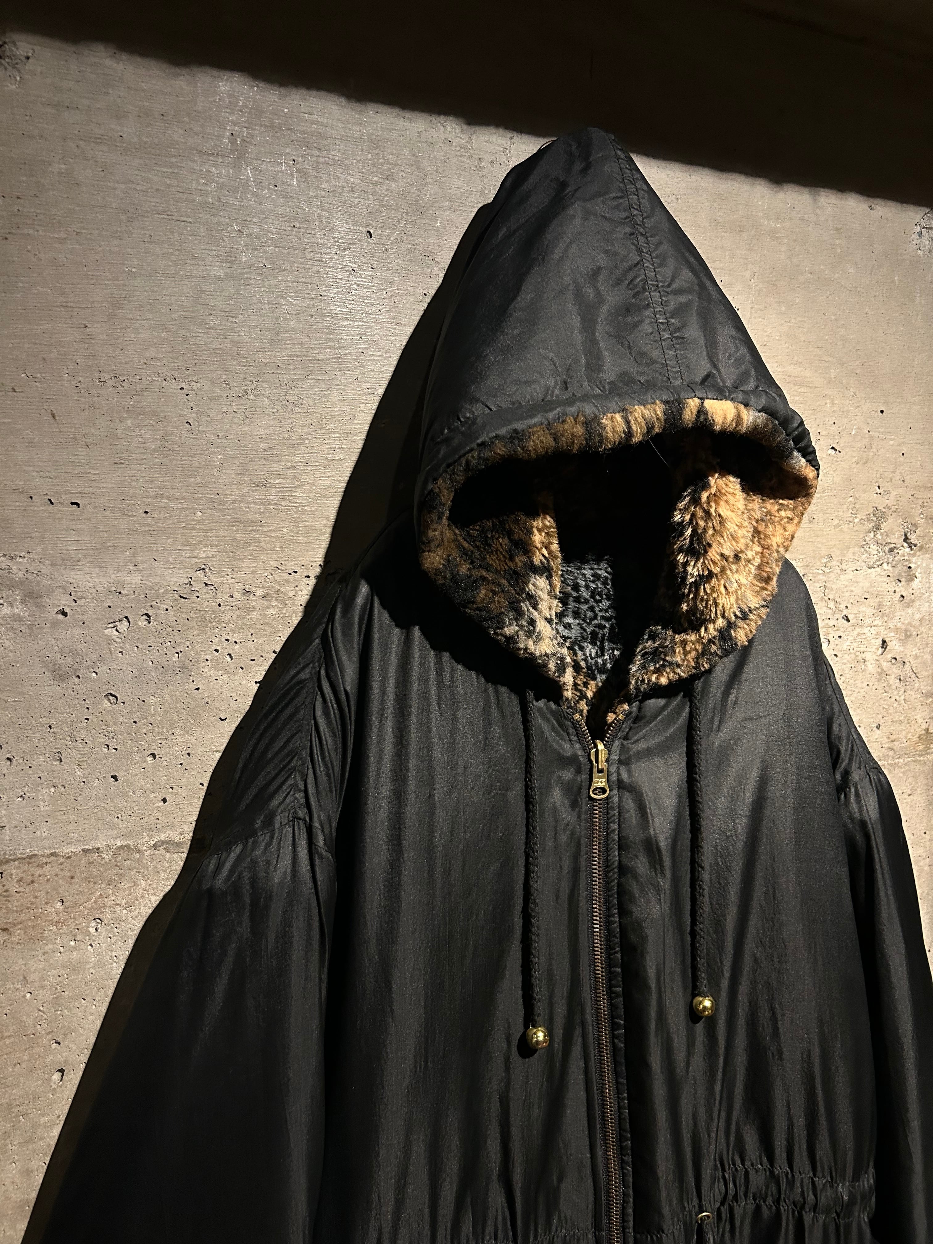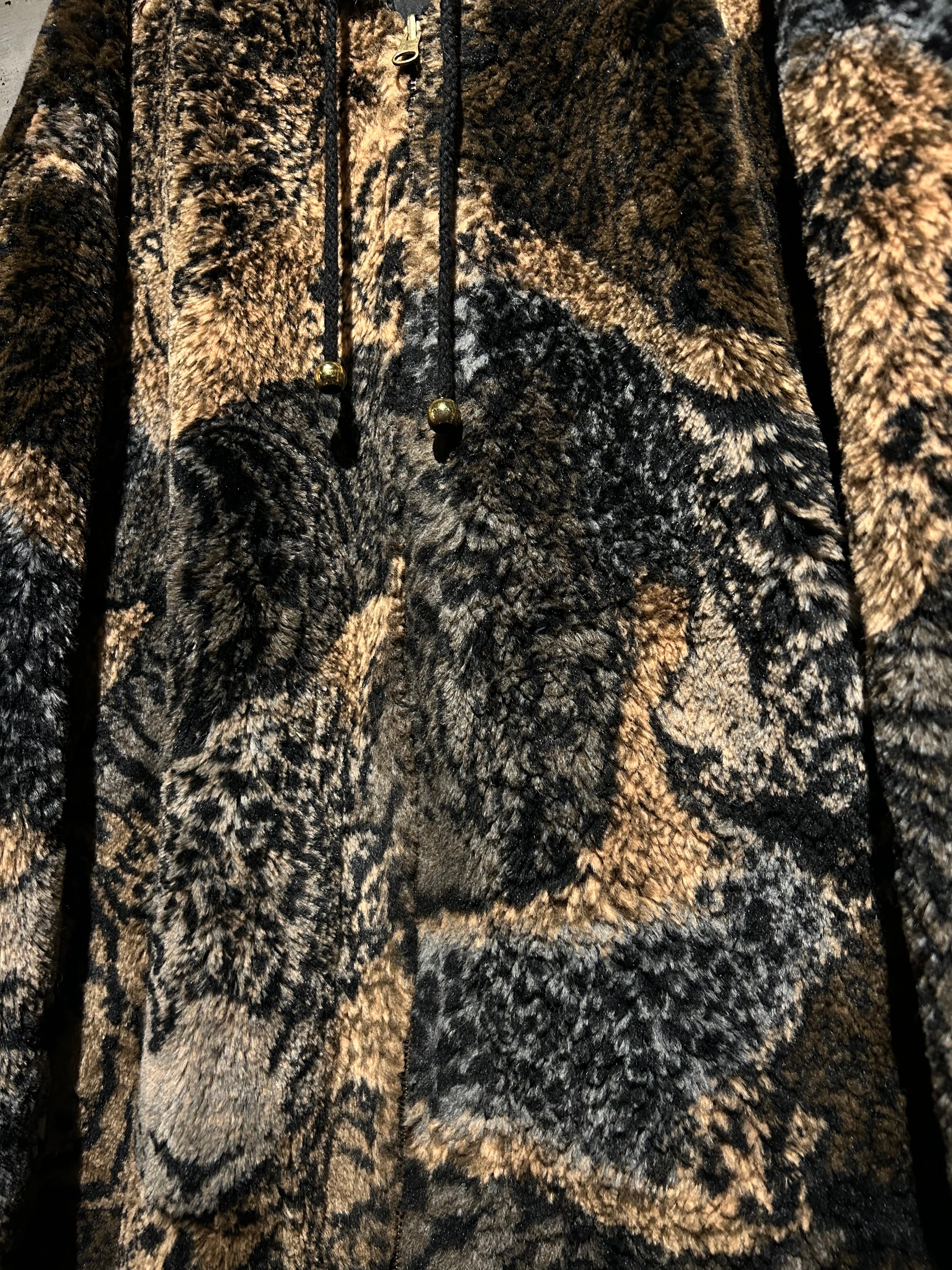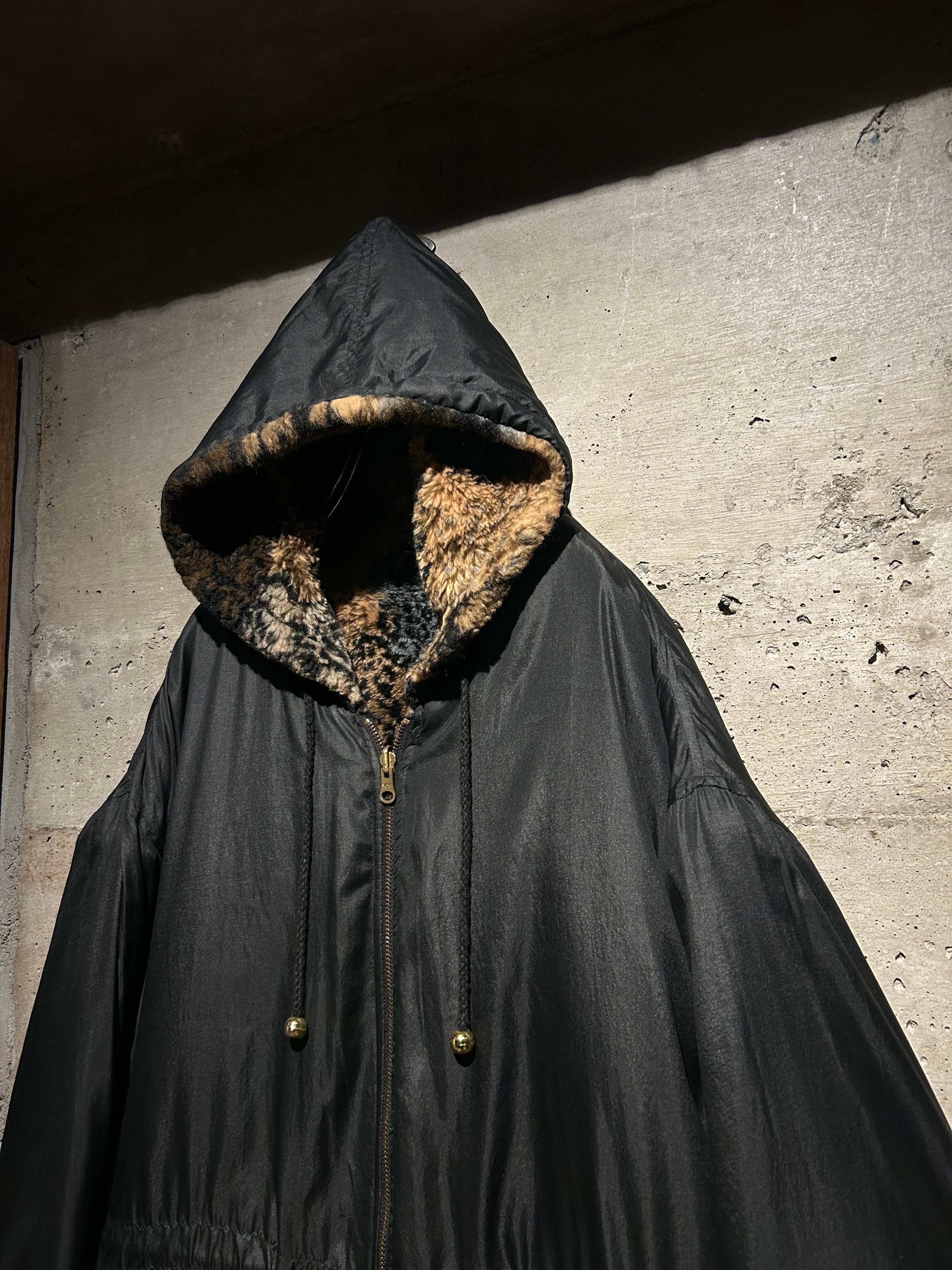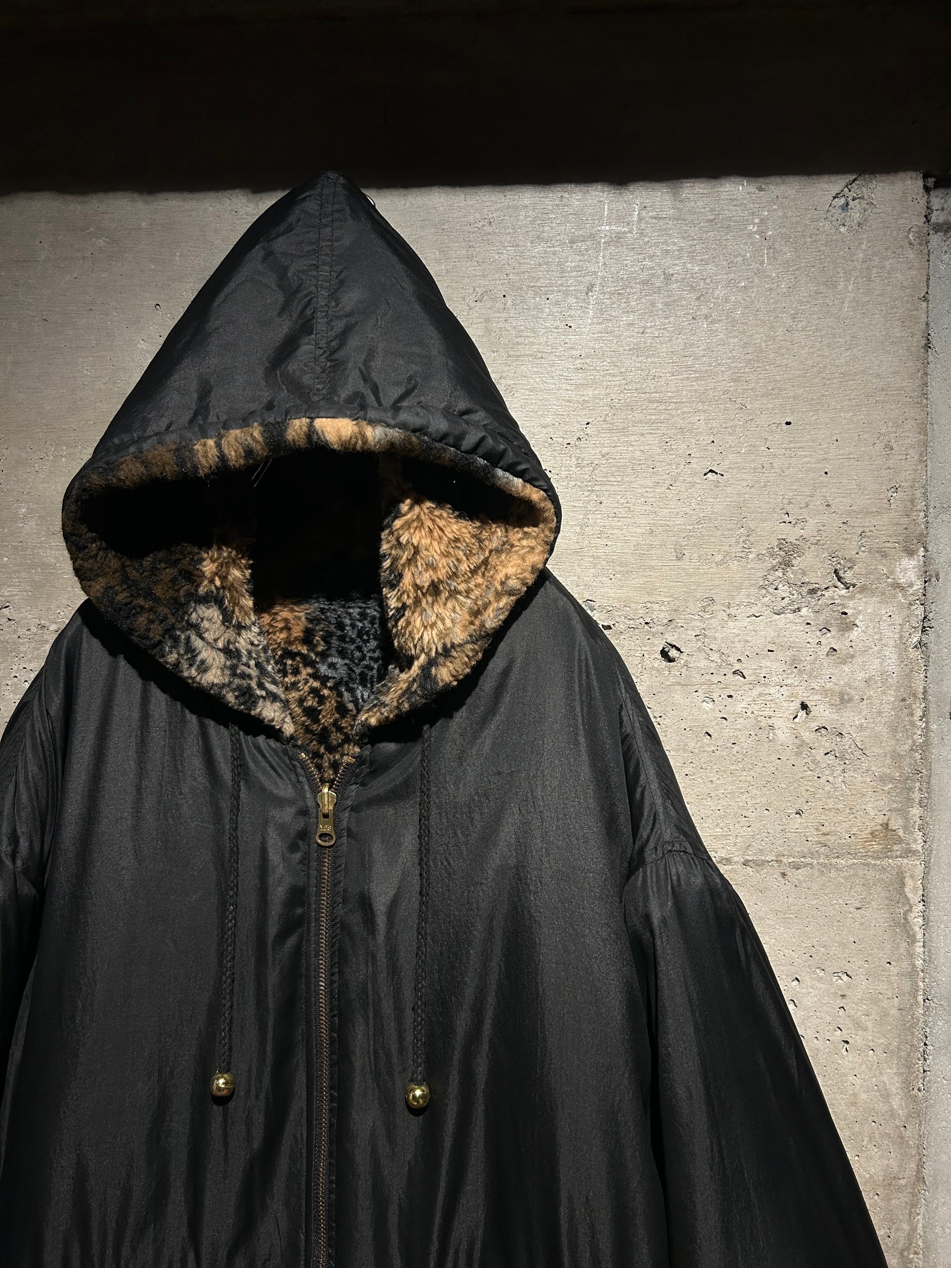 モフッと柔らかなファーをボディに用い、虎や豹などを全体に散りばめた、抜群の存在感を見せるリバーシブル仕様のフェイクファージャケット。