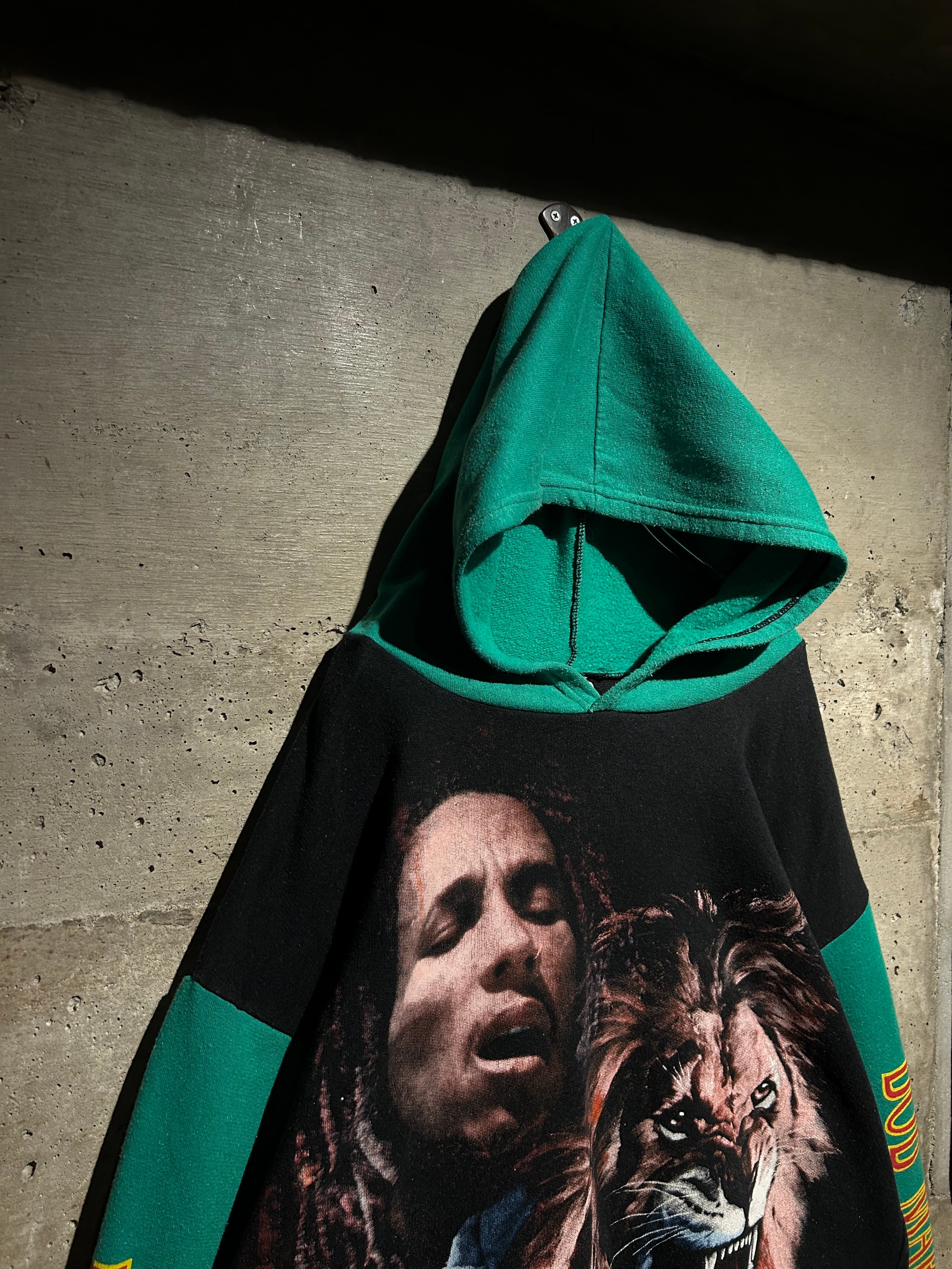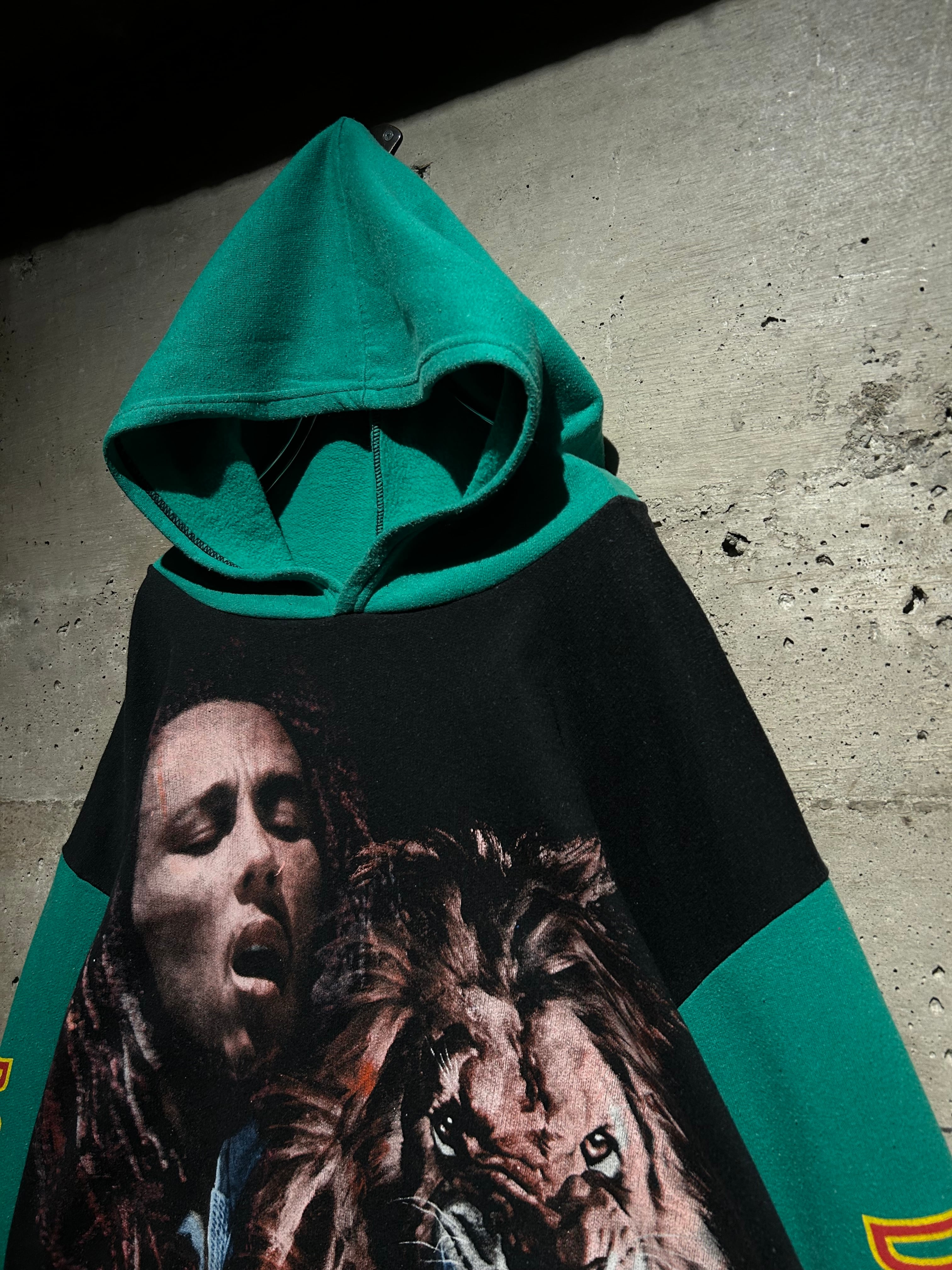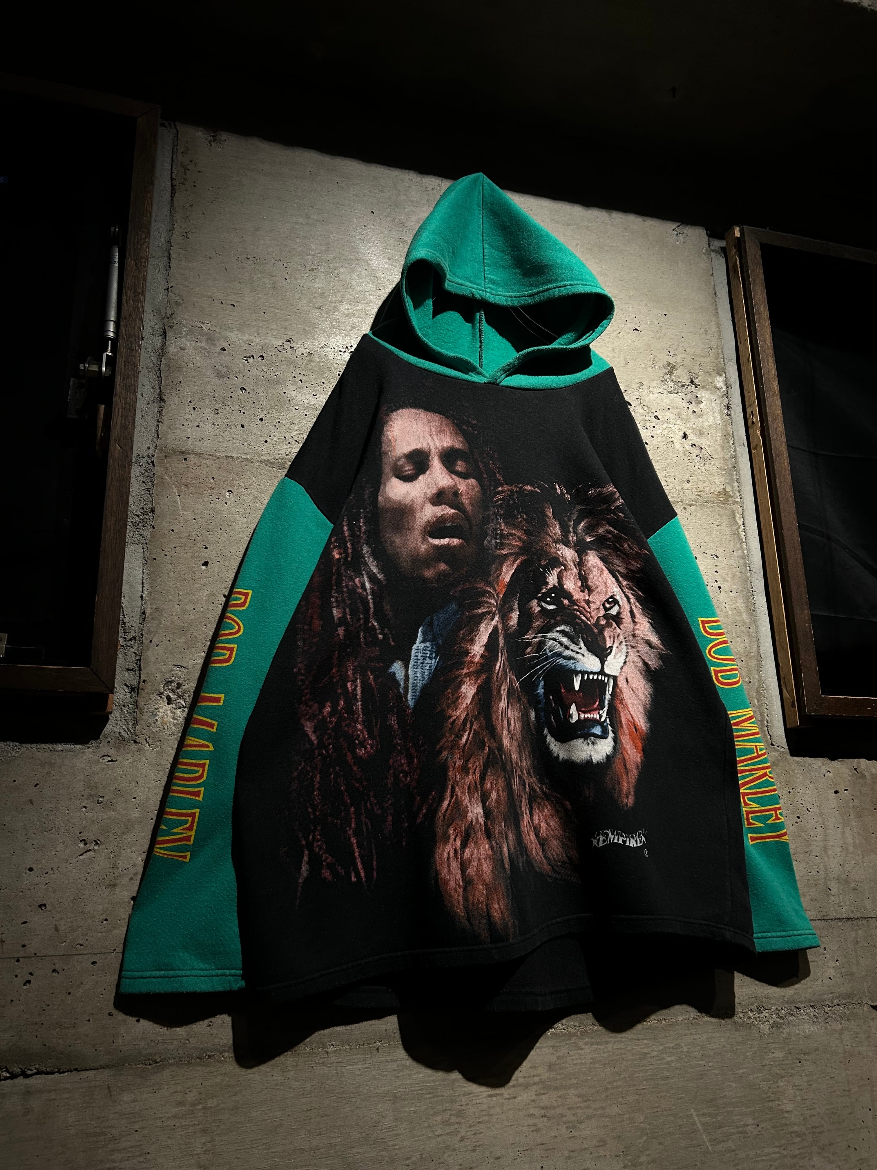 レゲエミュージックの象徴的存在として、今なお世界中に影響を与え続ける“Bob Marley”。その存在感をダイレクトに落とし込んだ、90'sのユーロブートのフーディ。