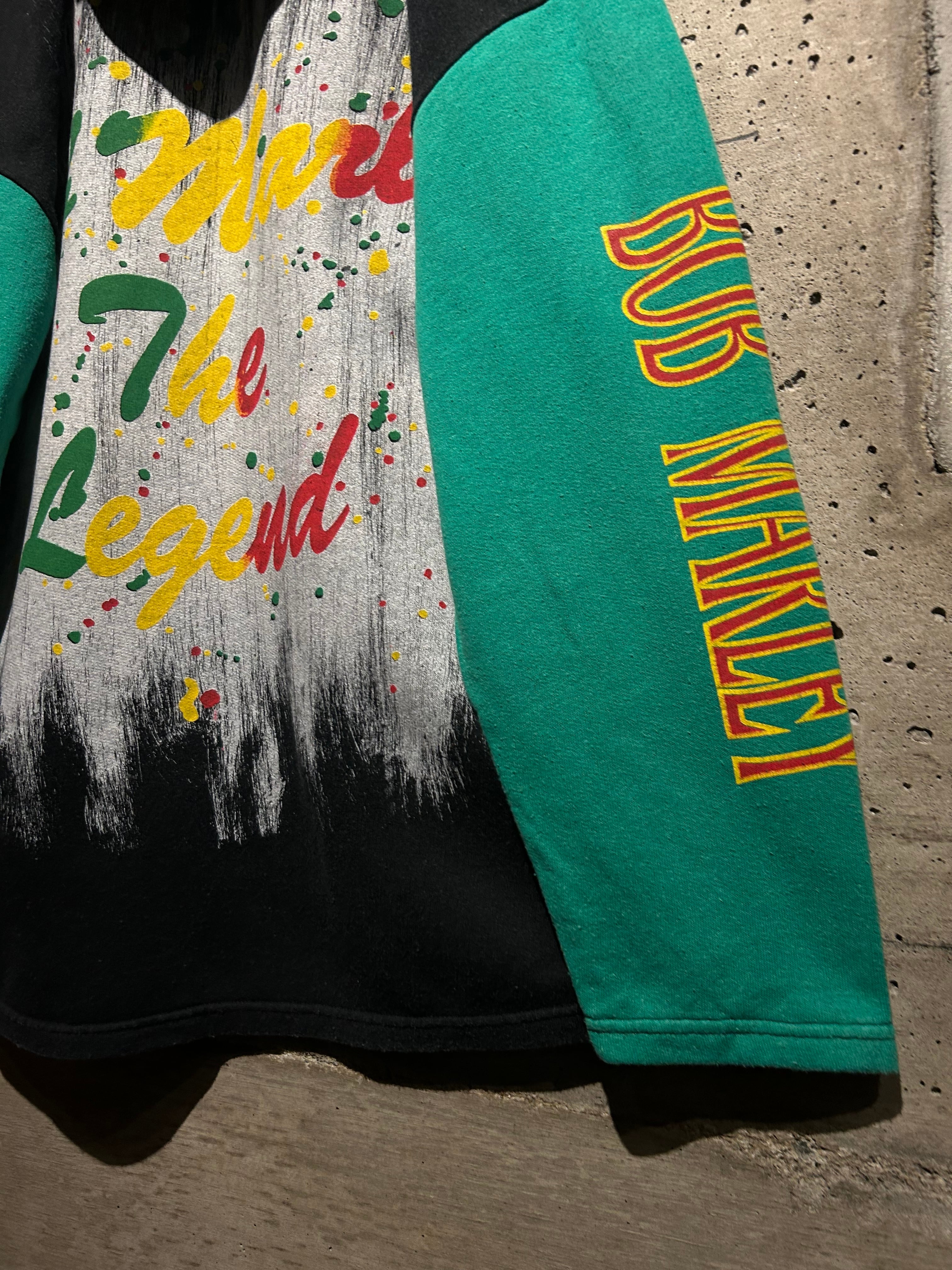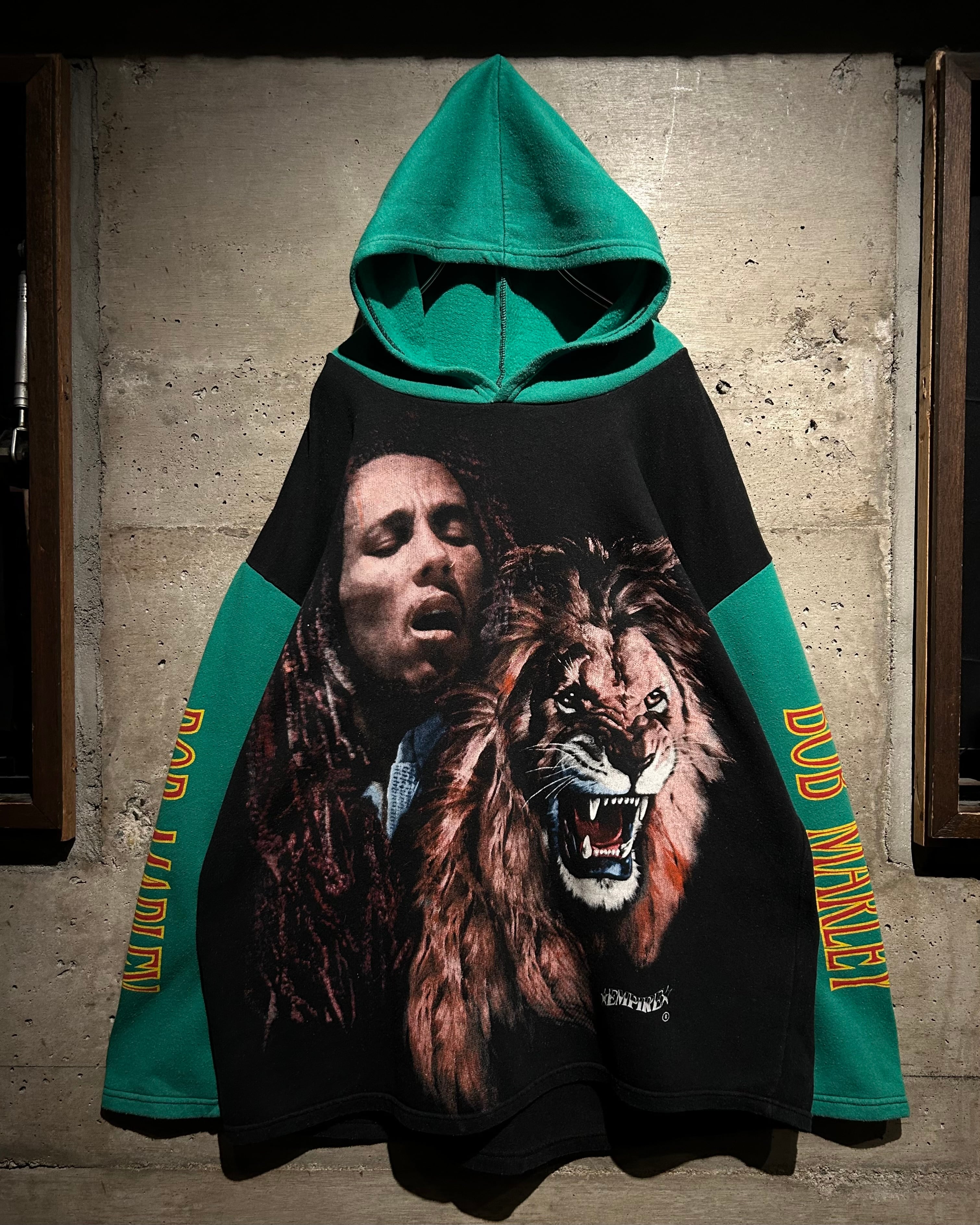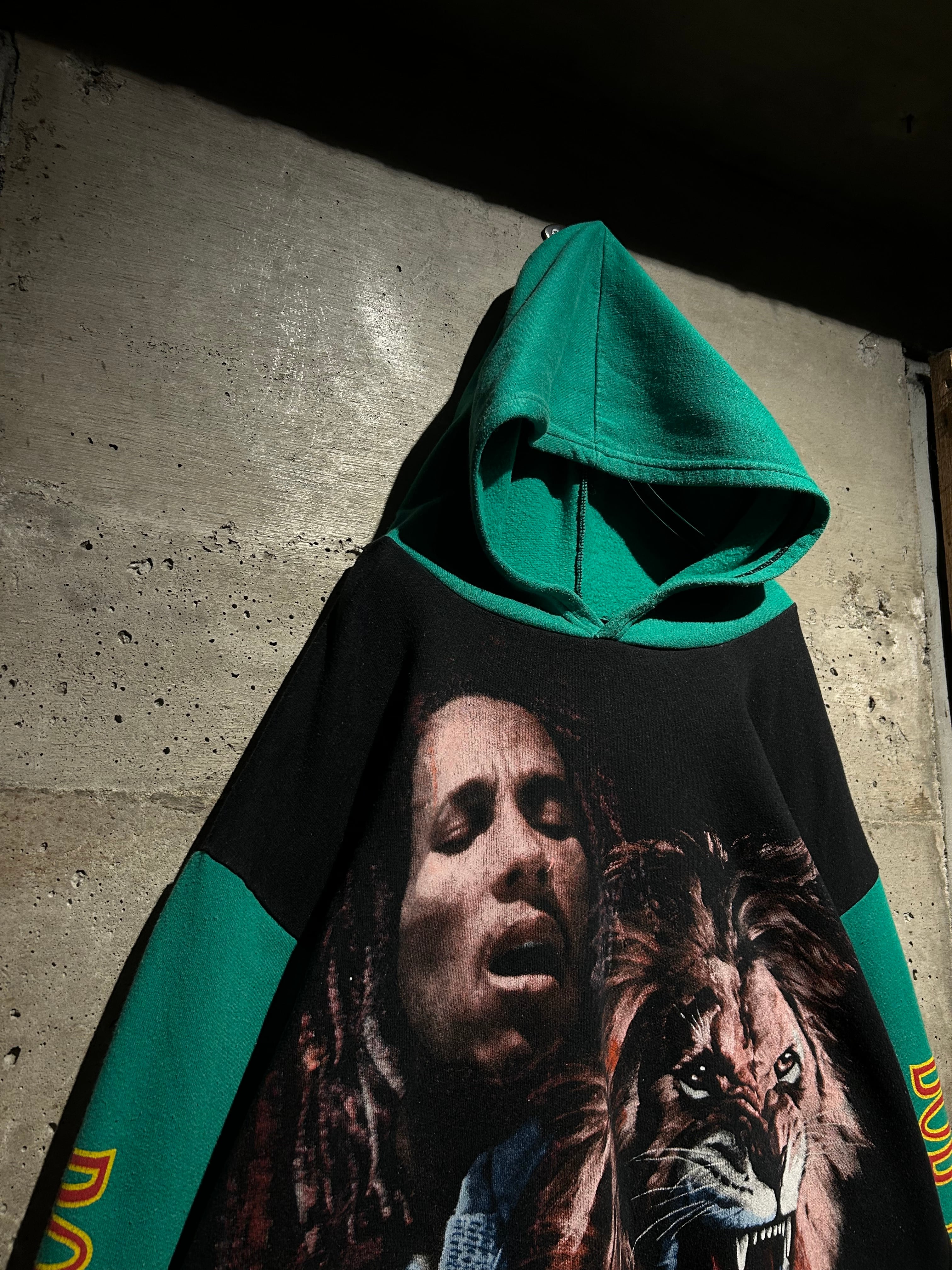 レゲエミュージックの象徴的存在として、今なお世界中に影響を与え続ける“Bob Marley”。その存在感をダイレクトに落とし込んだ、90'sのユーロブートのフーディ。
