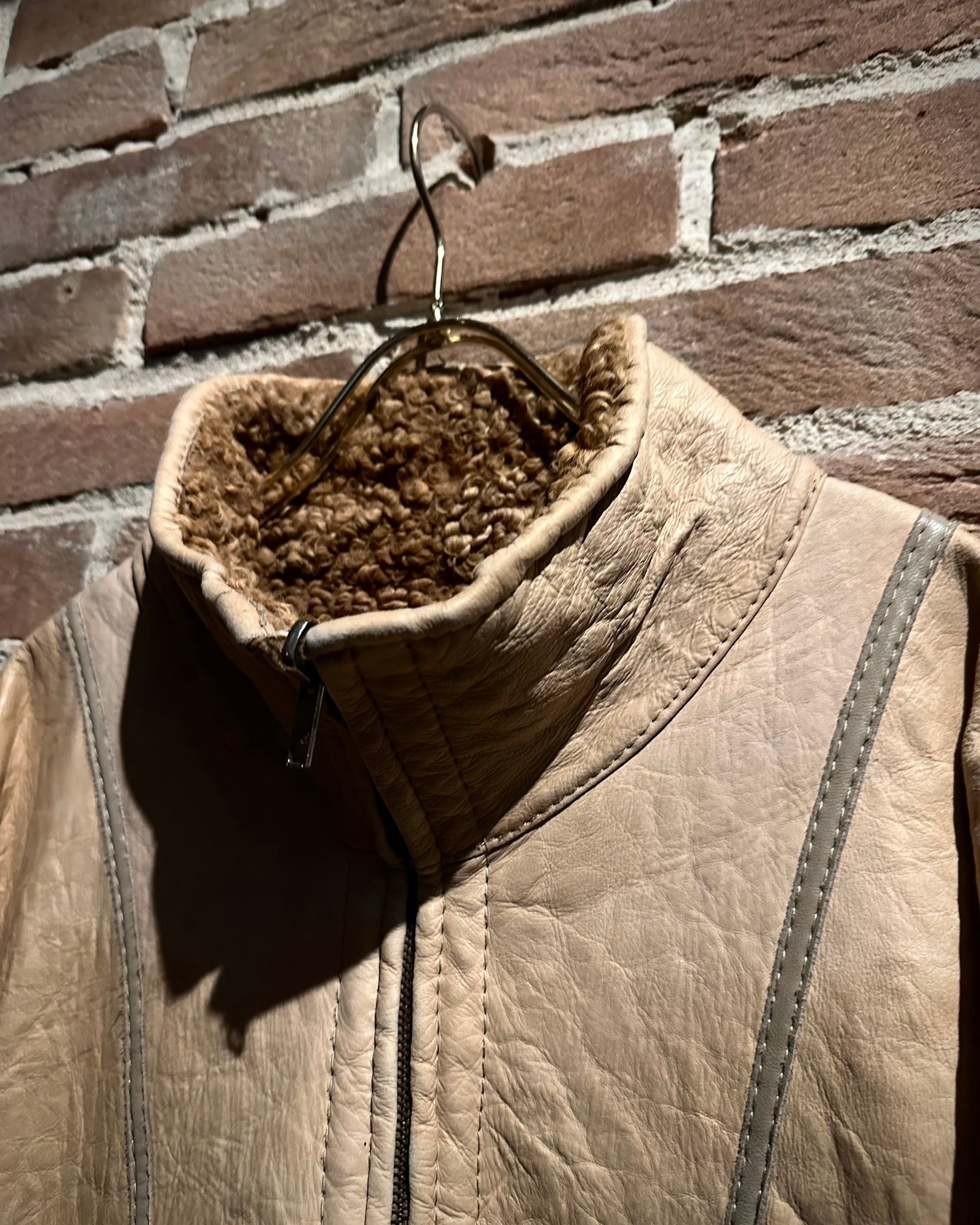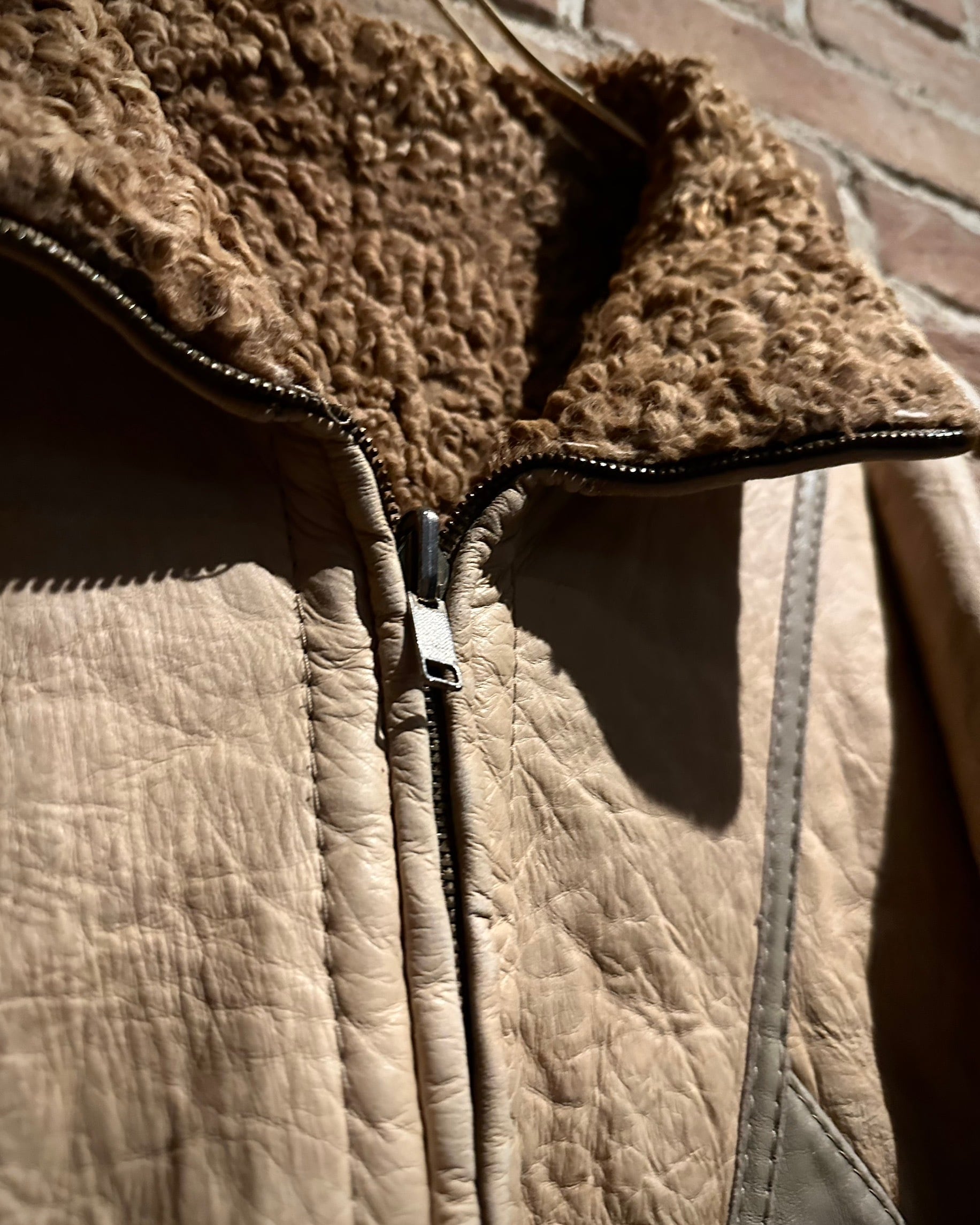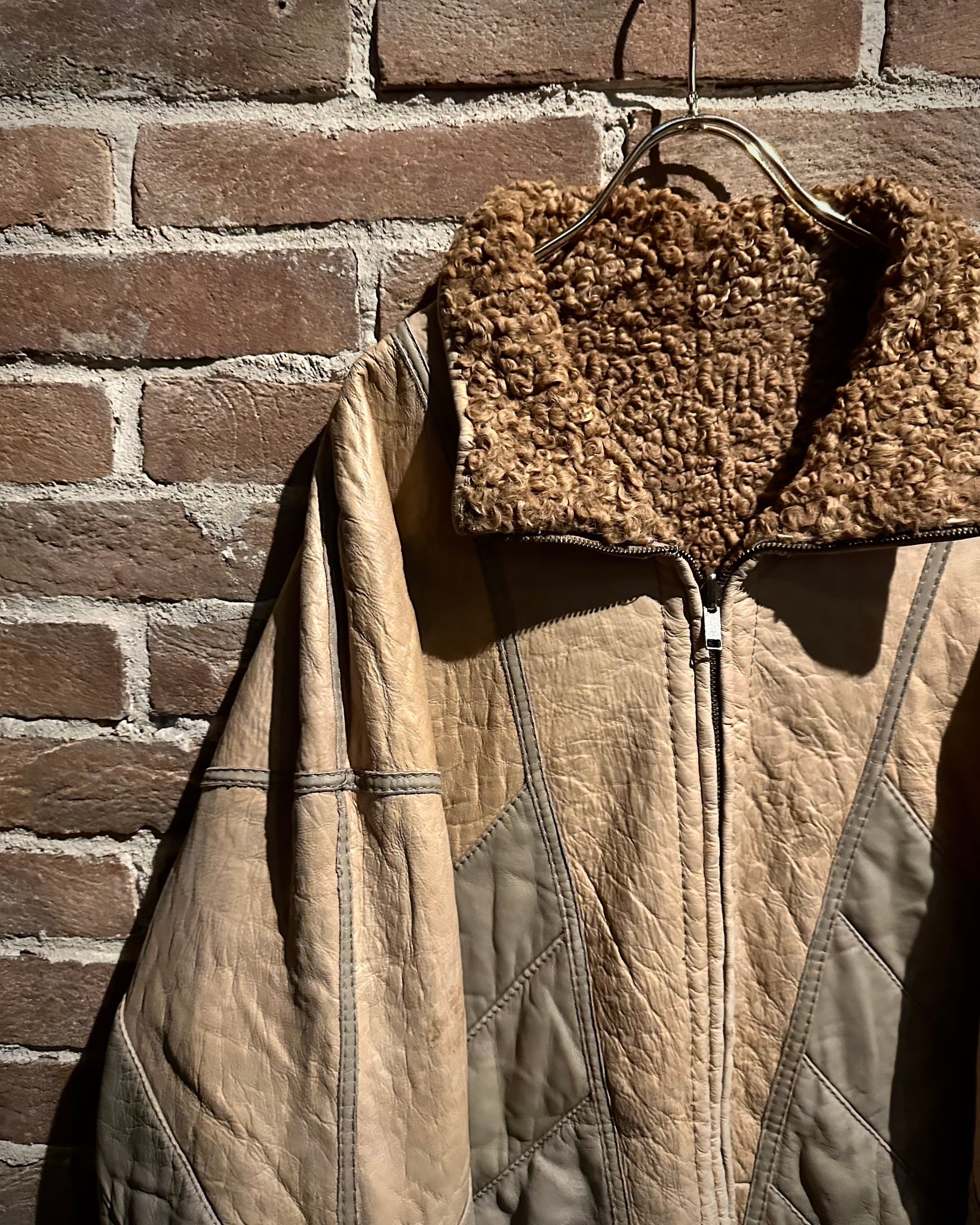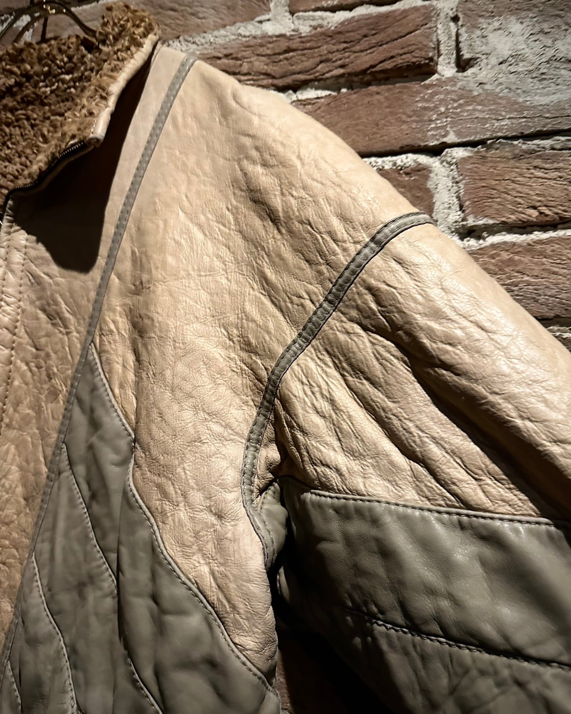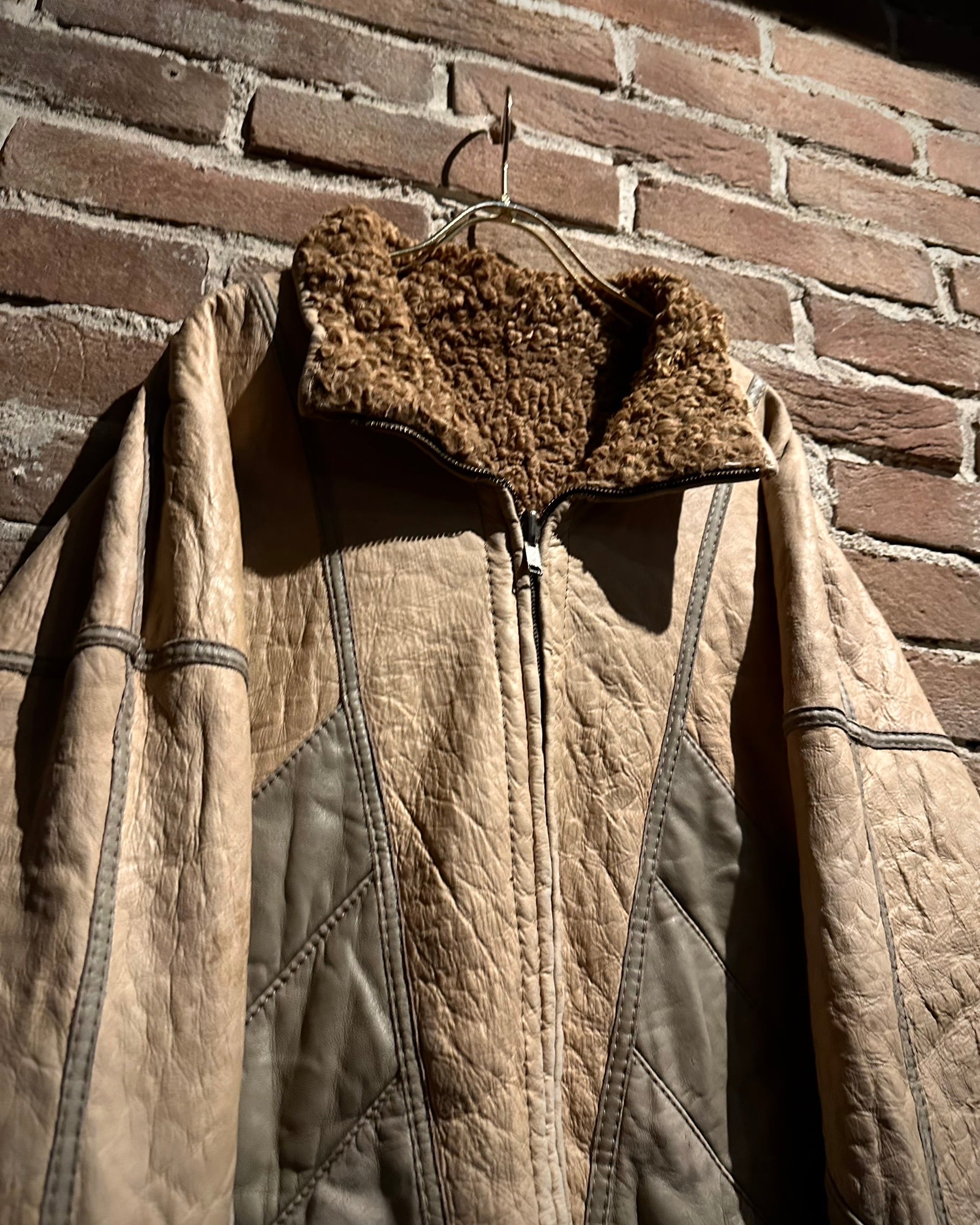 レザーとカーリーヘアファーを贅沢に用いた、ユーロヴィンテージらしいクラフト感が際立つリバーシブルジャケット。