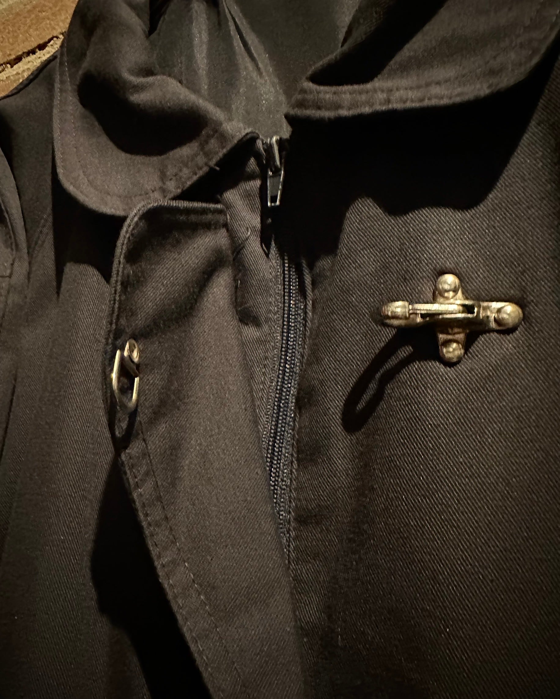最大の特徴は、フロントに配されたファイアーマンバックルのギミック。元来は消防士の防護服などに用いられてきた実用性の高いディテールで、着脱のしやすさと視覚的インパクトを兼ね備えています。名だたるブランドがデザインソースとしてサンプリングし続けているパーツでもありますね。