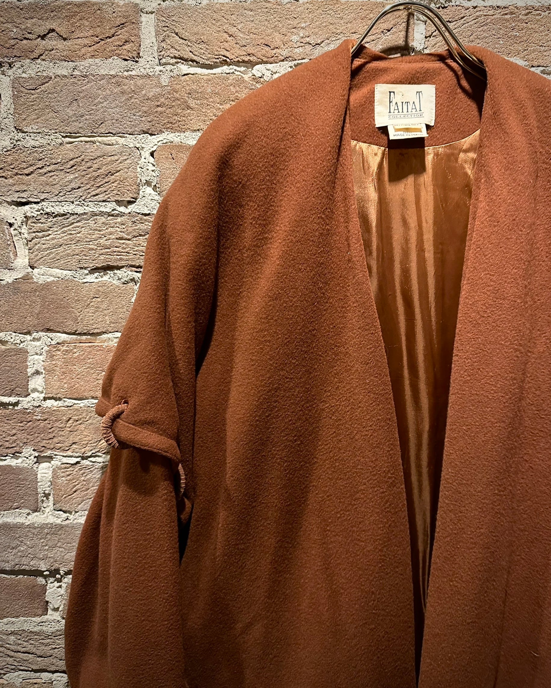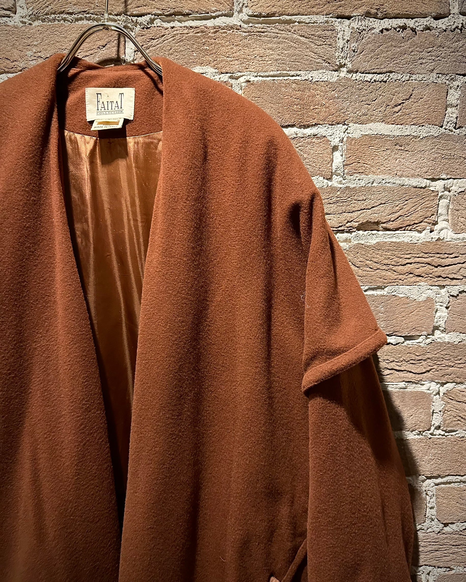 柔らかな表情と空気感を纏った、ユーロヴィンテージらしいドレープが際立つロングウールコート。