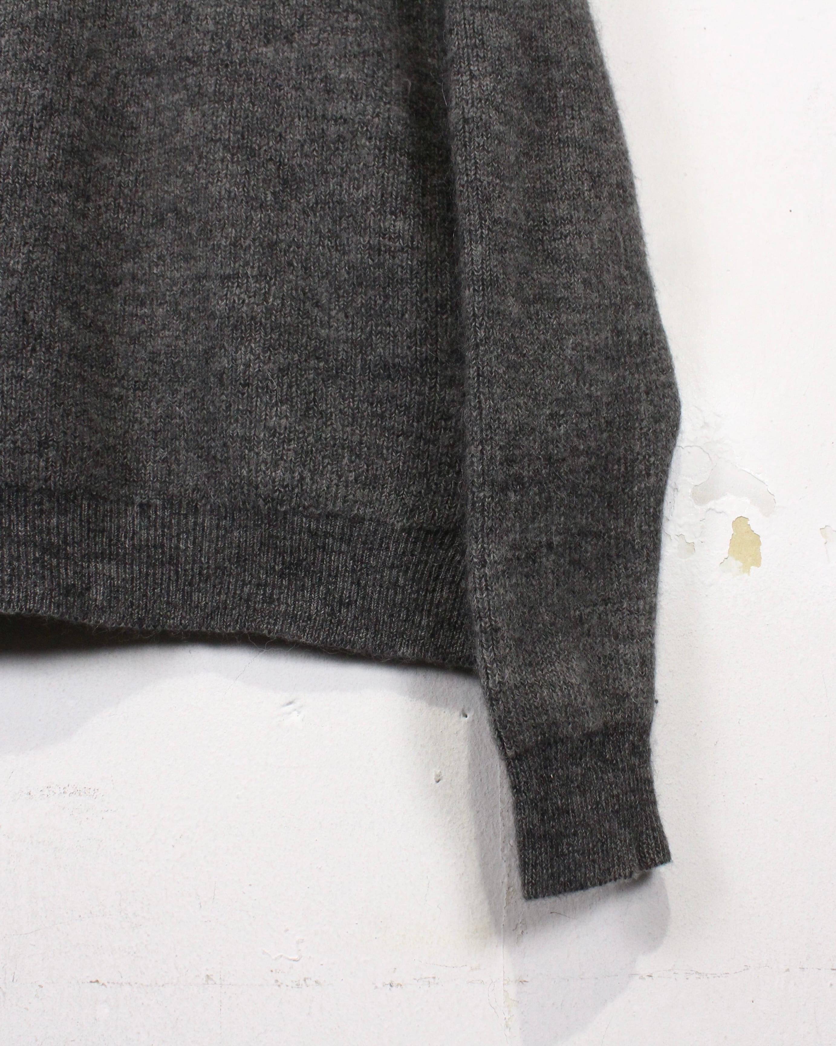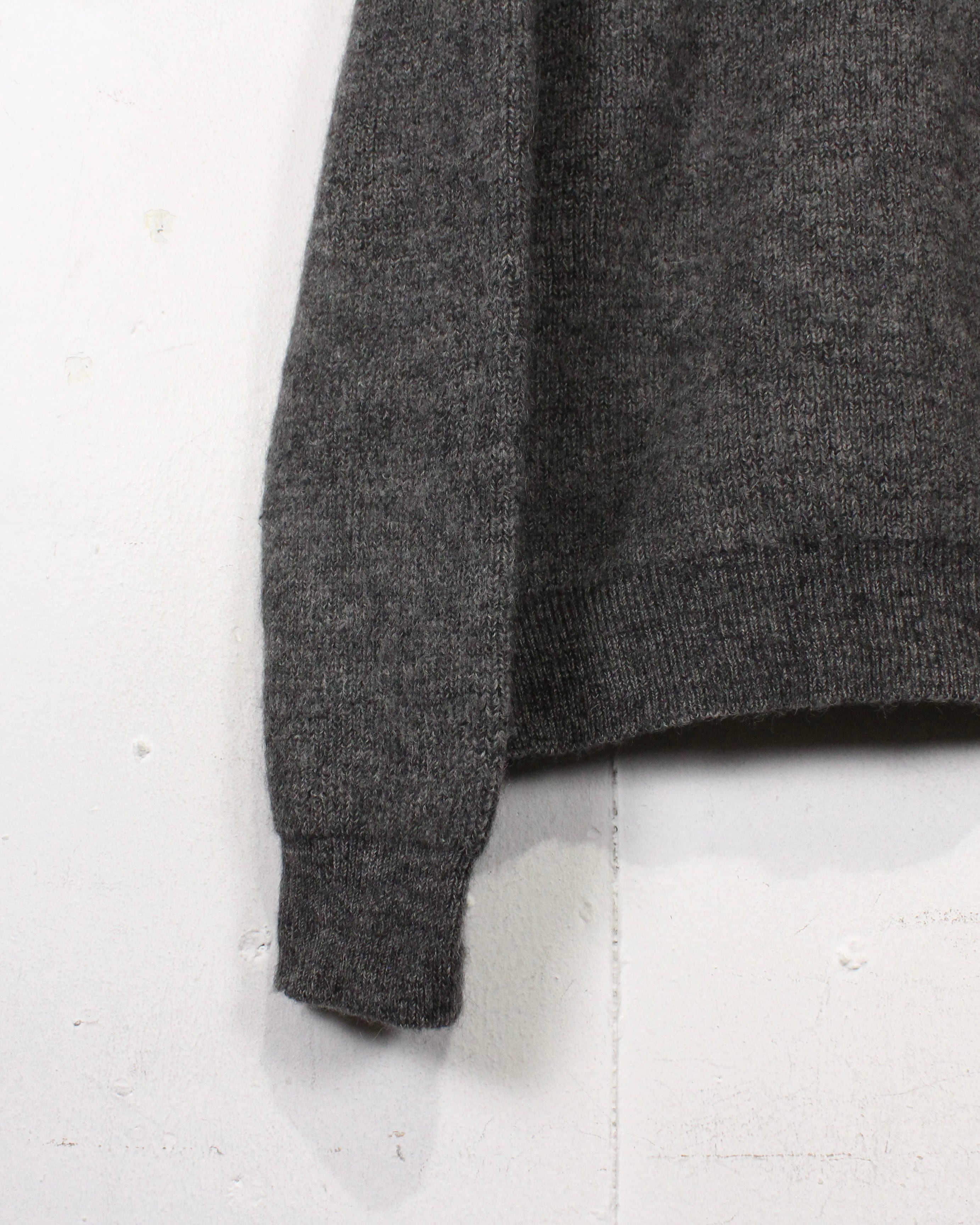 ネック、袖、裾はオーソドックスなリブ仕様で、程よい丸みのあるシルエットも良い。ウールならではの保温性と軽さを両立し、インナー使いはもちろん、1枚着としても成立する安心感のある着心地です。