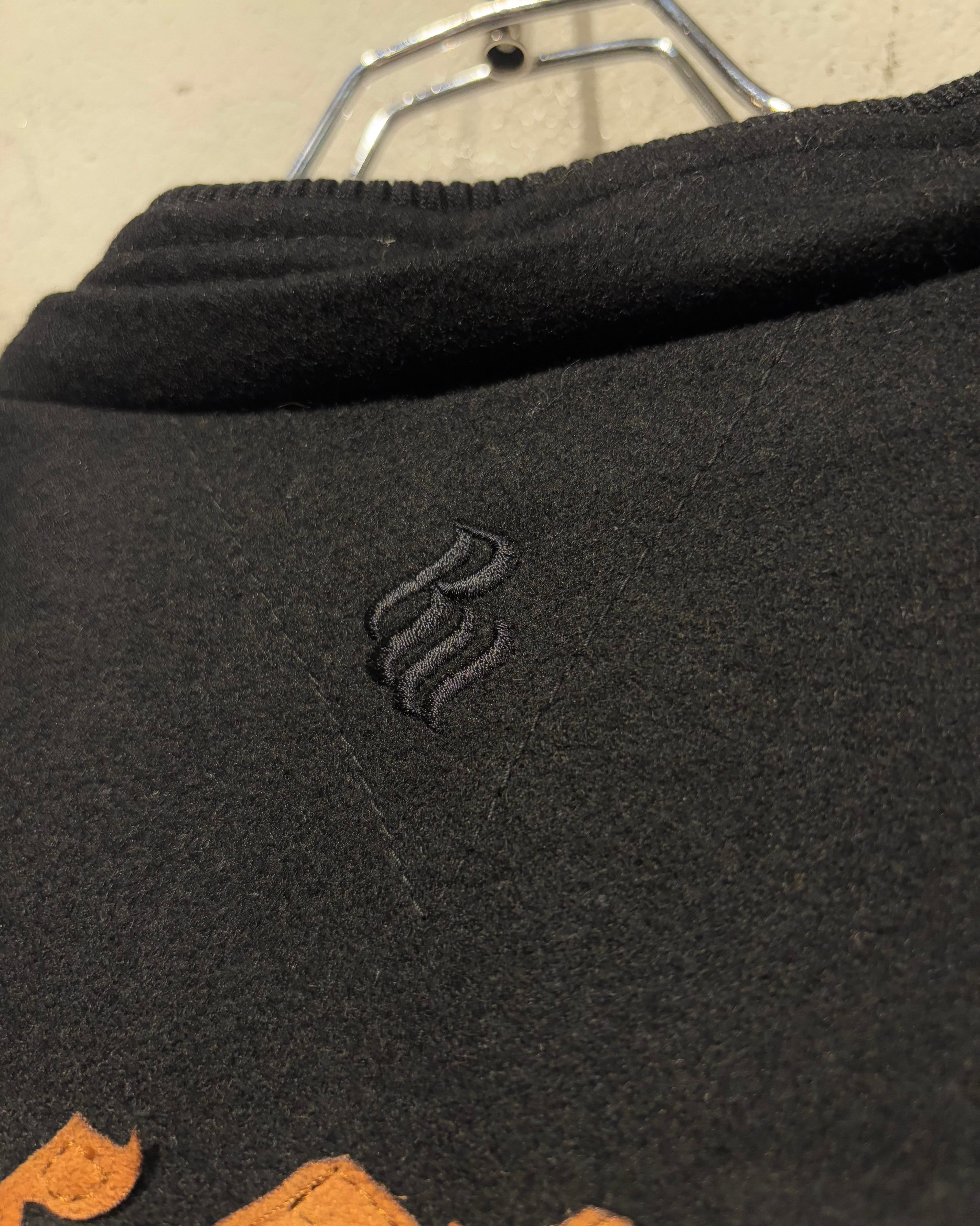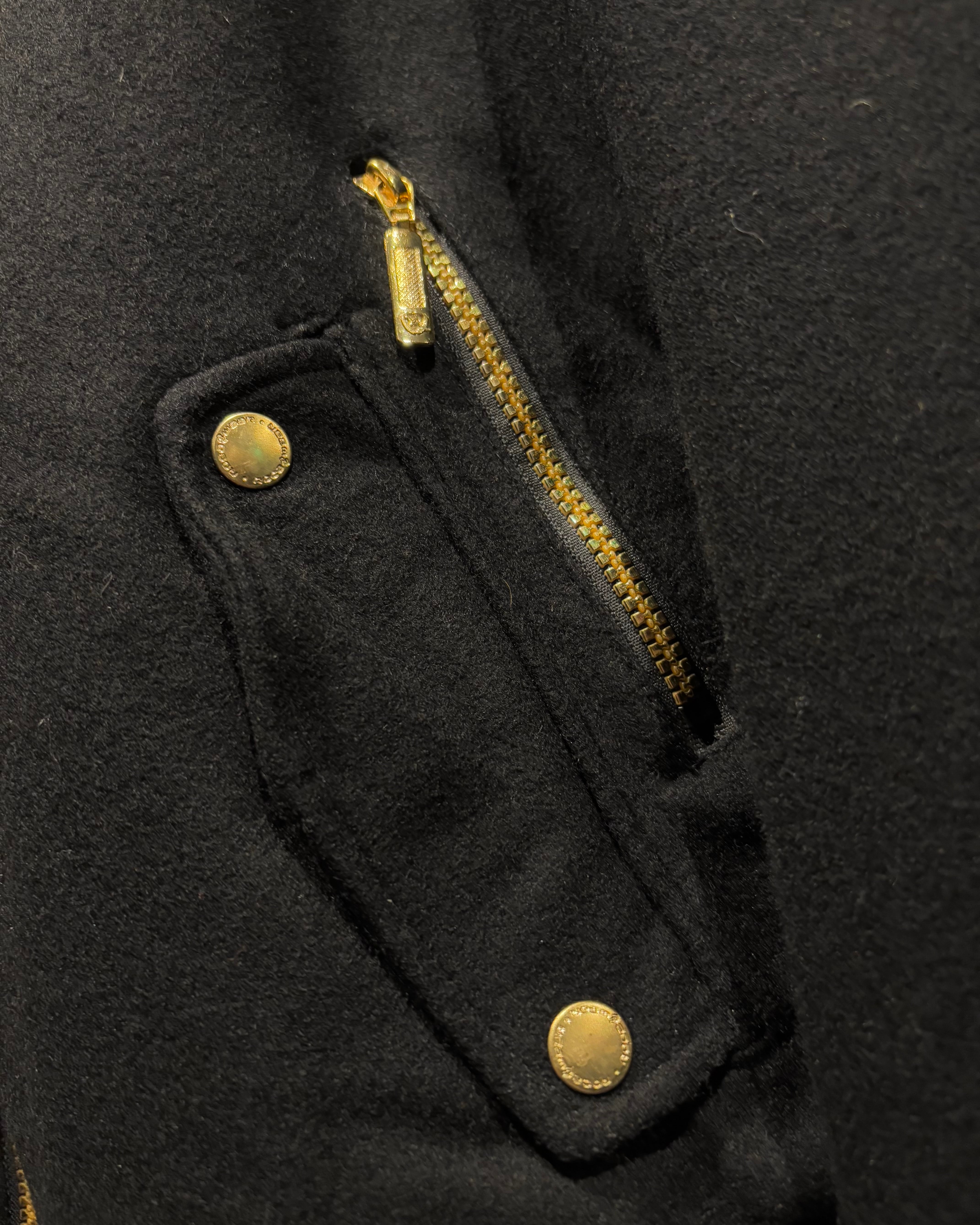 ボディには、柔らかさと上質さを兼ね備えたメルトン地を採用。ブラックを基調とした落ち着いた佇まいながら、しっかりと肉感のある素材使いで、ストリートとラグジュアリーの狭間を突いた仕上がりに。