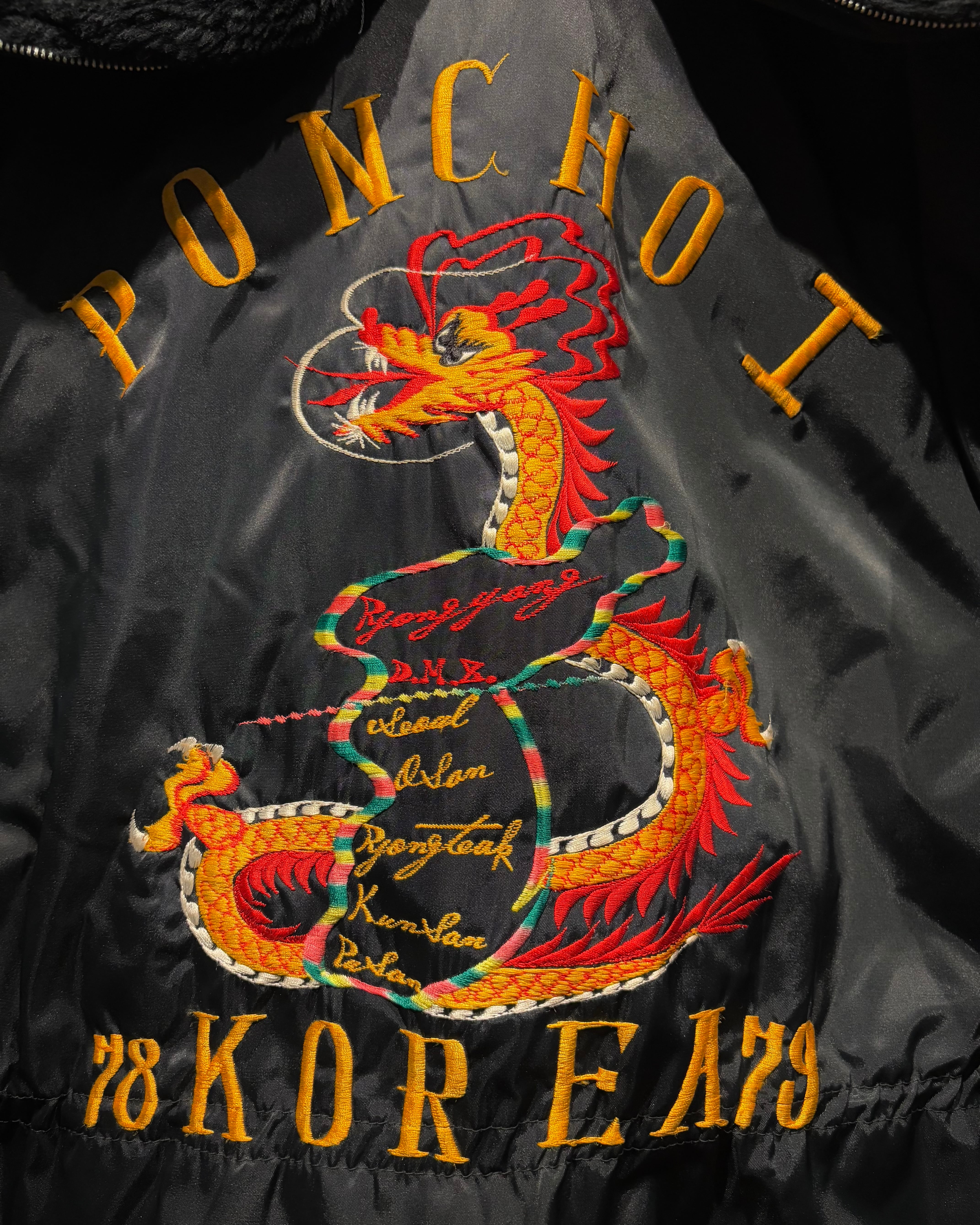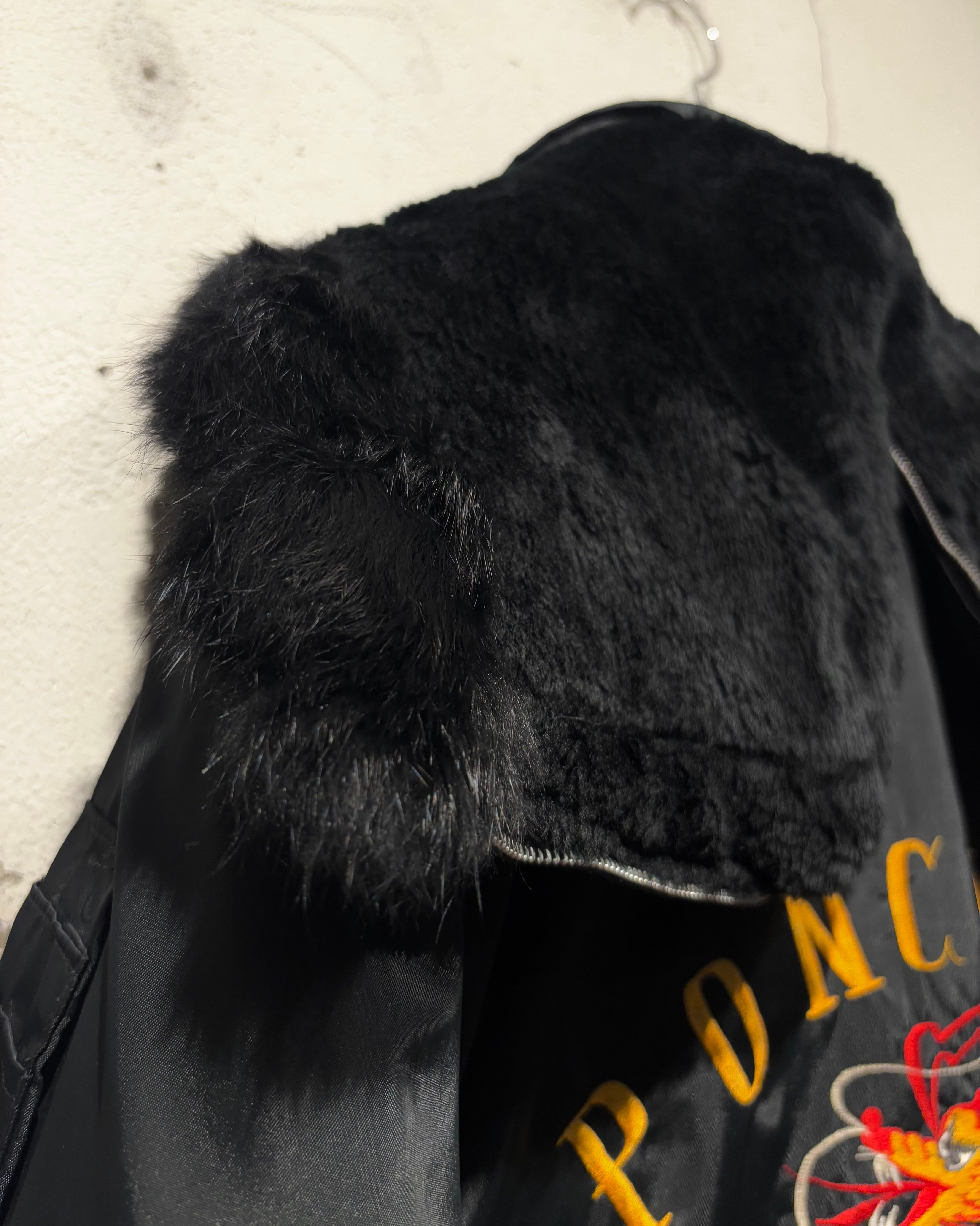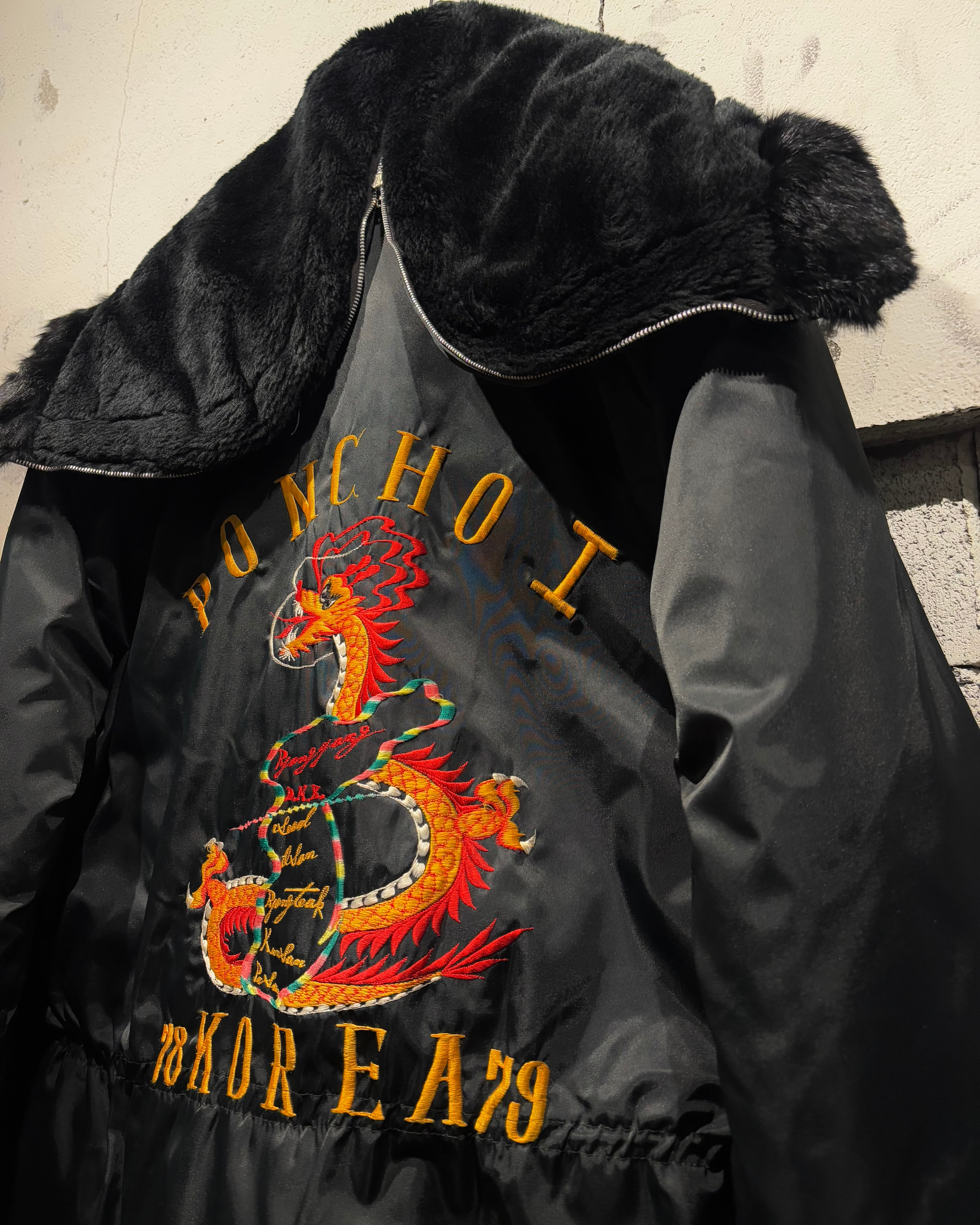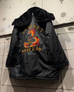 背面には存在感抜群の龍刺繍を配置。N-3Bという無骨なベースに、オリエンタルな刺繍表現を重ねることで、他にはない唯一無二の表情に仕上がっています。フロントはジップ+ボタンによる二重構造、ハンドウォーマーポケットなど、極寒地仕様のディテールも抜かりなし。