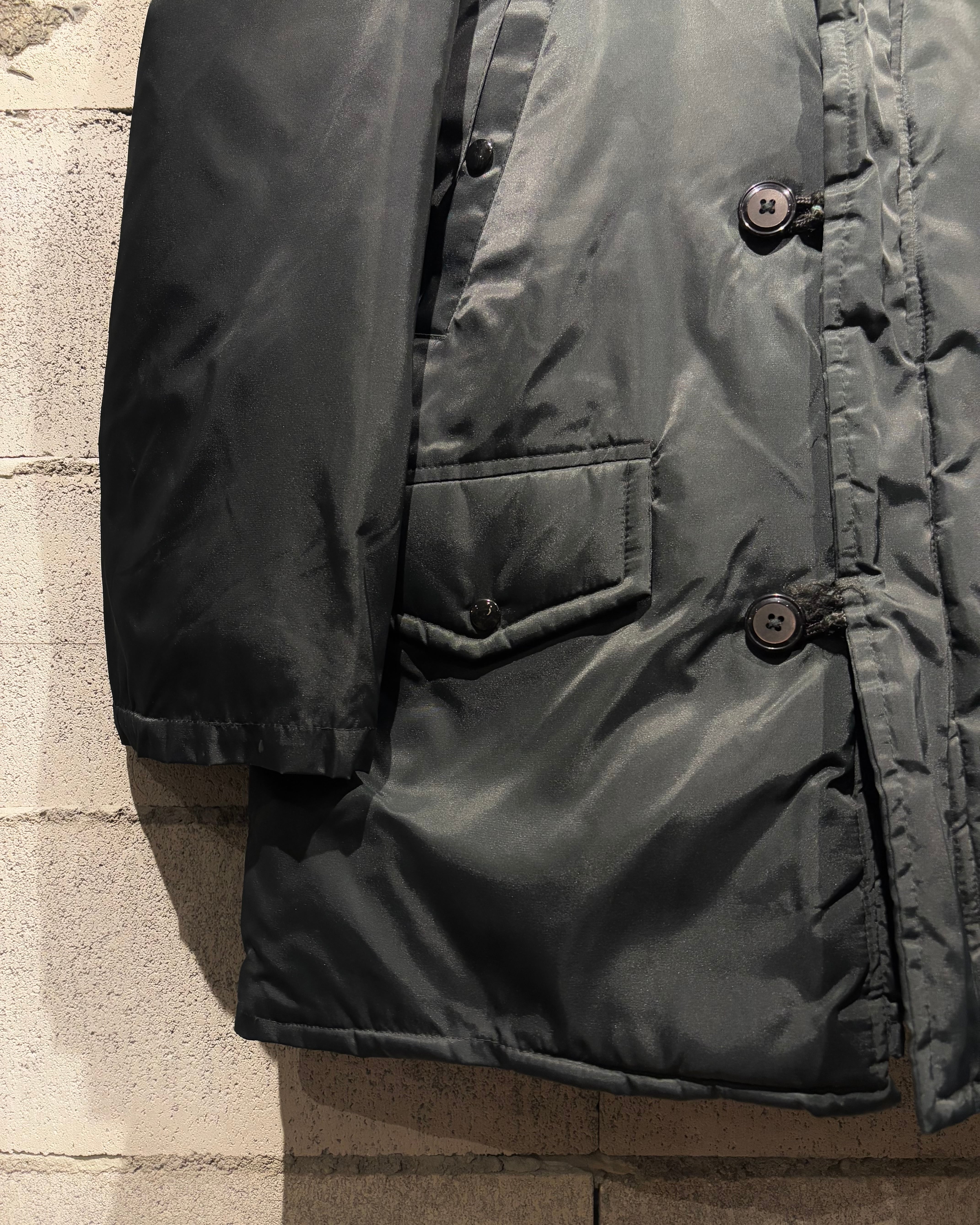 ボディにはハリと光沢を備えたブラックナイロンを採用。中綿入りの構造により、防風性、保温性ともに申し分なく、ミリタリー由来ならではの実用性をしっかりと担保しています。