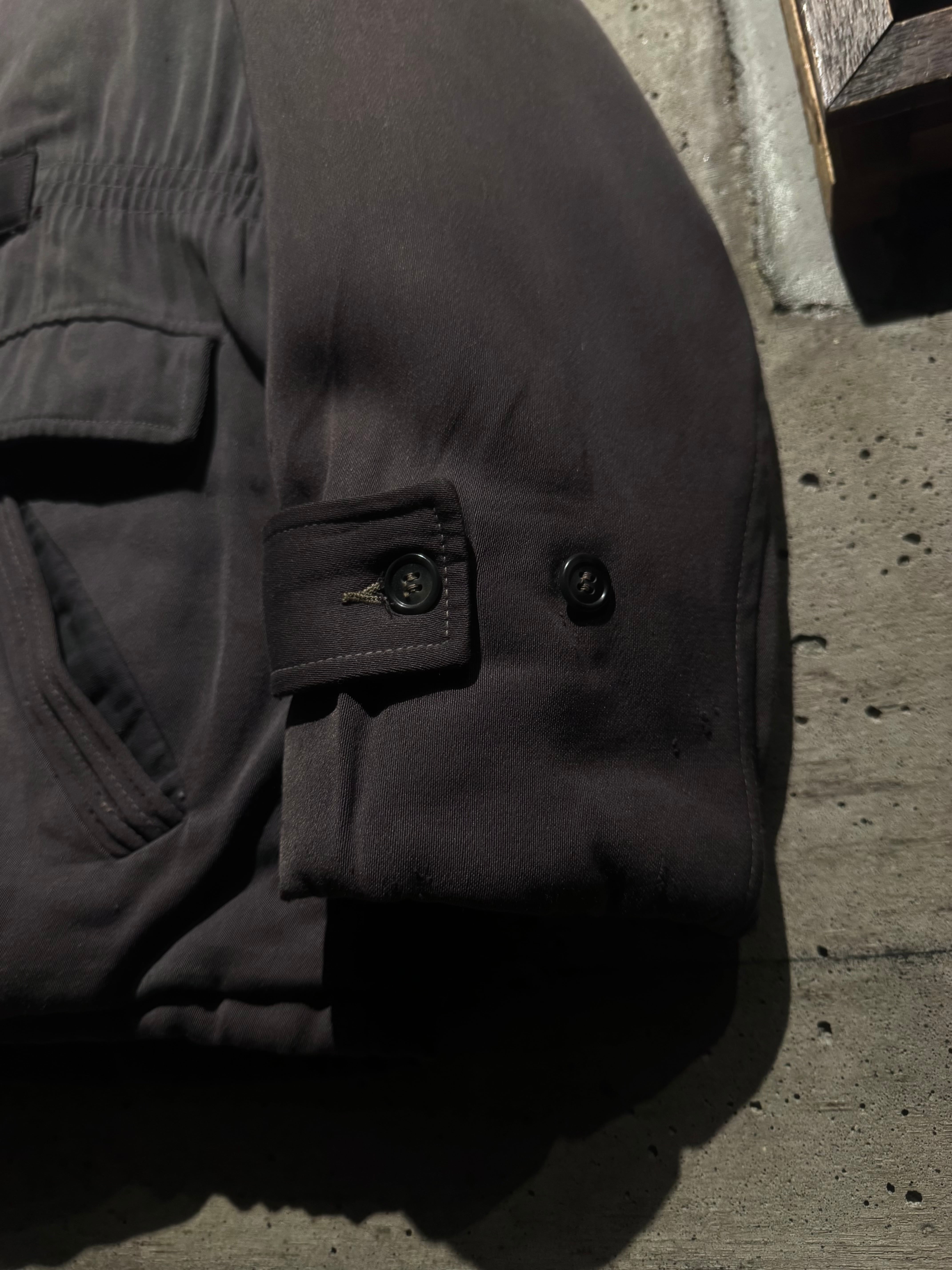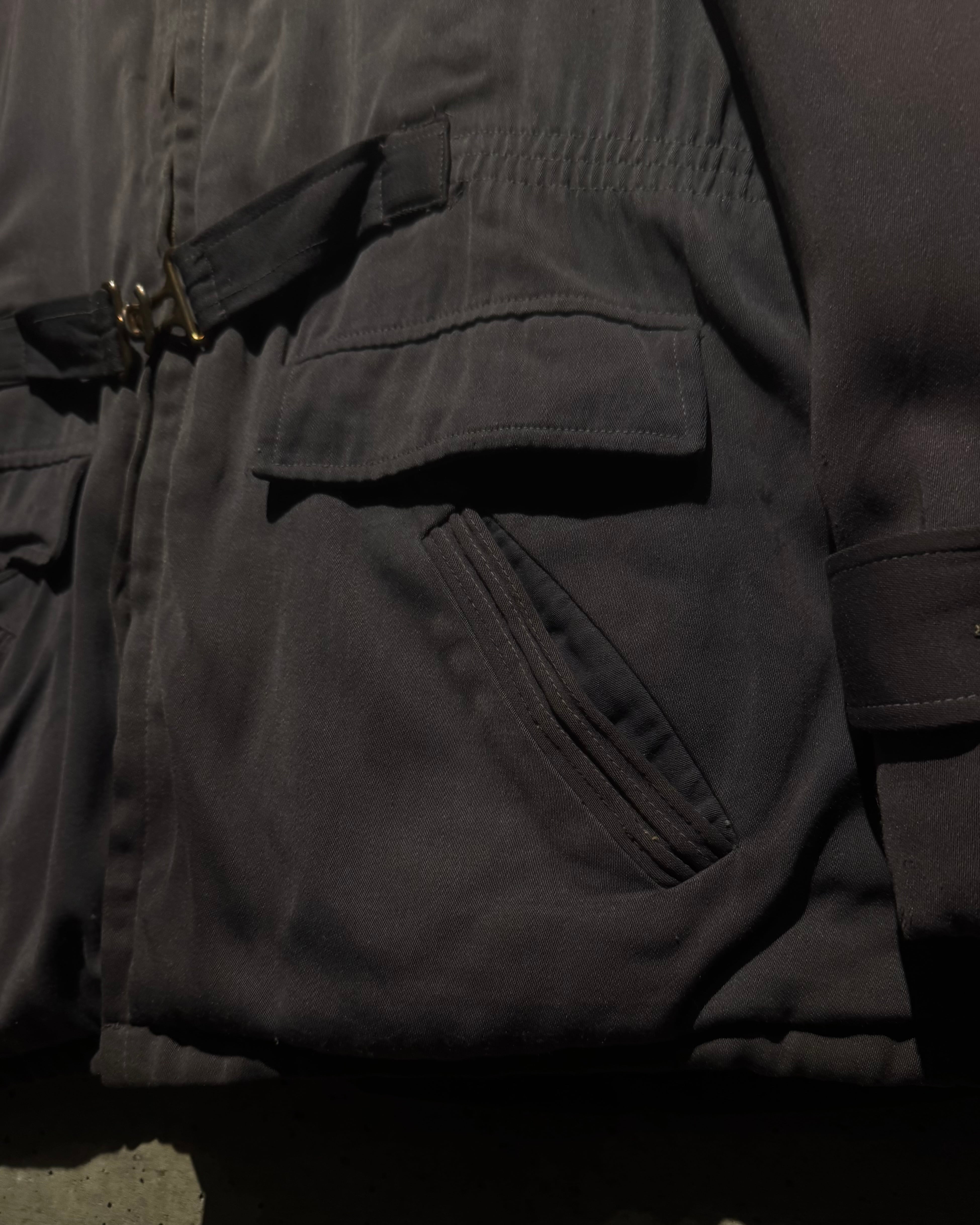 フロントにはジップ仕様を採用し、ウエスト周りにはフックのベルト、フラップ、ハンドウォーマーポケットを配置。無駄のないディテールながら、実用性を意識したディテール使いが◎