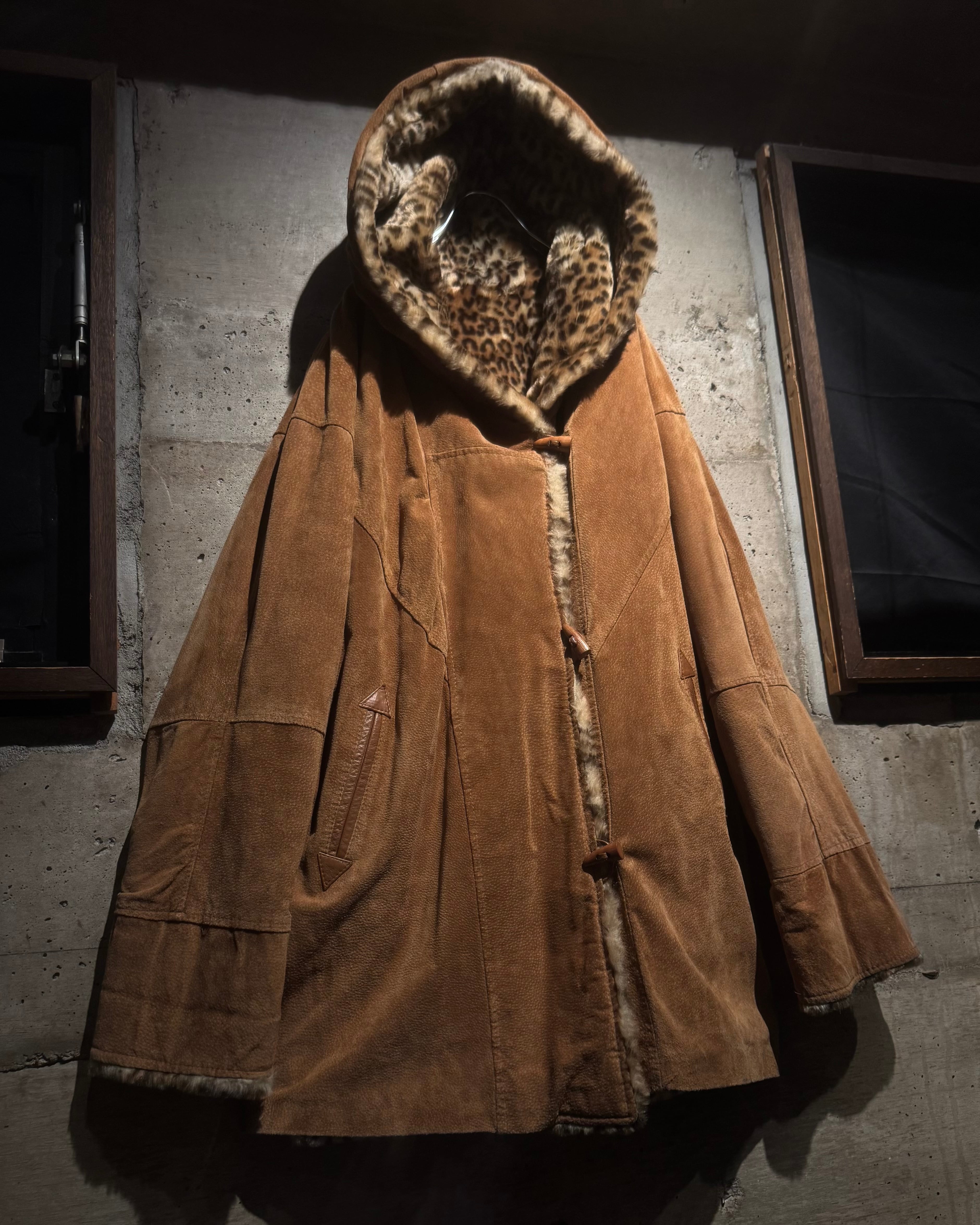 レオパード柄のフェイクファーと、リアルピッグレザーをリバーシブルで仕立てた80's “Marvin Richards”の1着。
