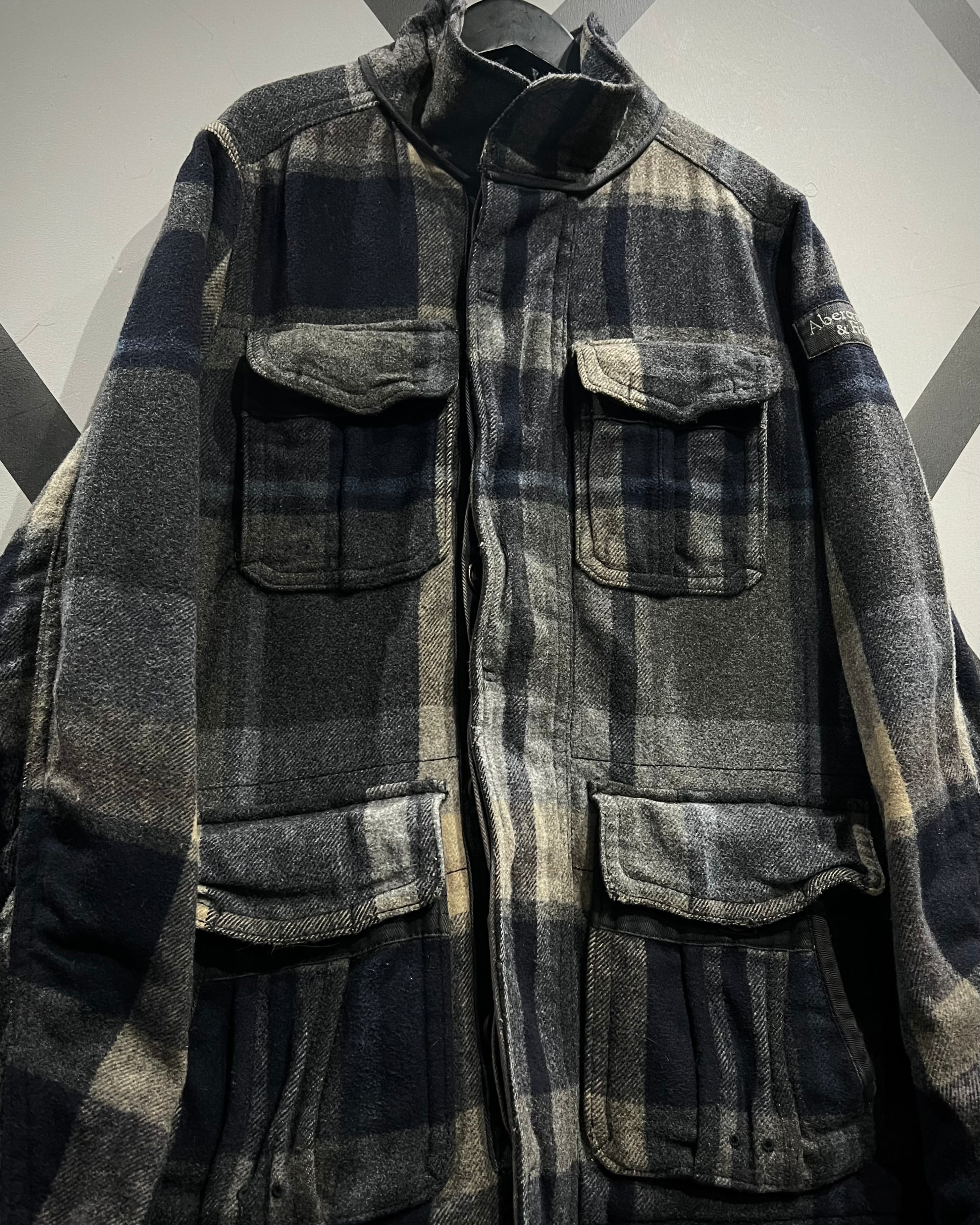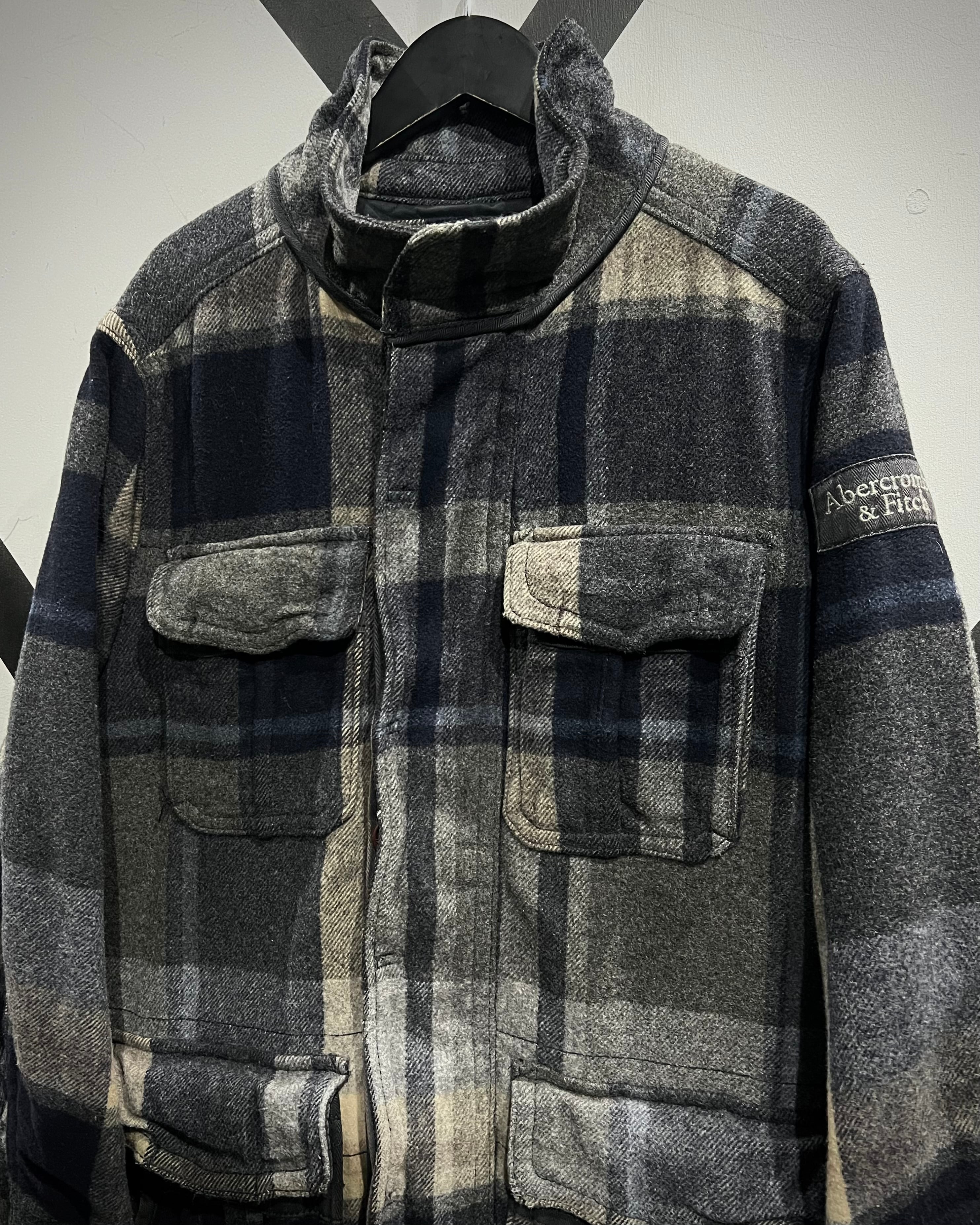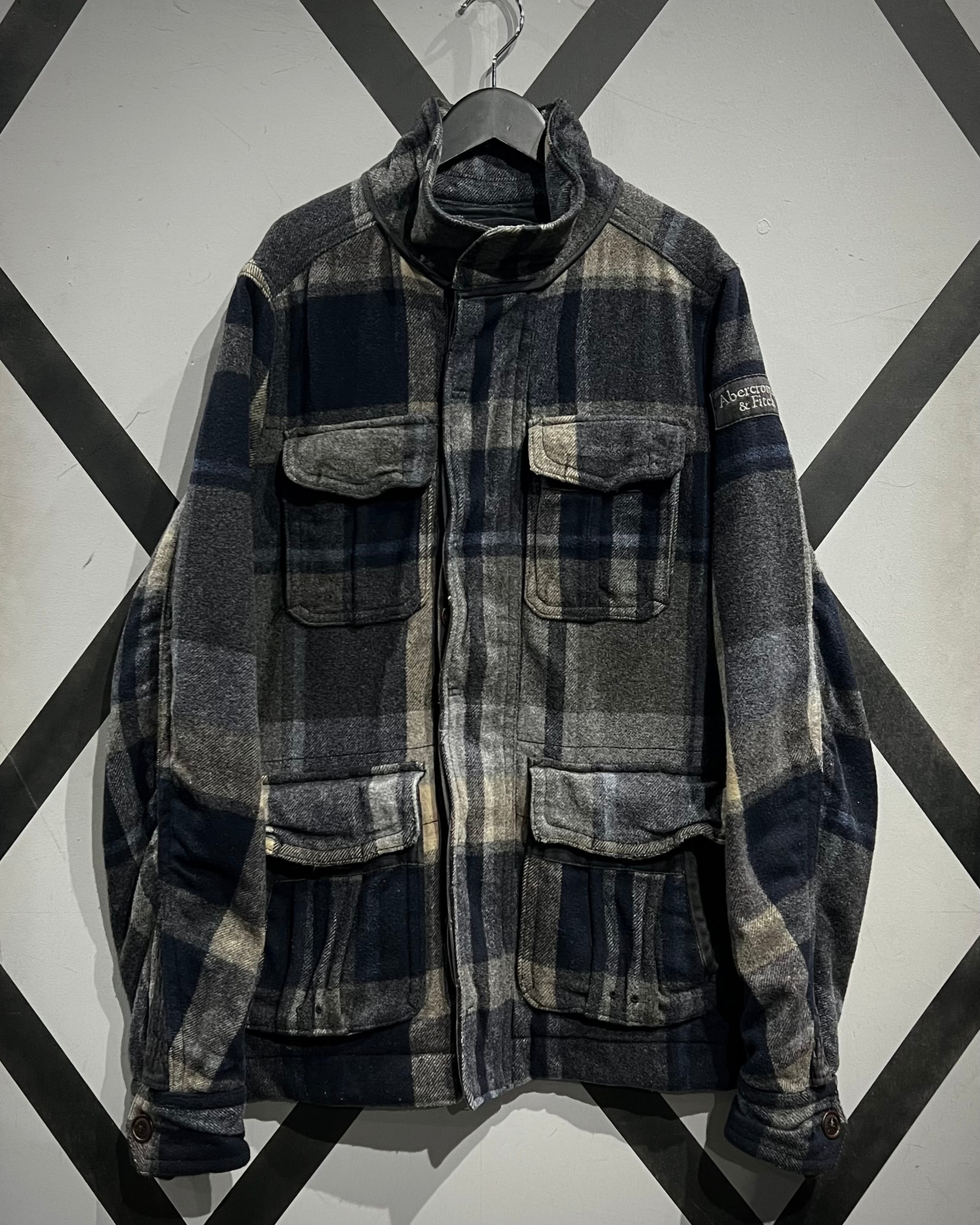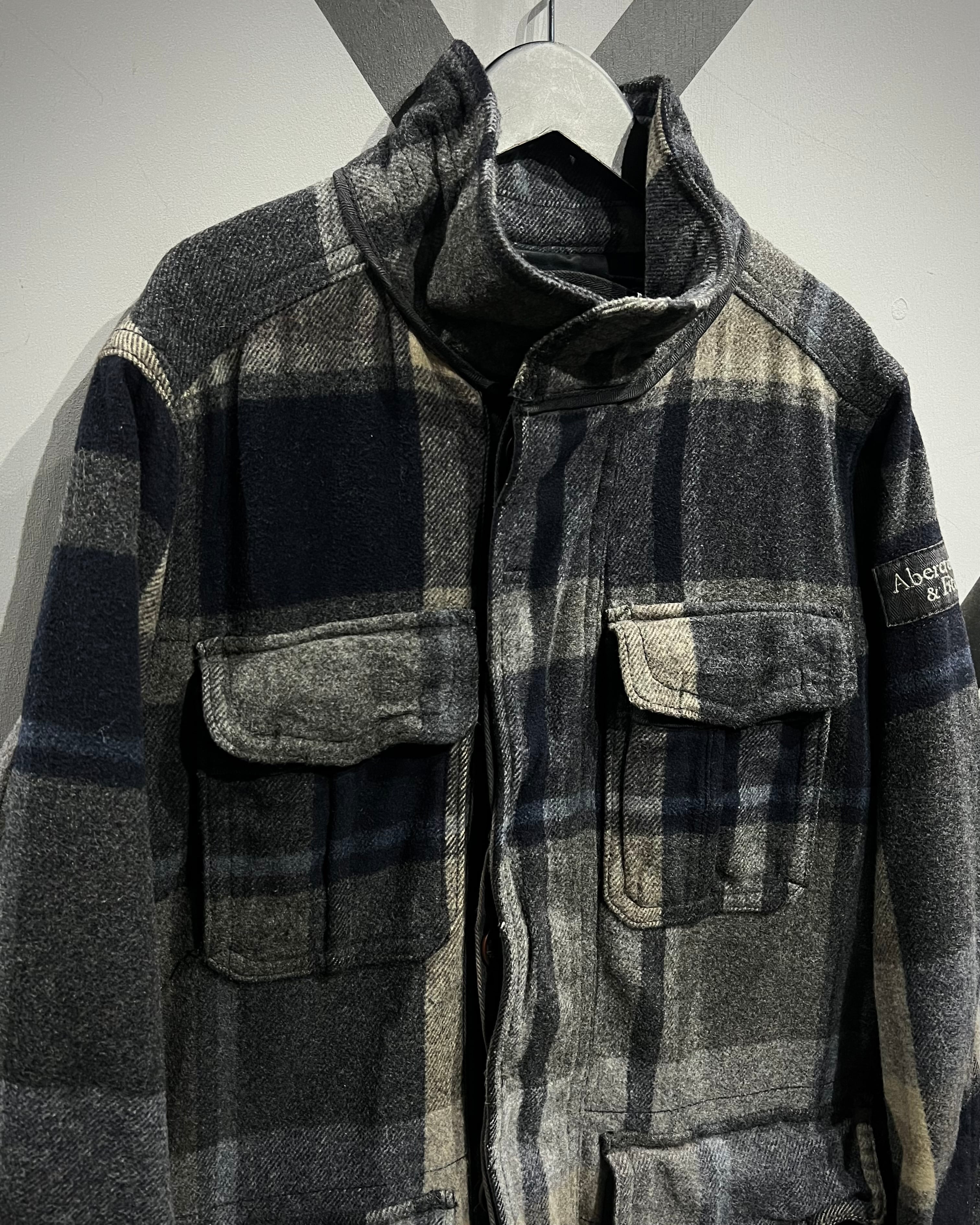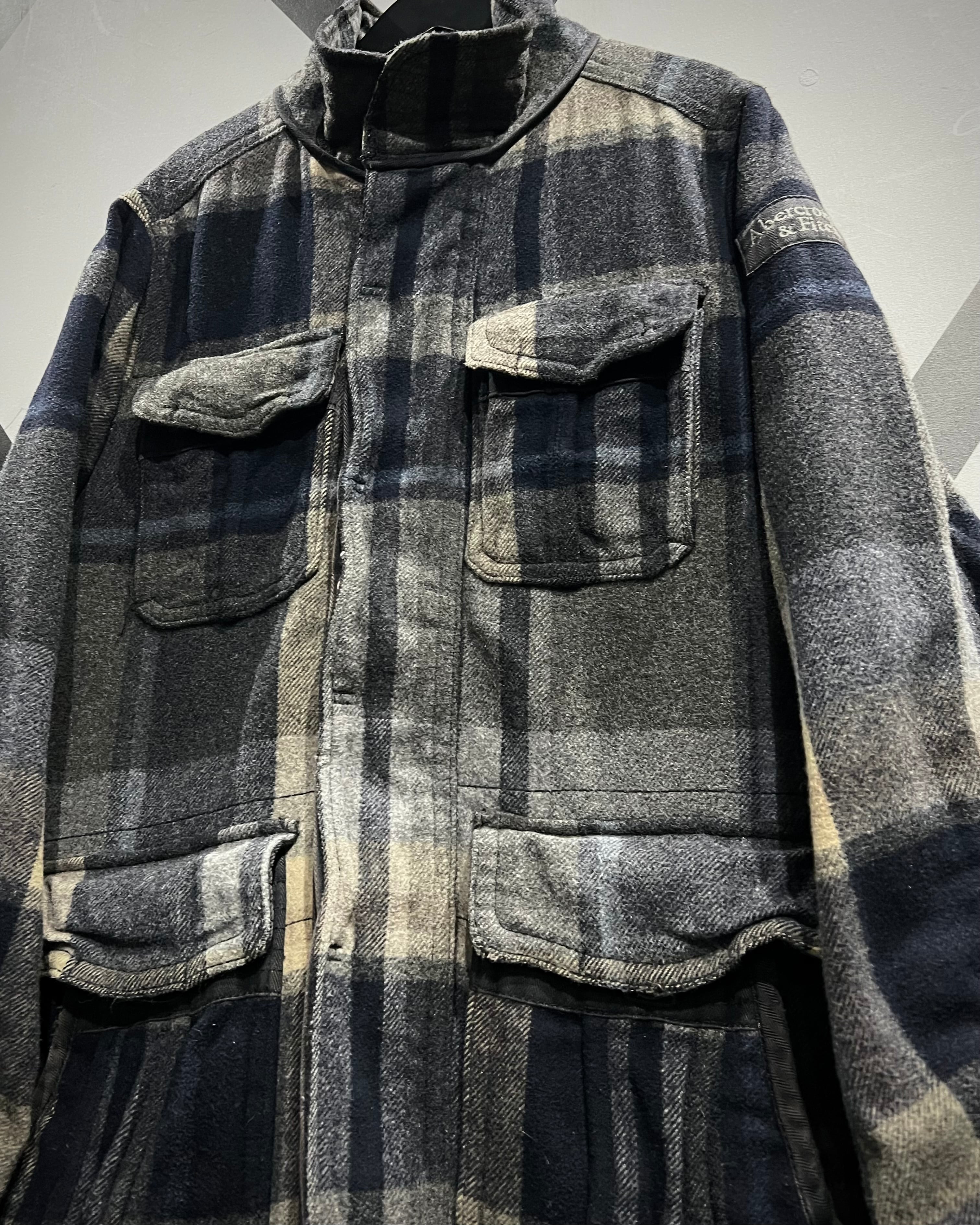 柔らかなメルトン地をボディに採用。ネイビー×グレー×ベージュをベースとしたチェック柄を全体に載せ、ミリタリーやワークウェアをインスパイアとしたディテールで仕上げた、"Abercrombie & Fitch"からの1着。