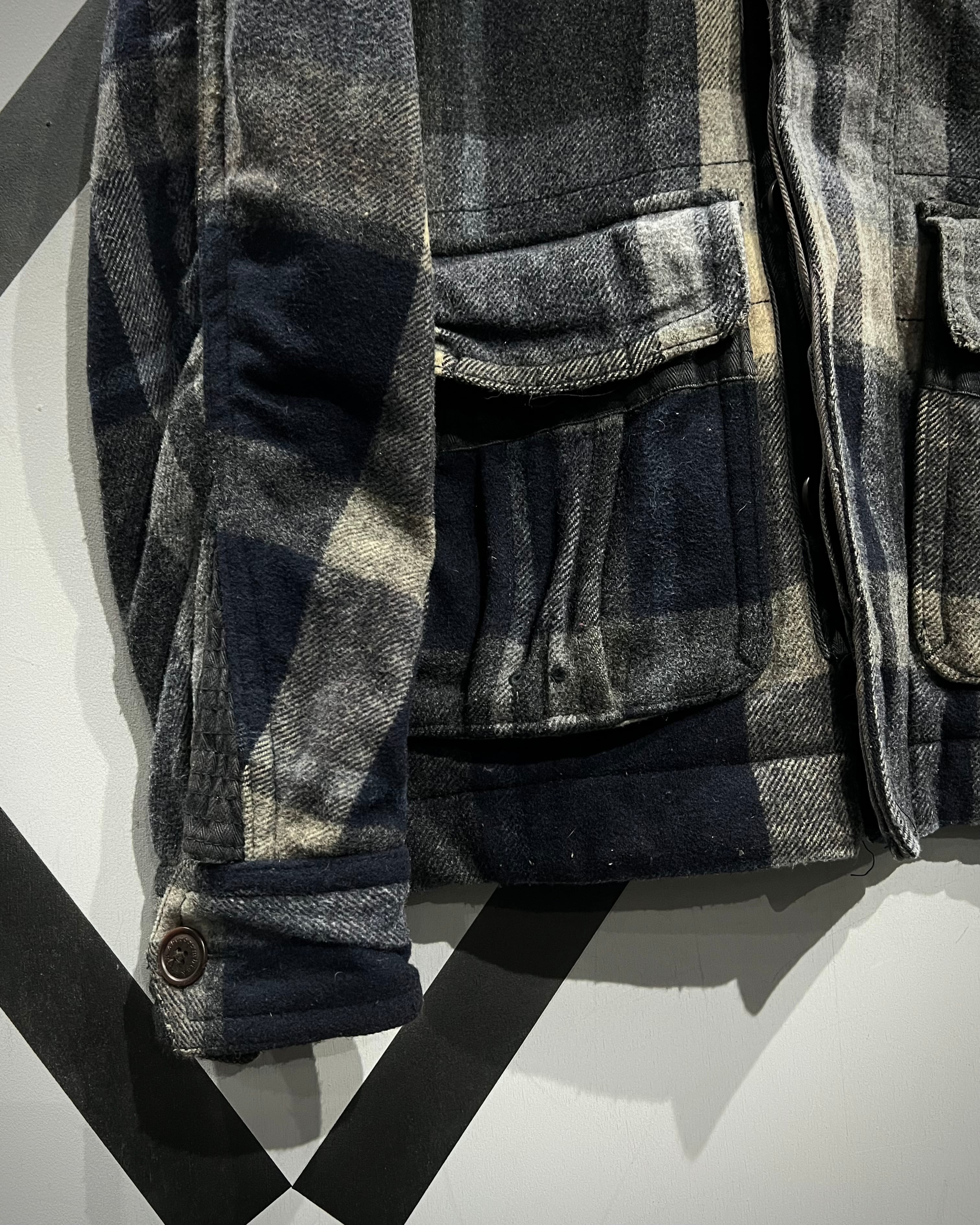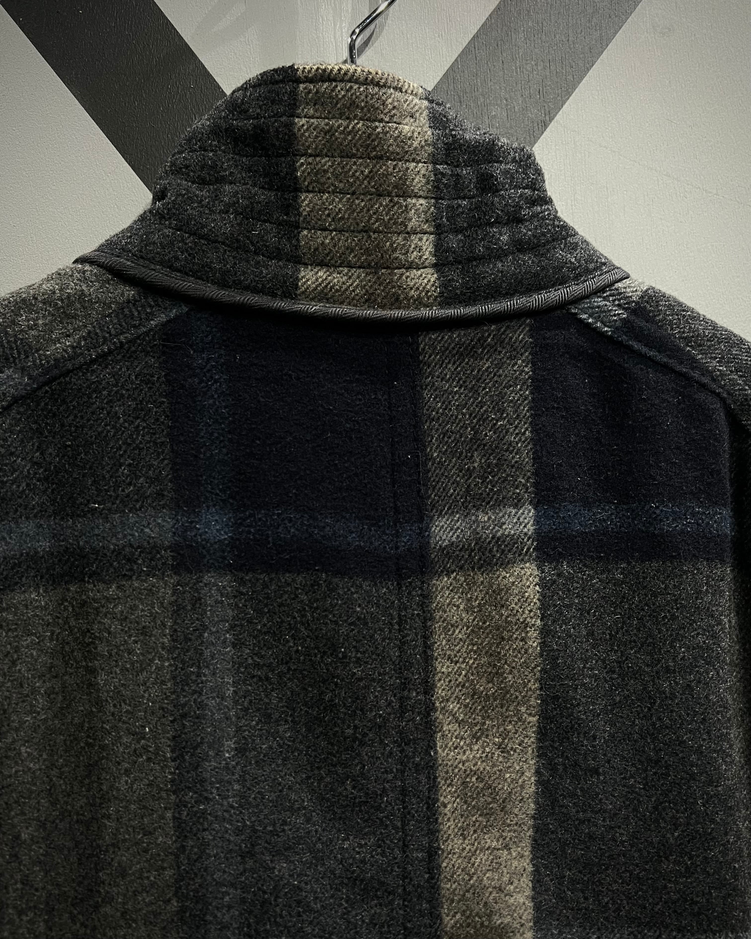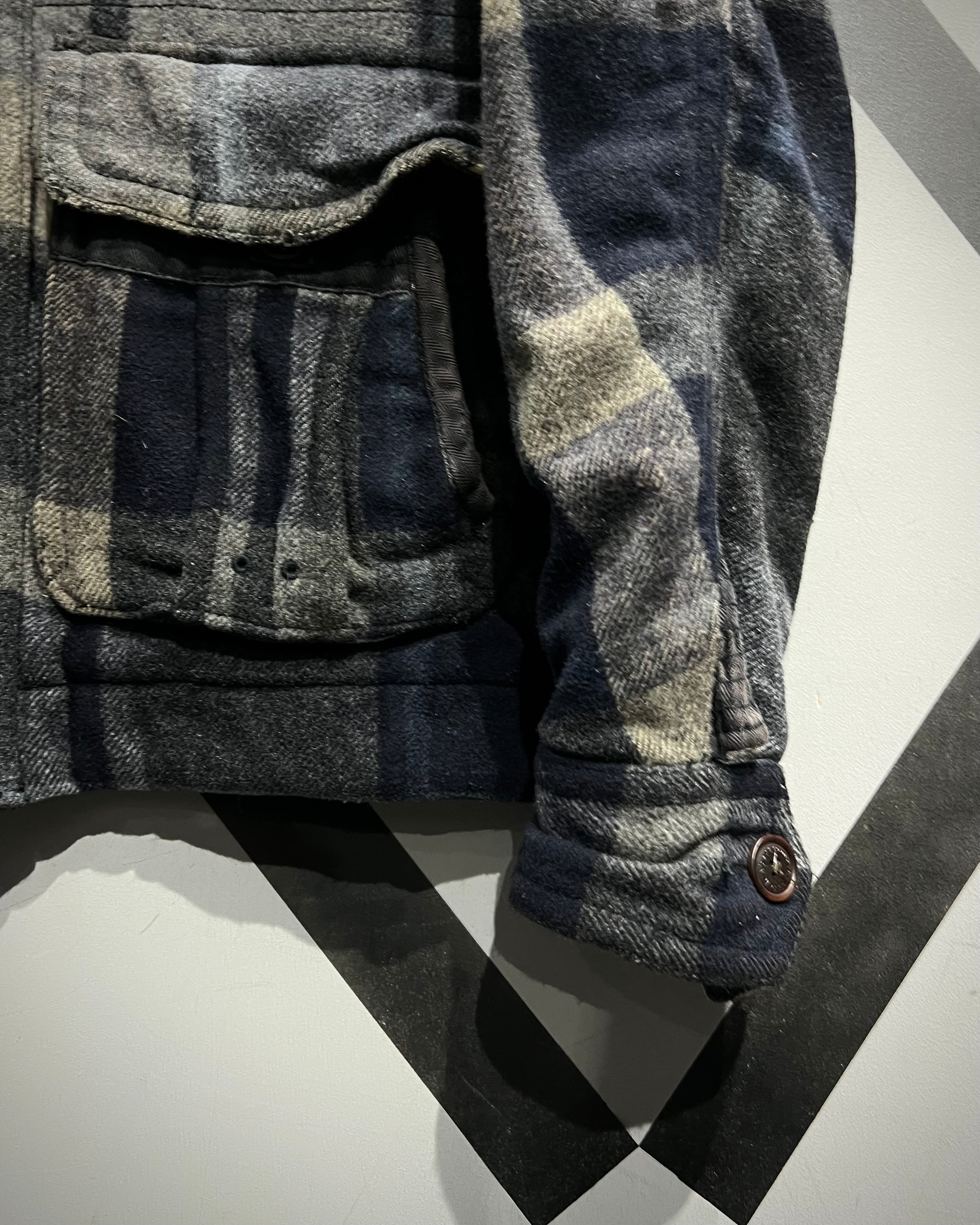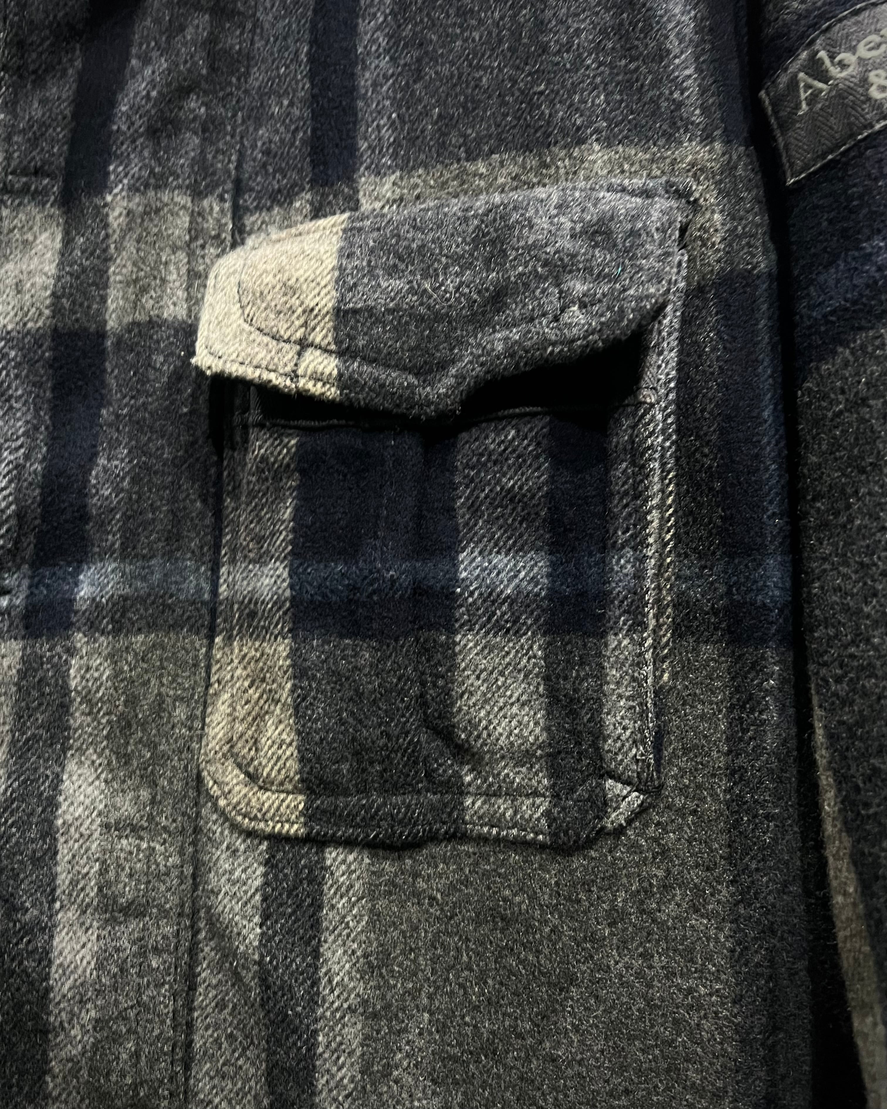 柔らかなメルトン地をボディに採用。ネイビー×グレー×ベージュをベースとしたチェック柄を全体に載せ、ミリタリーやワークウェアをインスパイアとしたディテールで仕上げた、"Abercrombie & Fitch"からの1着。
