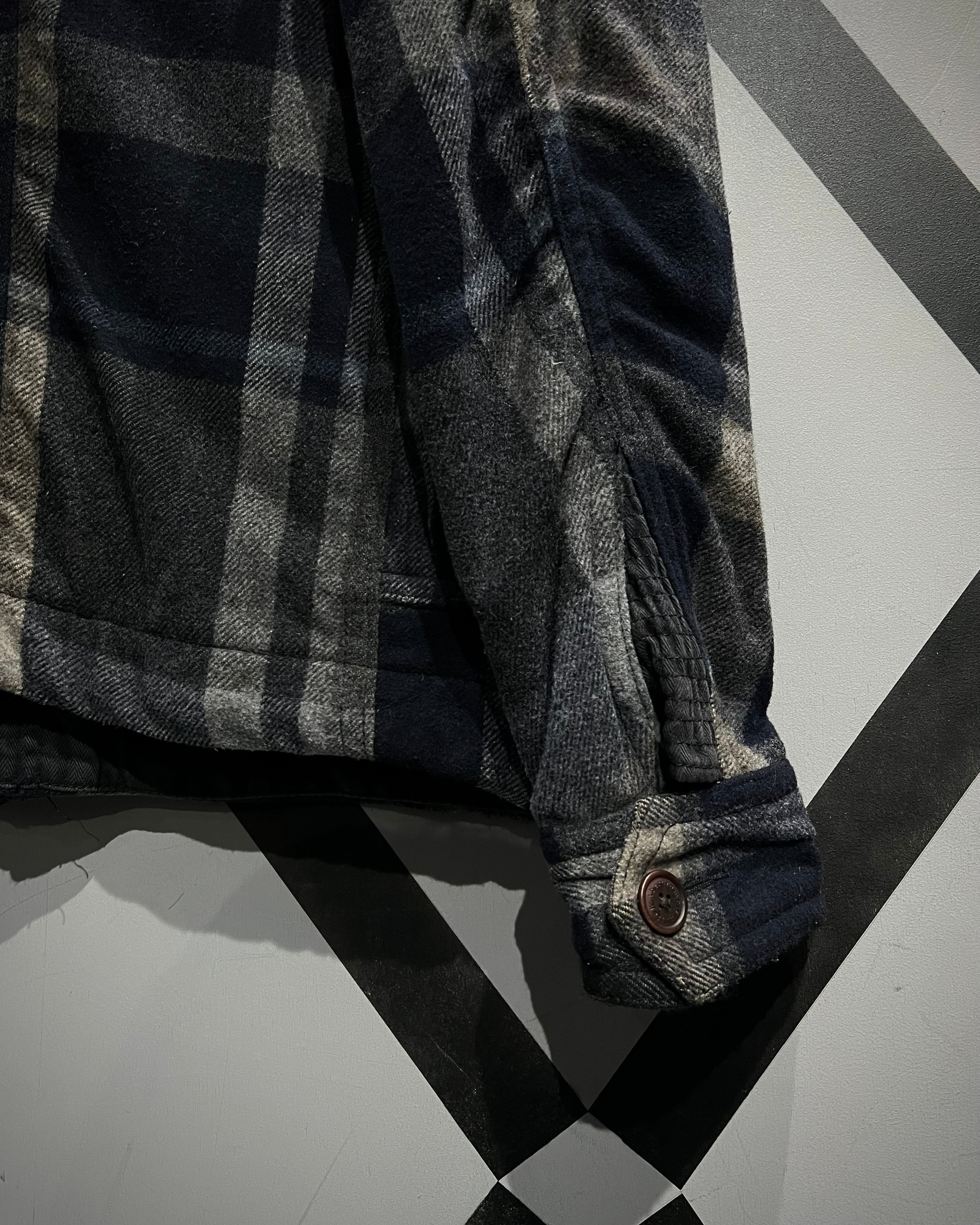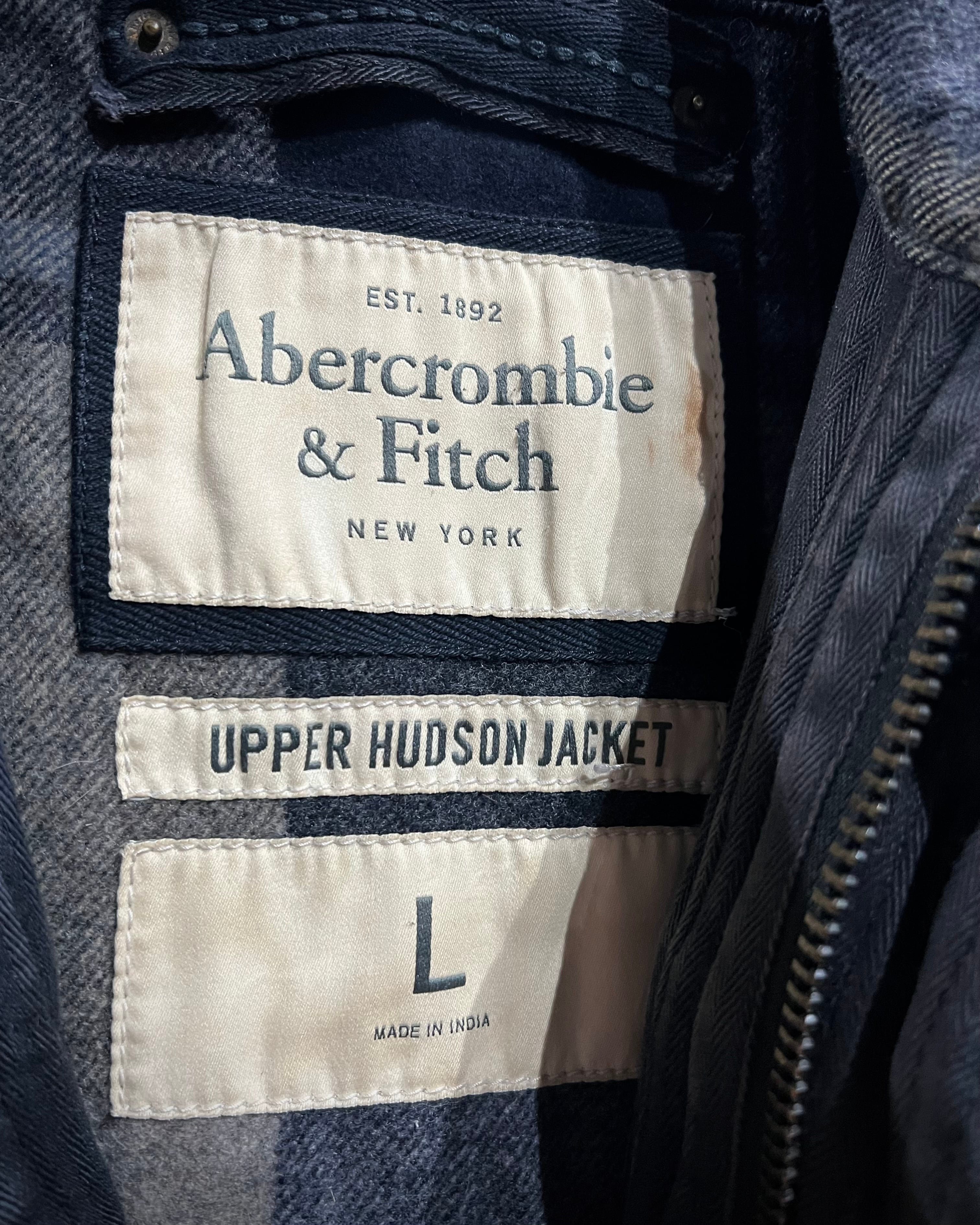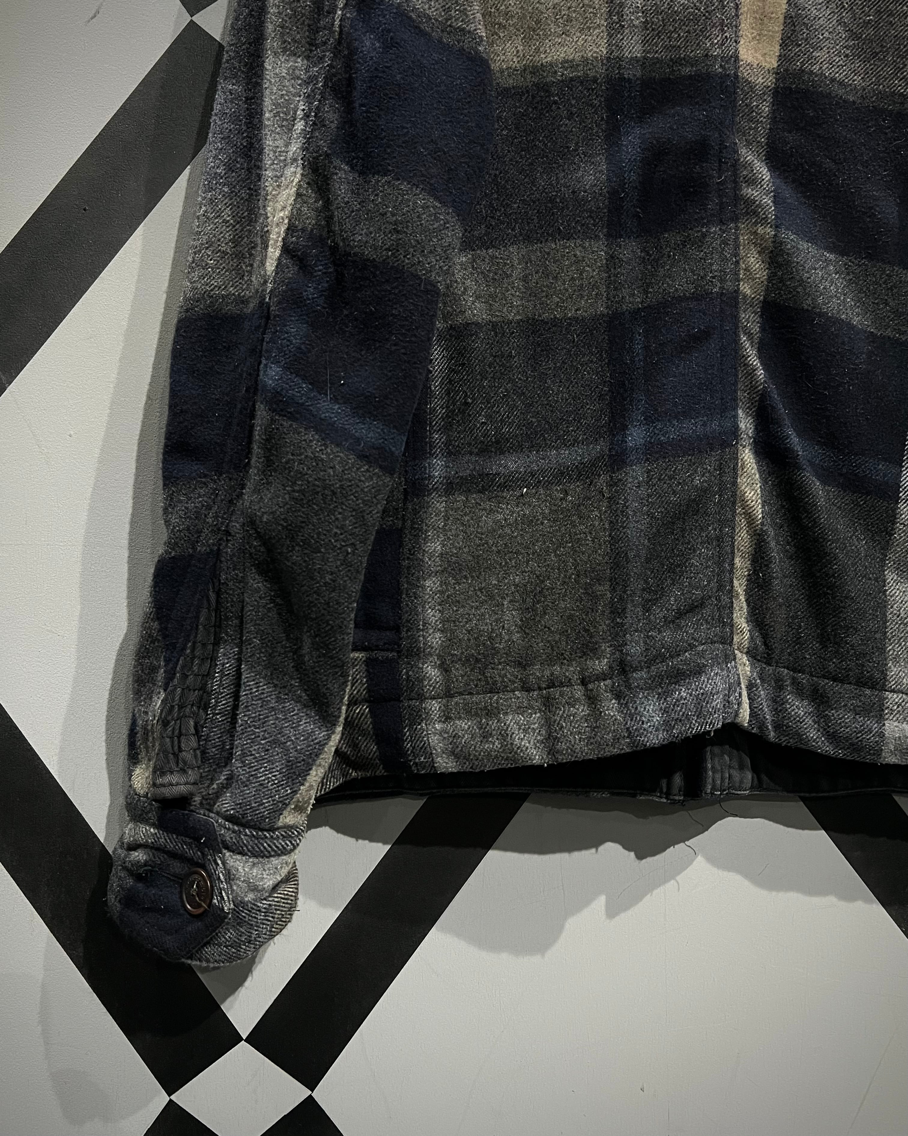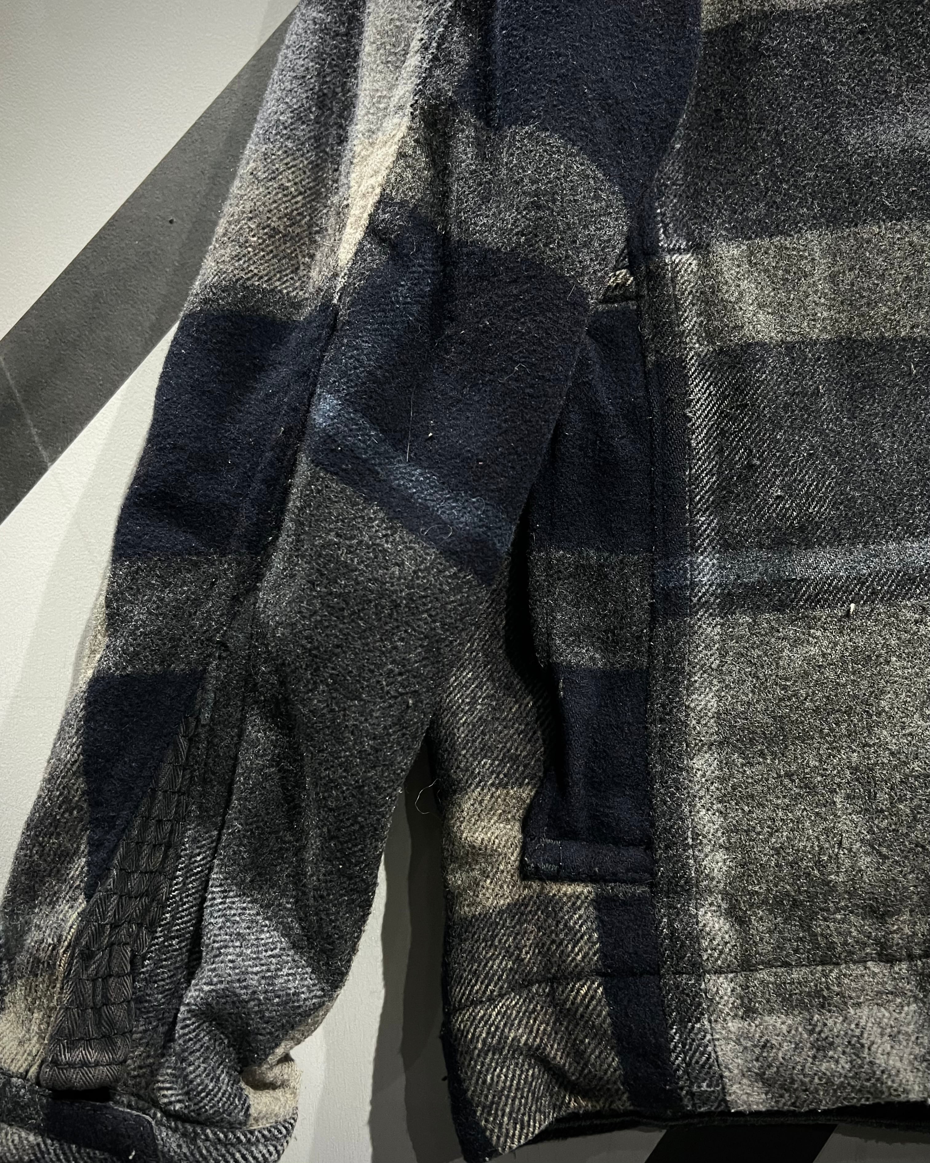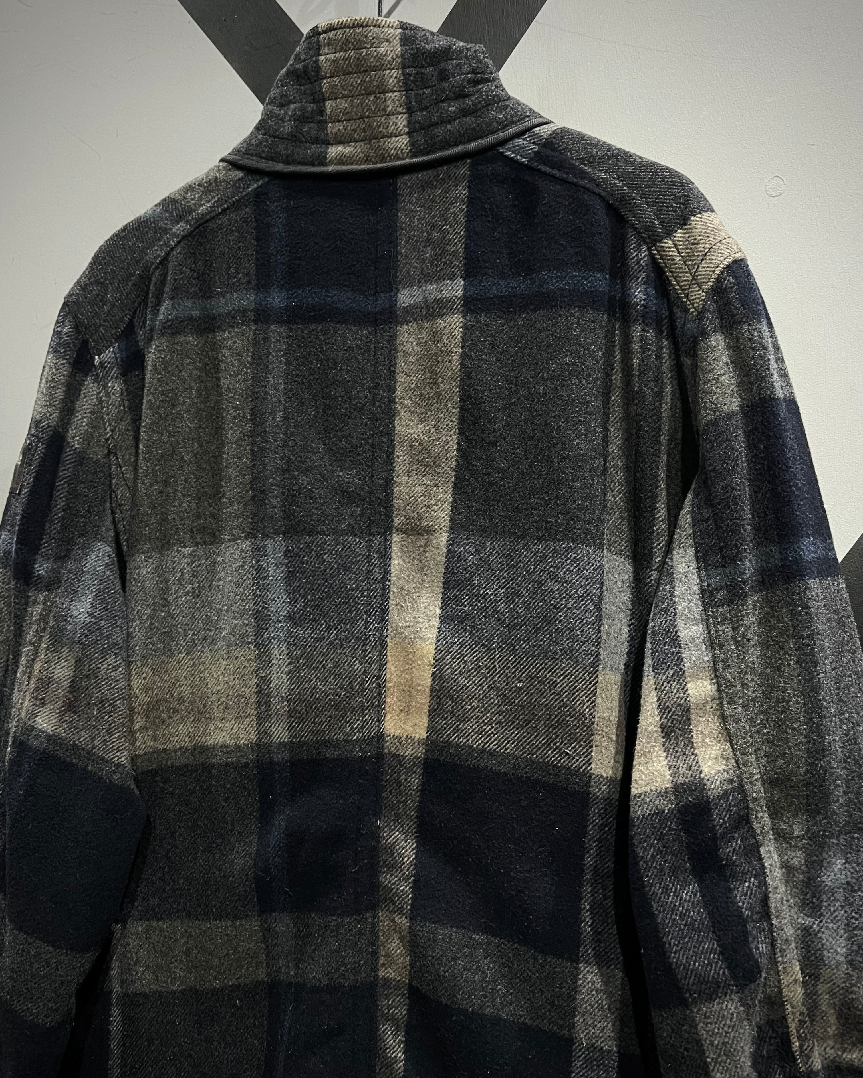 柔らかなメルトン地をボディに採用。ネイビー×グレー×ベージュをベースとしたチェック柄を全体に載せ、ミリタリーやワークウェアをインスパイアとしたディテールで仕上げた、"Abercrombie & Fitch"からの1着。