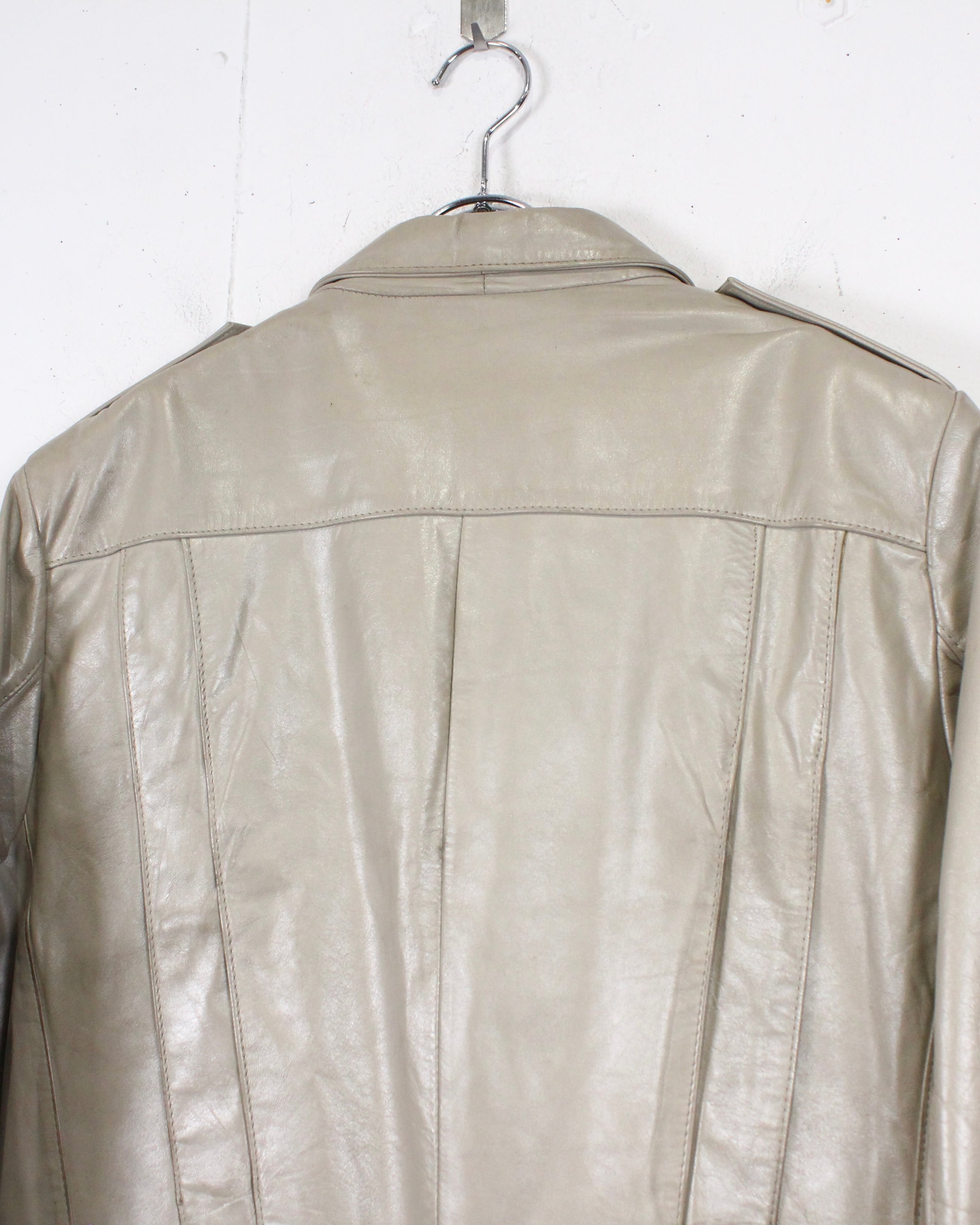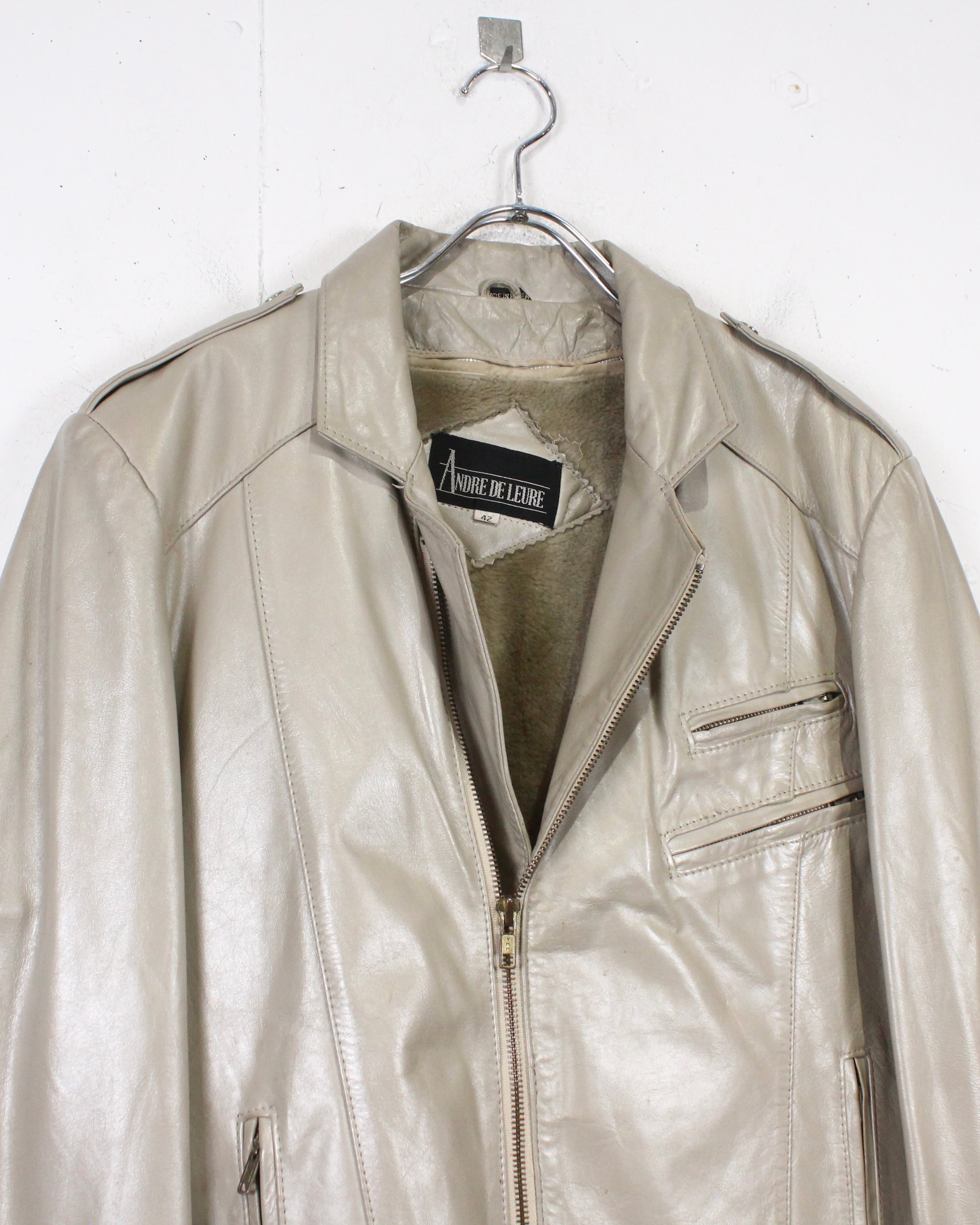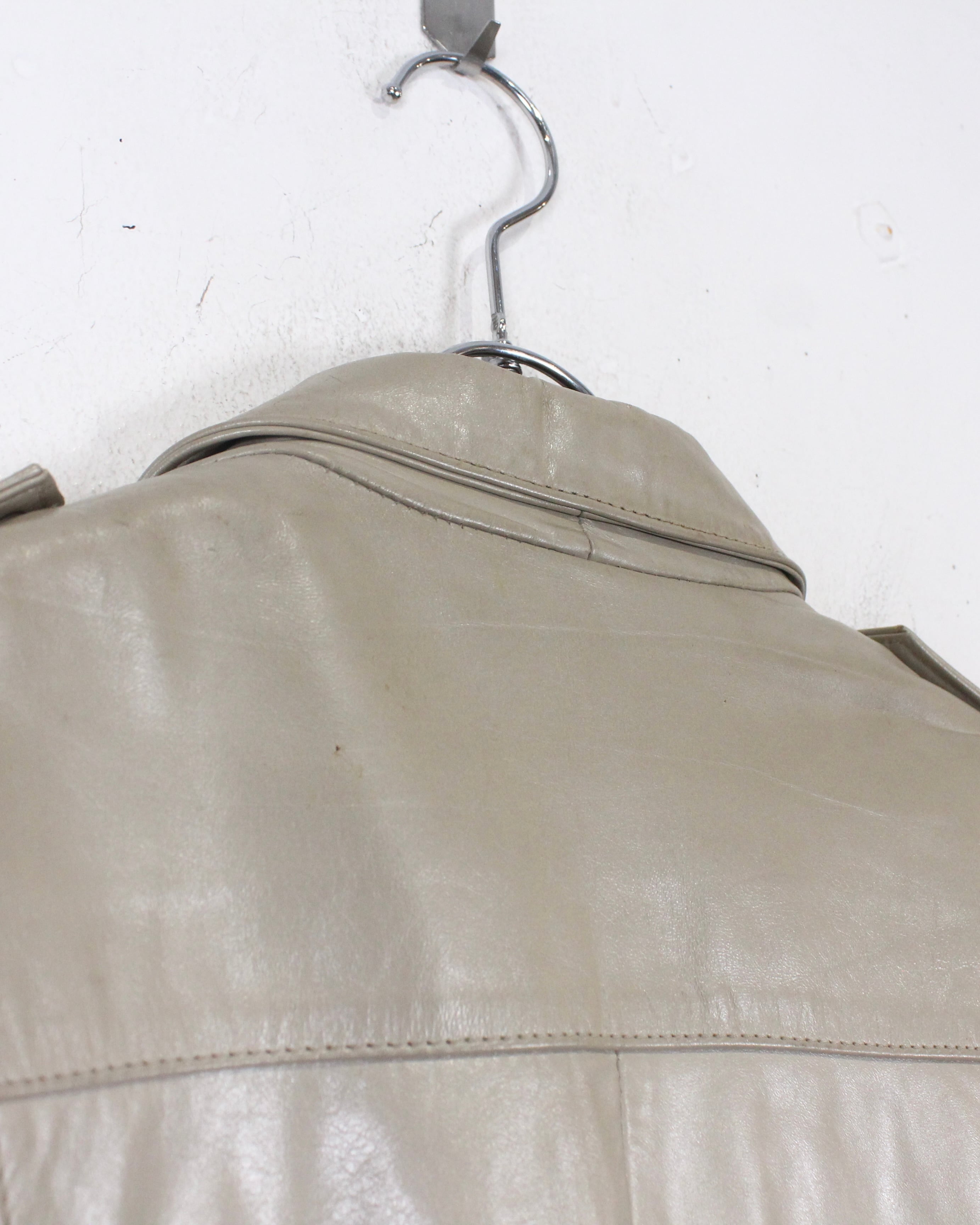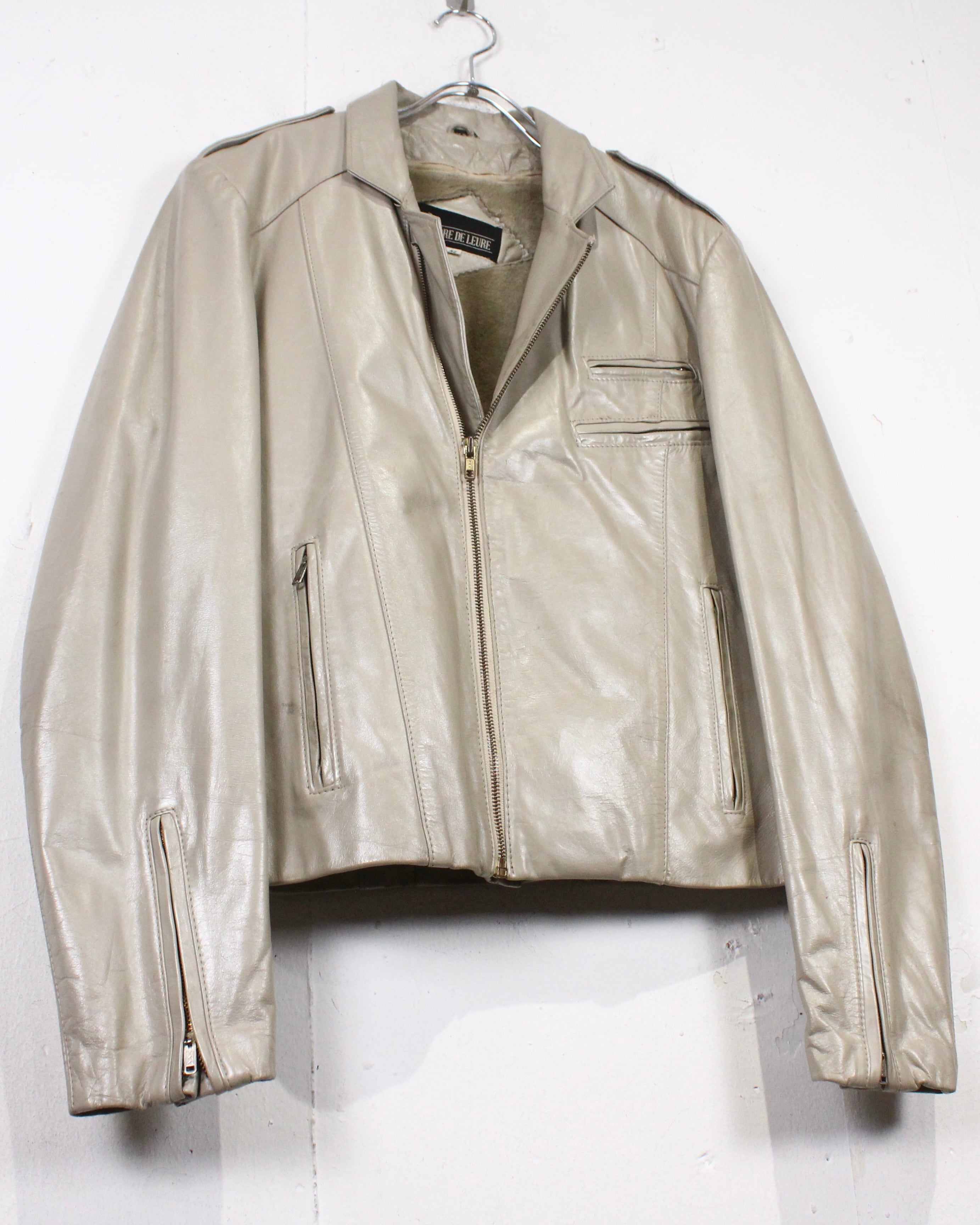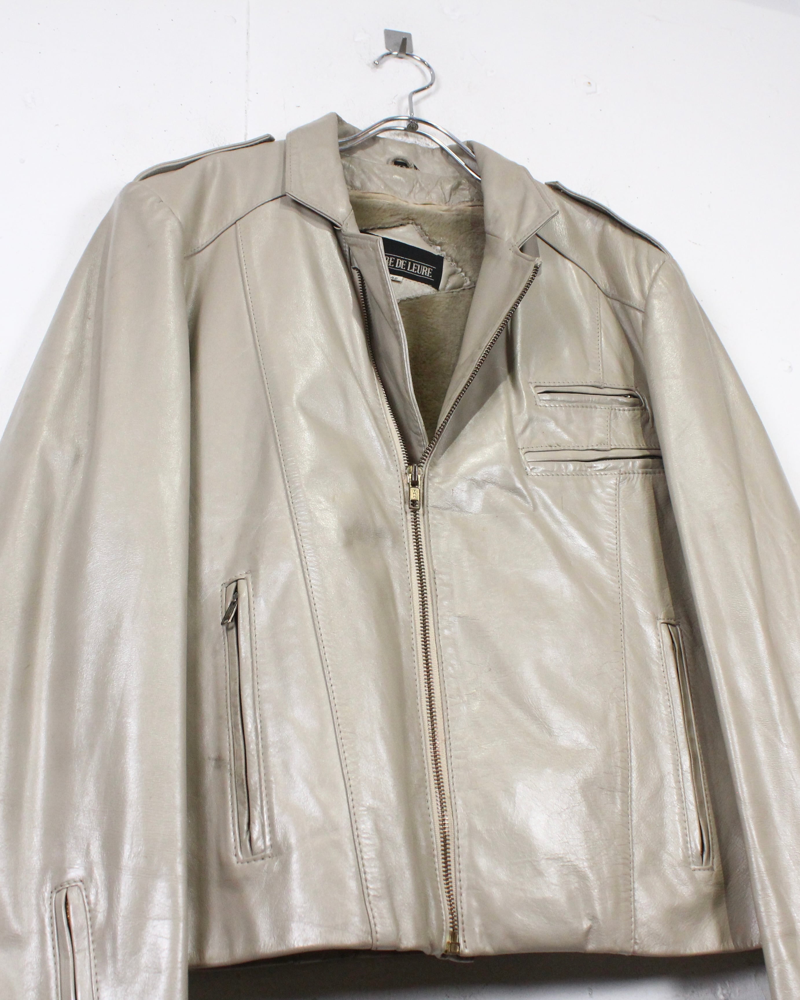 レザー特有の重厚さをしっかり残しながらも、パールホワイトならではの柔らかな発色が加わることで、無骨さとラグジュアリーさが自然に合わさった1着に仕上がっています。