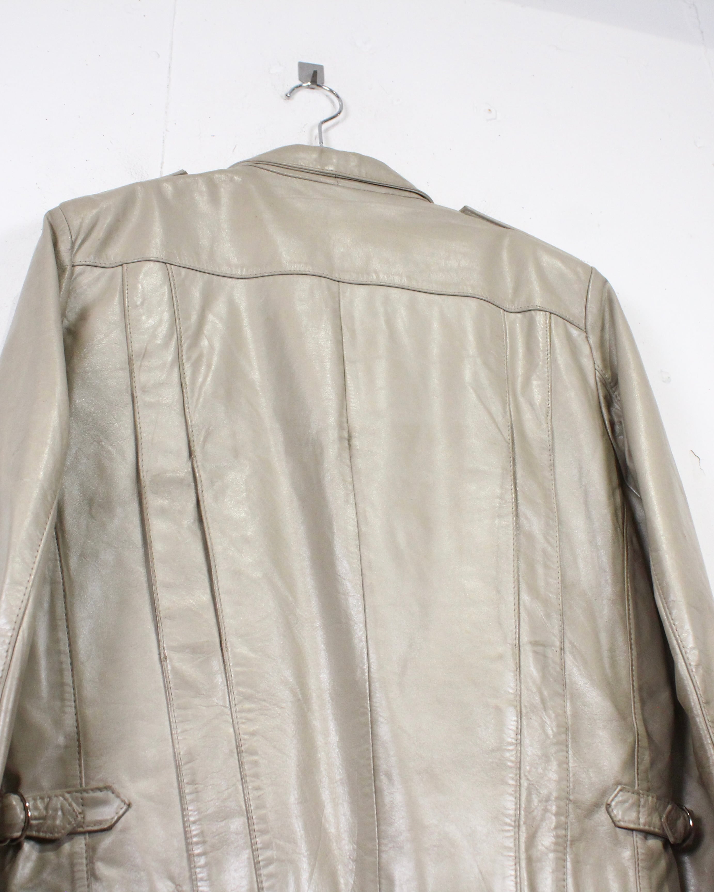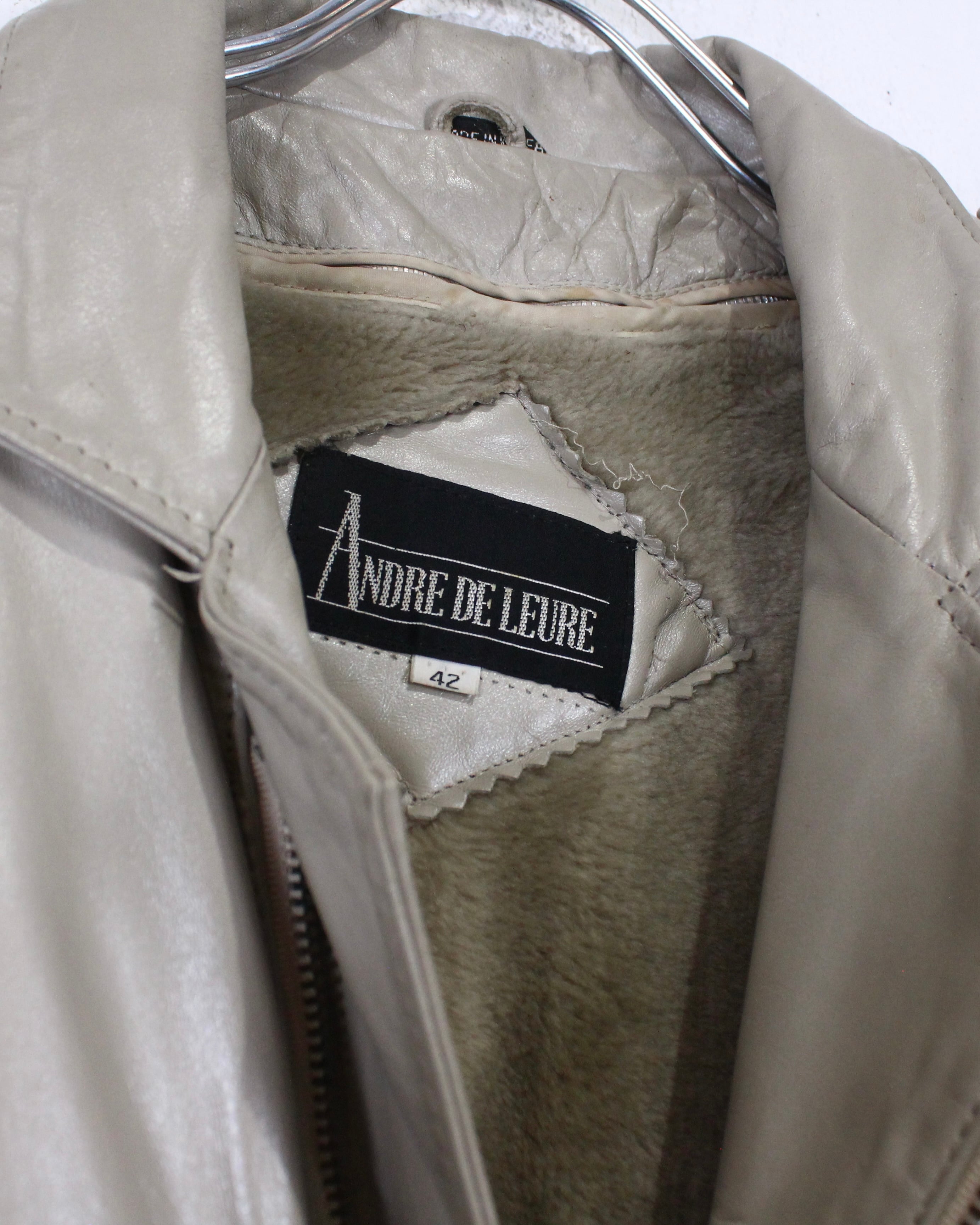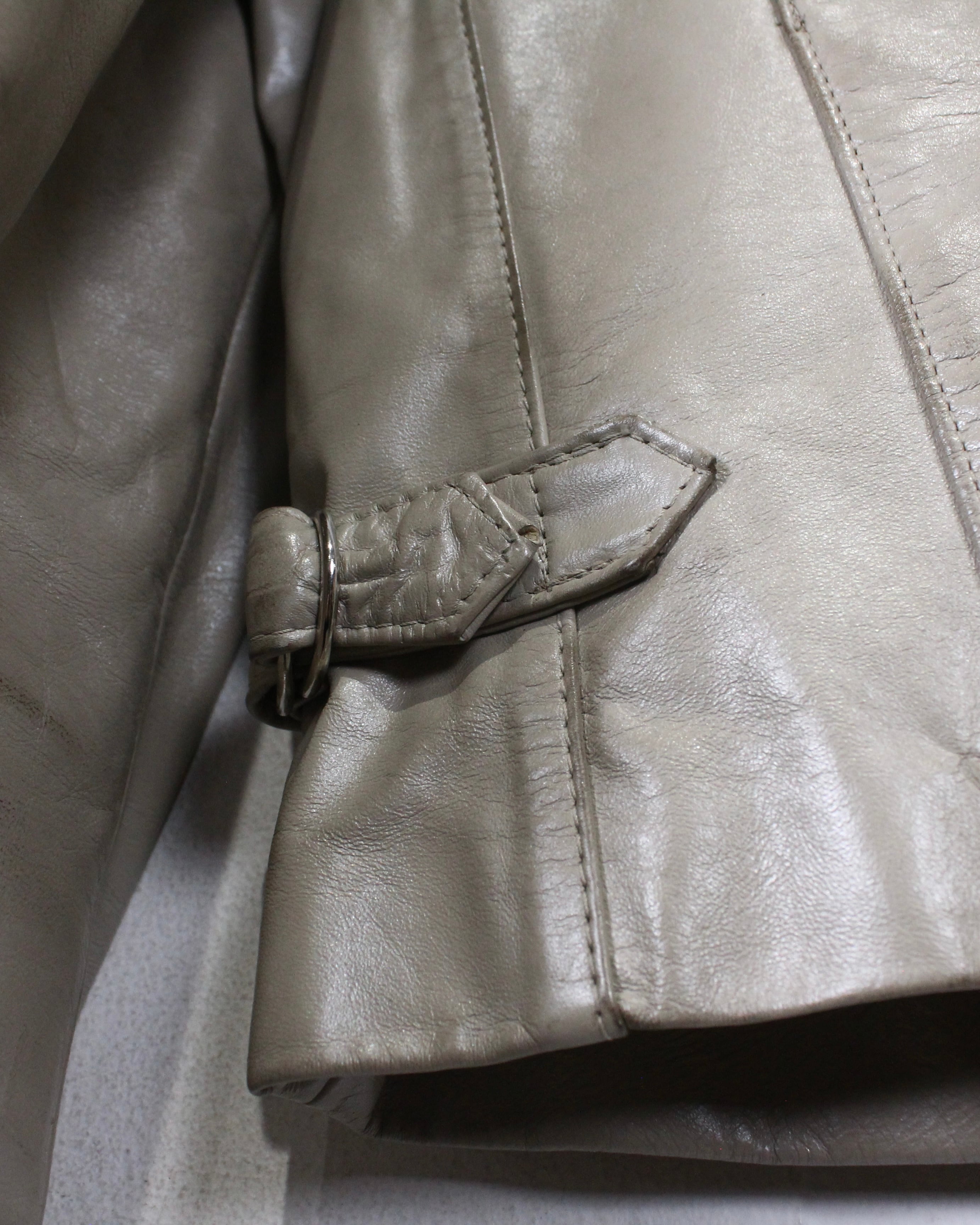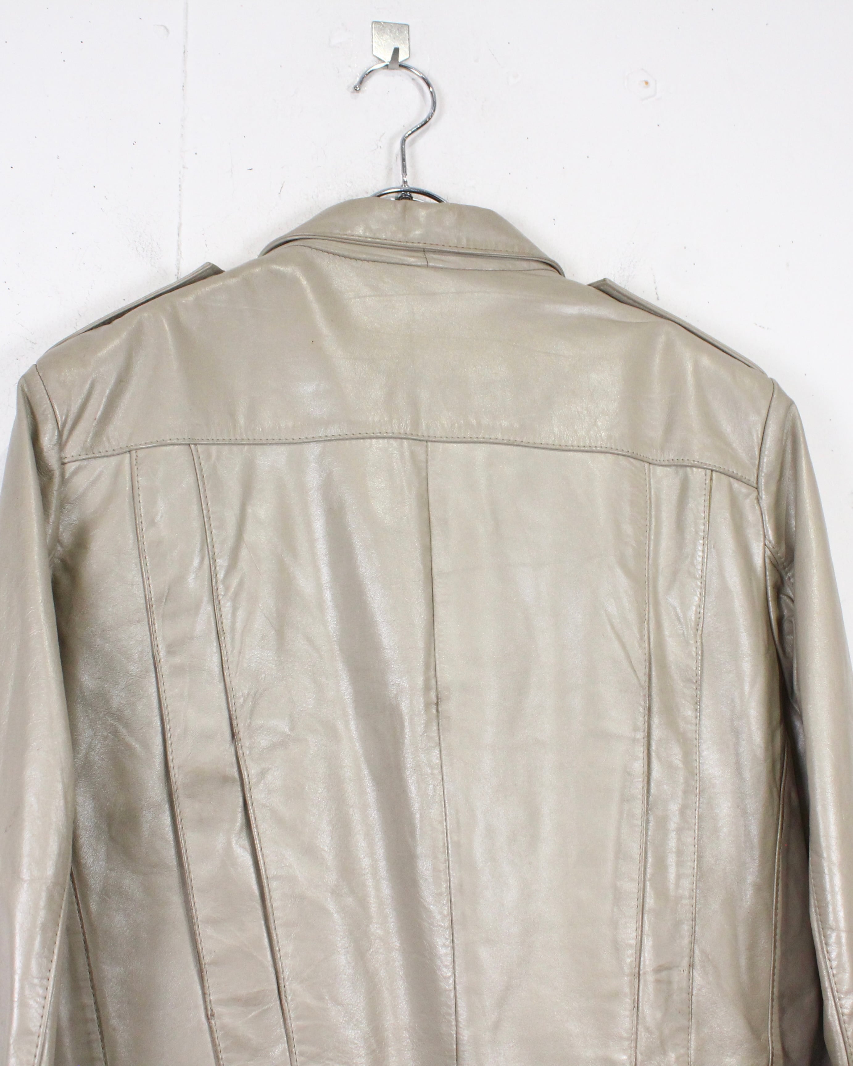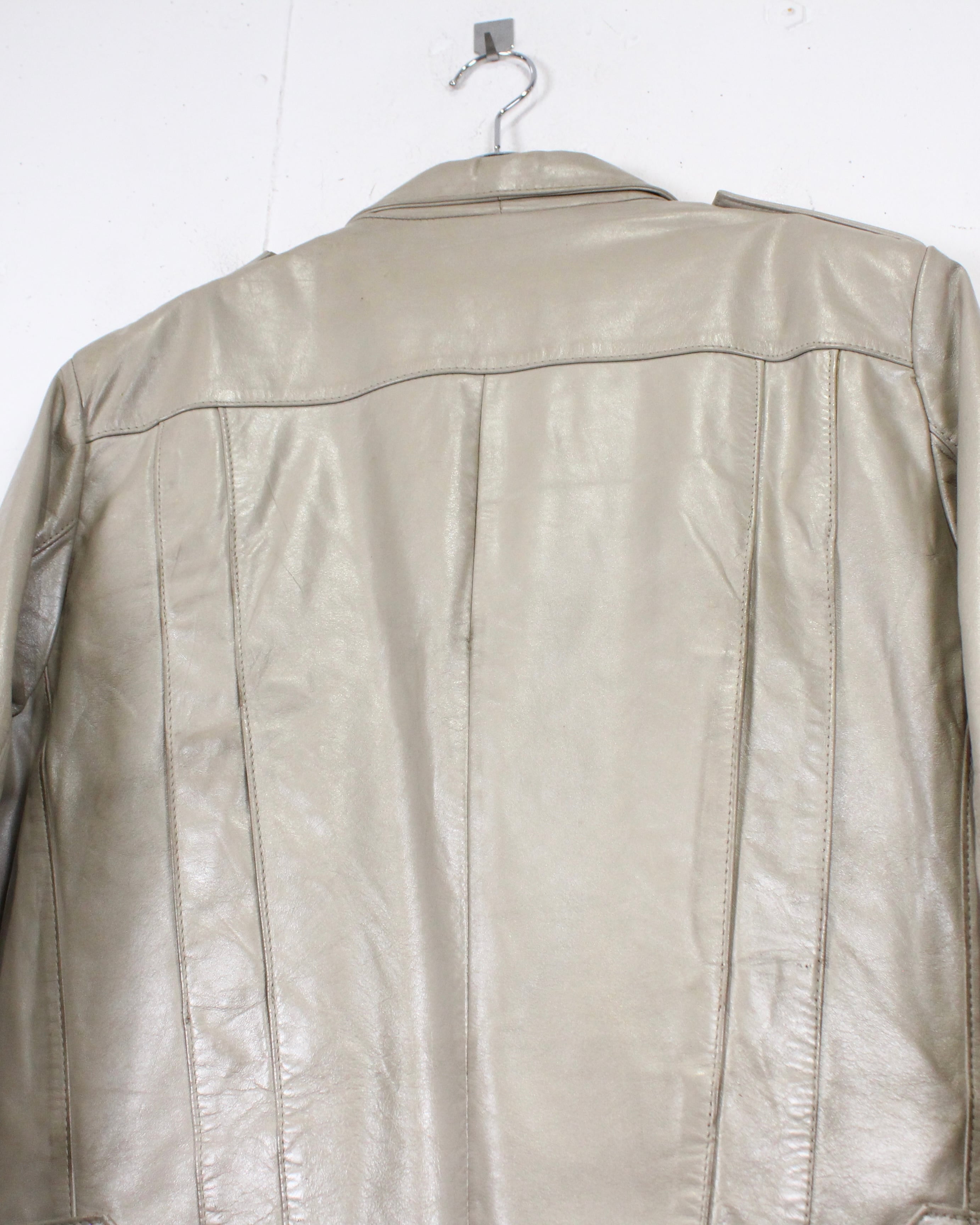 レザー特有の重厚さをしっかり残しながらも、パールホワイトならではの柔らかな発色が加わることで、無骨さとラグジュアリーさが自然に合わさった1着に仕上がっています。