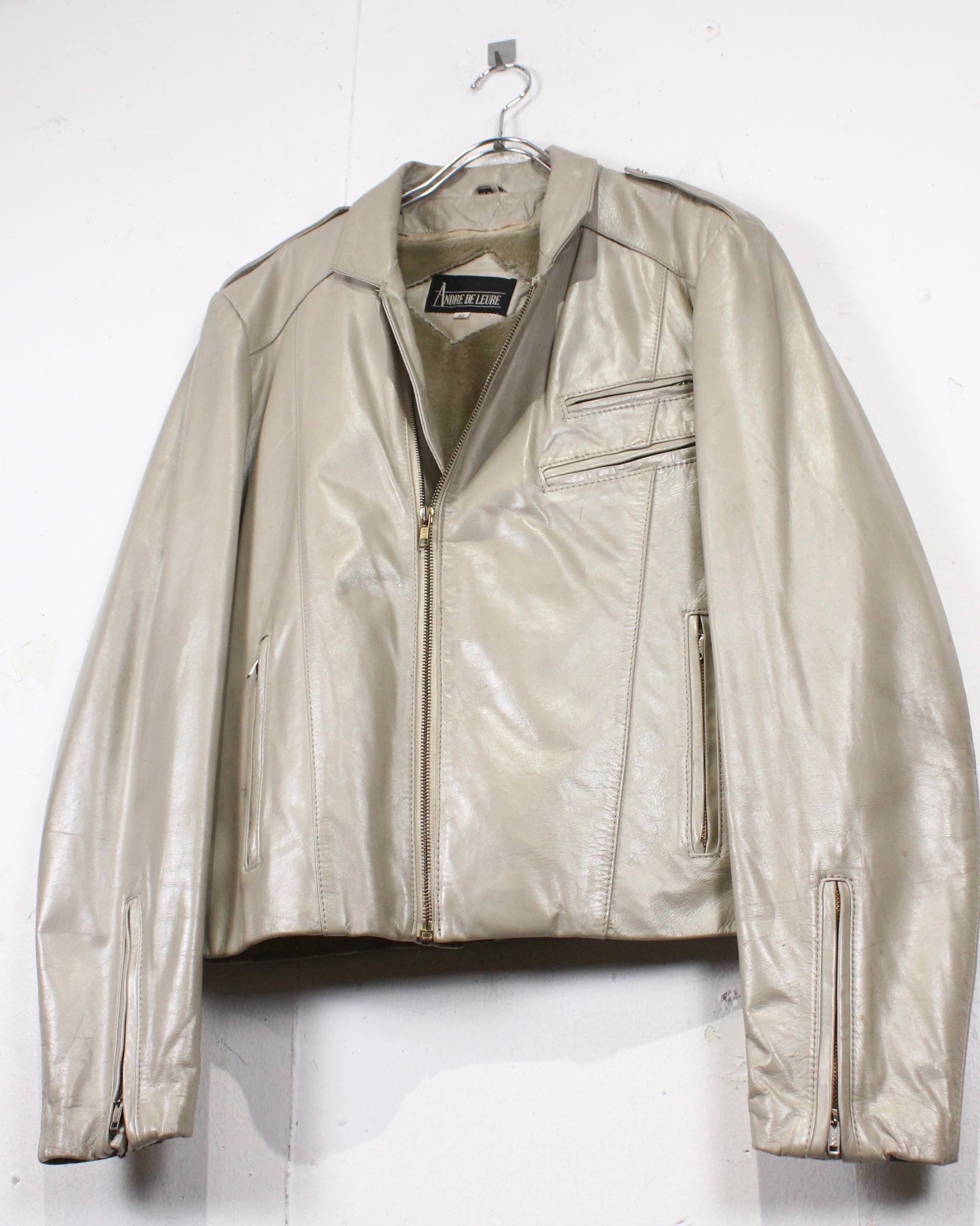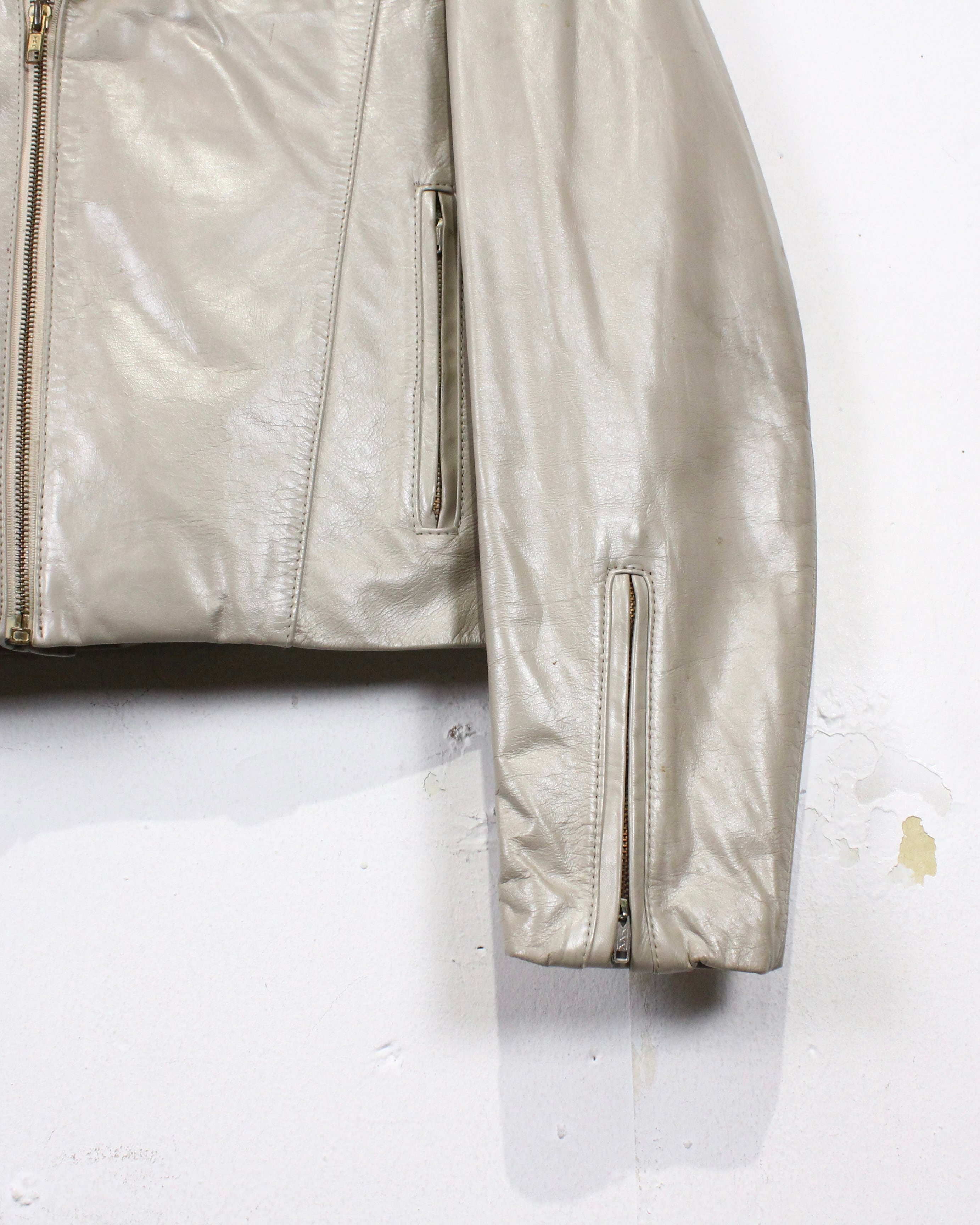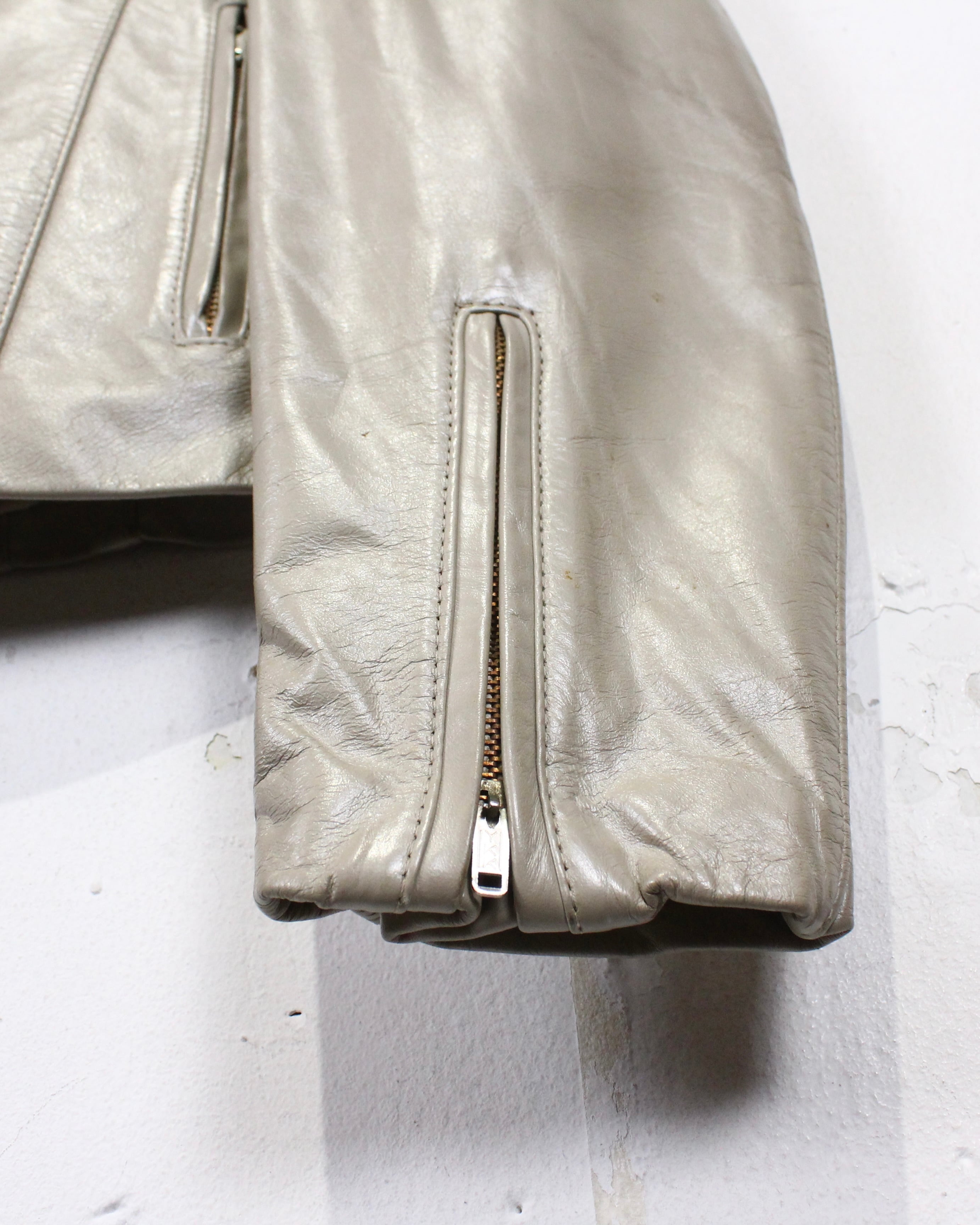 光沢のある艶やかなパールホワイトレザーを用いたダブルライダースジャケット。