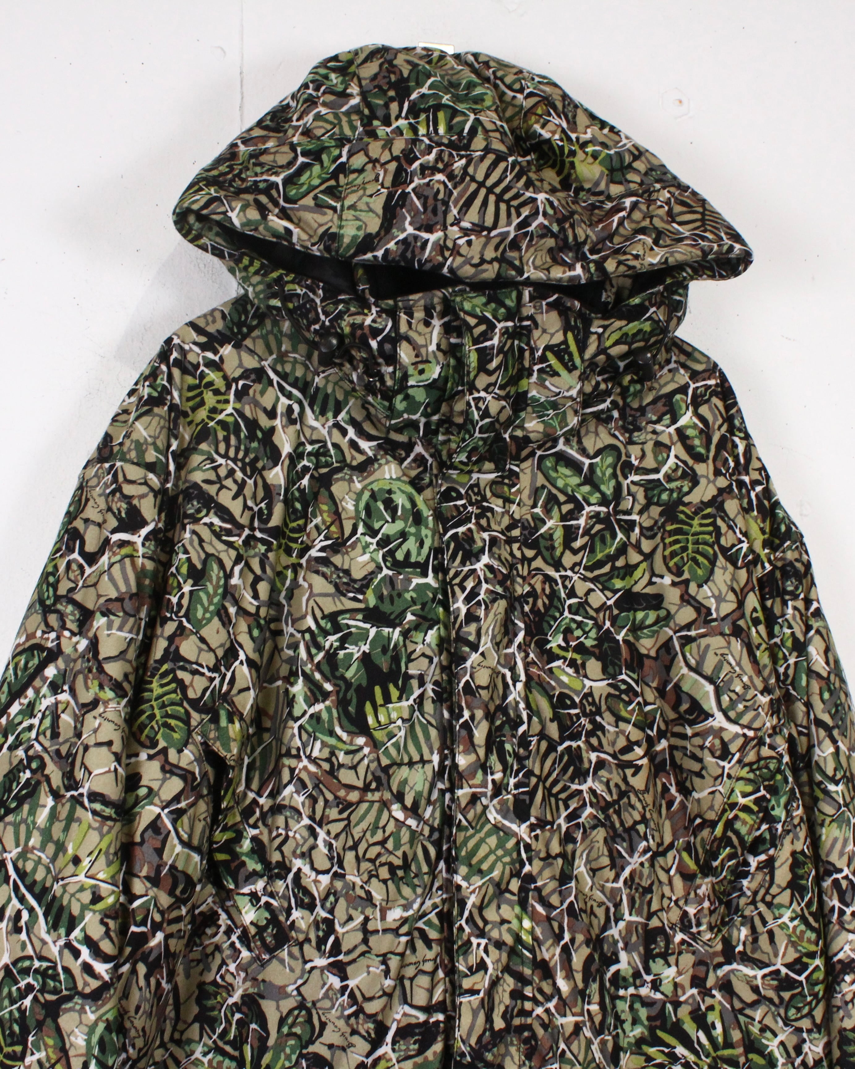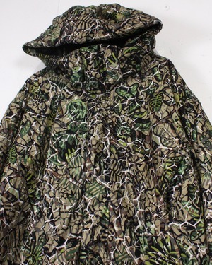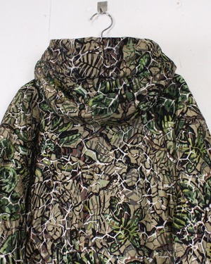シャリ感のあるタフなファブリックを用い、全面にリアルツリーカモ柄を落とし込んだフーディジャケット。