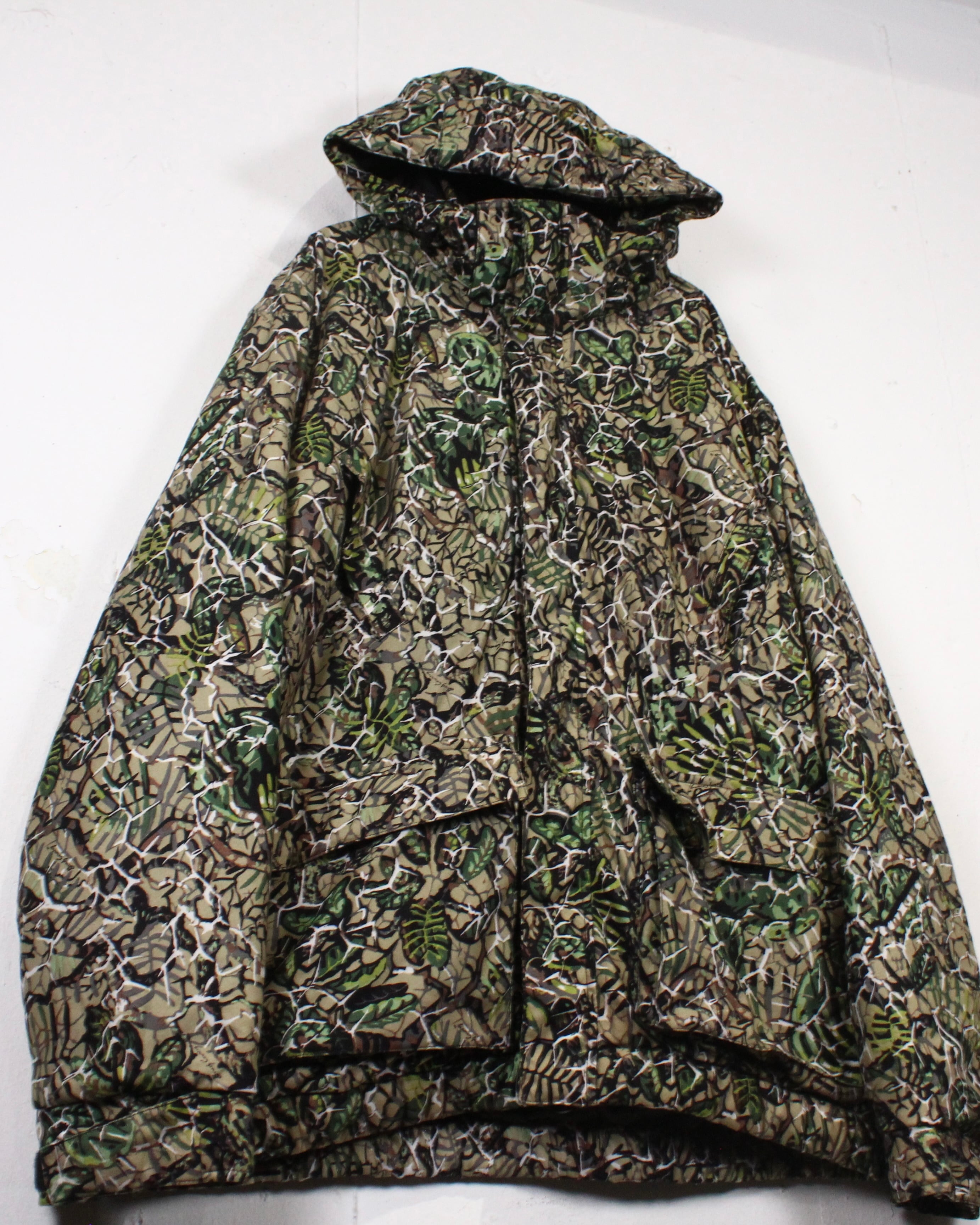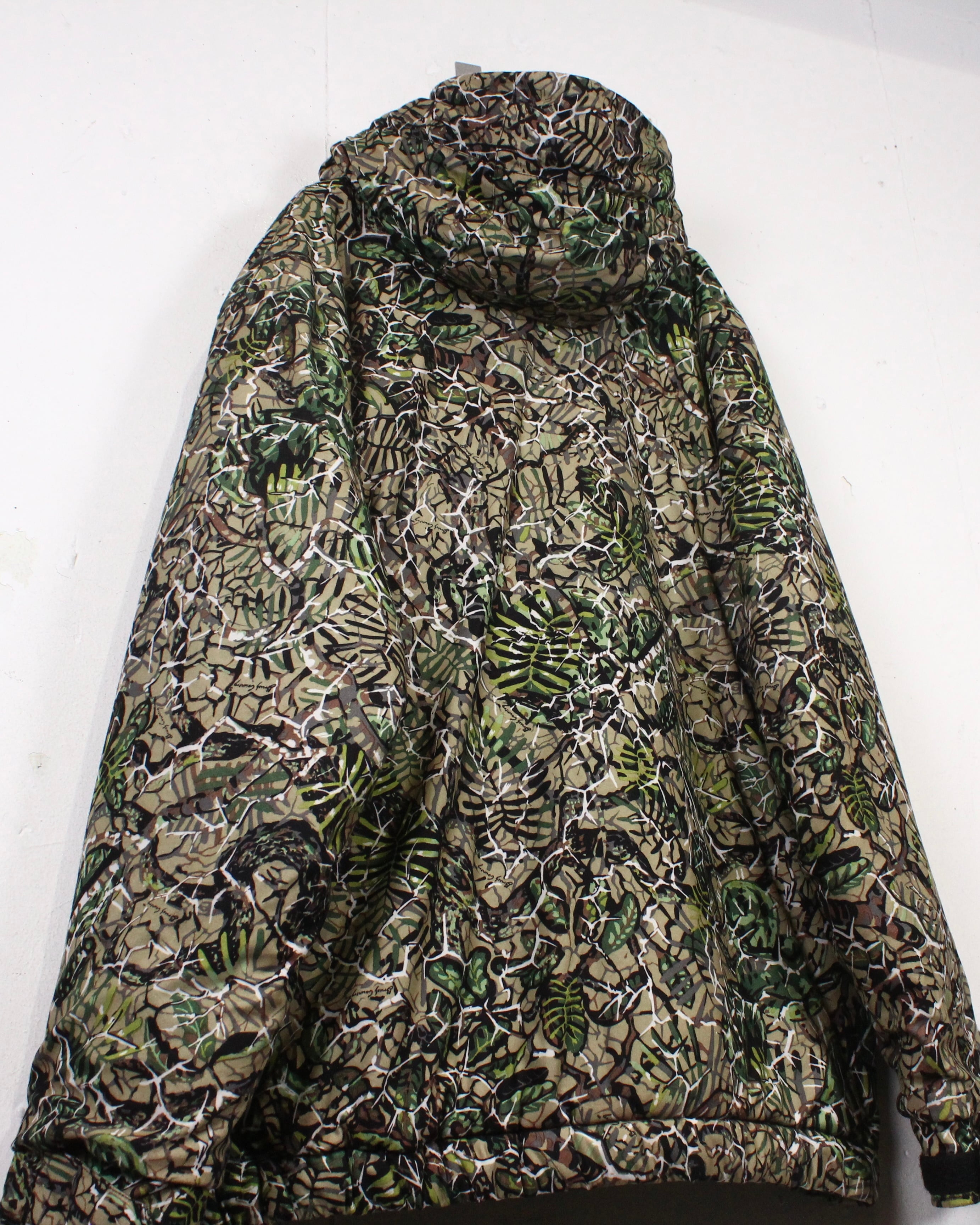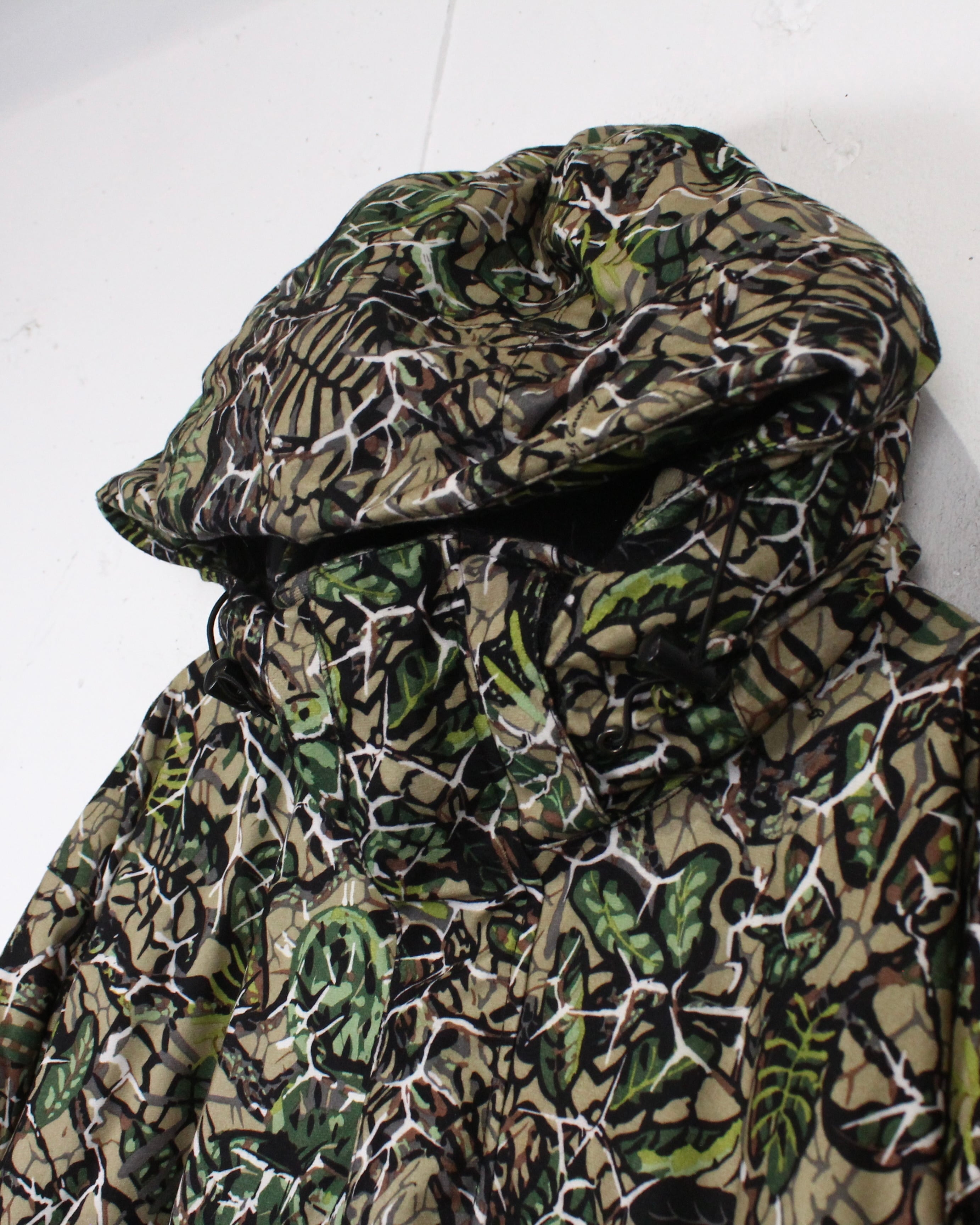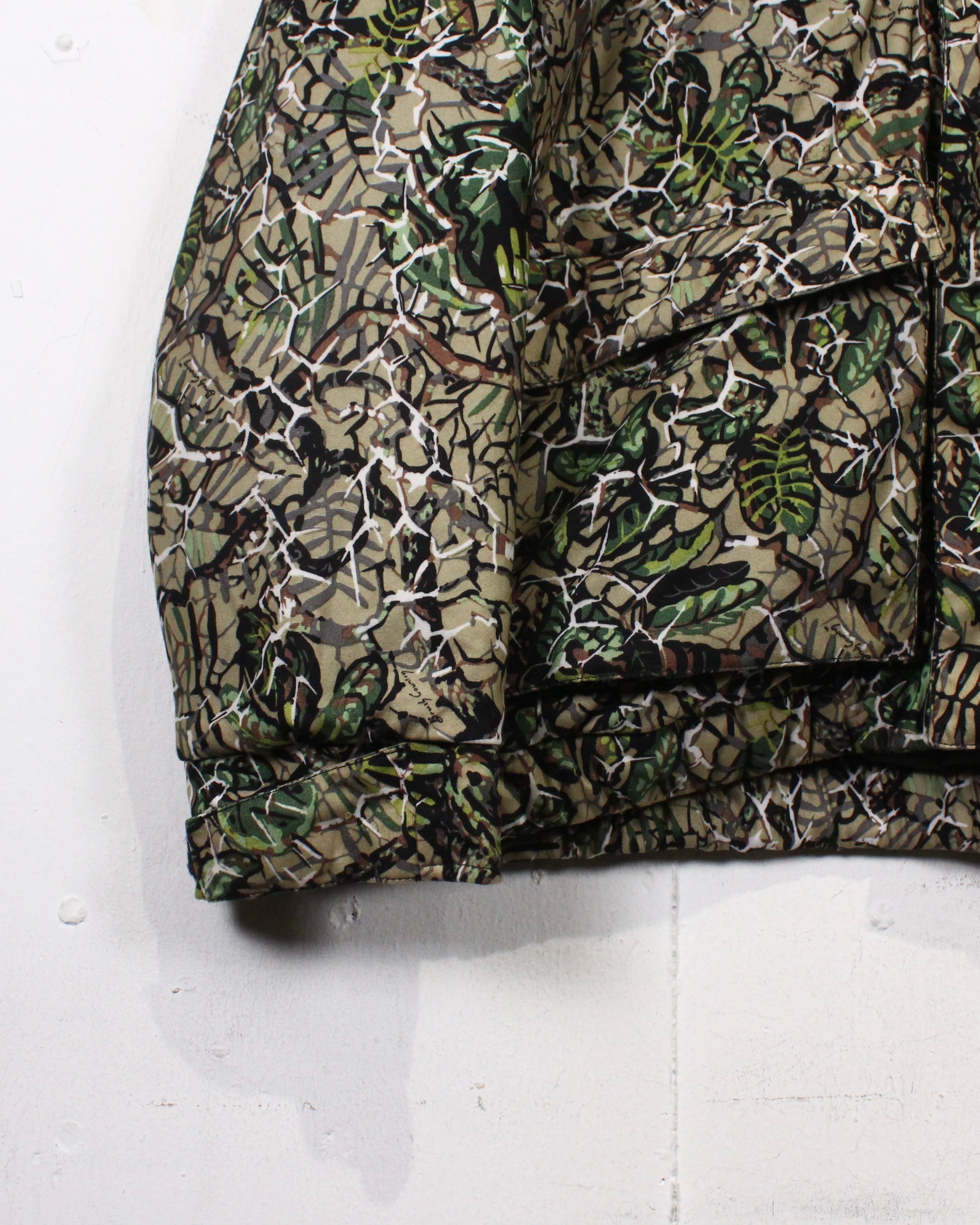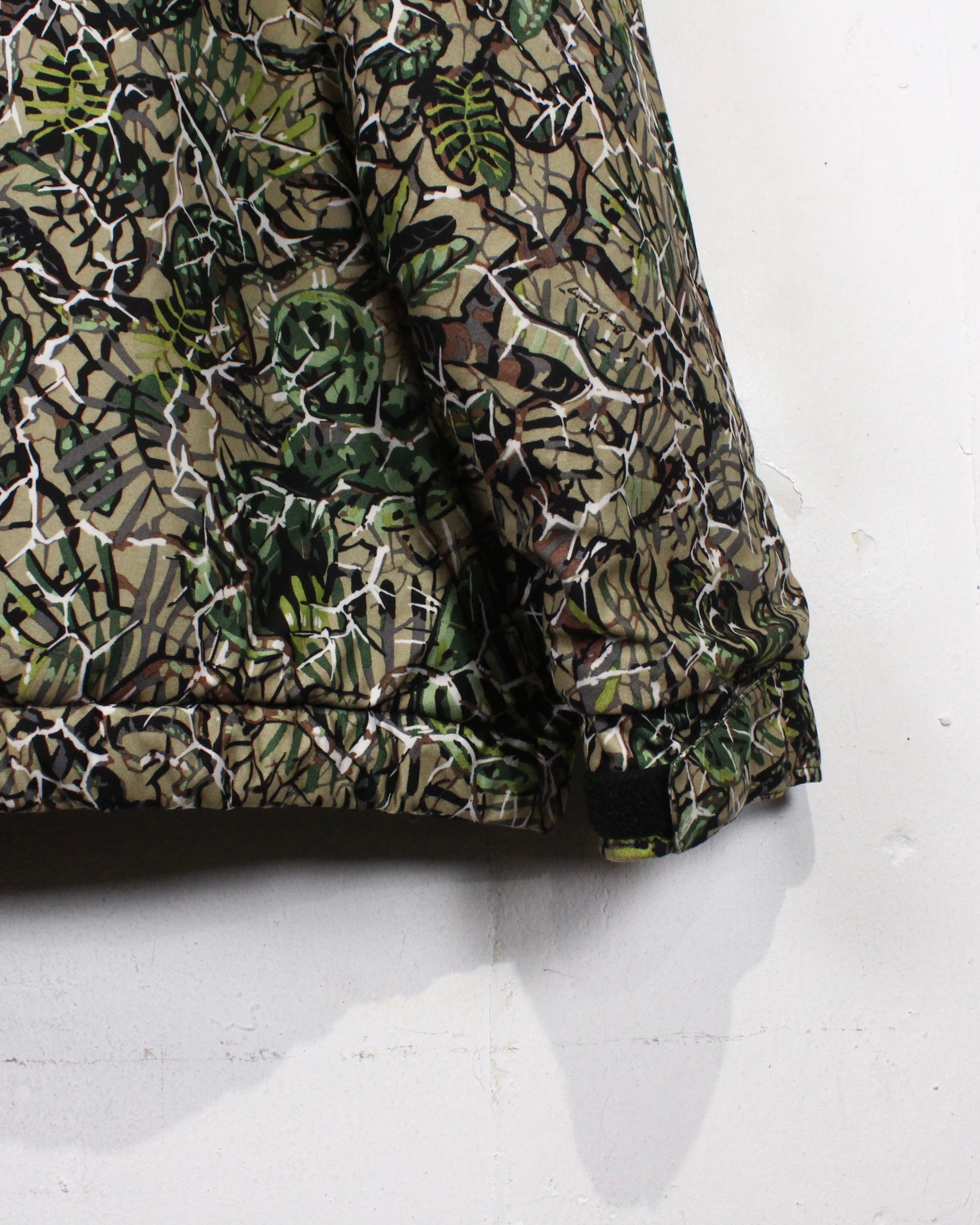 一見ハードな印象ながら、複雑に重なり合うリーフモチーフとカモフラージュパターンによって、奥行きのある表情に仕上げられた1着。アウトドア由来の柄使いでありながら、ファッションとして成立するバランス感が非常に魅力的です。