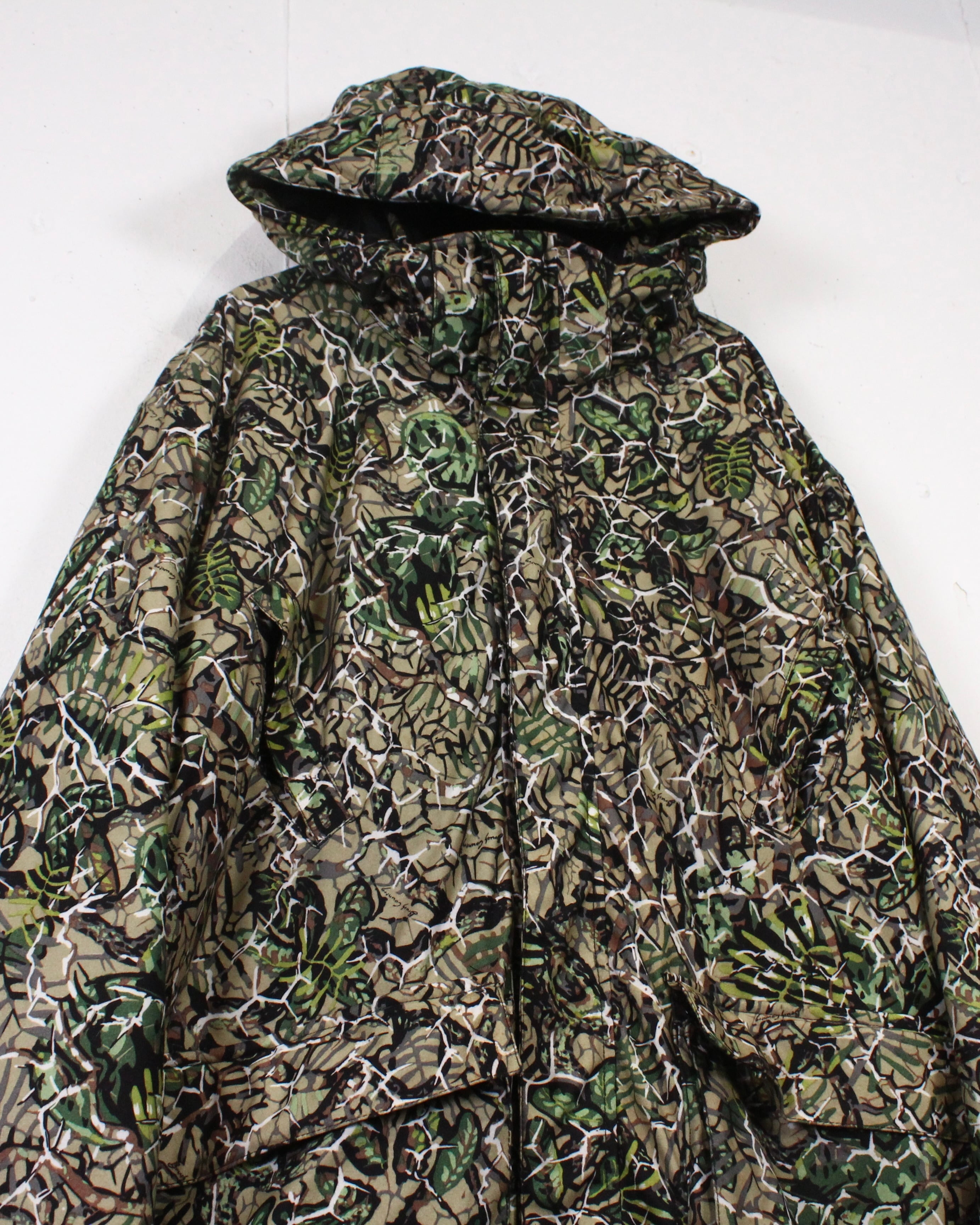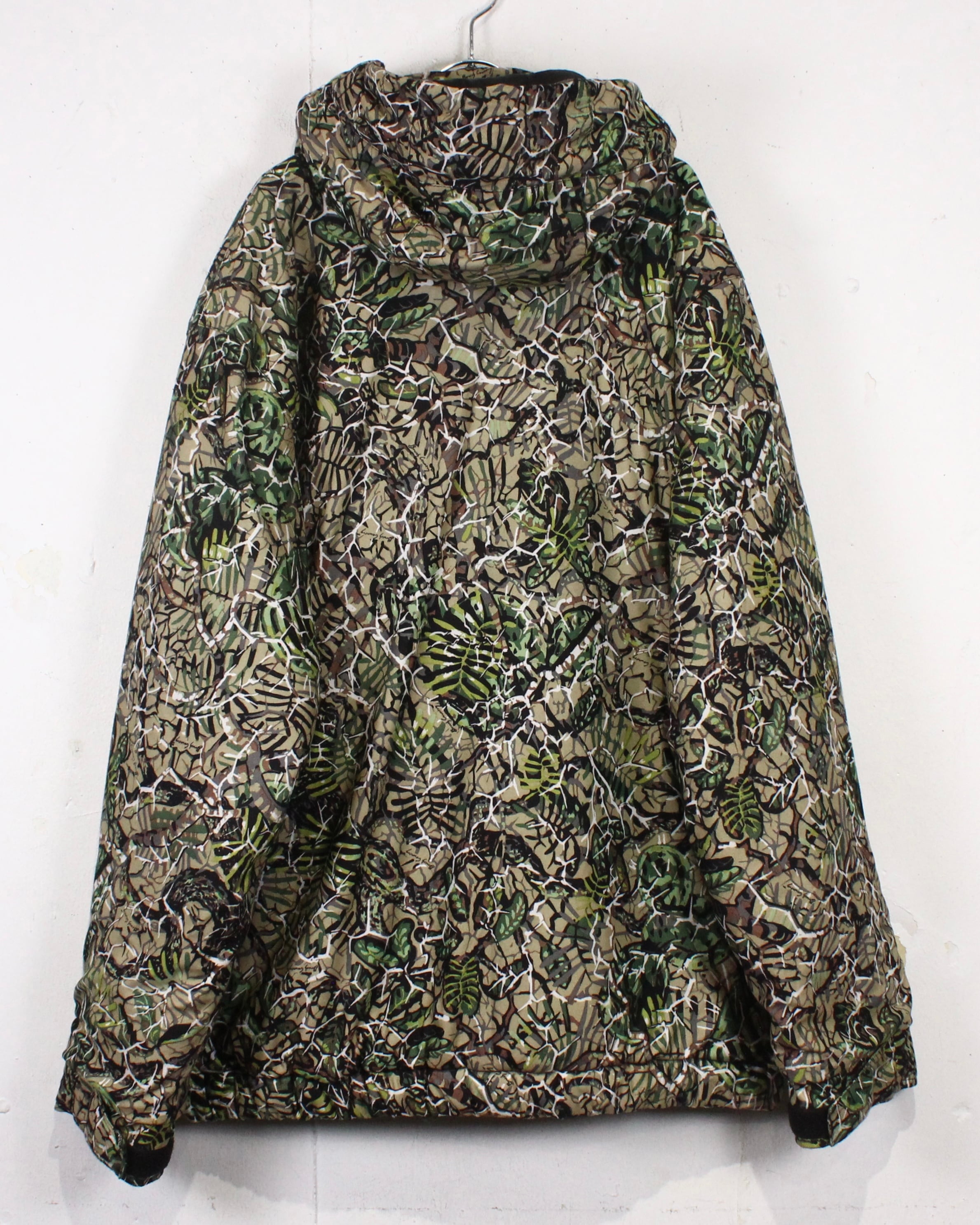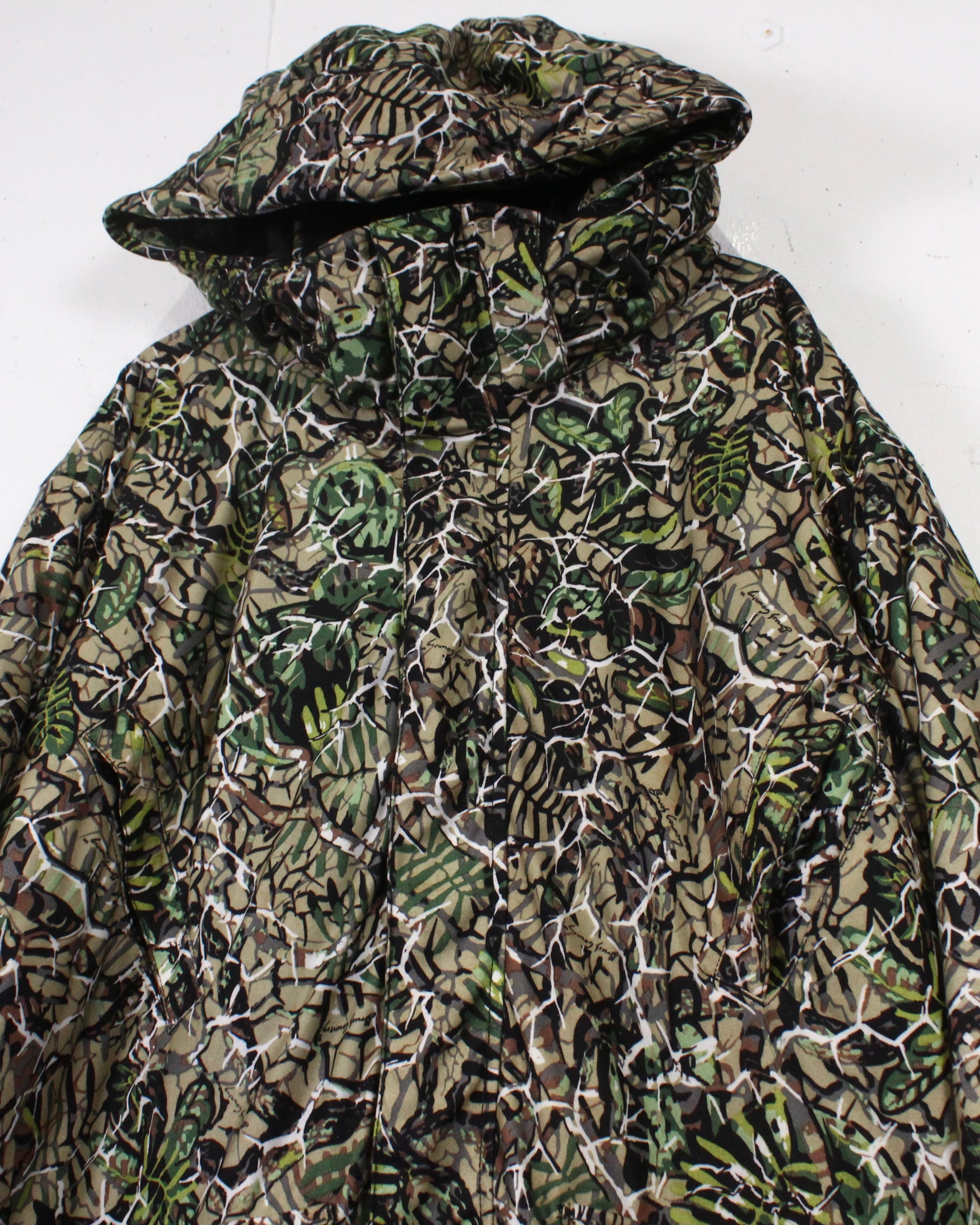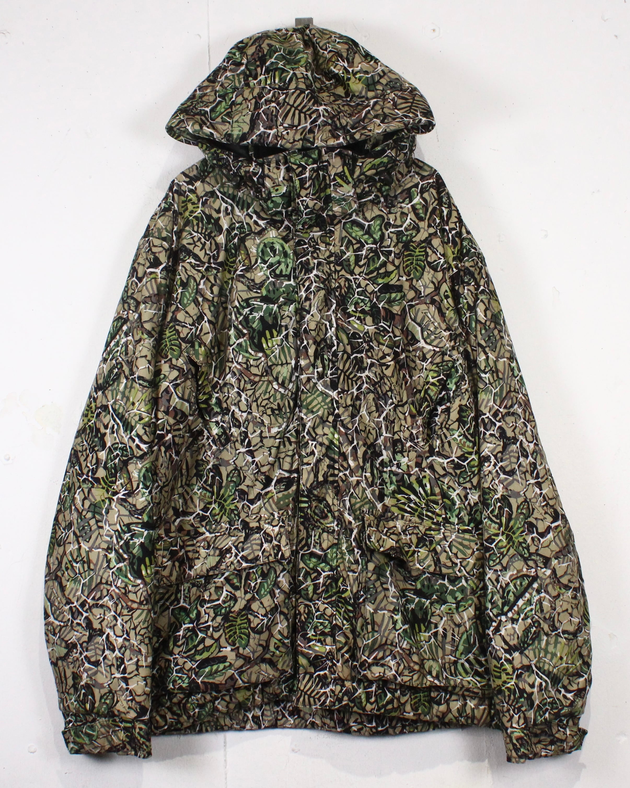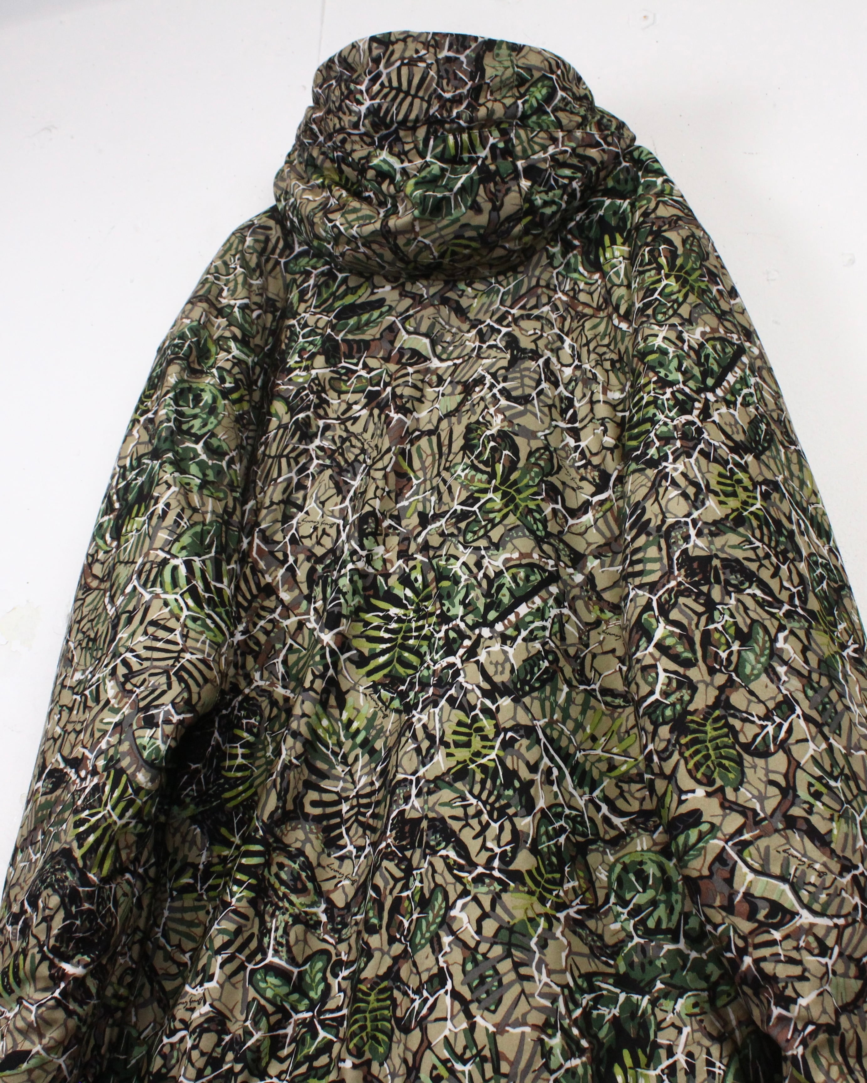 一見ハードな印象ながら、複雑に重なり合うリーフモチーフとカモフラージュパターンによって、奥行きのある表情に仕上げられた1着。アウトドア由来の柄使いでありながら、ファッションとして成立するバランス感が非常に魅力的です。