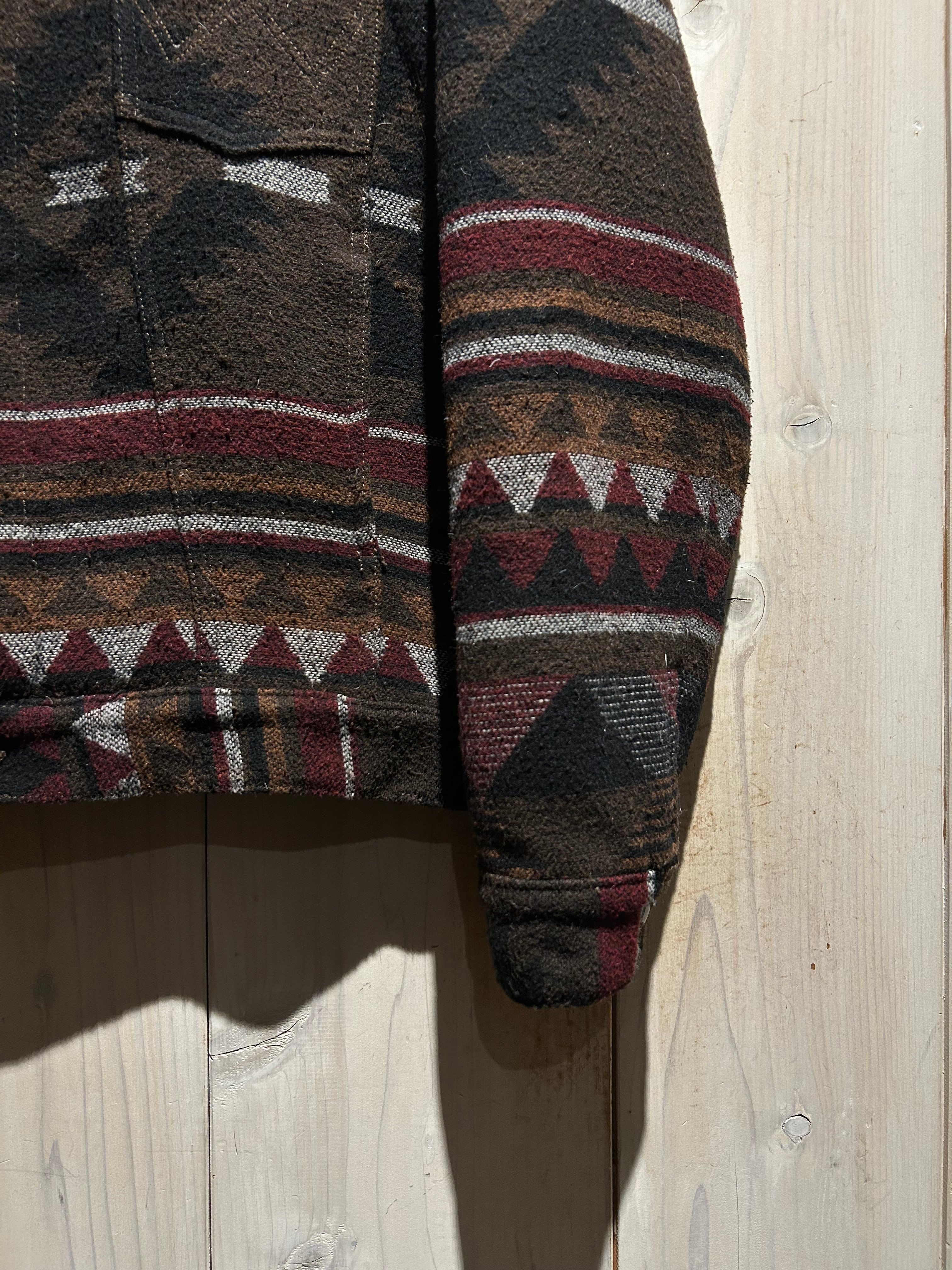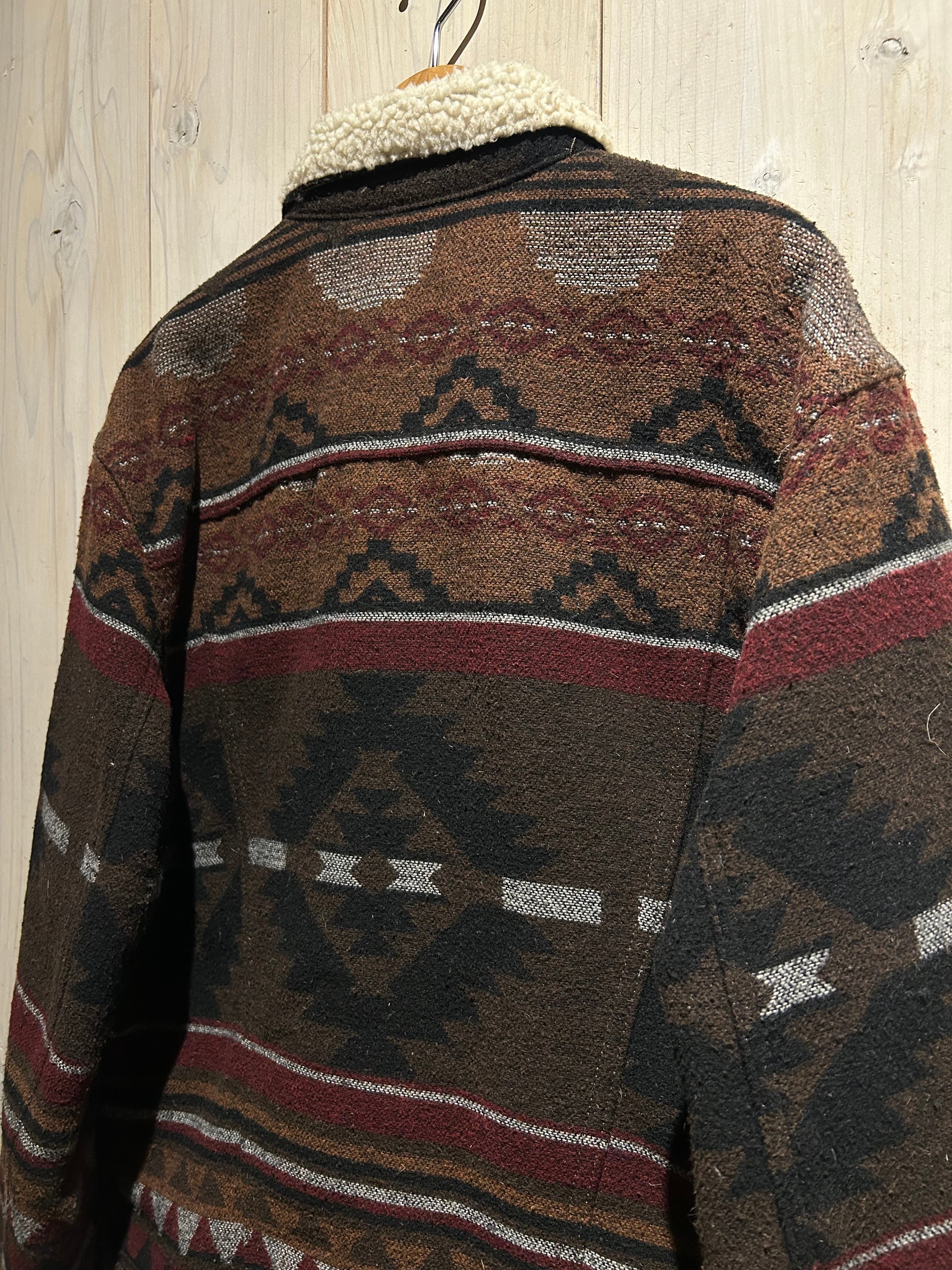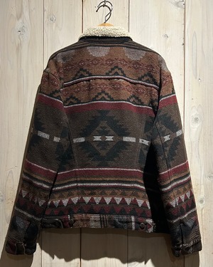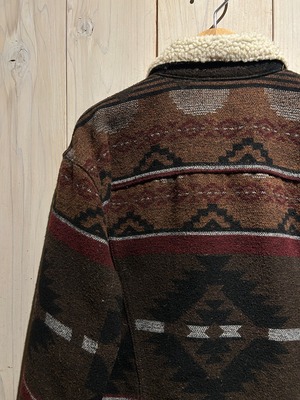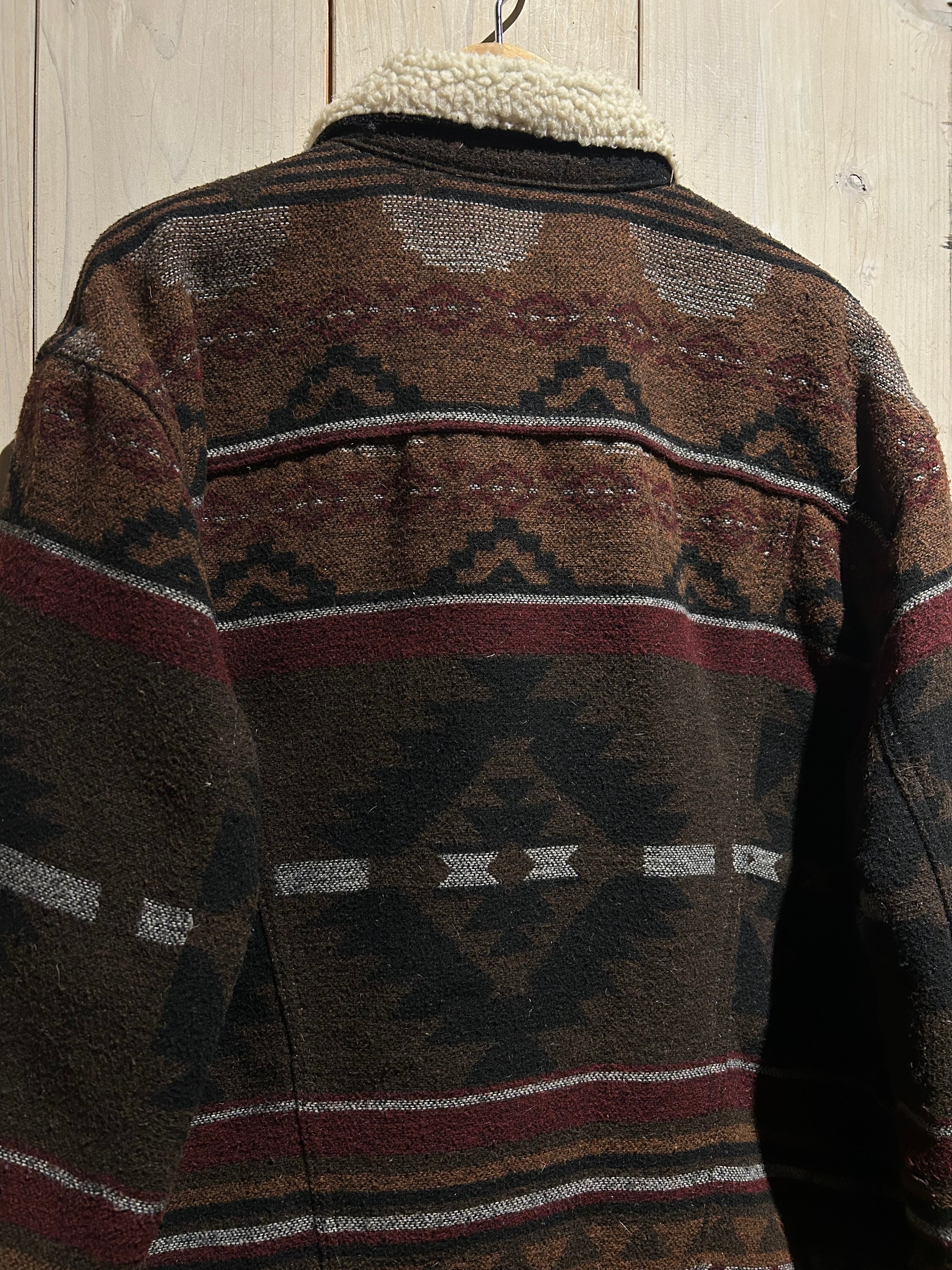 ボディには、ブラウンやボルドー、ブラックを軸にしたネイティブ調の織り柄を採用。プリントではなく織りで表現されたパターンのため奥行きがあり、近くで見た時の表情の豊かさが魅力です。