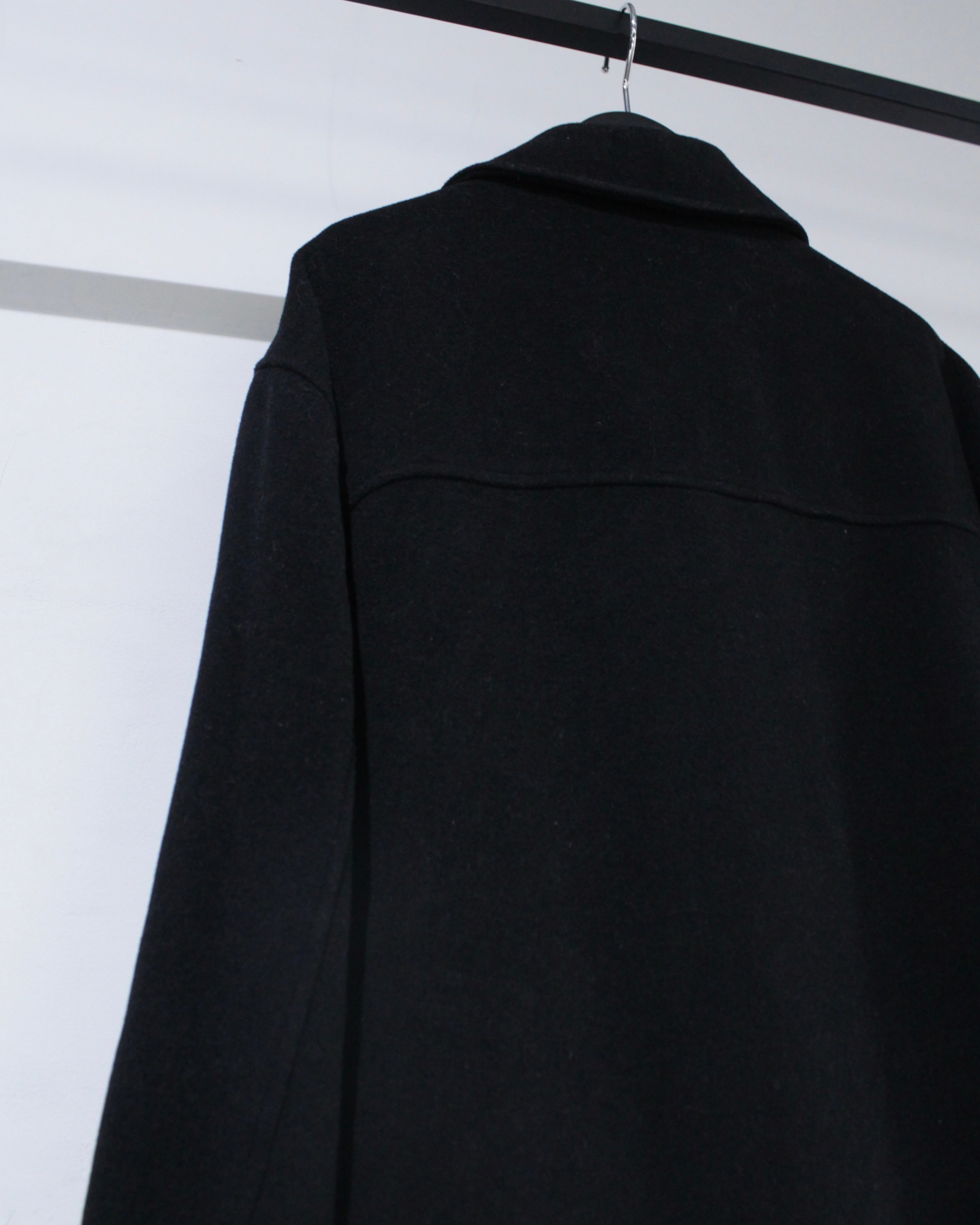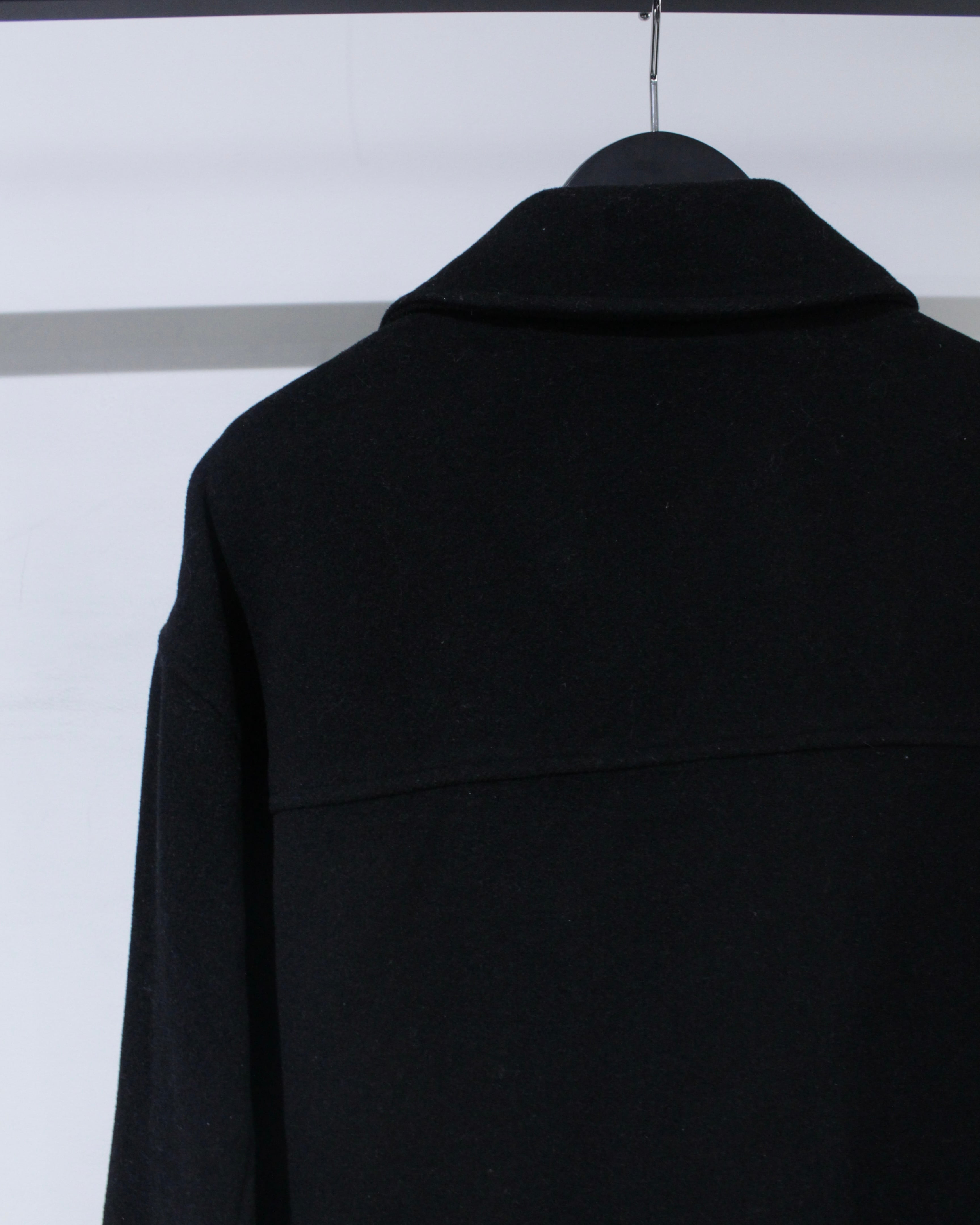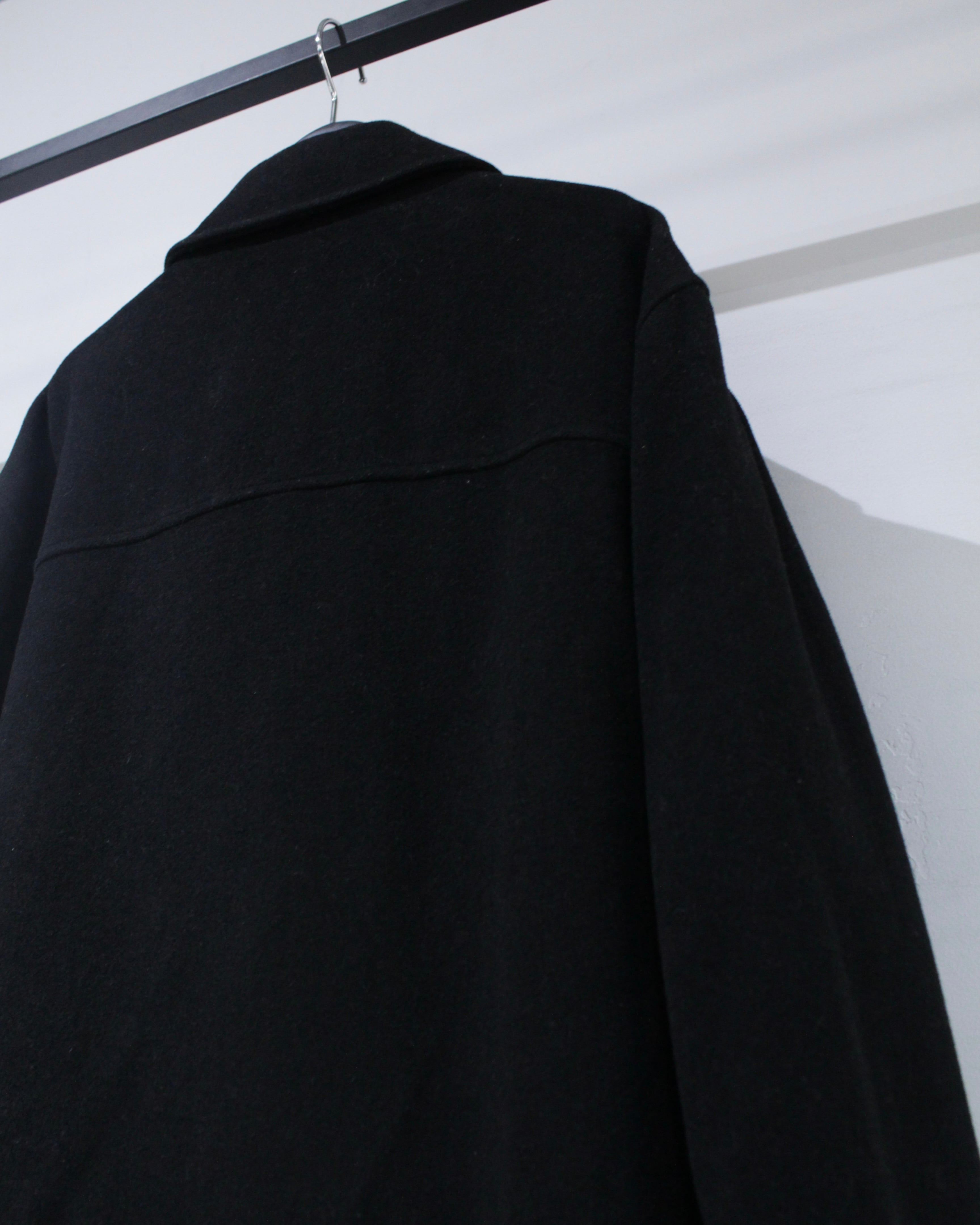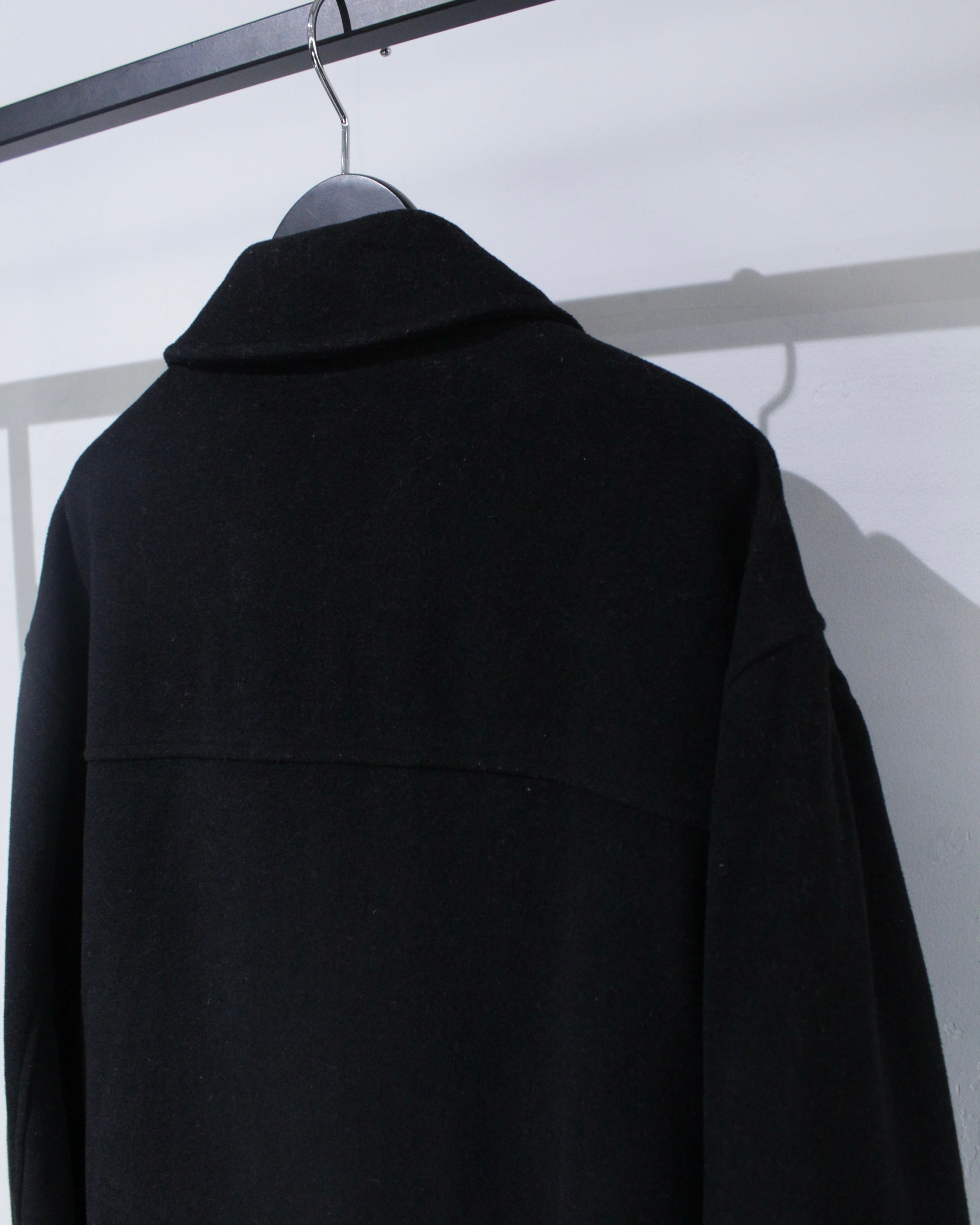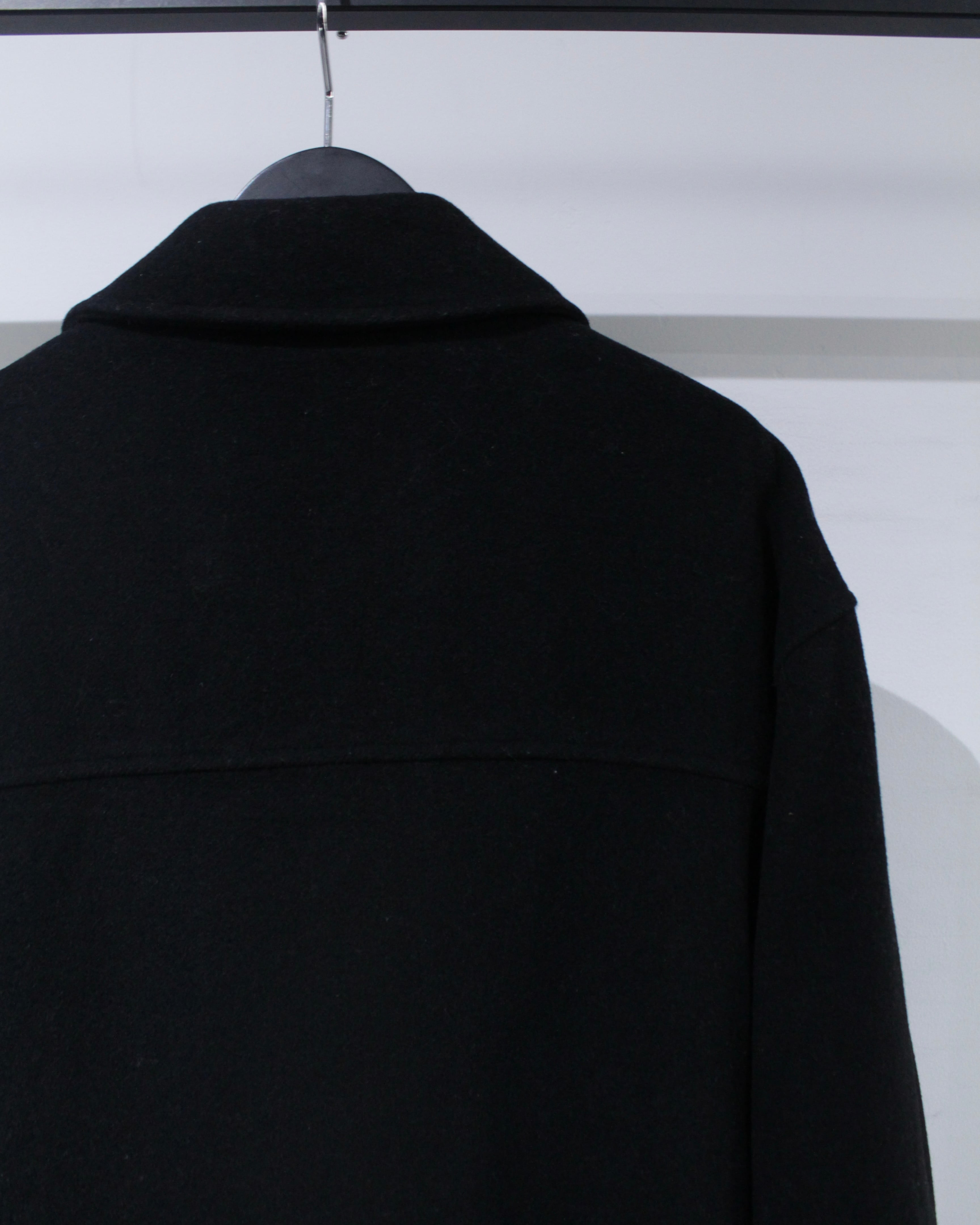 ミニマルなデザインと洗練された空気感が魅力の、ブラックウールジャケット。