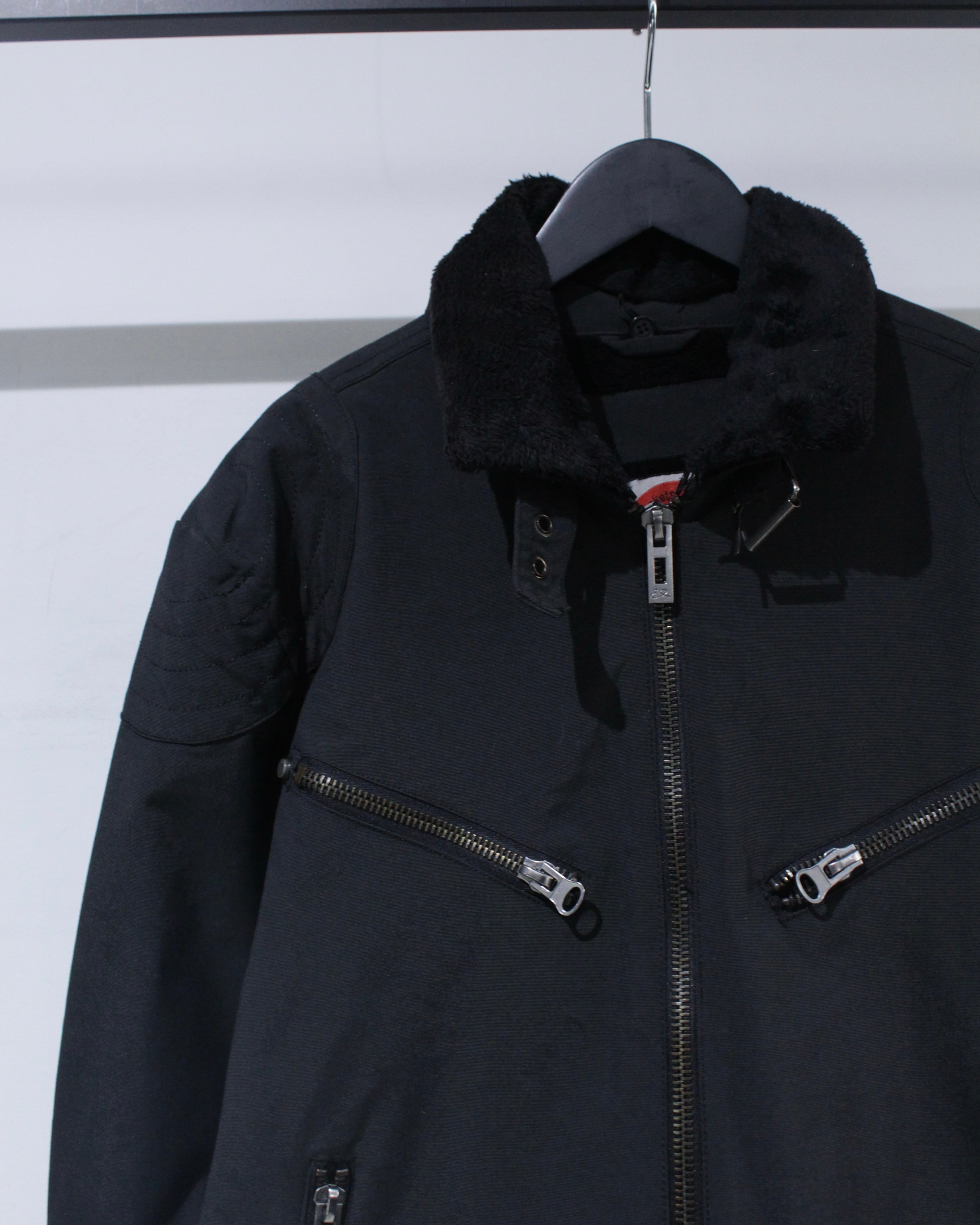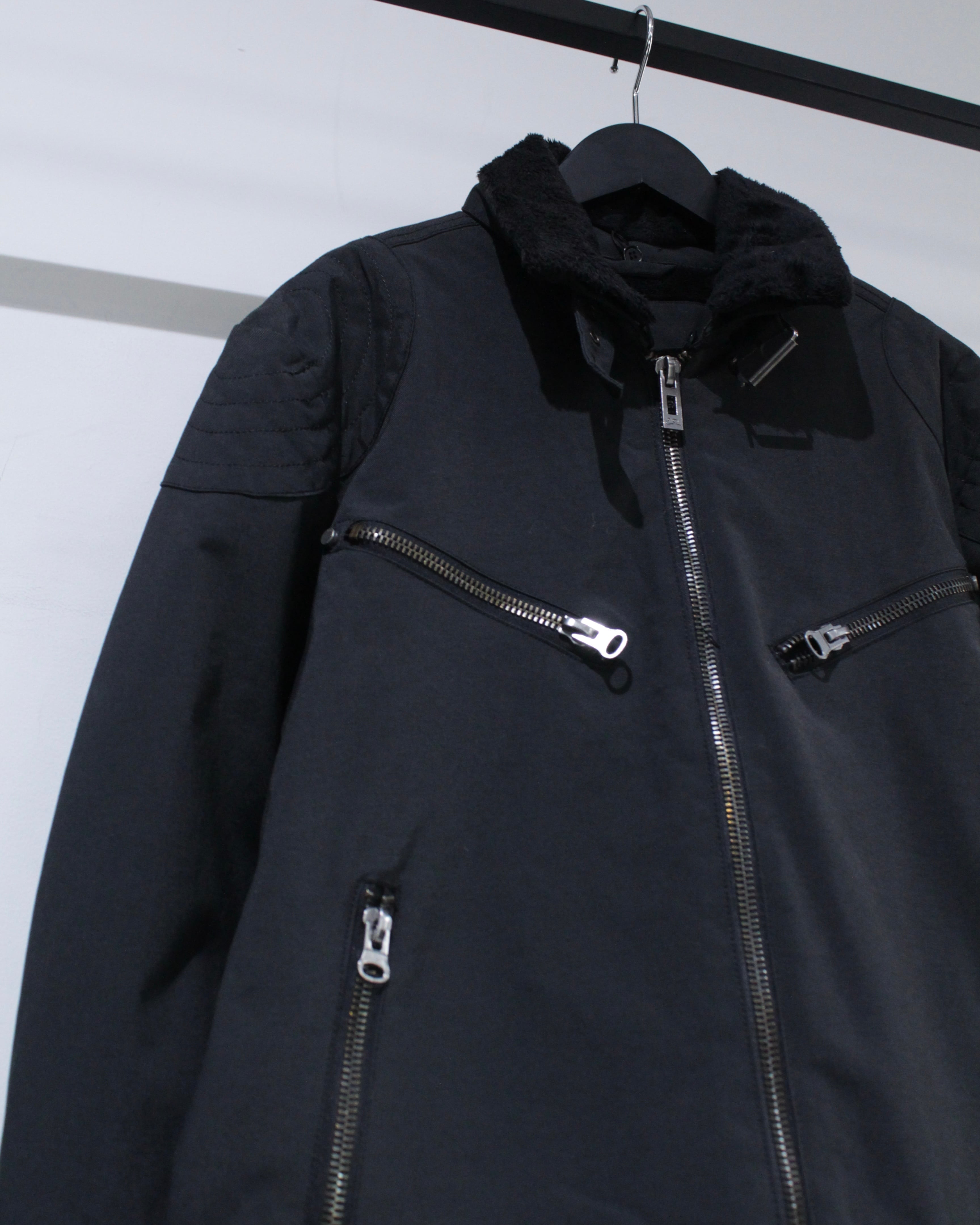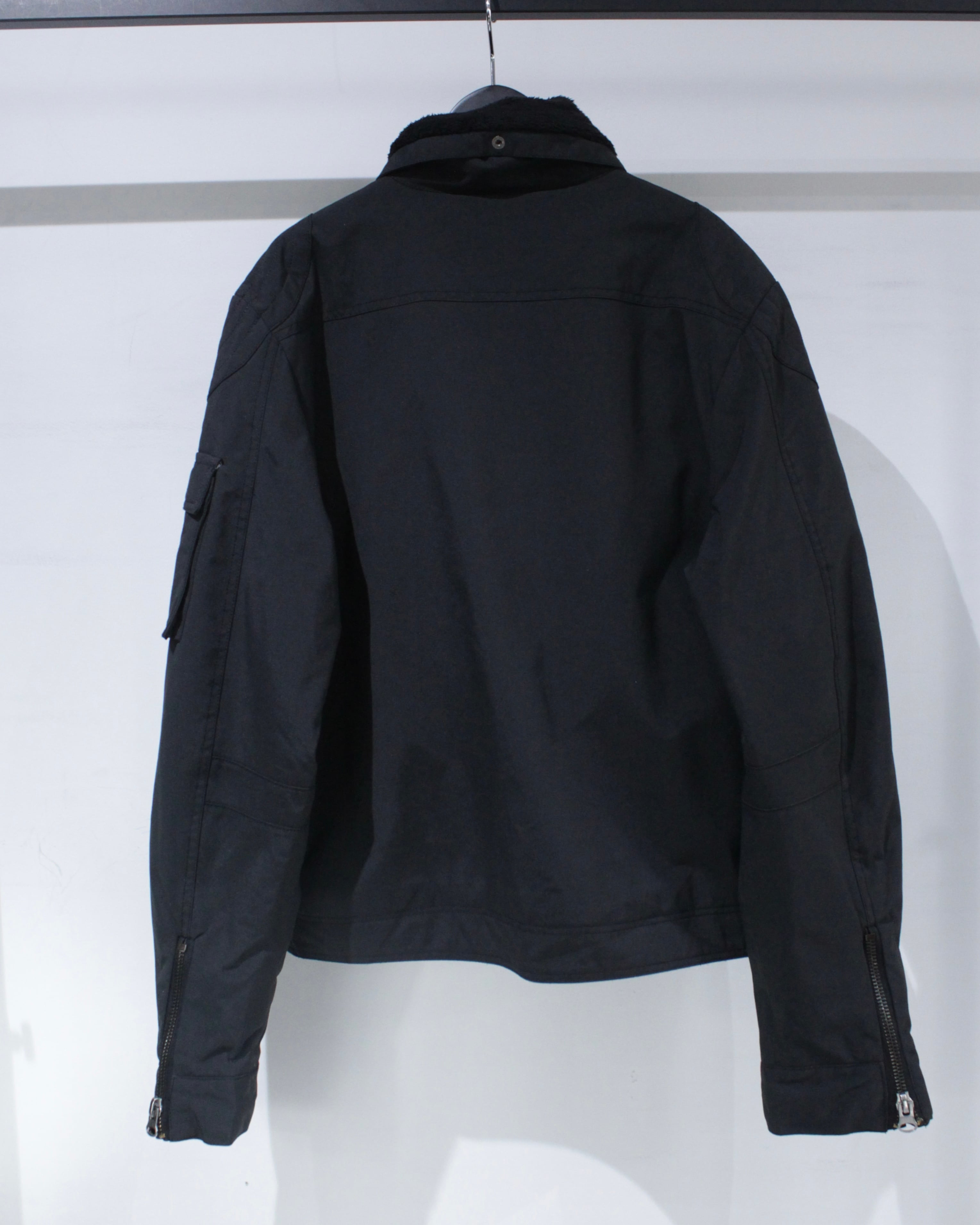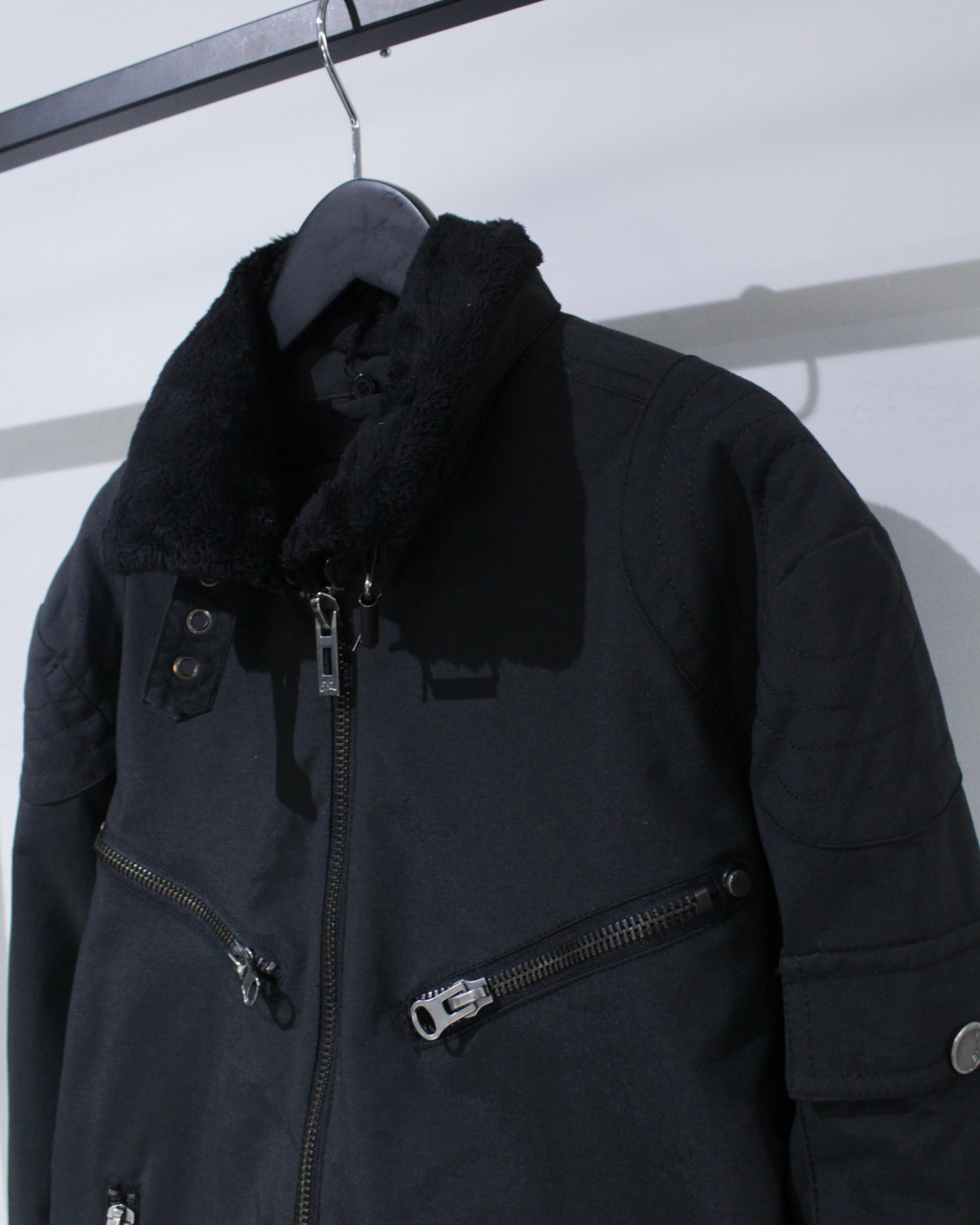 ミリタリーのフライトジャケットをデザインソースにしたパデットジャケット。