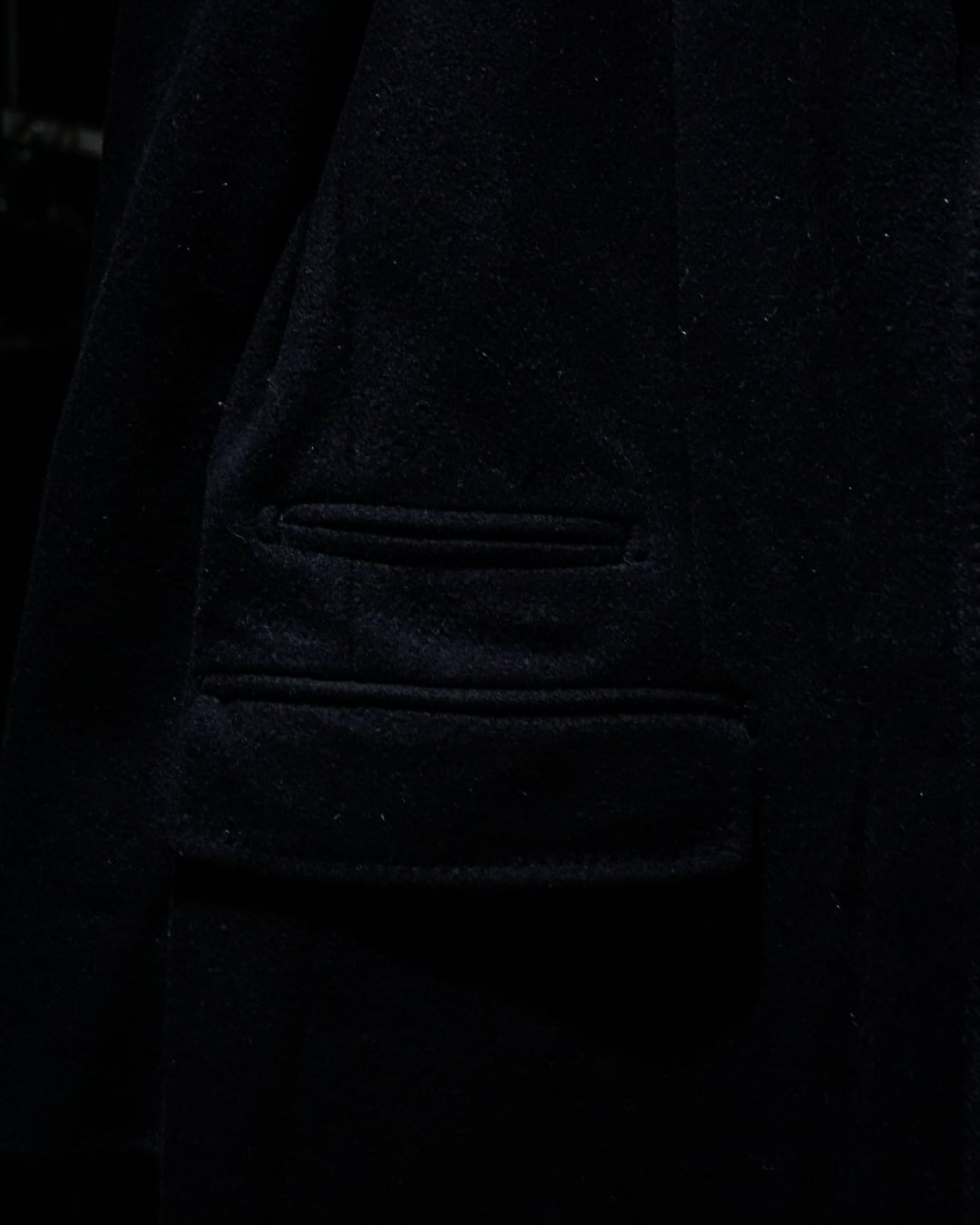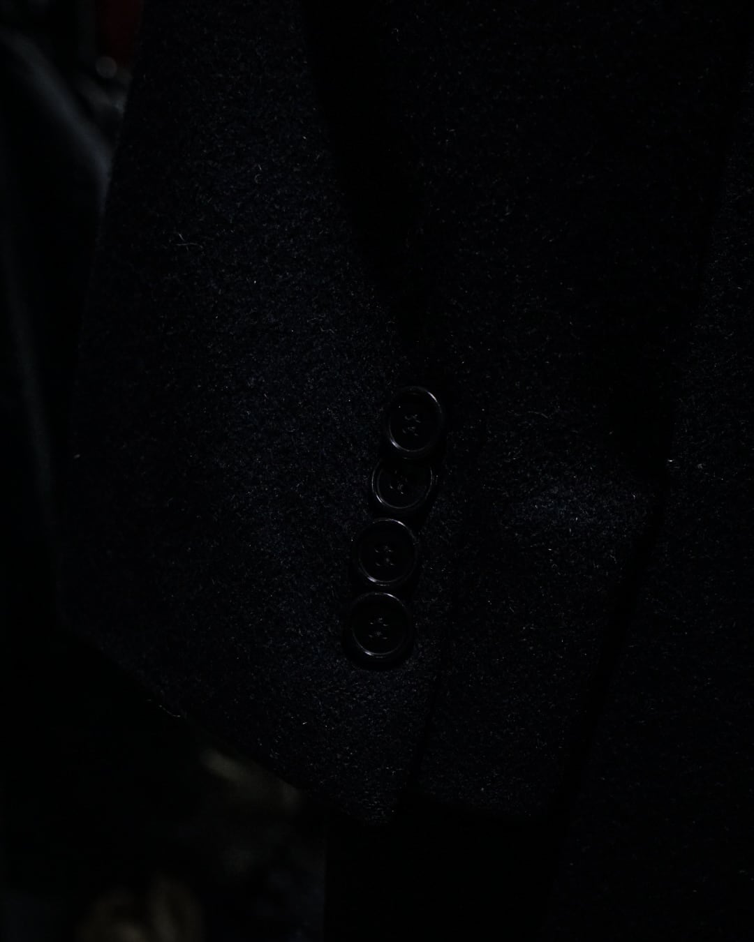 美しいシルエットに、艶やかな微光沢を帯びたカシミヤ素材を掛け合わせた1着。動きに合わせて表情を変える素材感が、ラグジュアリーな空気感をより一層引き立てます。