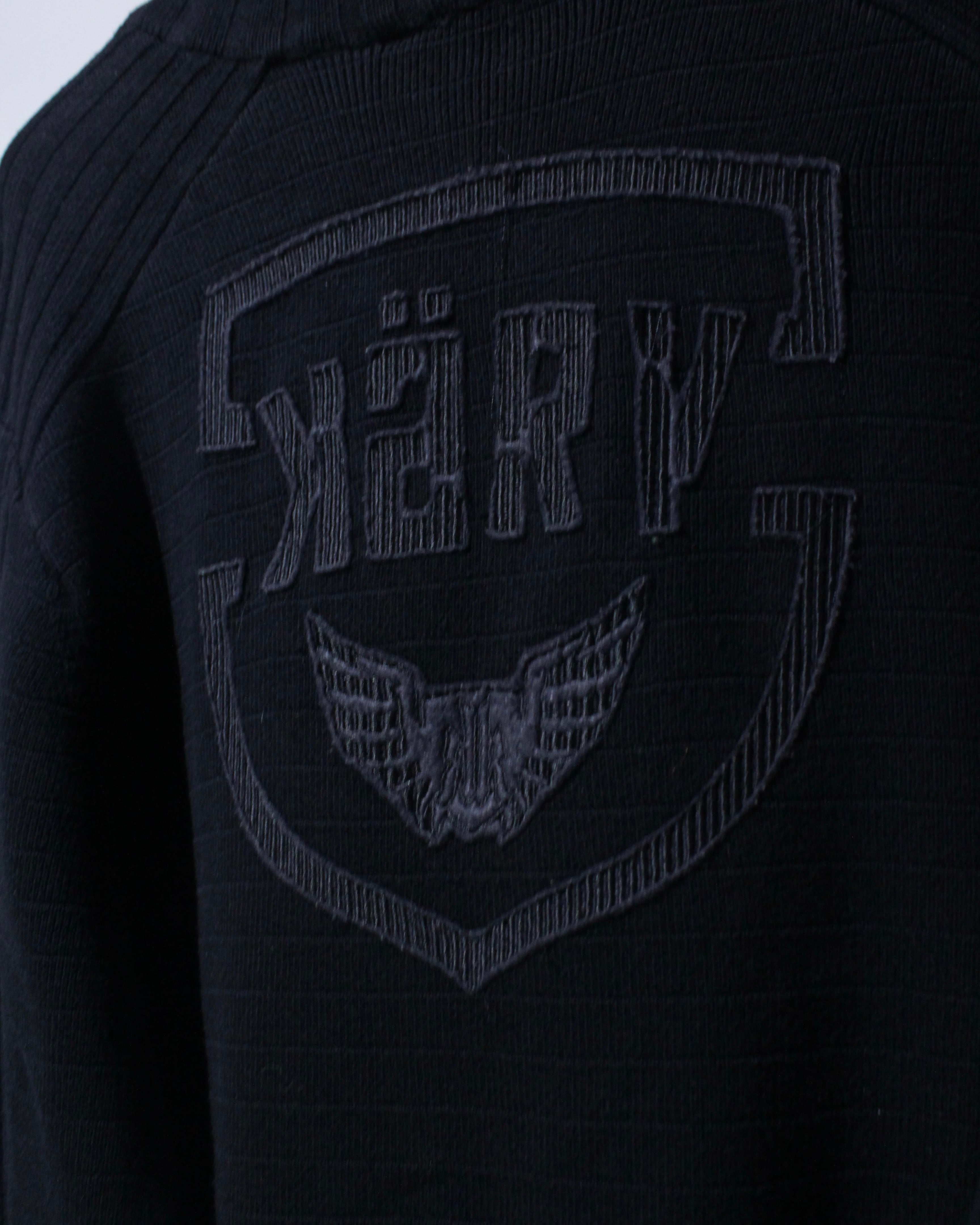 胸元にはウイングモチーフのパッチ、背面にはシールド型のロゴ刺繍を配置。主張しすぎないトーンながら、しっかりとブランドアイデンティティを感じさせるバランス感が◎ジップ付きポケットやリブの切り替えなど、細部まで作り込まれたディテールも見逃せません。