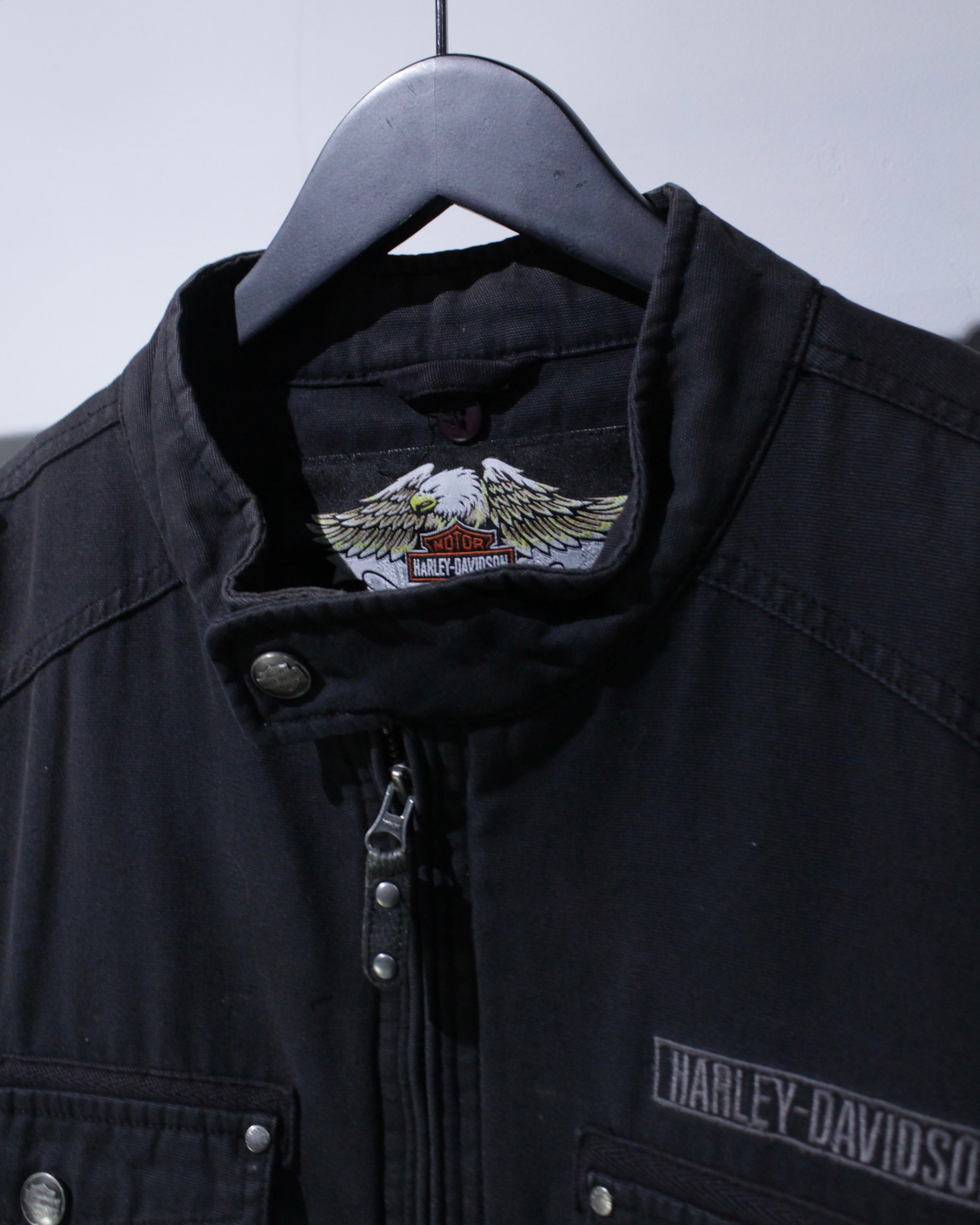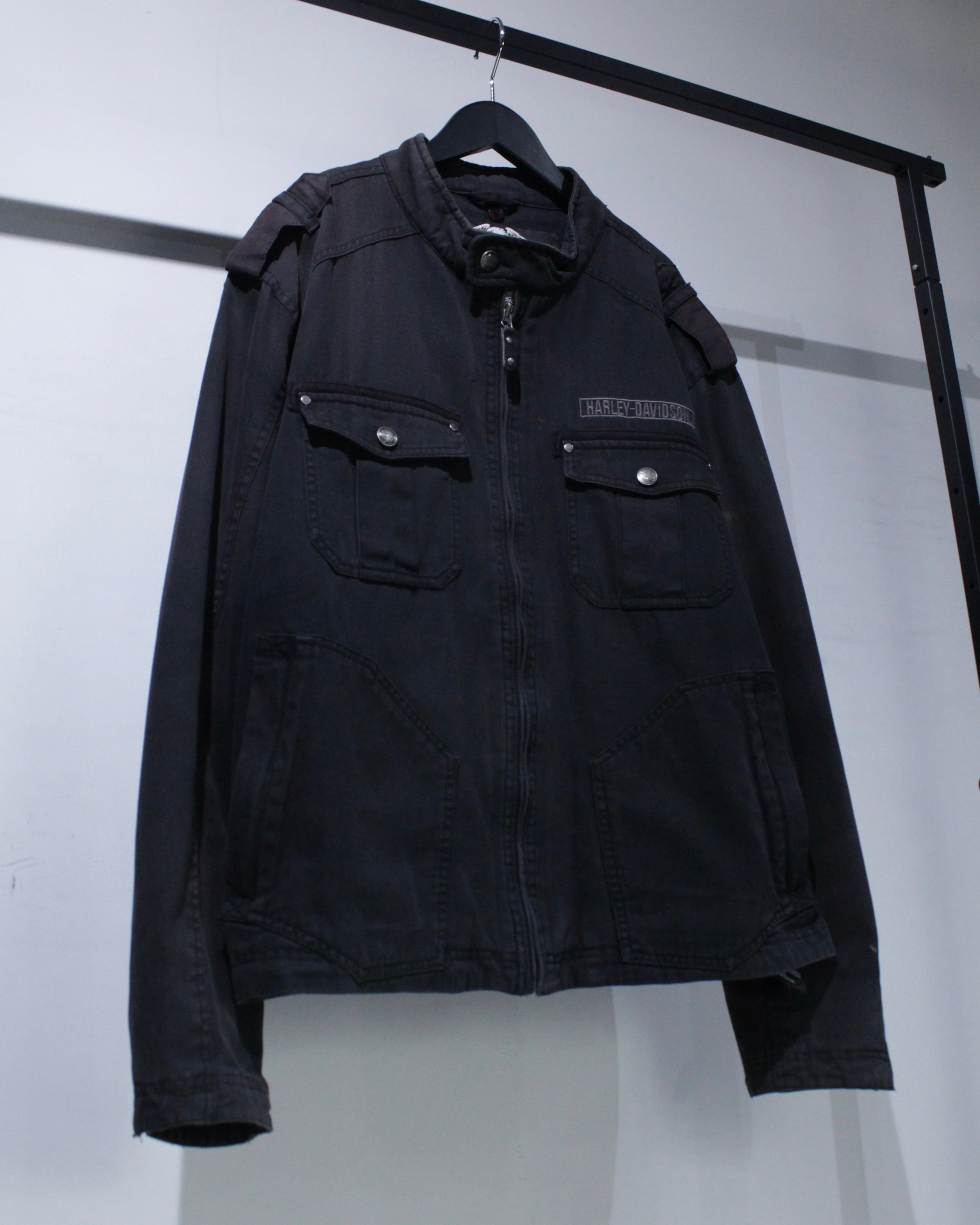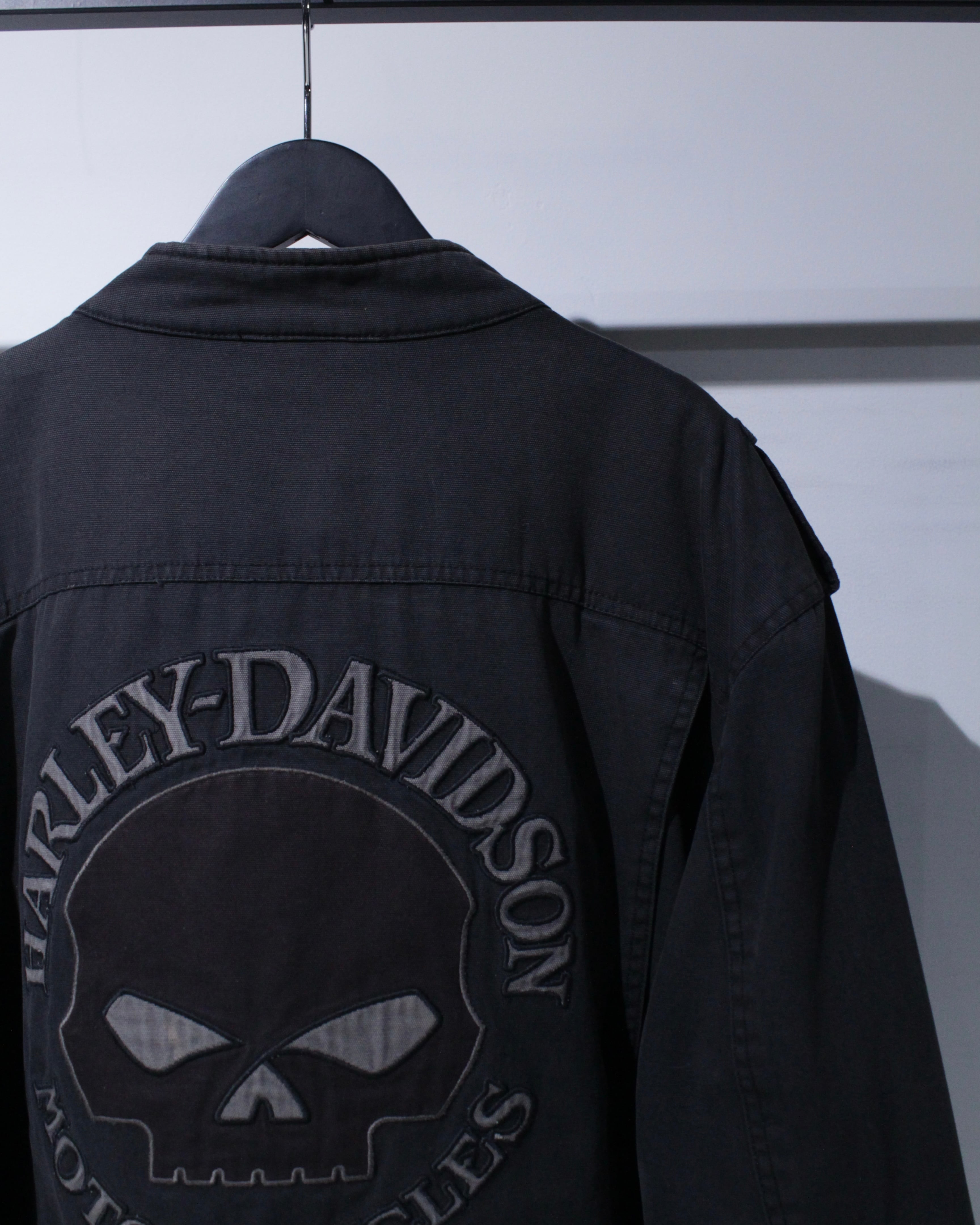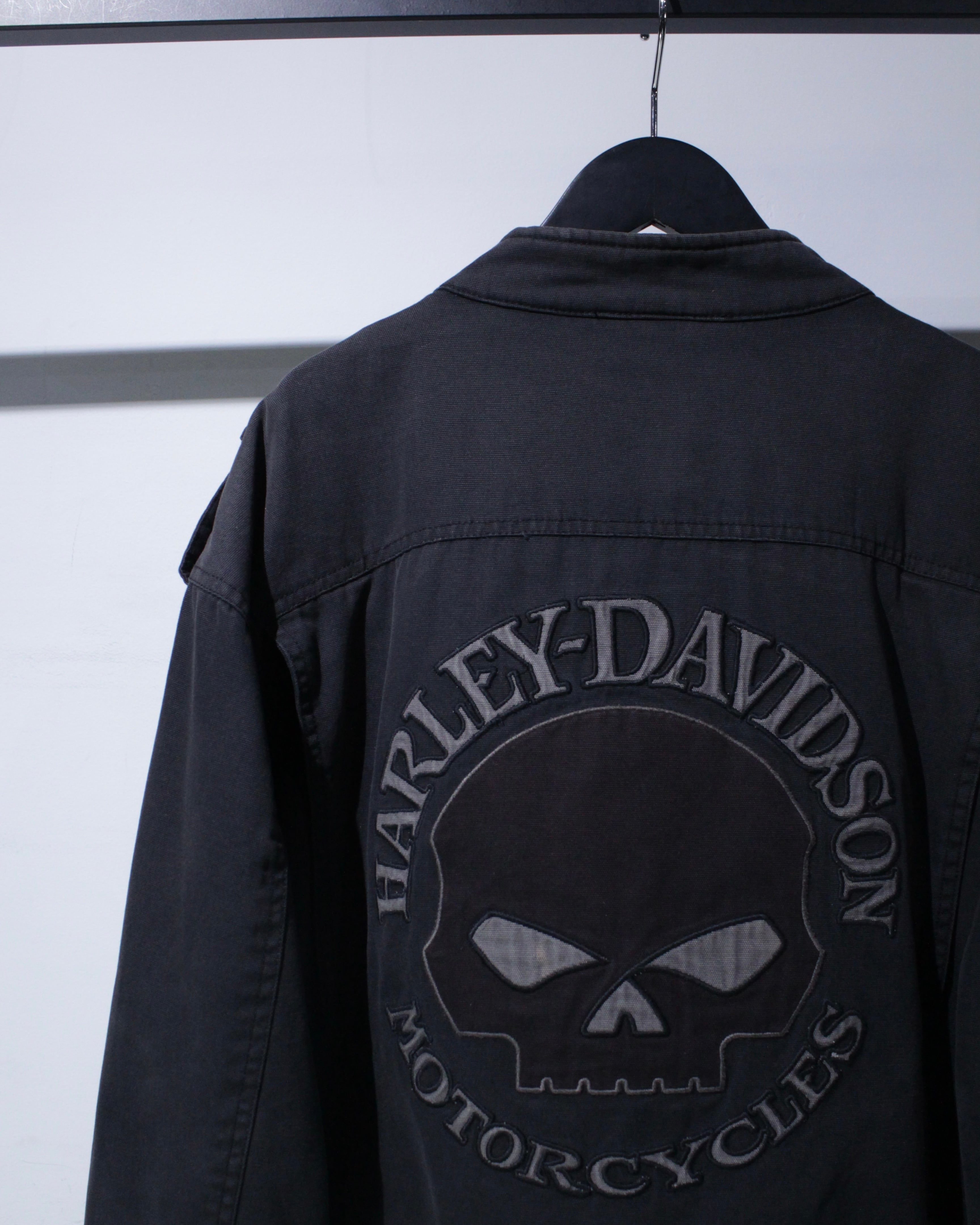 柔らかさとタフさを兼ね備えたコットンボディをベースに、ライダースらしいシングル仕様を採用。背面にはハーレーを象徴するスカルモチーフを大胆に配し、無骨さとアイコニックなムードを両立した1着に仕上がっています。