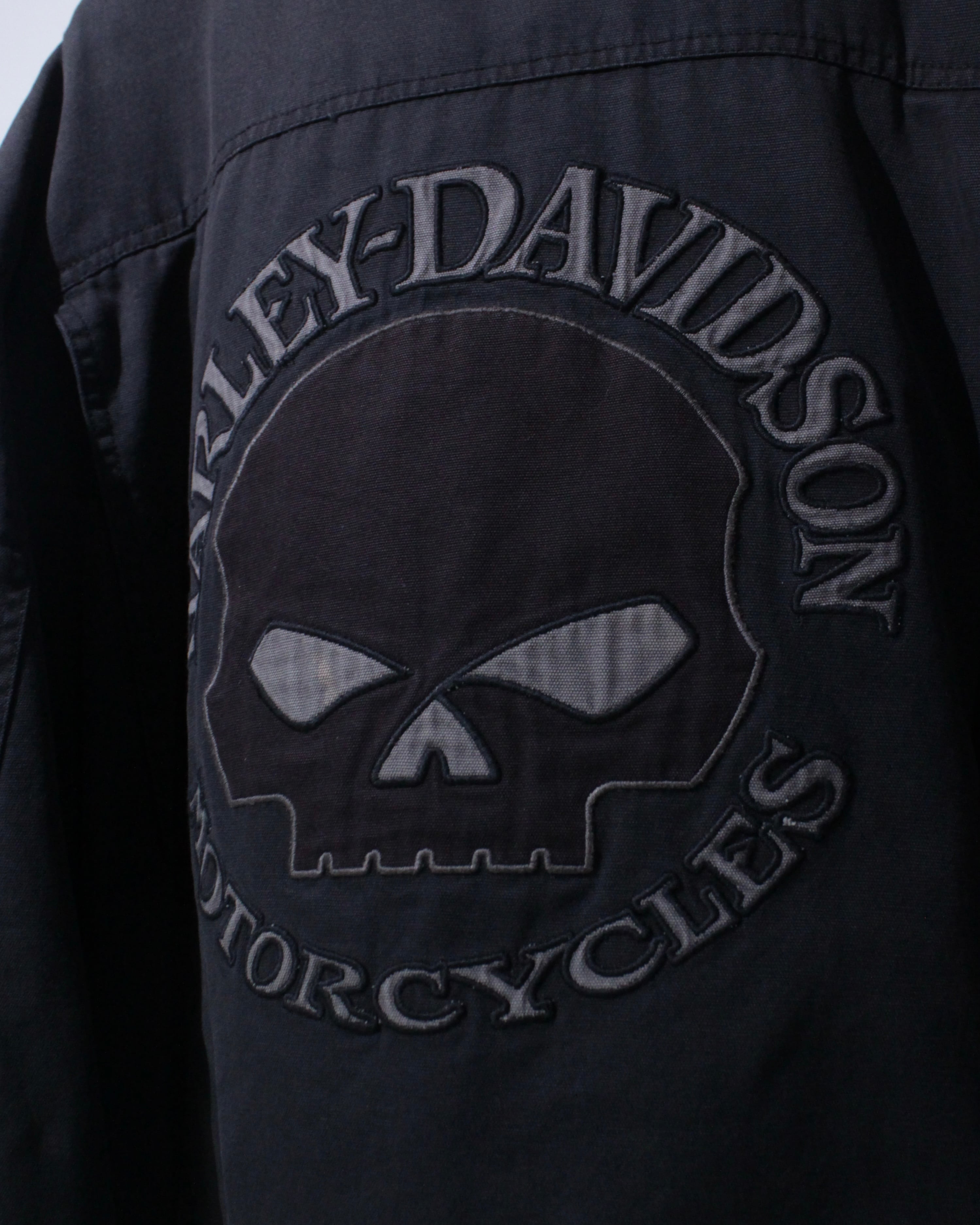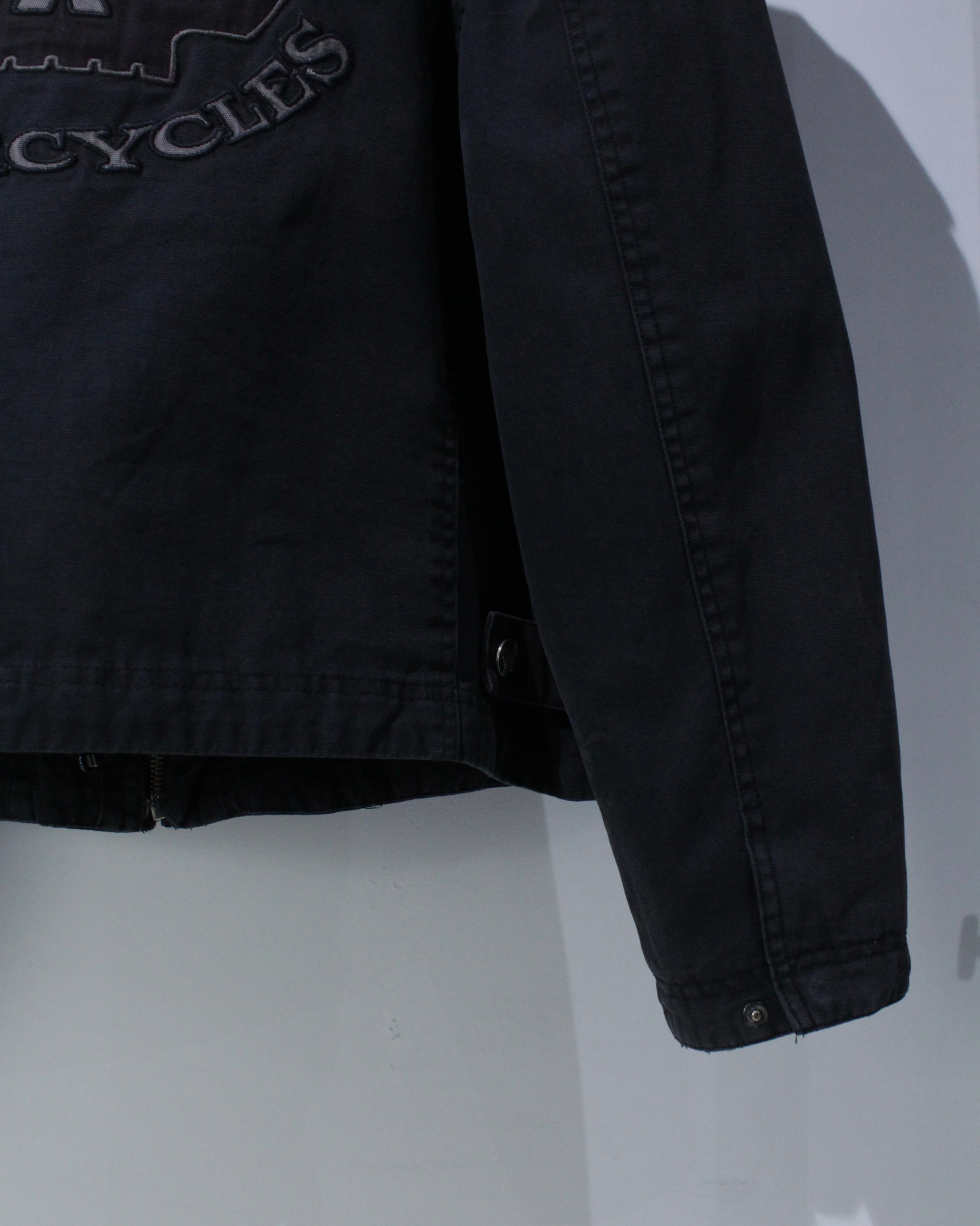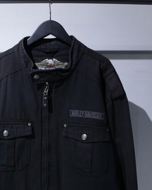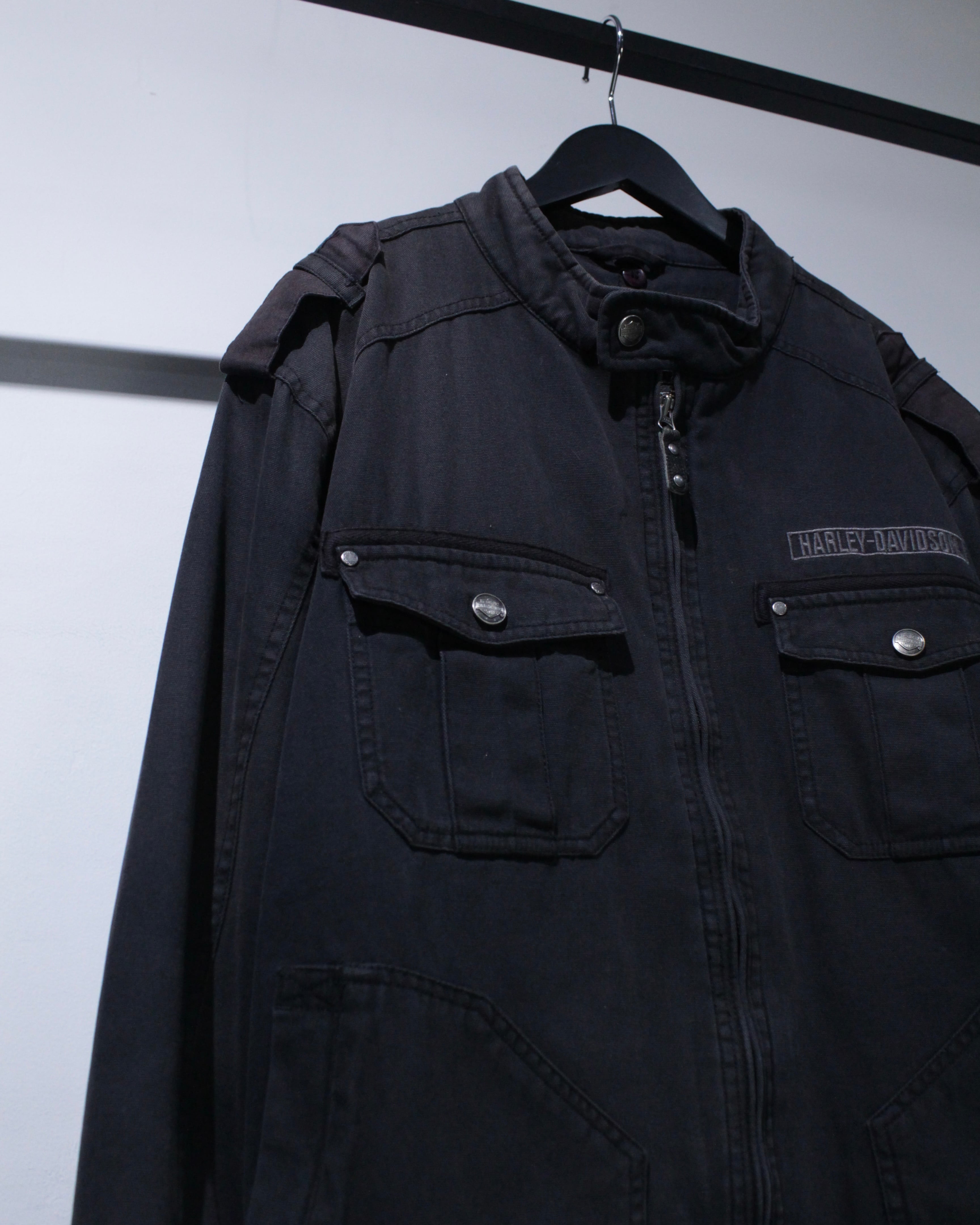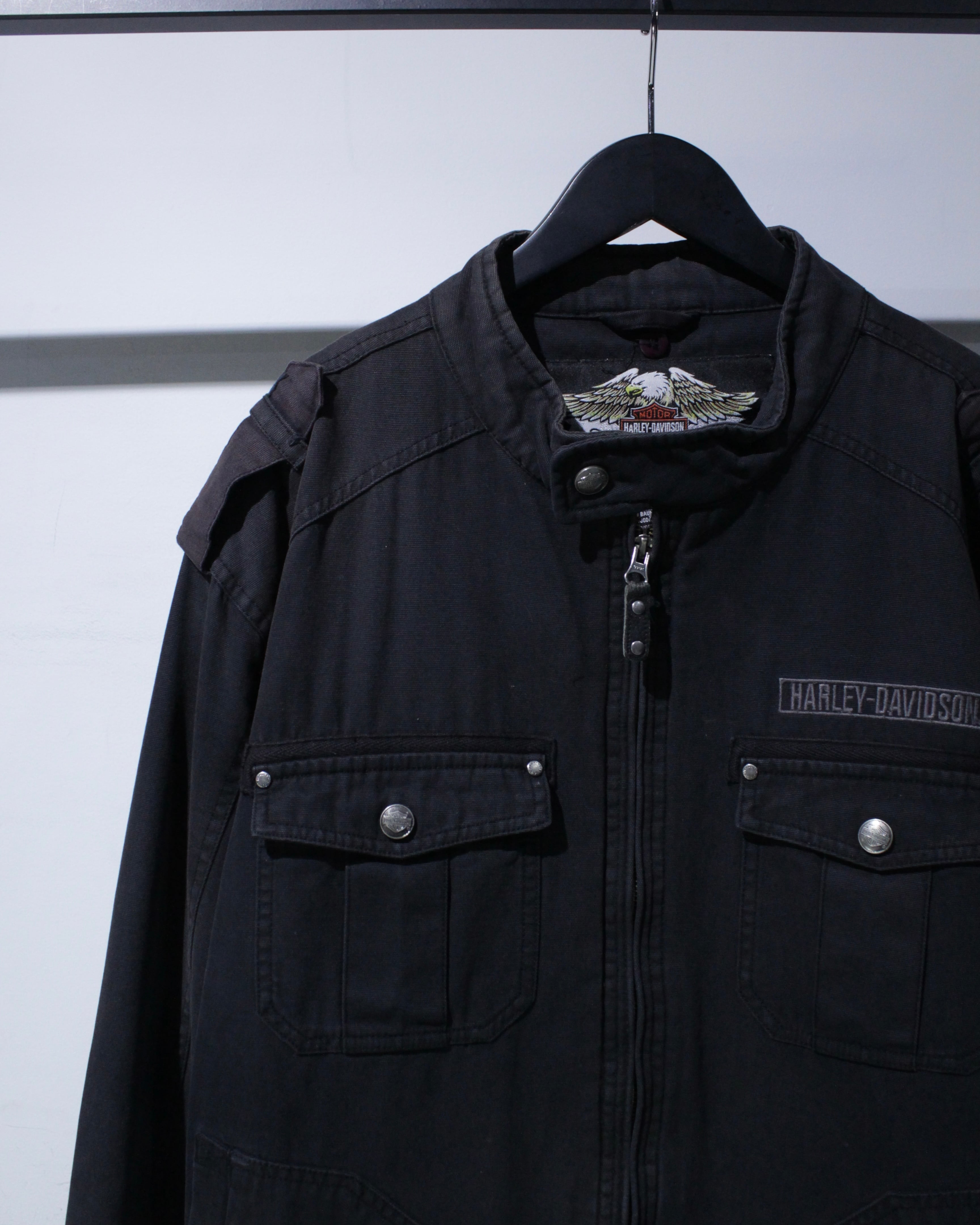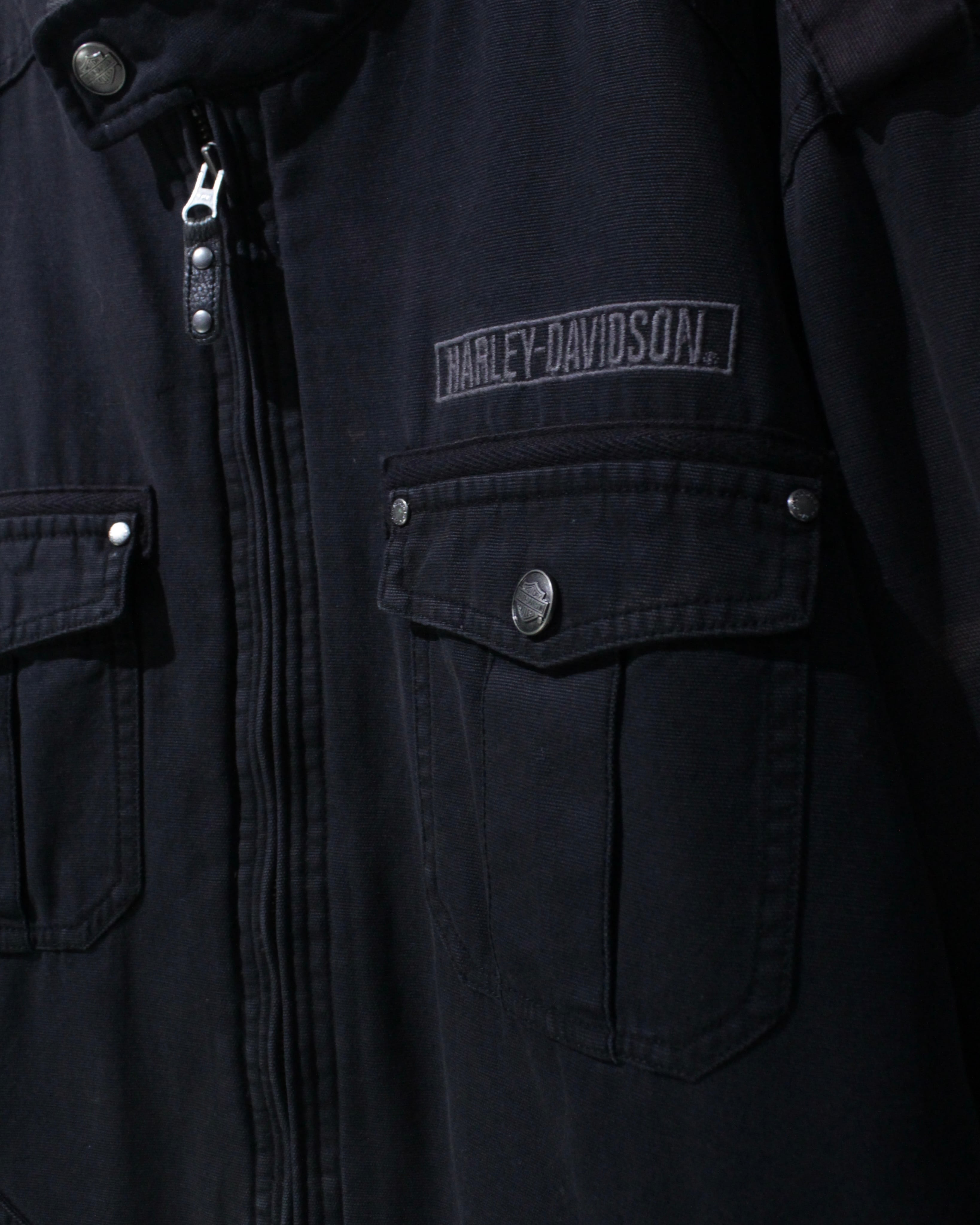 柔らかさとタフさを兼ね備えたコットンボディをベースに、ライダースらしいシングル仕様を採用。背面にはハーレーを象徴するスカルモチーフを大胆に配し、無骨さとアイコニックなムードを両立した1着に仕上がっています。