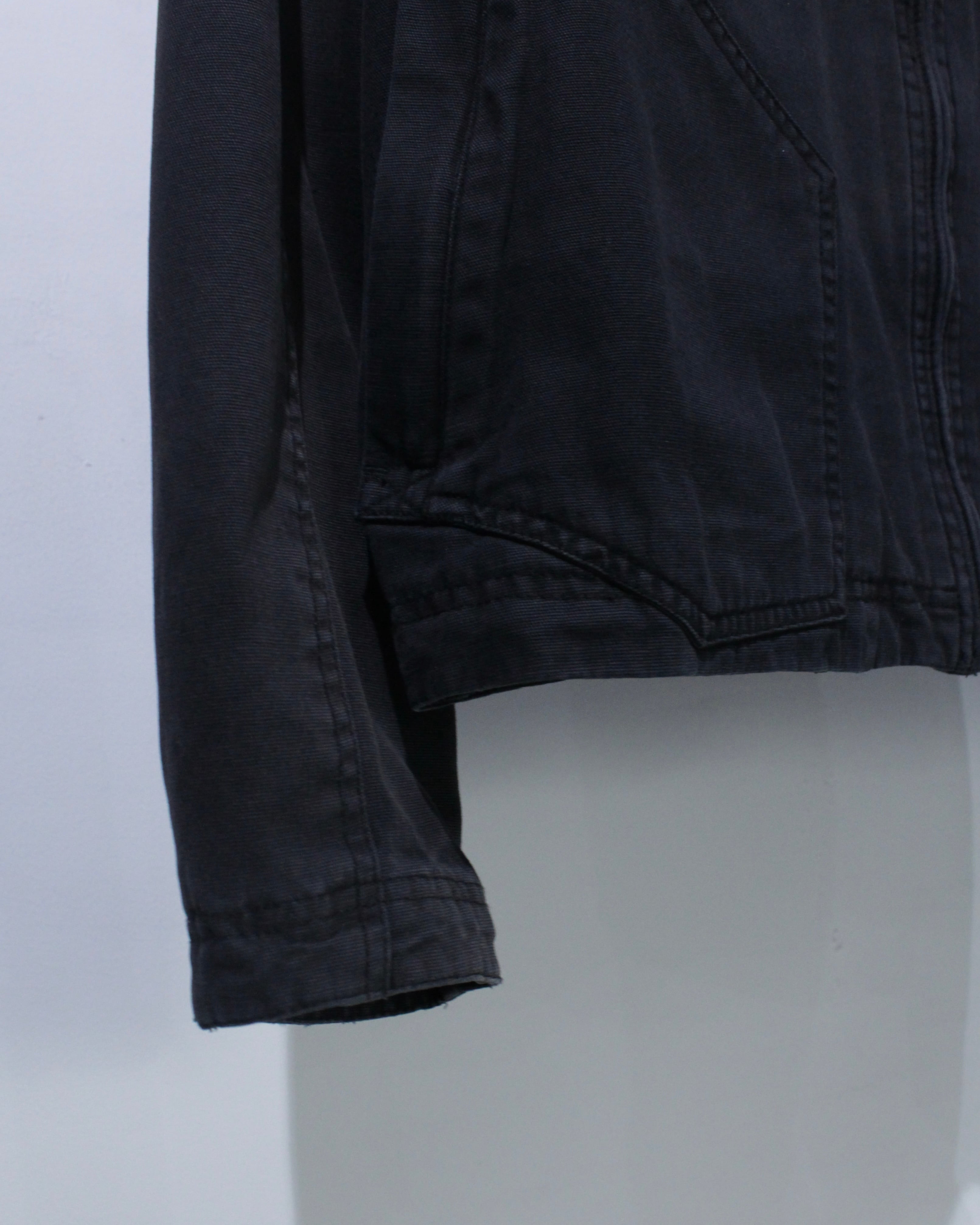 フロントには2つのフラップポケット、肩にはエポレットを配置したミニマルなディテール。レザーライダースとは異なり、軽やかでサラッと羽織れる着用感も大きな魅力ですね。