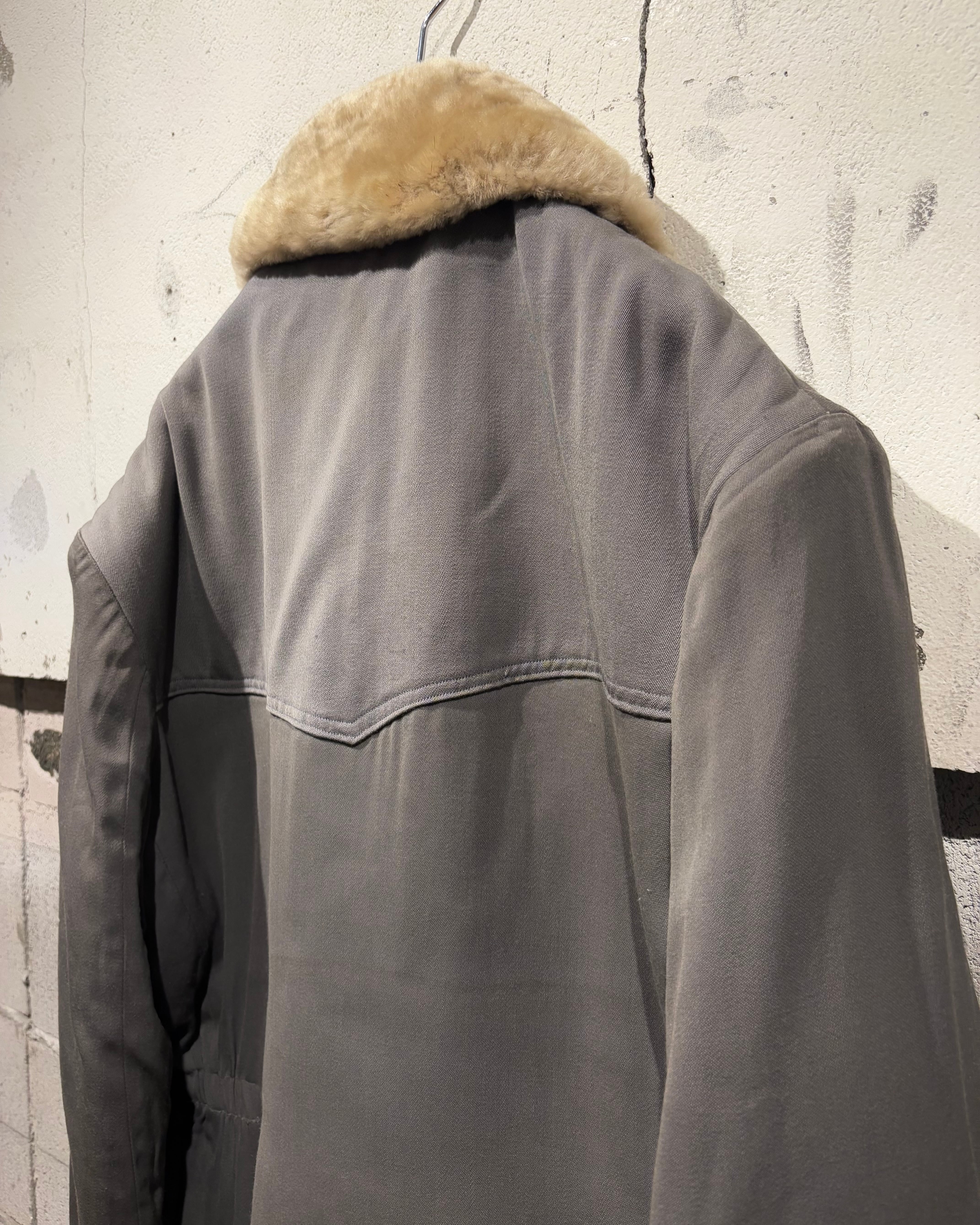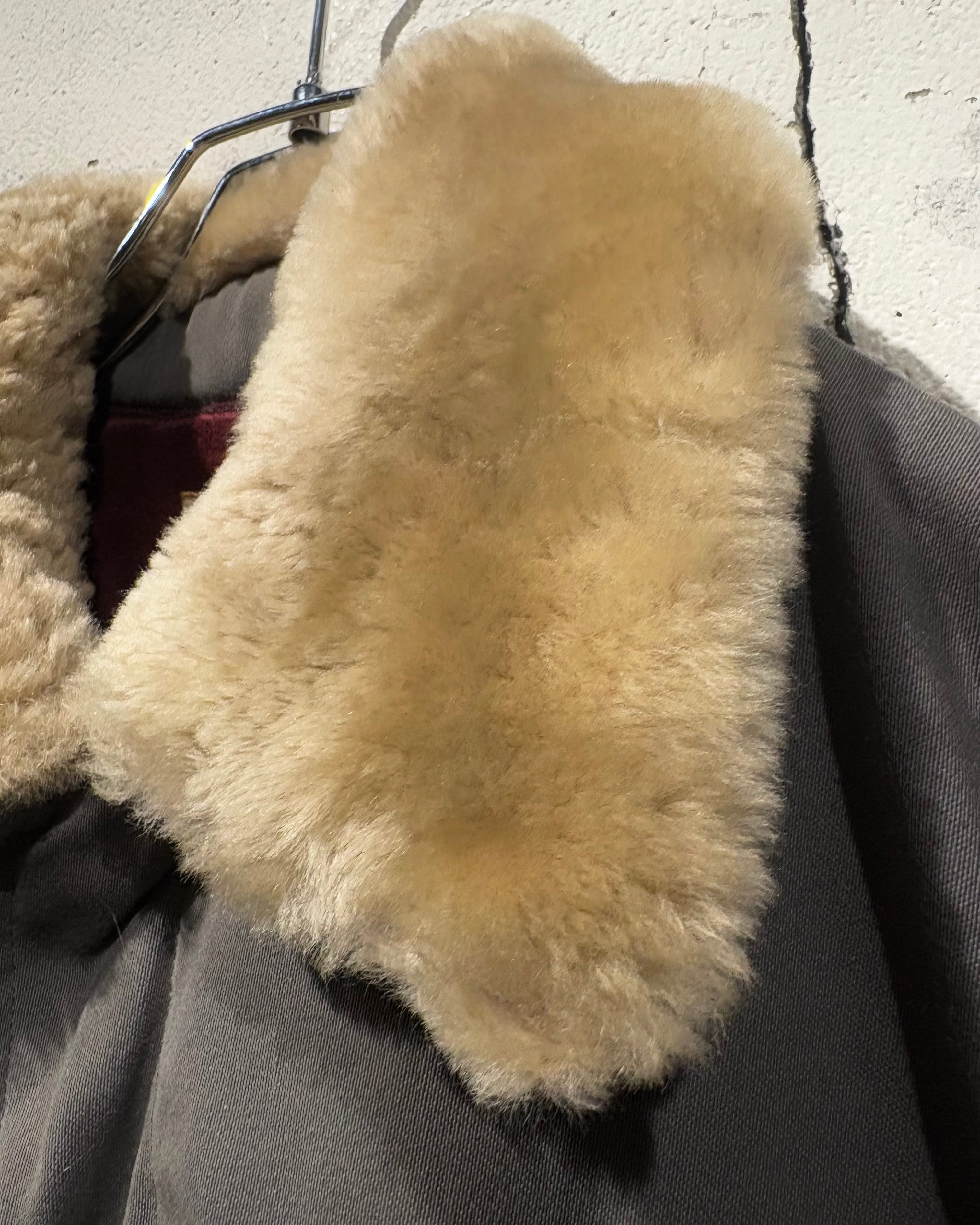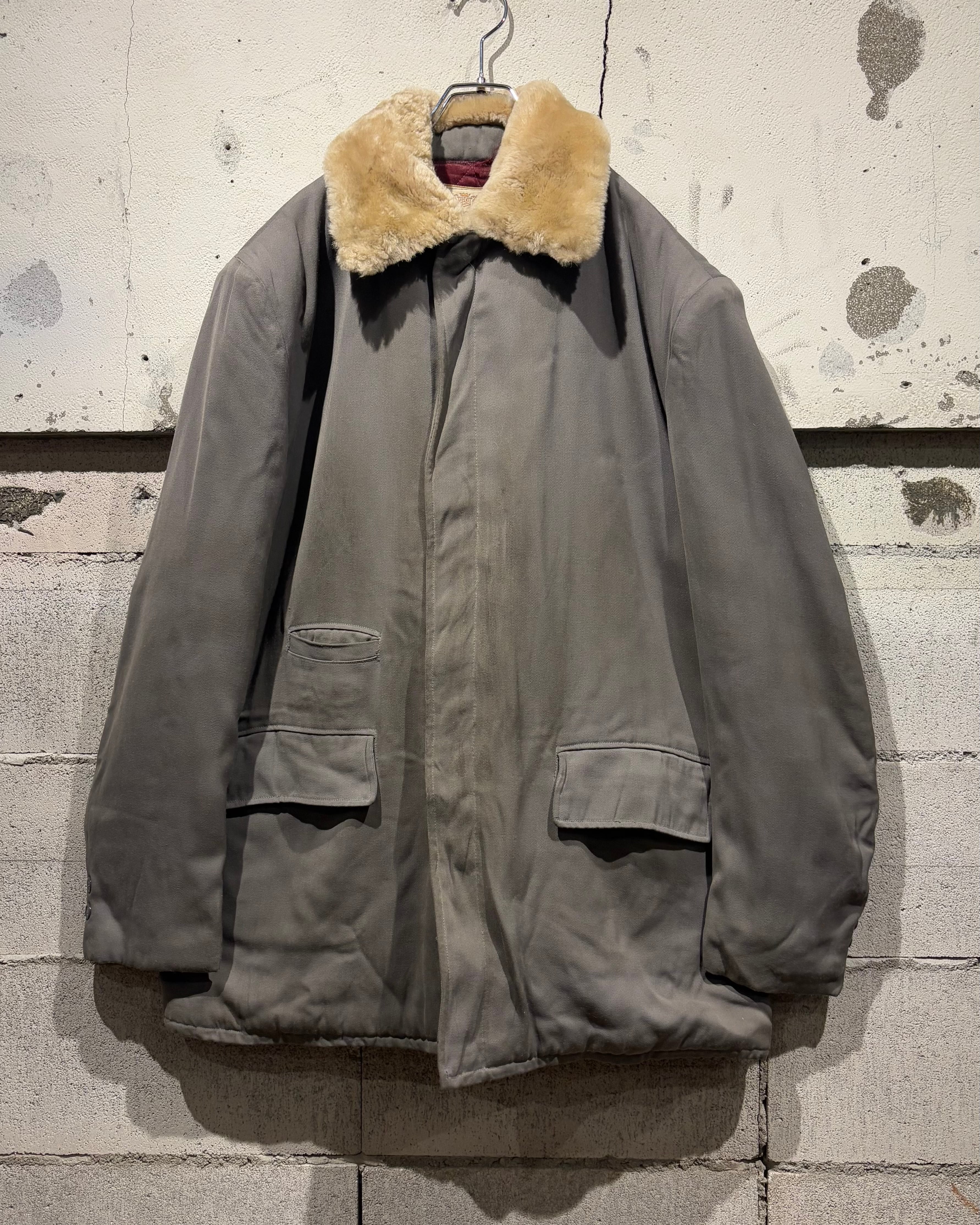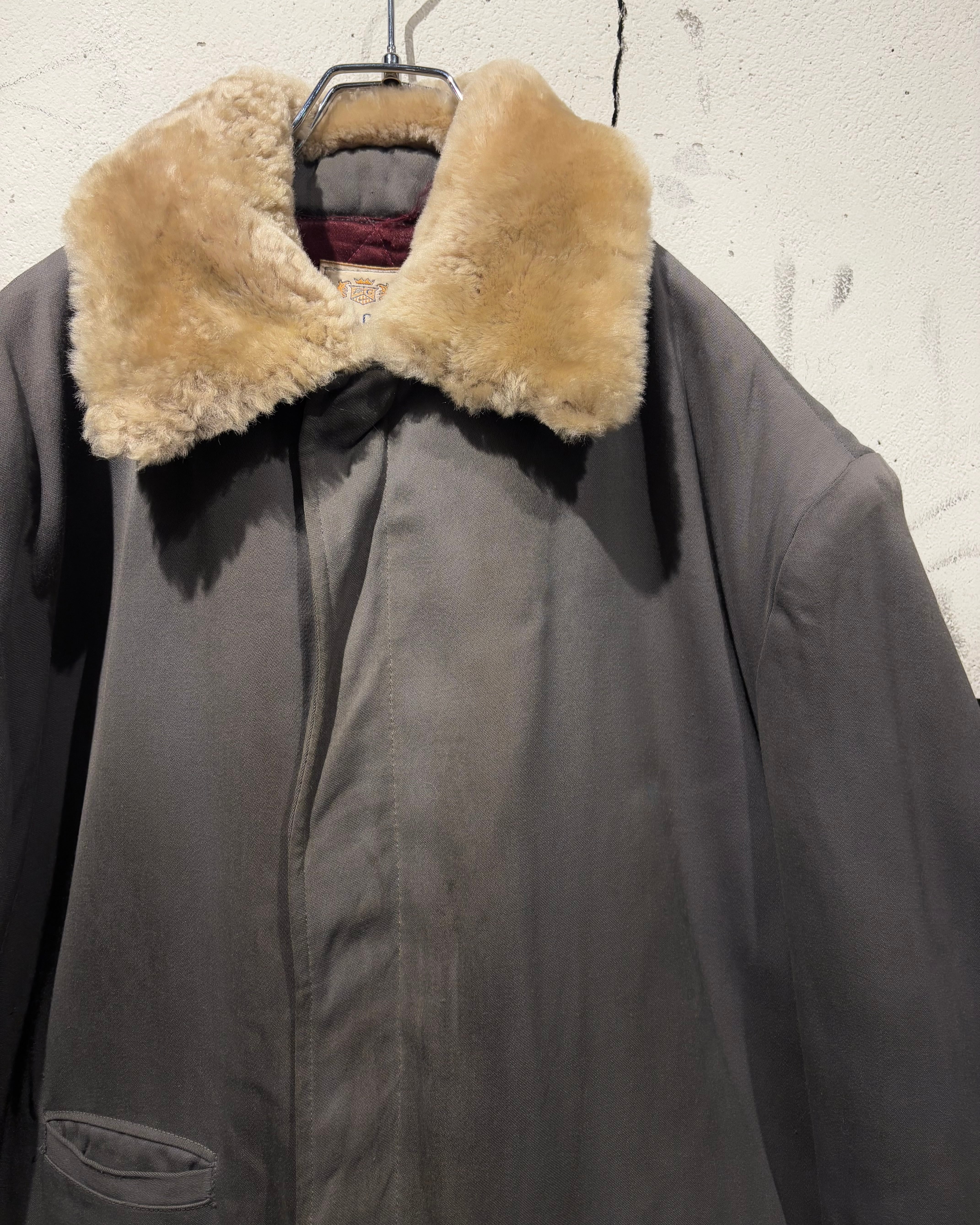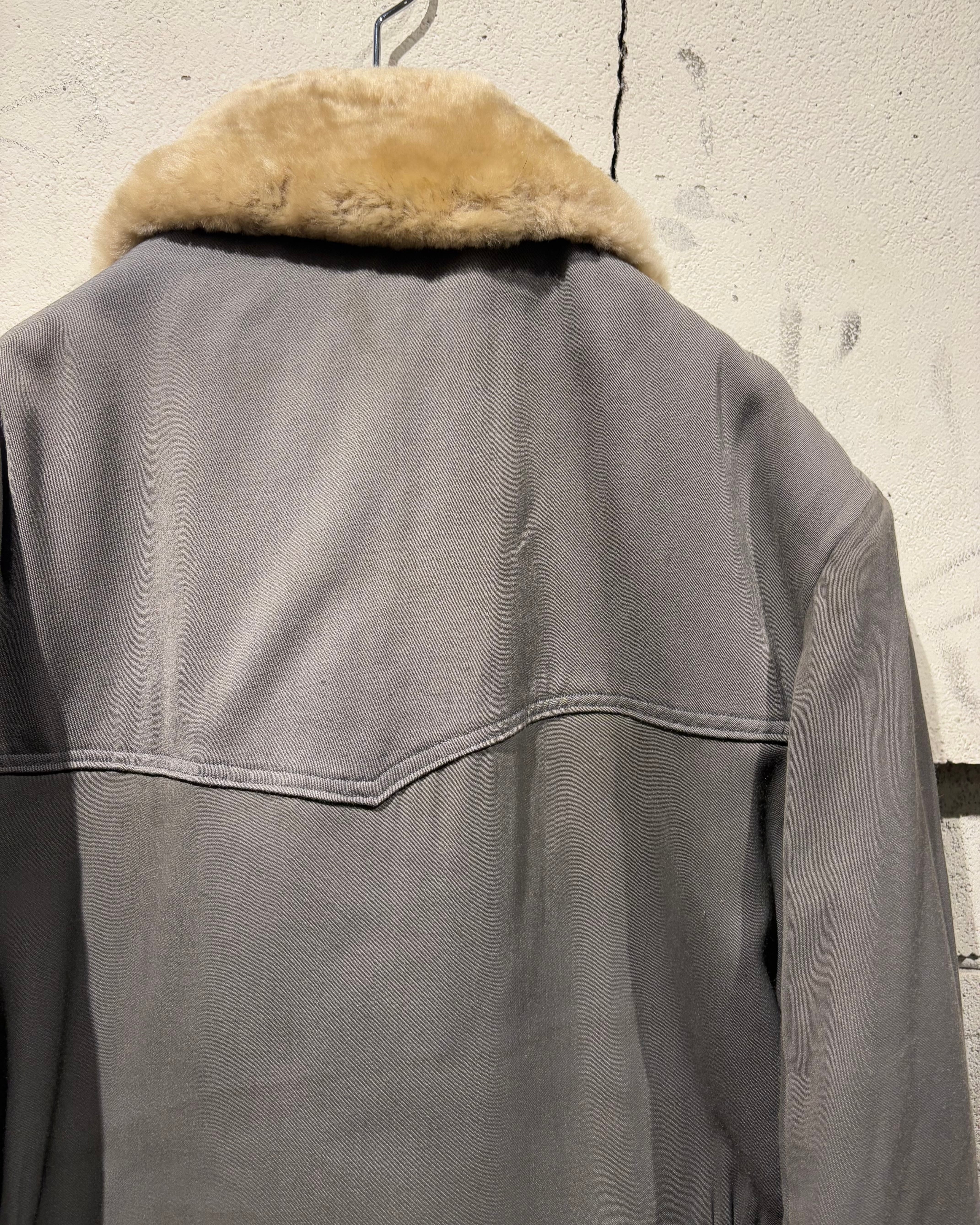 しなやかで落ち感のあるギャバジン生地を用いたボディに、首元には存在感のあるムートン襟を施した50's ヴィンテージのギャバジンジャケット。