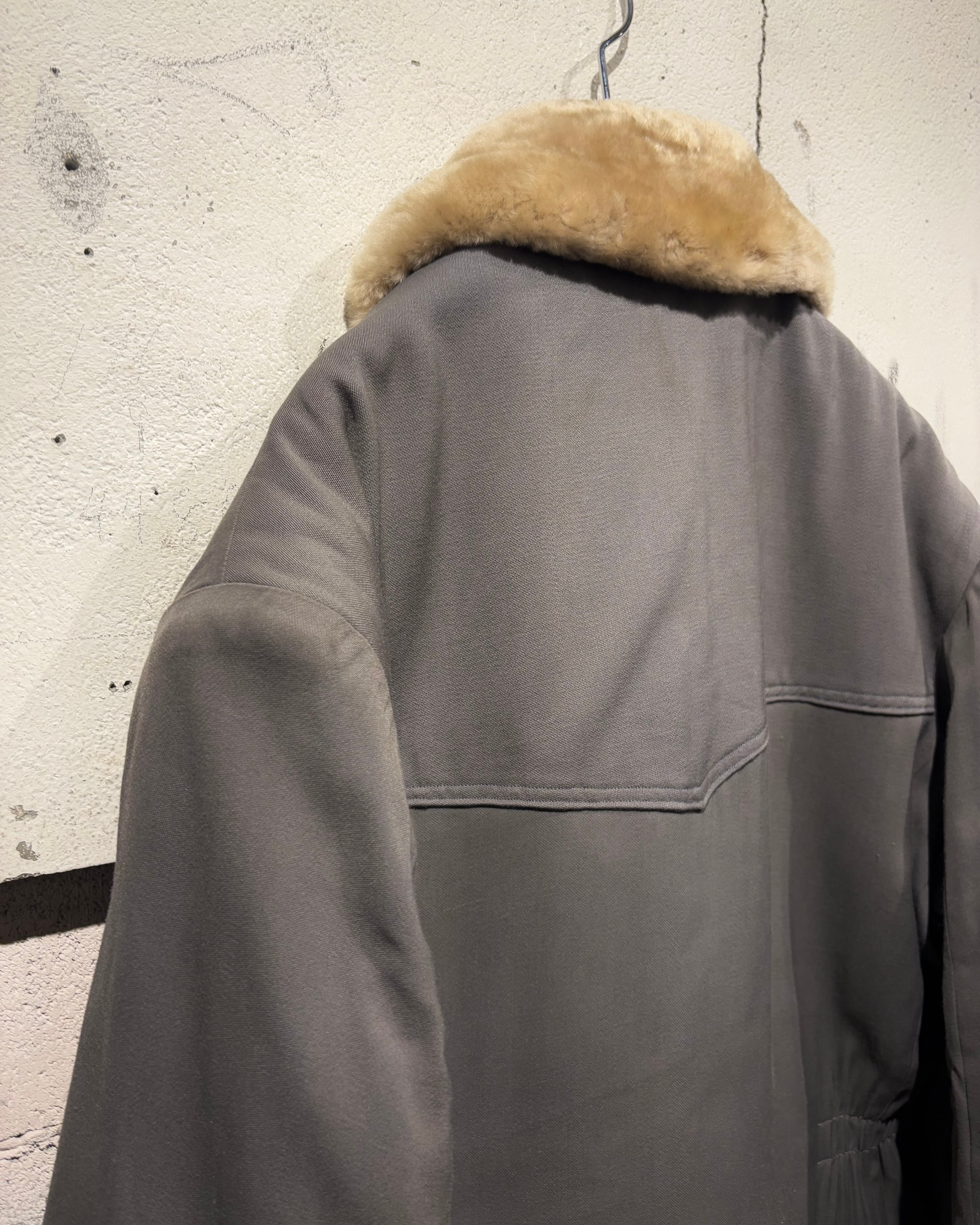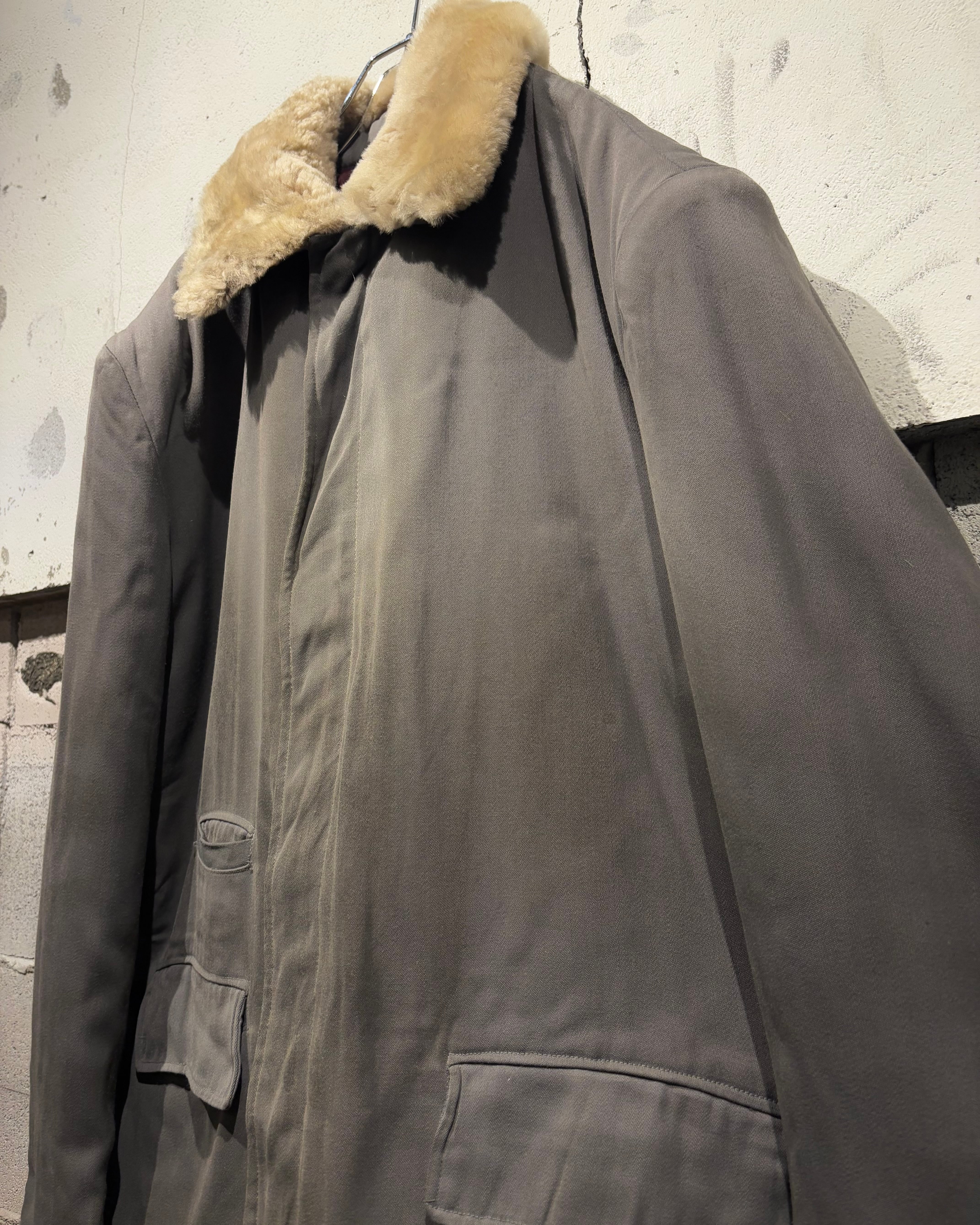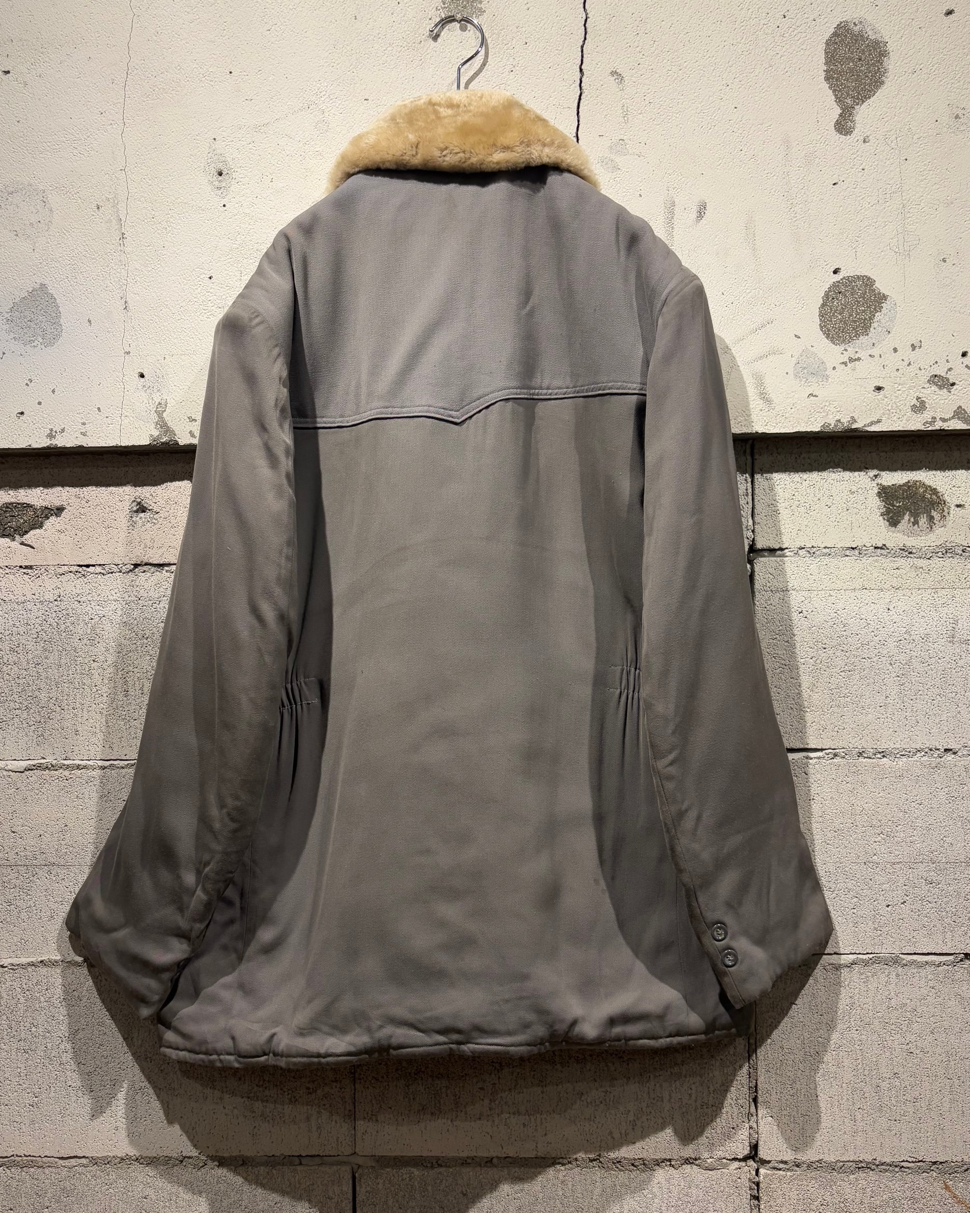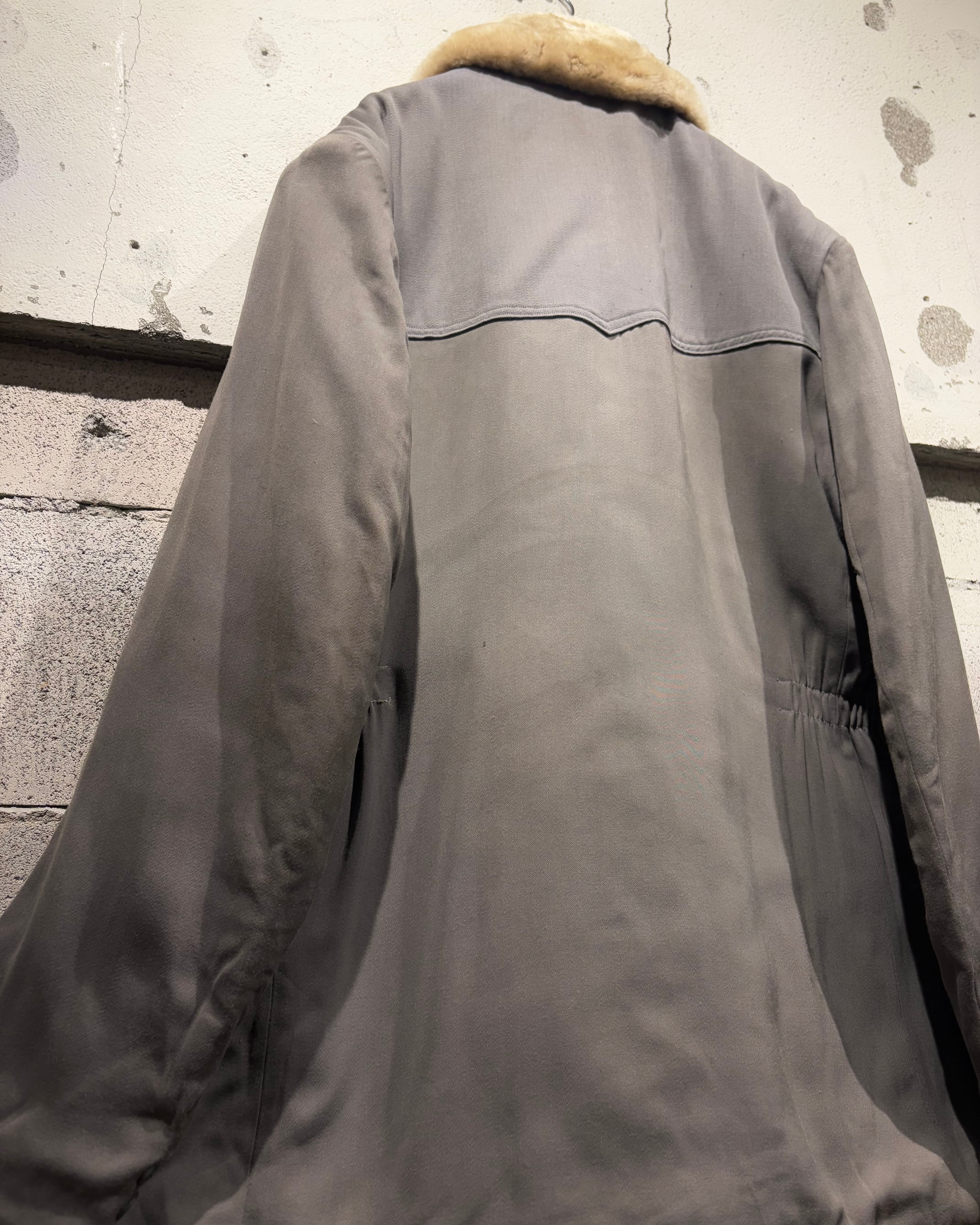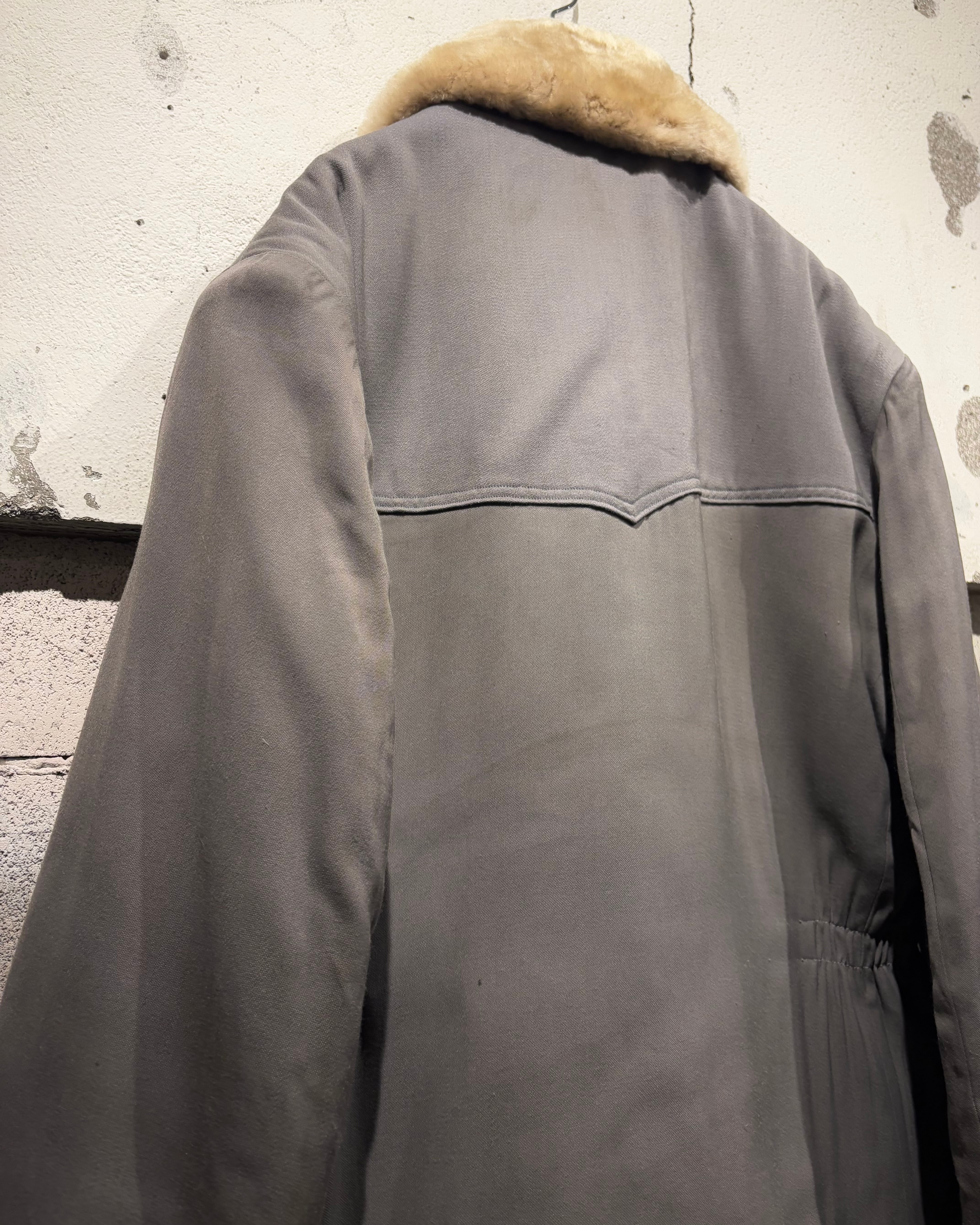 しなやかで落ち感のあるギャバジン生地を用いたボディに、首元には存在感のあるムートン襟を施した50's ヴィンテージのギャバジンジャケット。