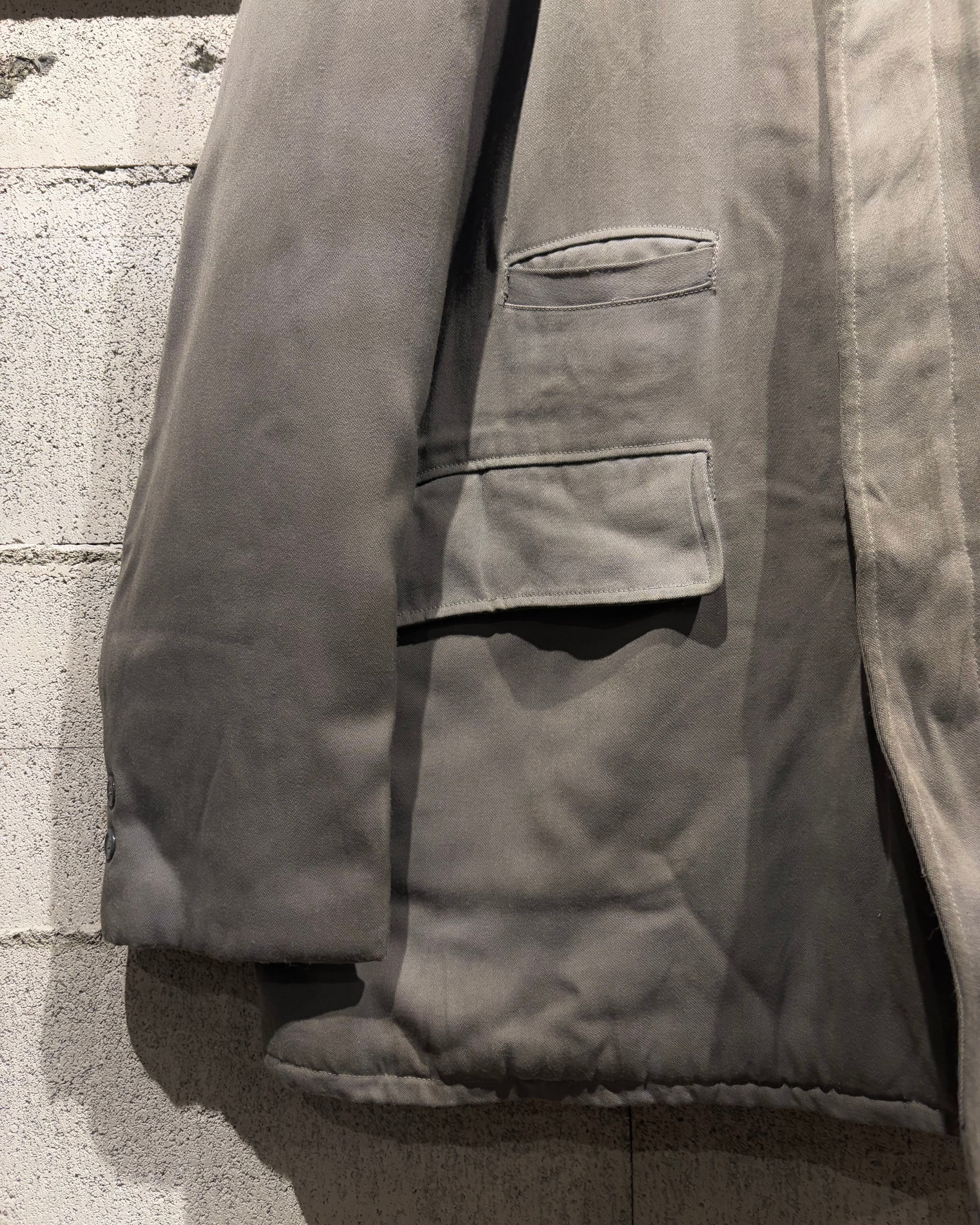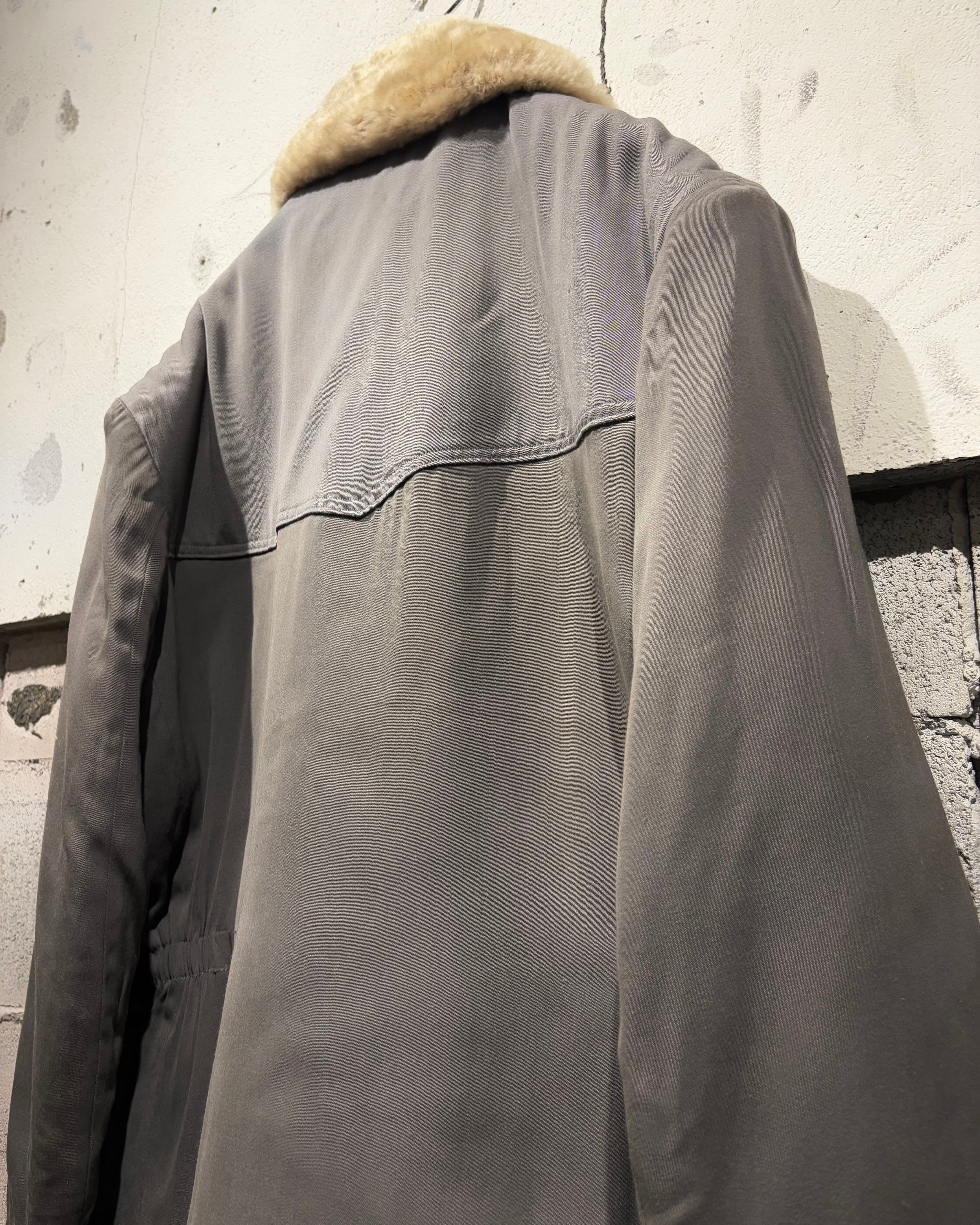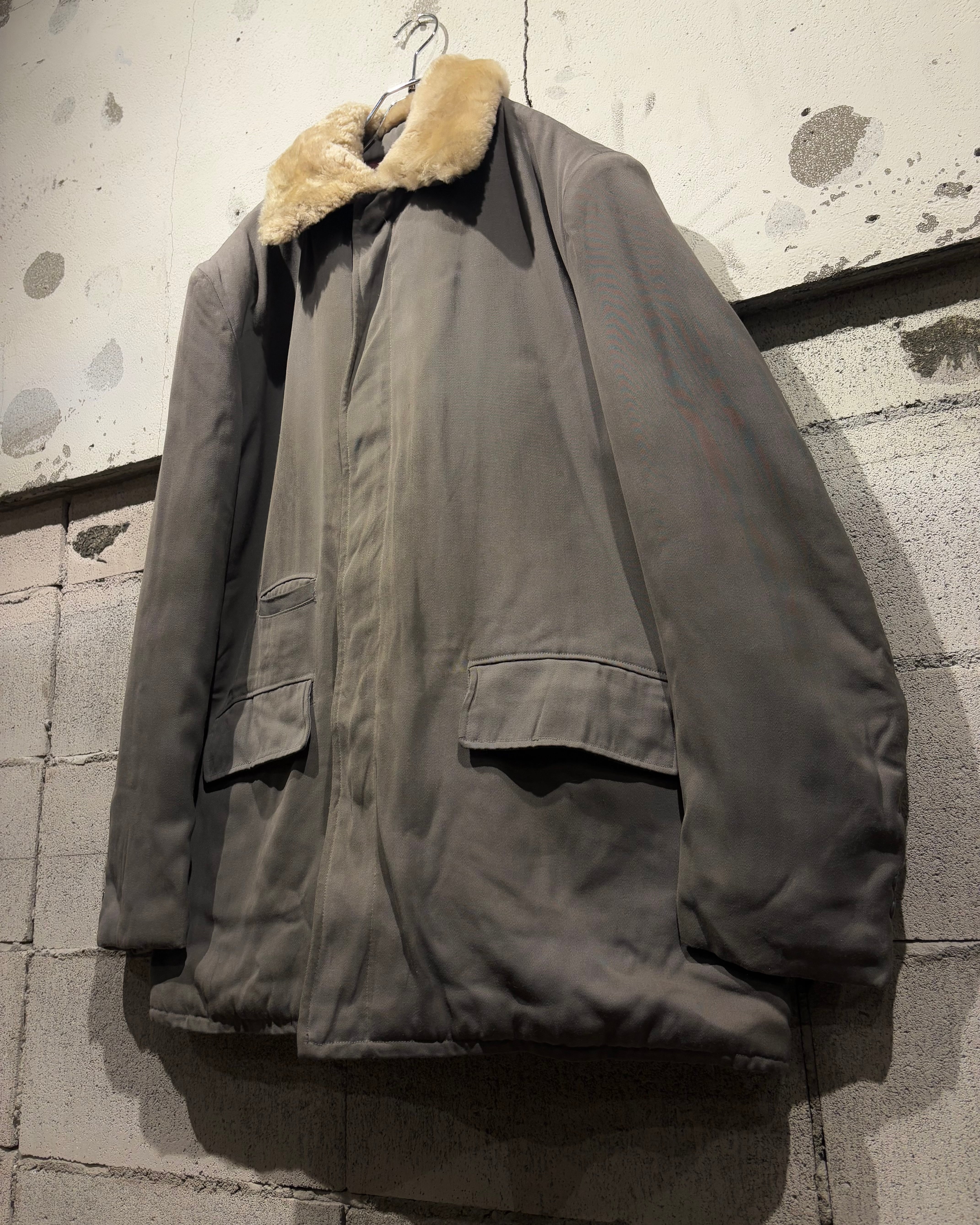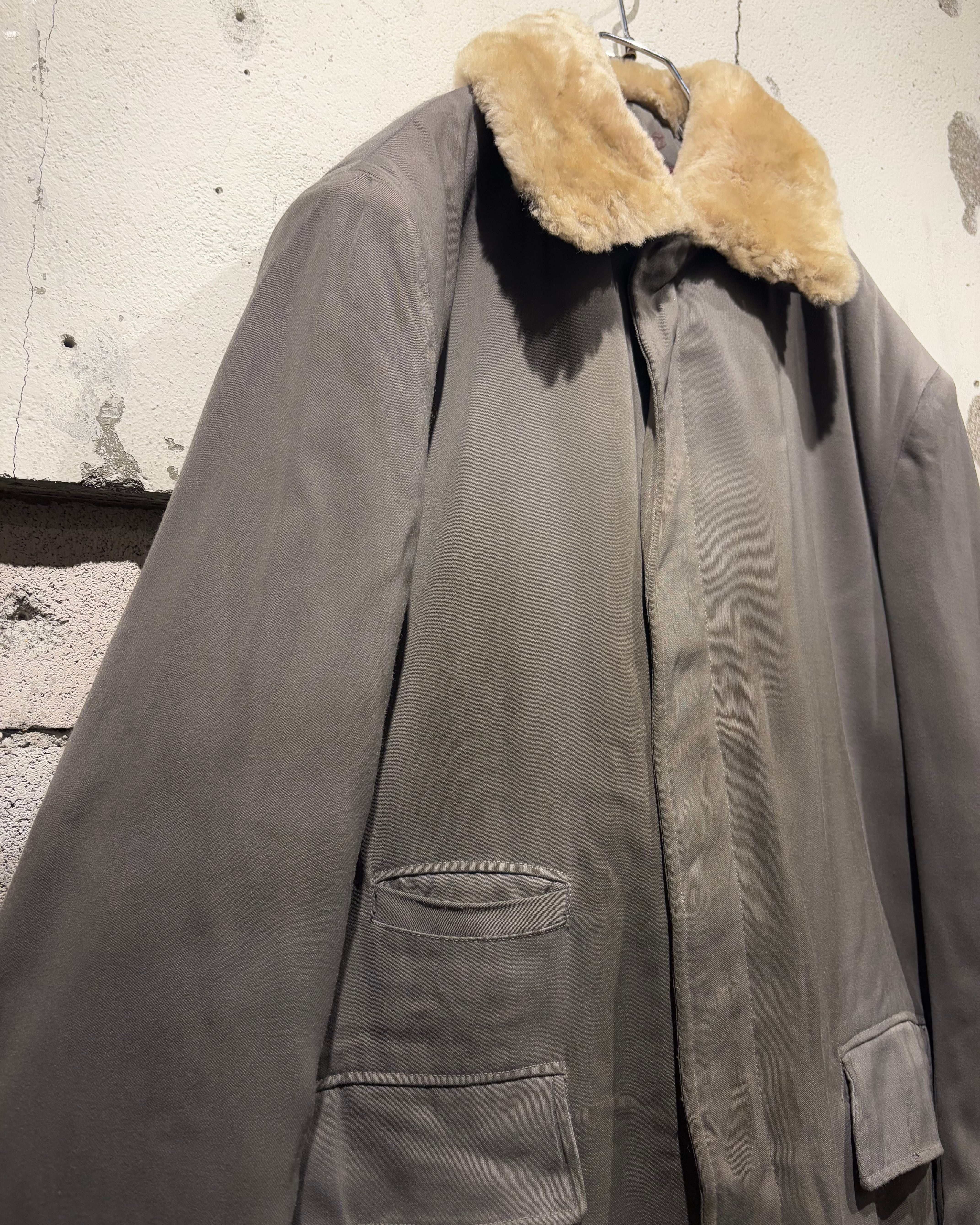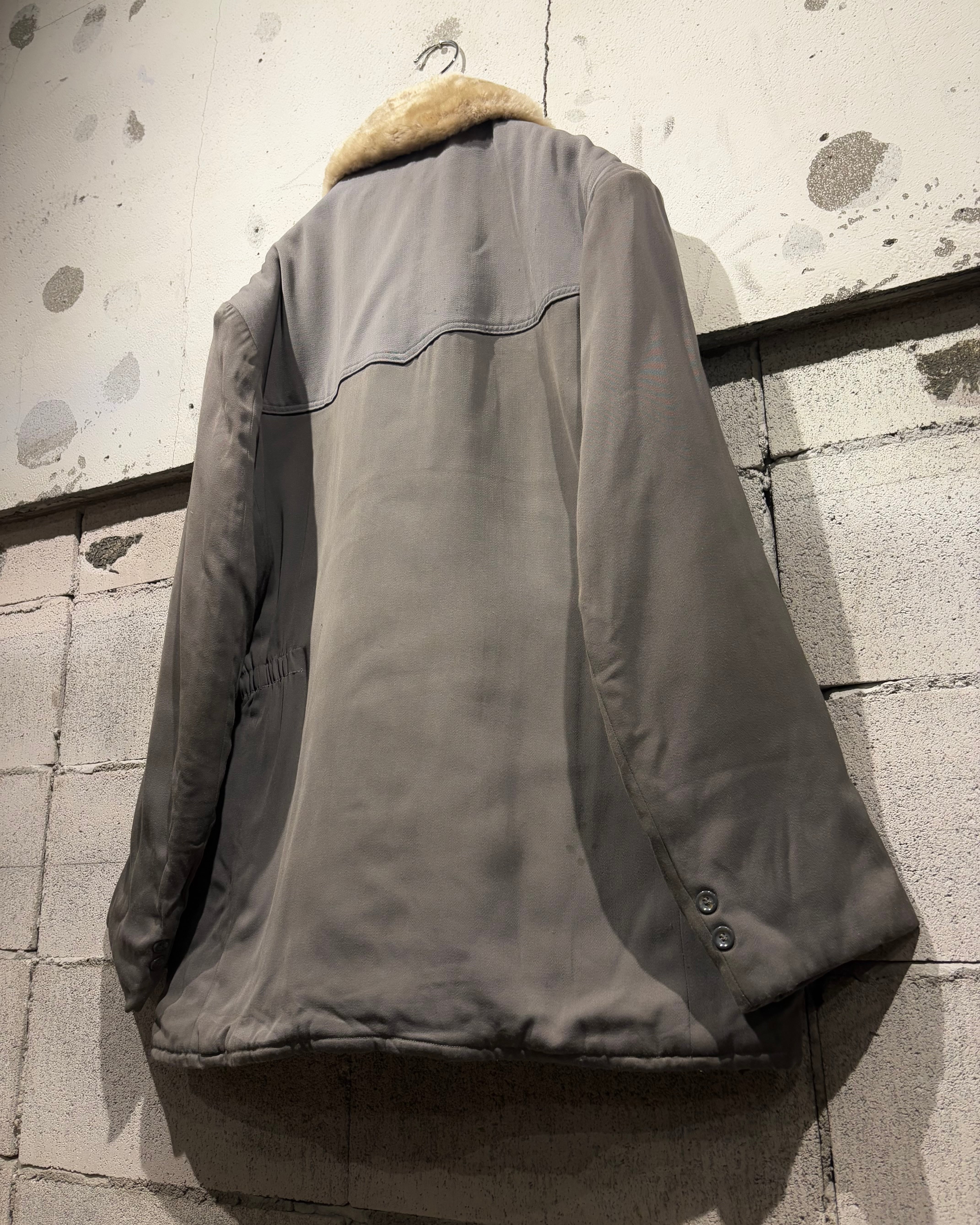 しなやかで落ち感のあるギャバジン生地を用いたボディに、首元には存在感のあるムートン襟を施した50's ヴィンテージのギャバジンジャケット。