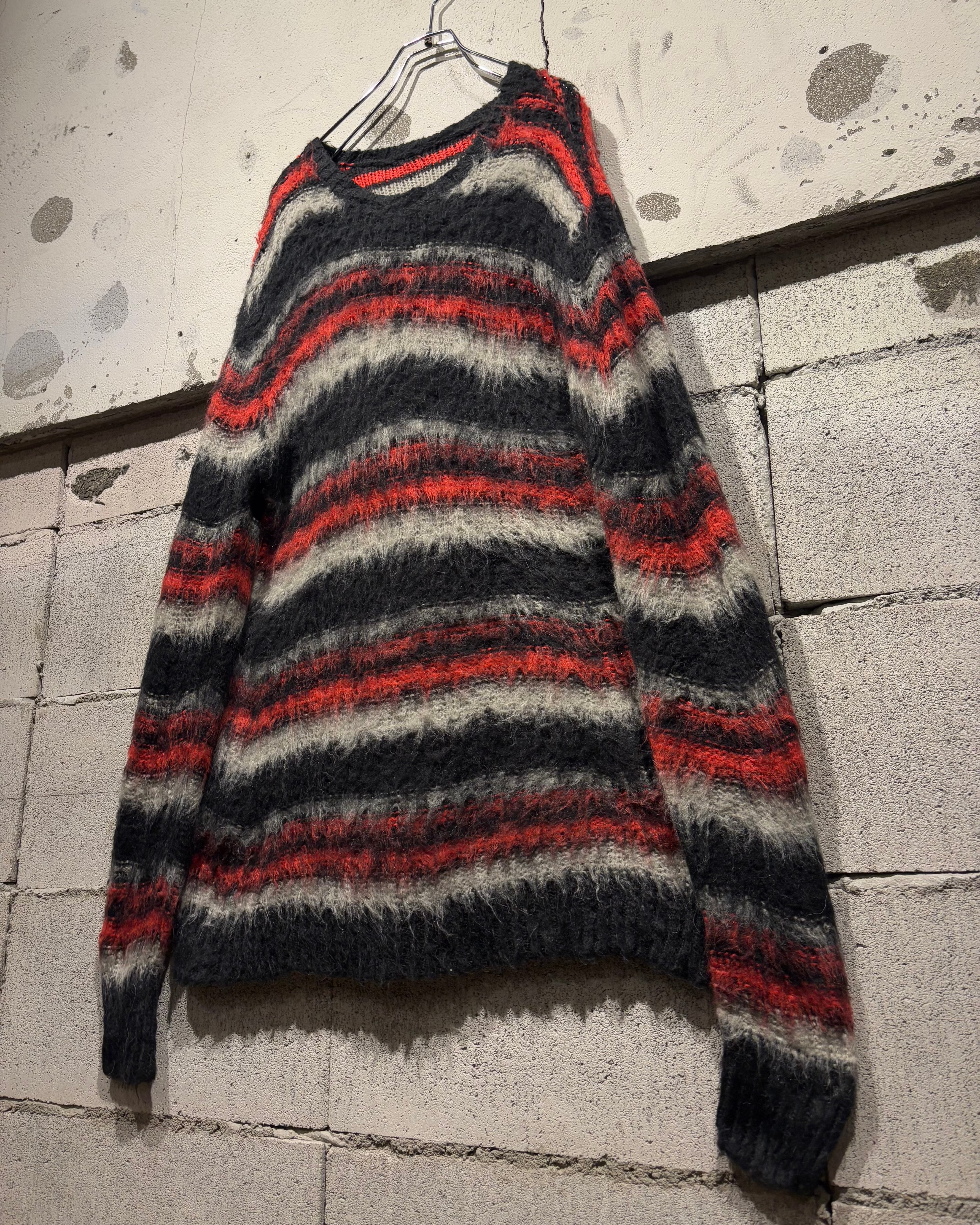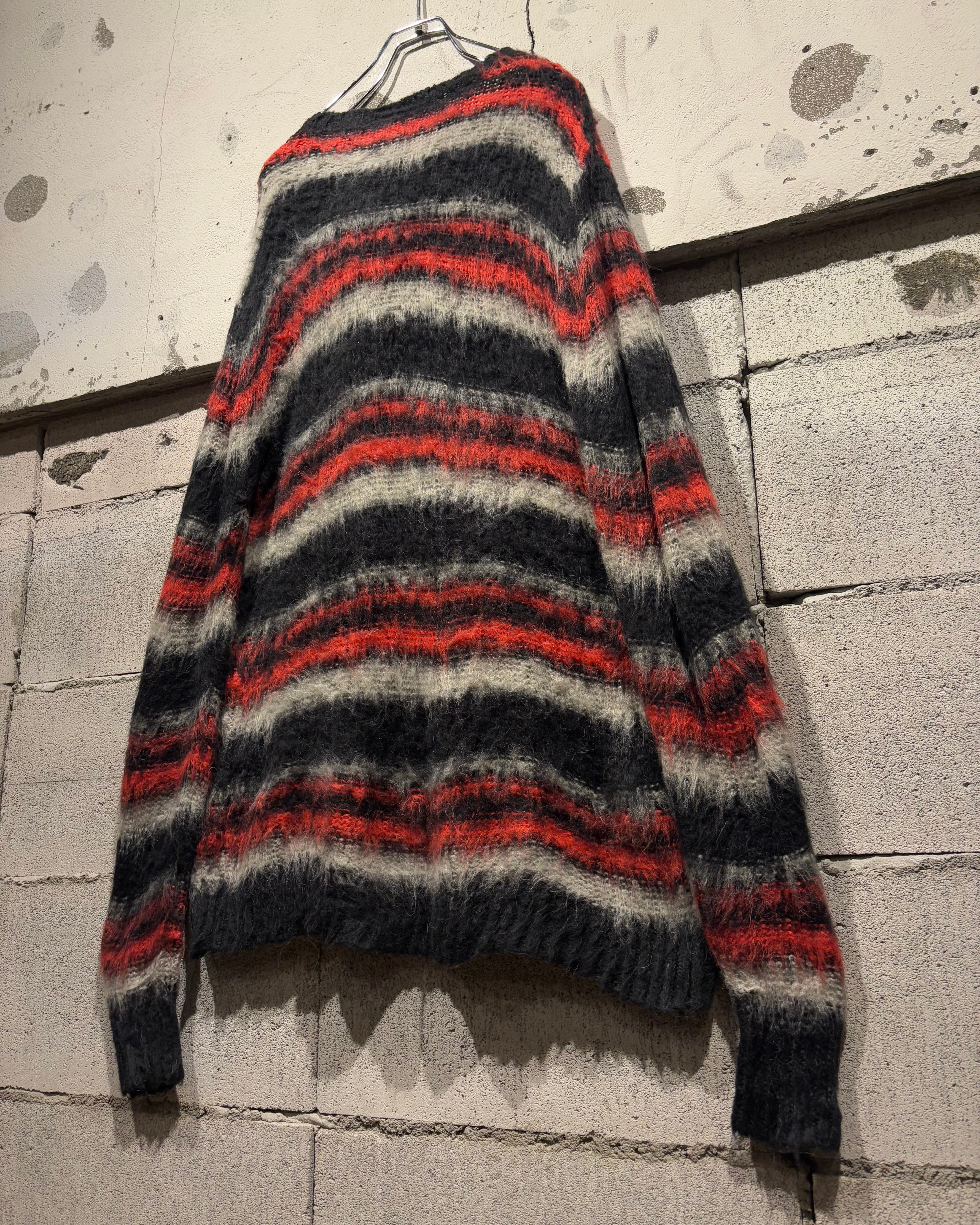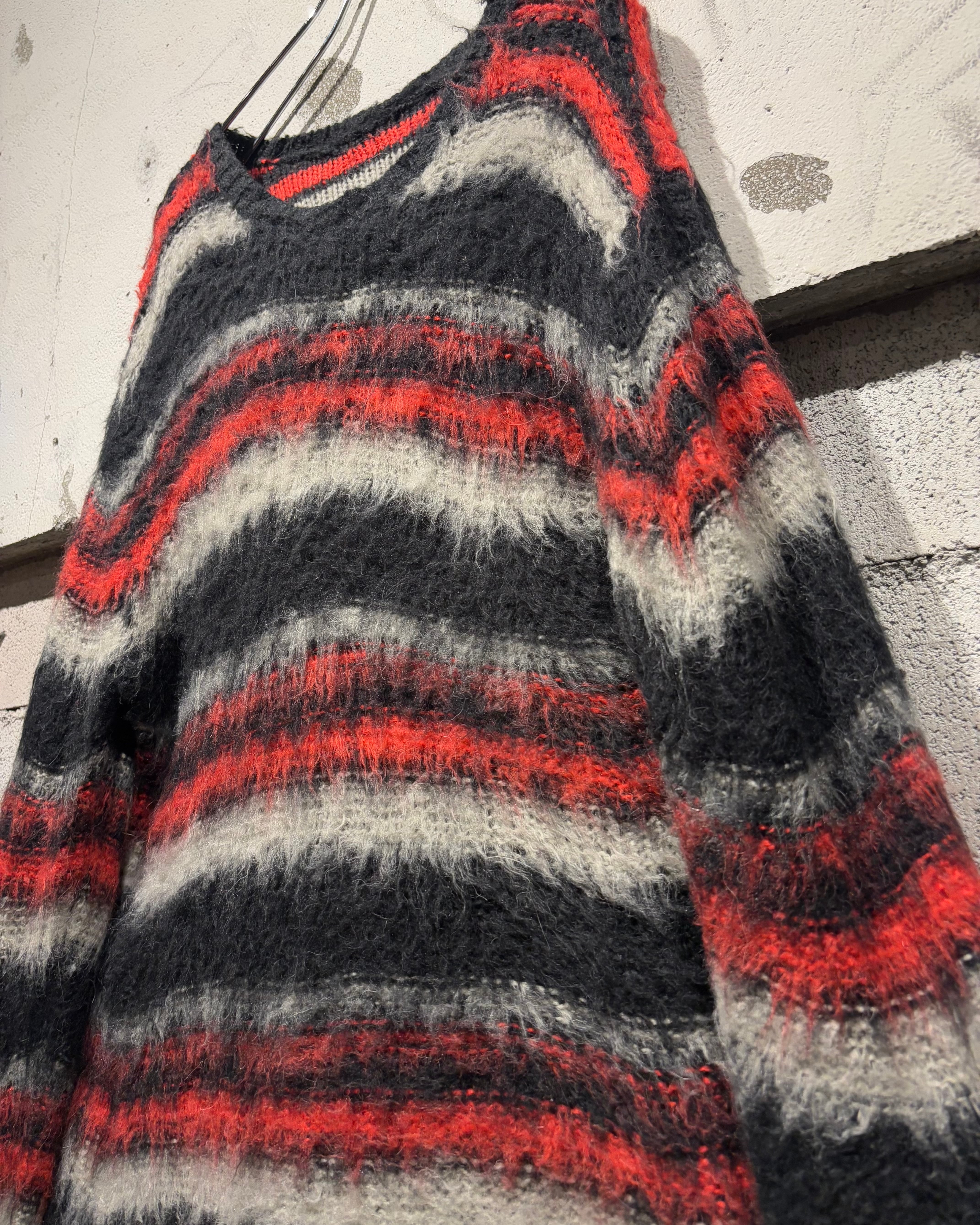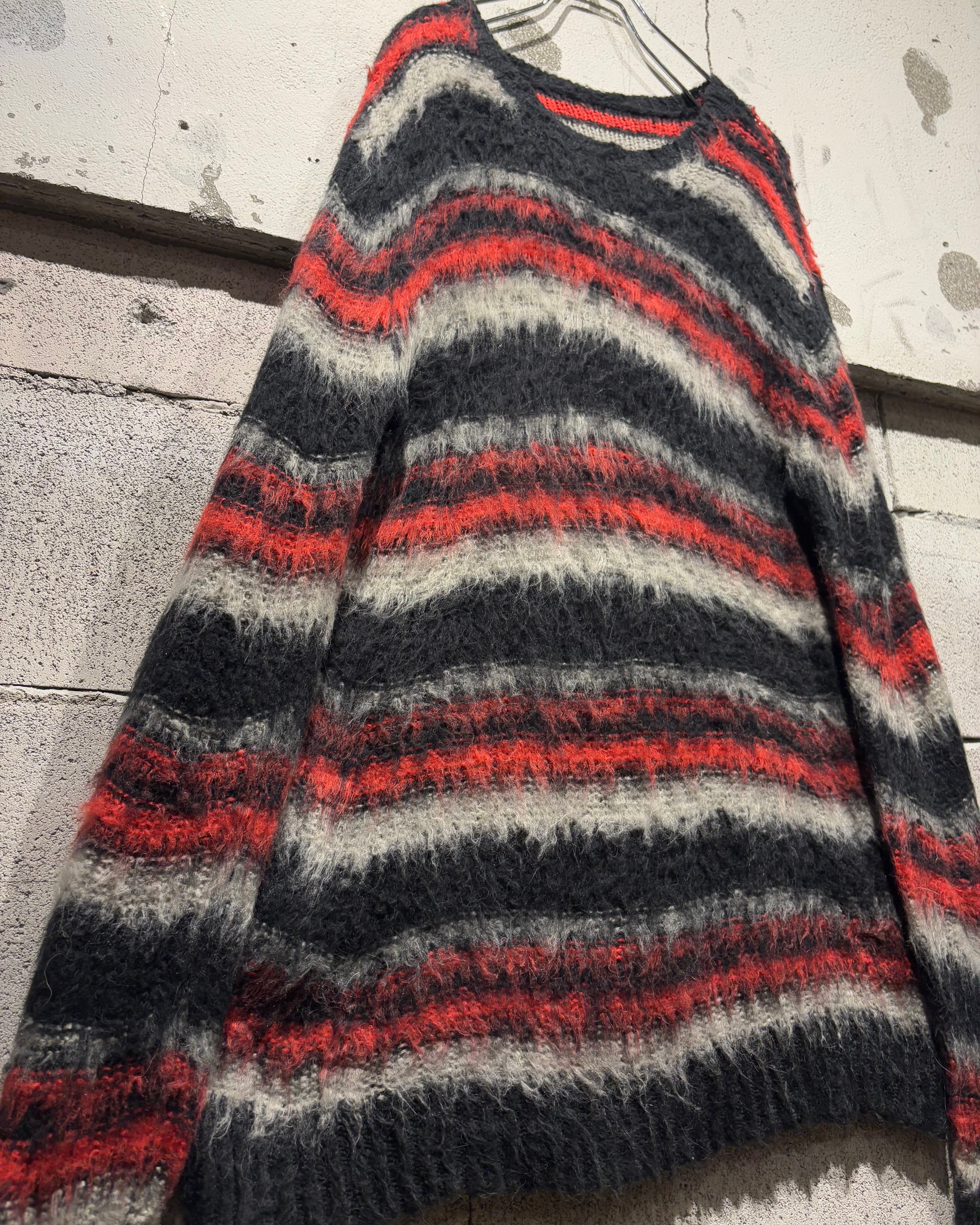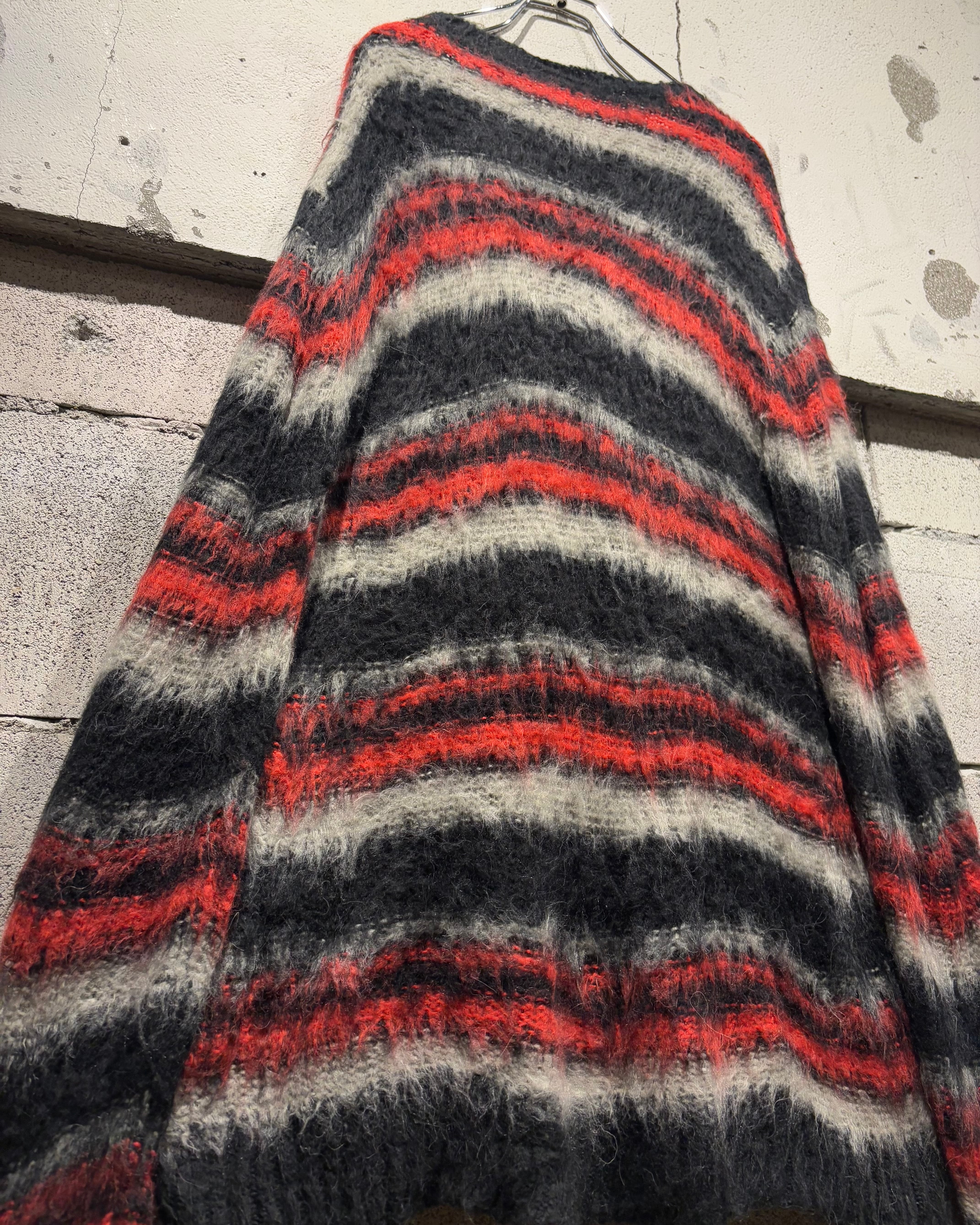 毛足のある特有の表情と、ボーダーの配色が印象的なニットをご紹介いたします。