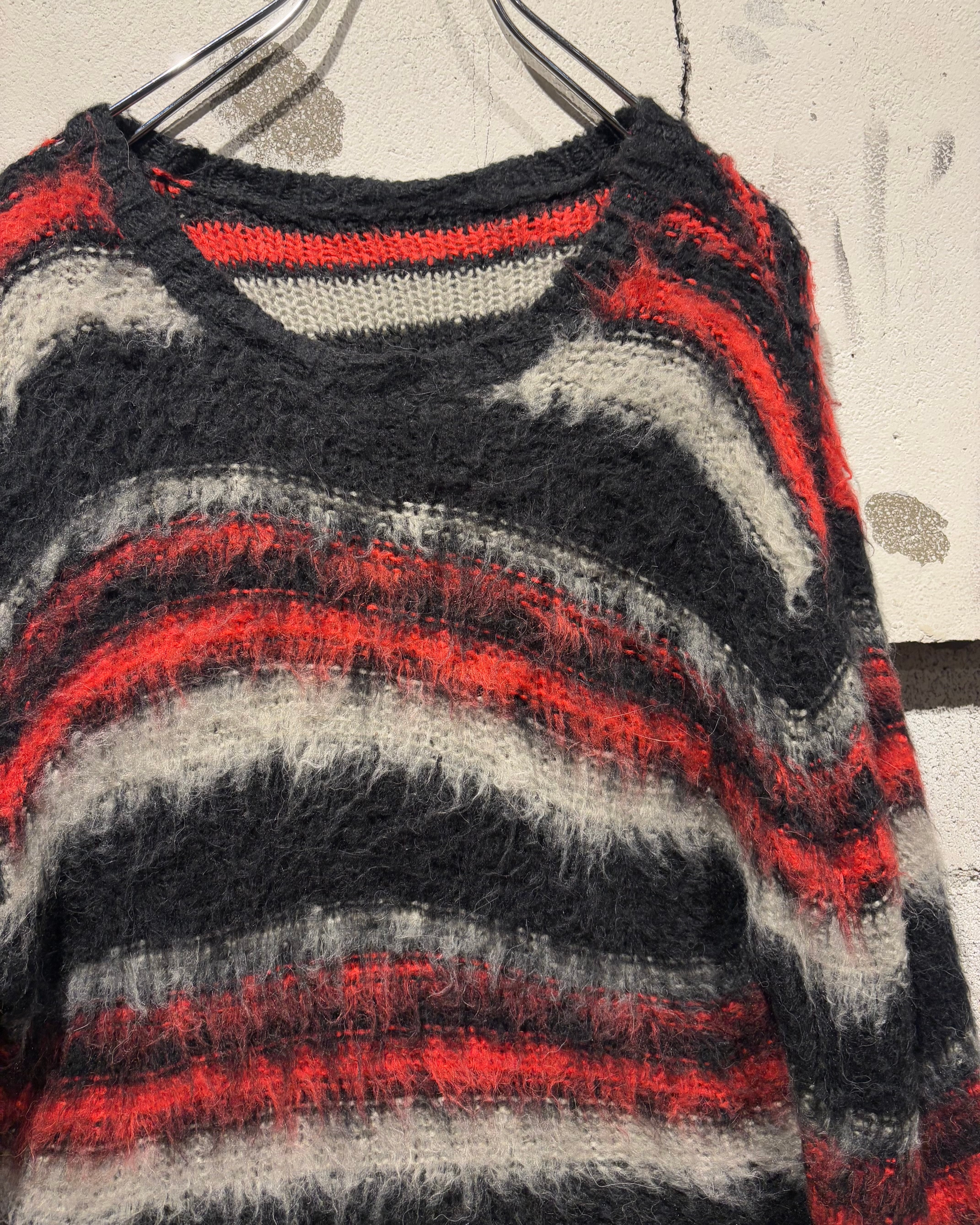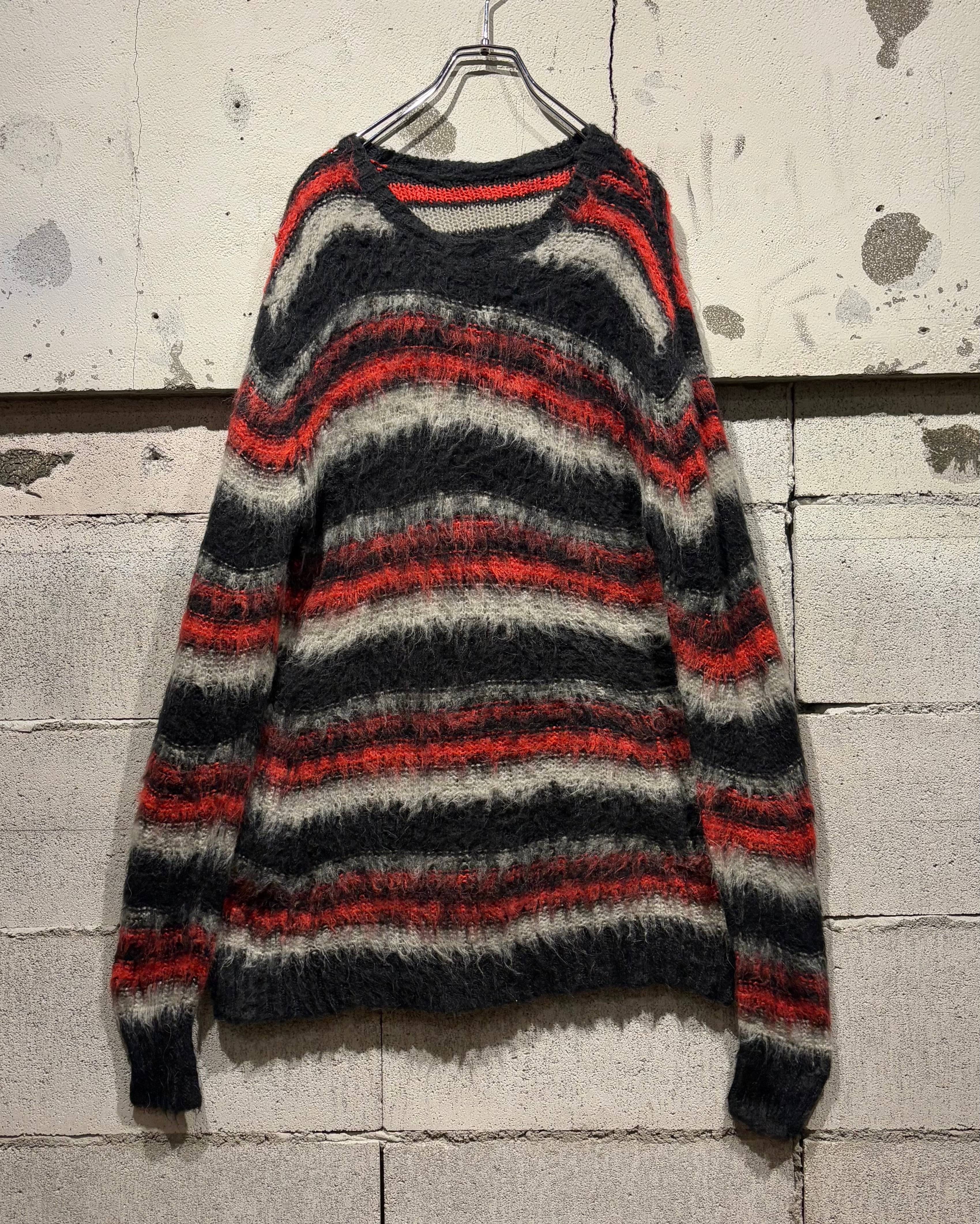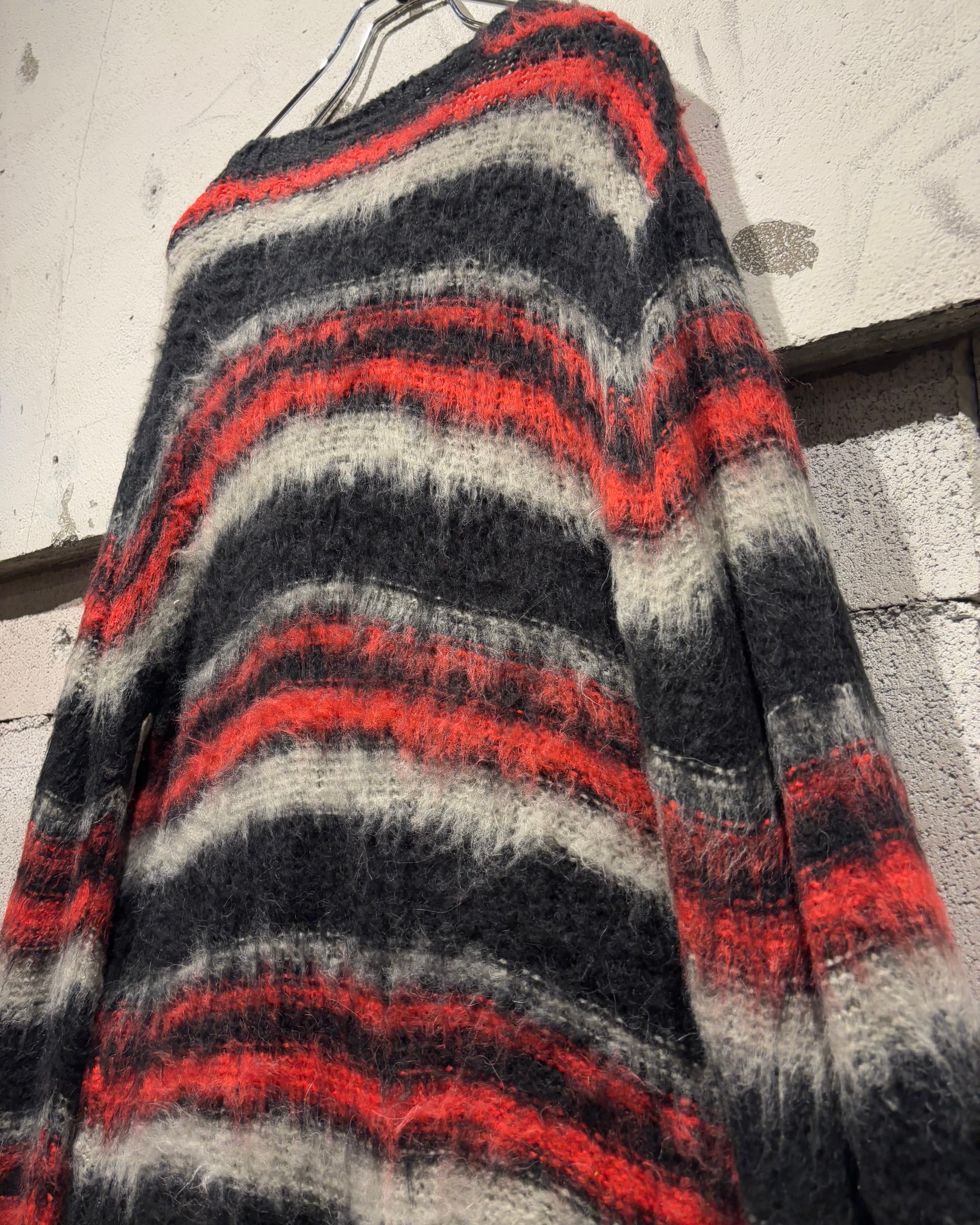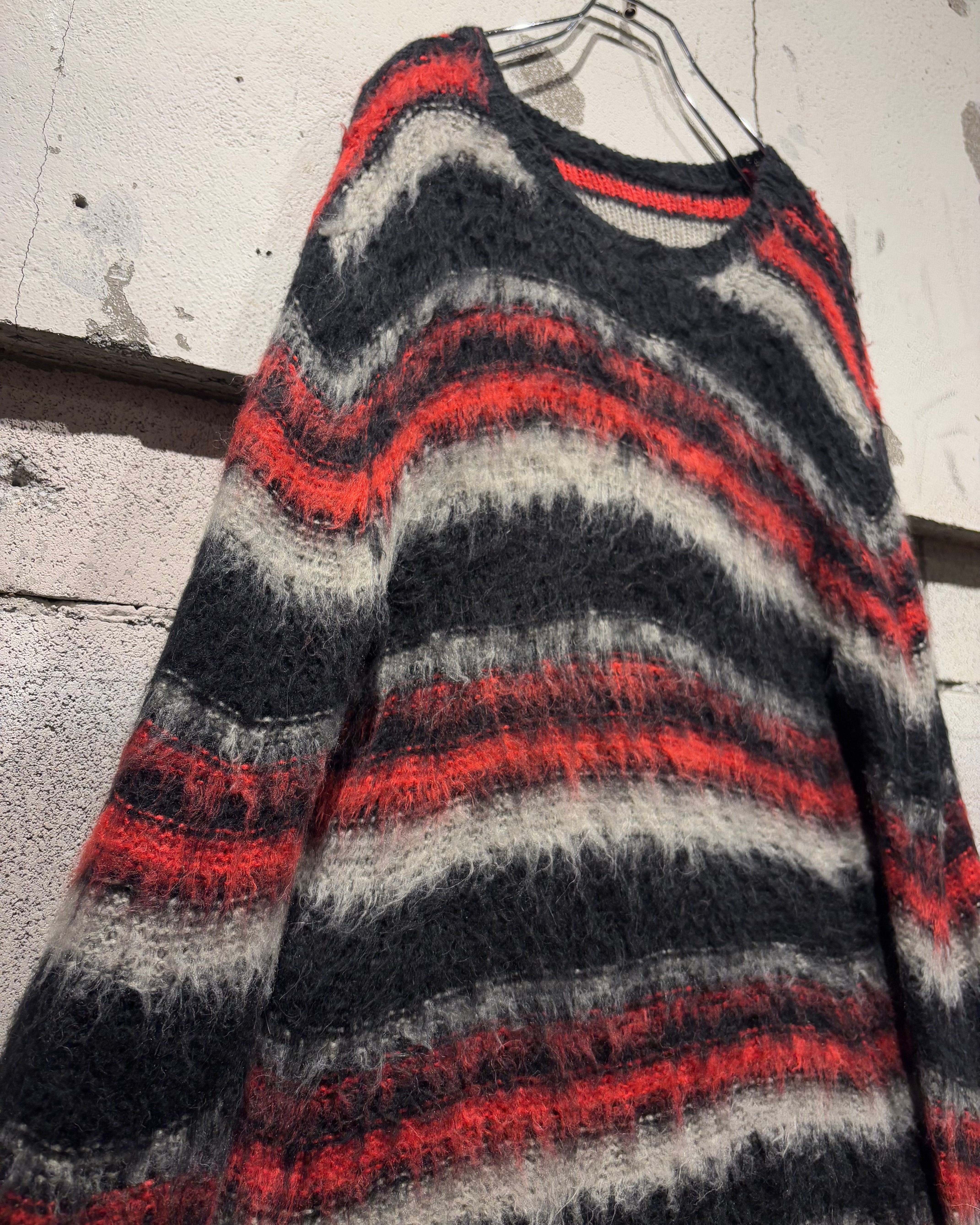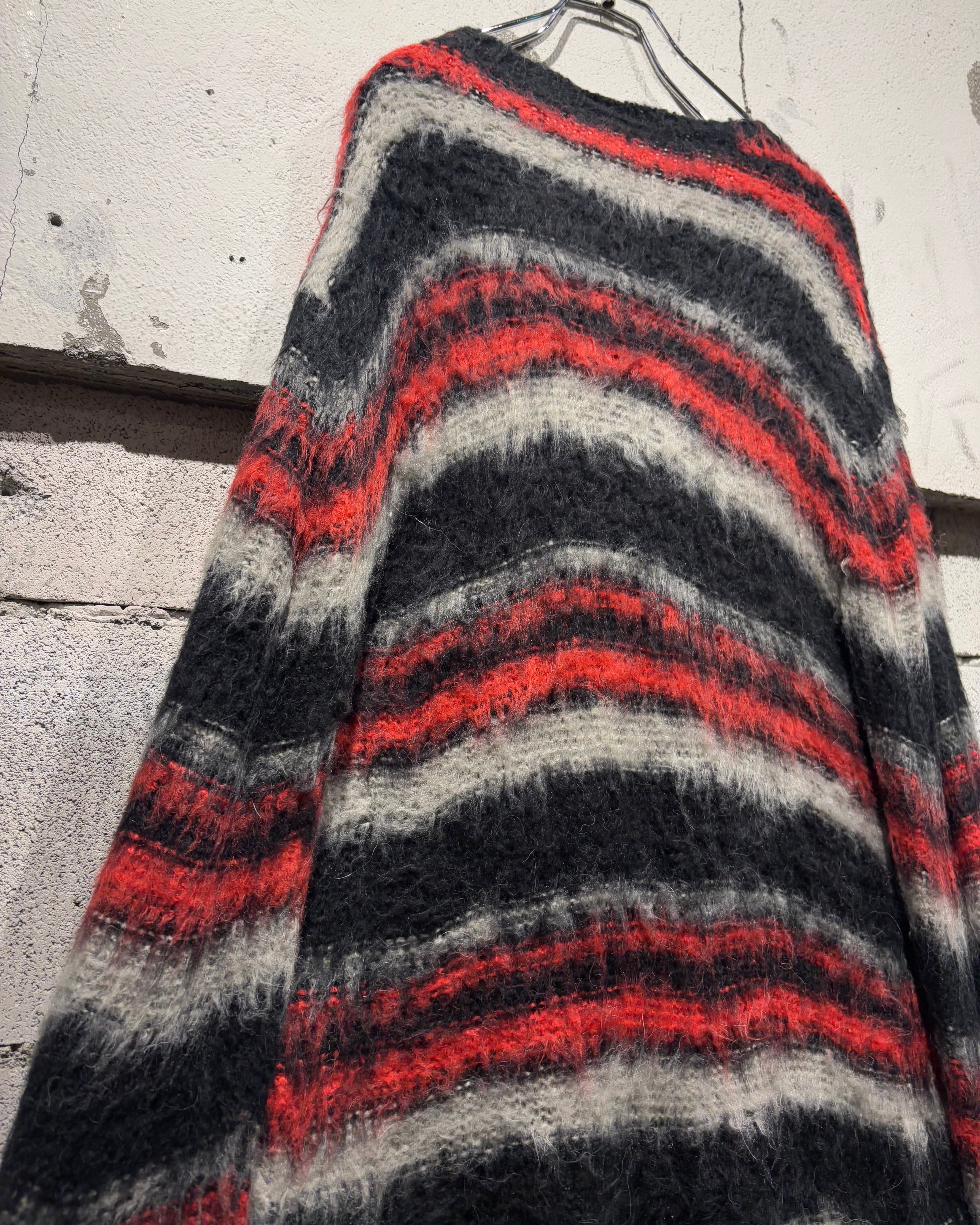 毛足のある特有の表情と、ボーダーの配色が印象的なニットをご紹介いたします。