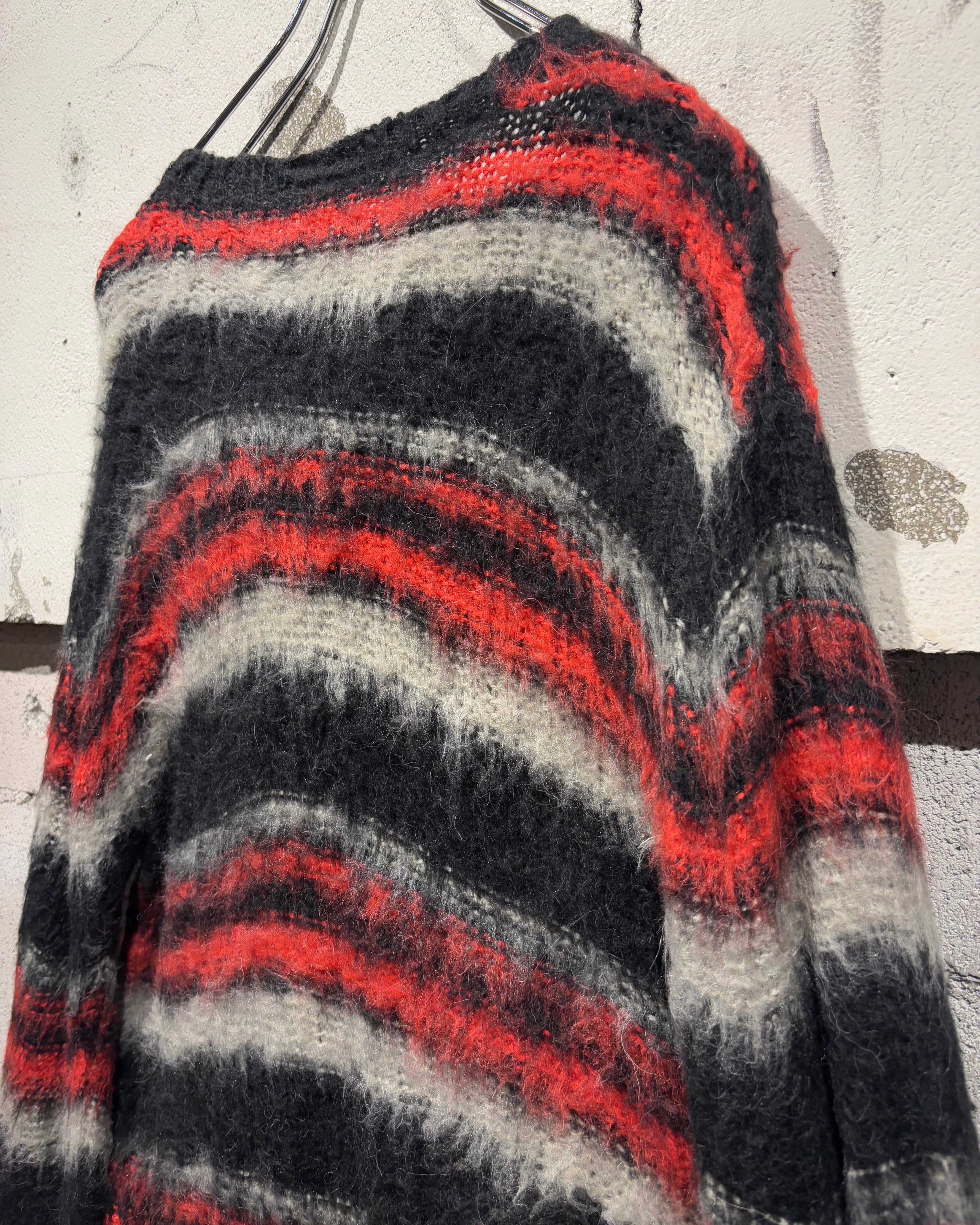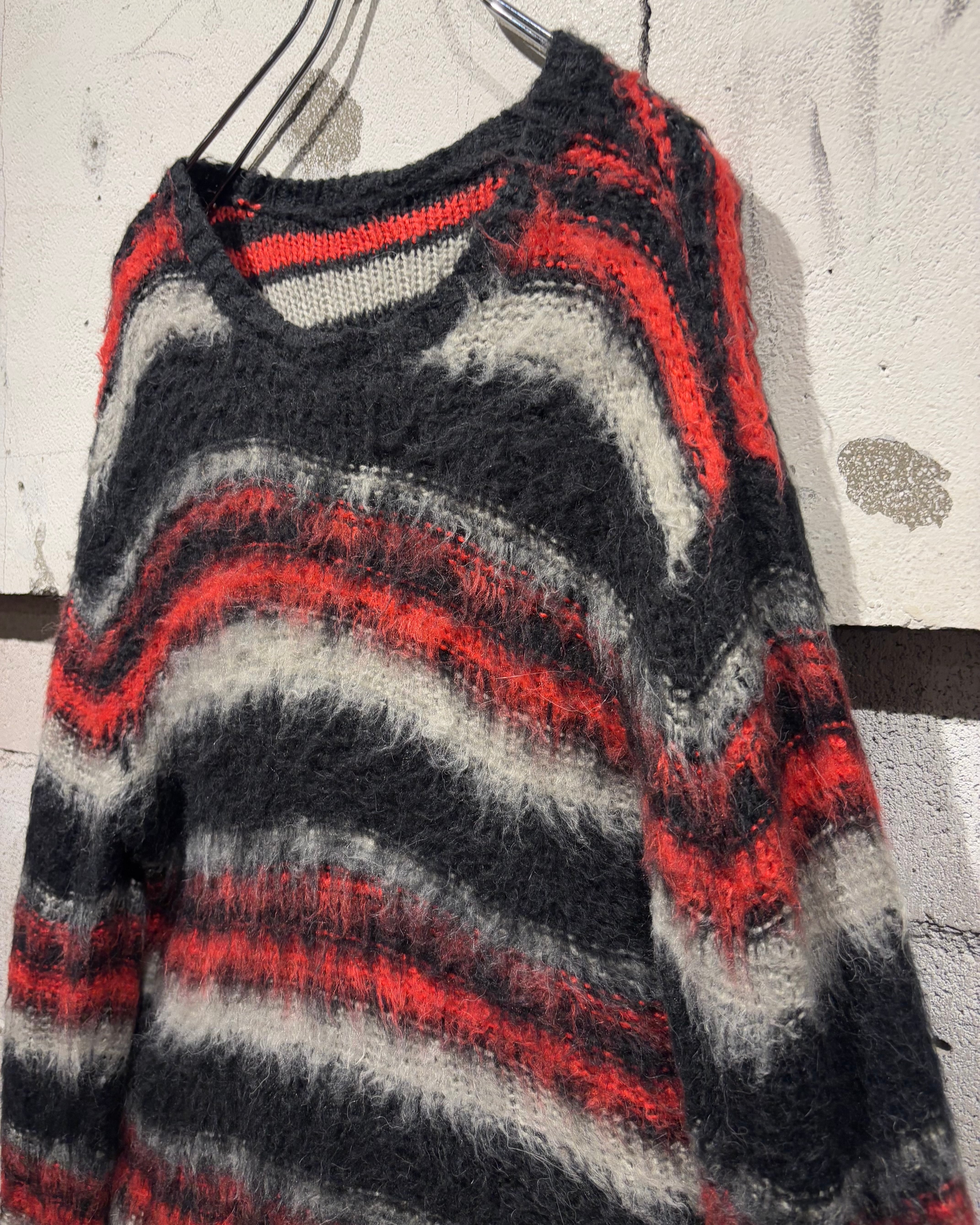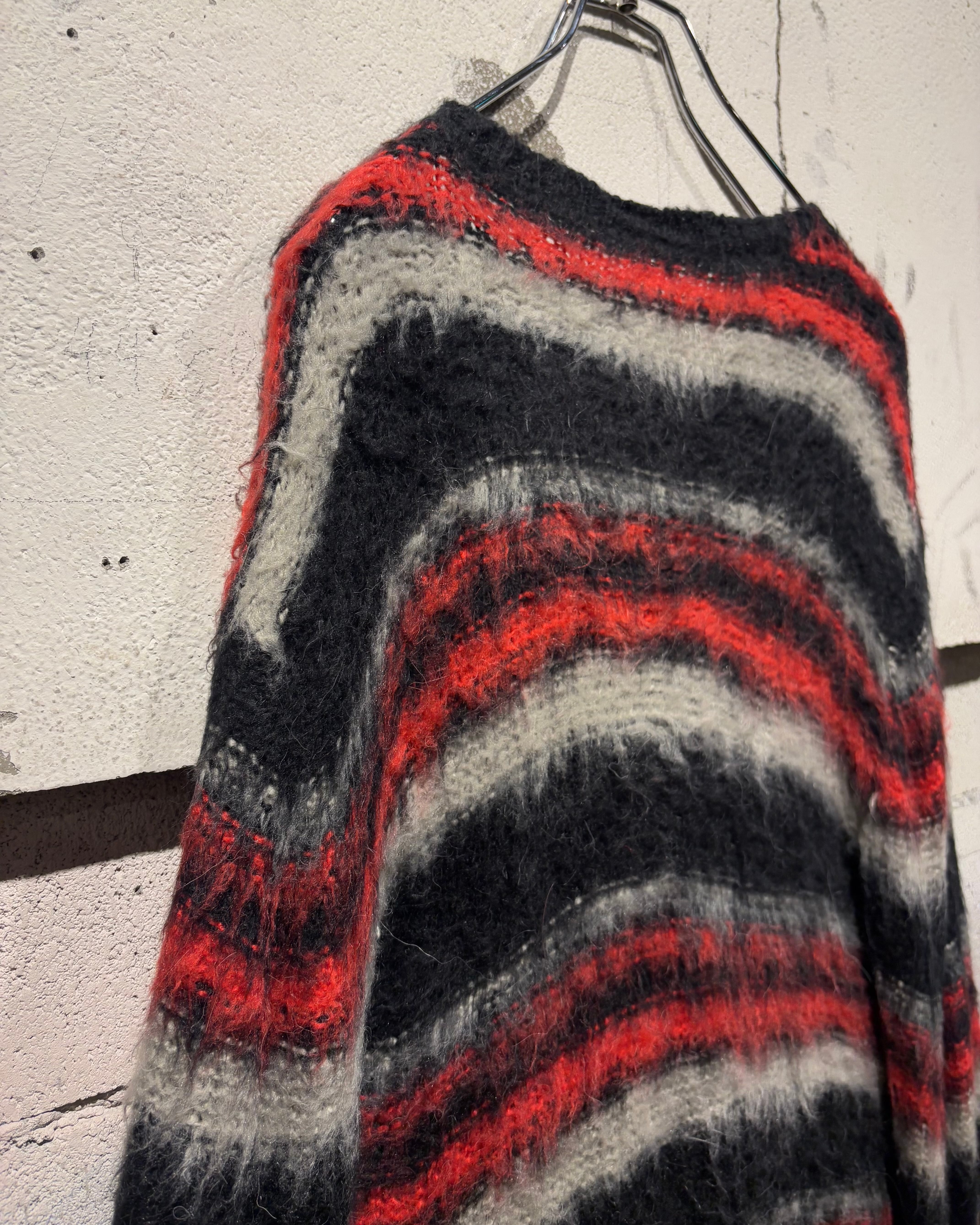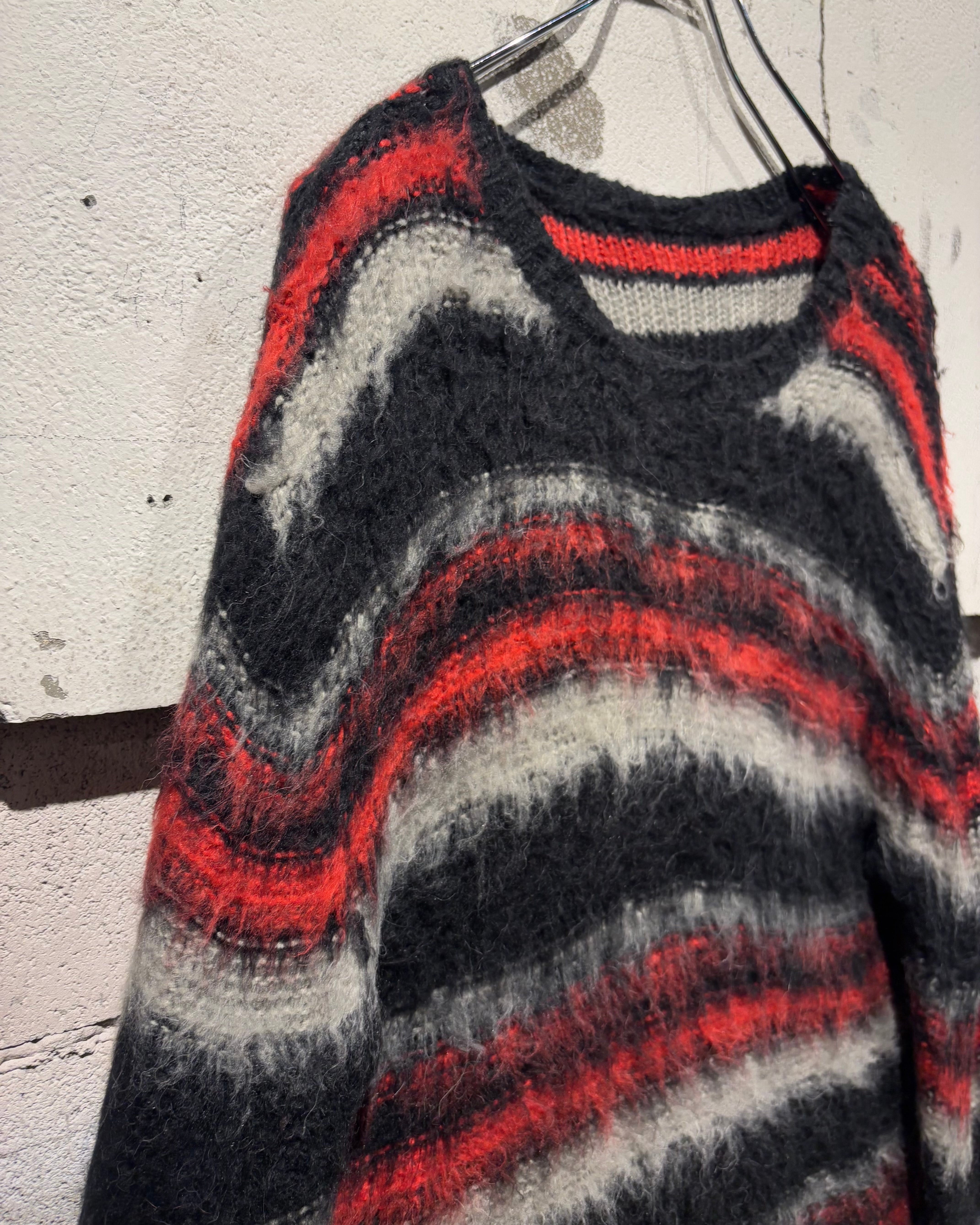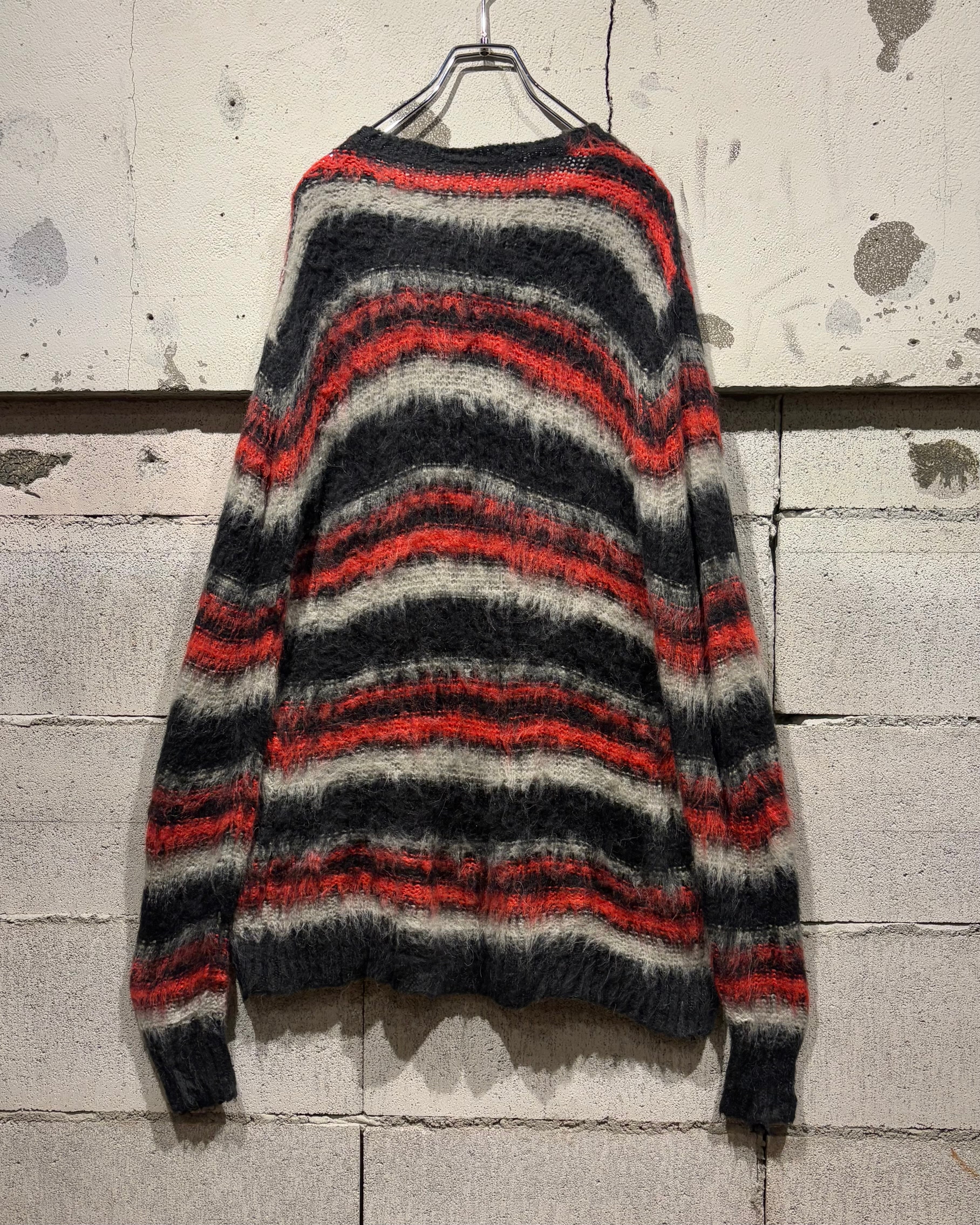 毛足のある特有の表情と、ボーダーの配色が印象的なニットをご紹介いたします。