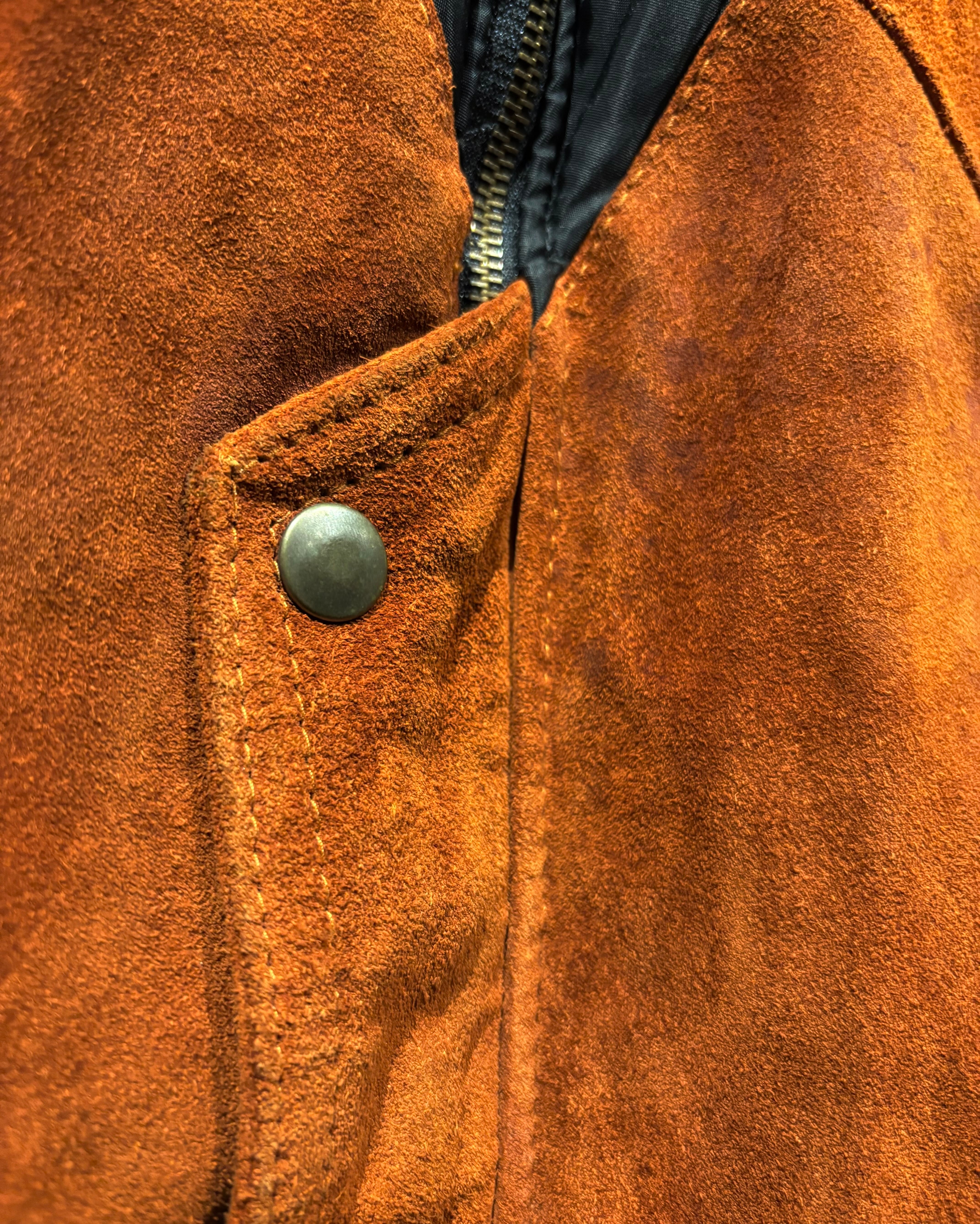 フロントはスナップボタンとジップの二重構造。エルボーパッチ、背面ヨークのスエード切り替えなど、細部まで抜かりないディテールワークが光ります。