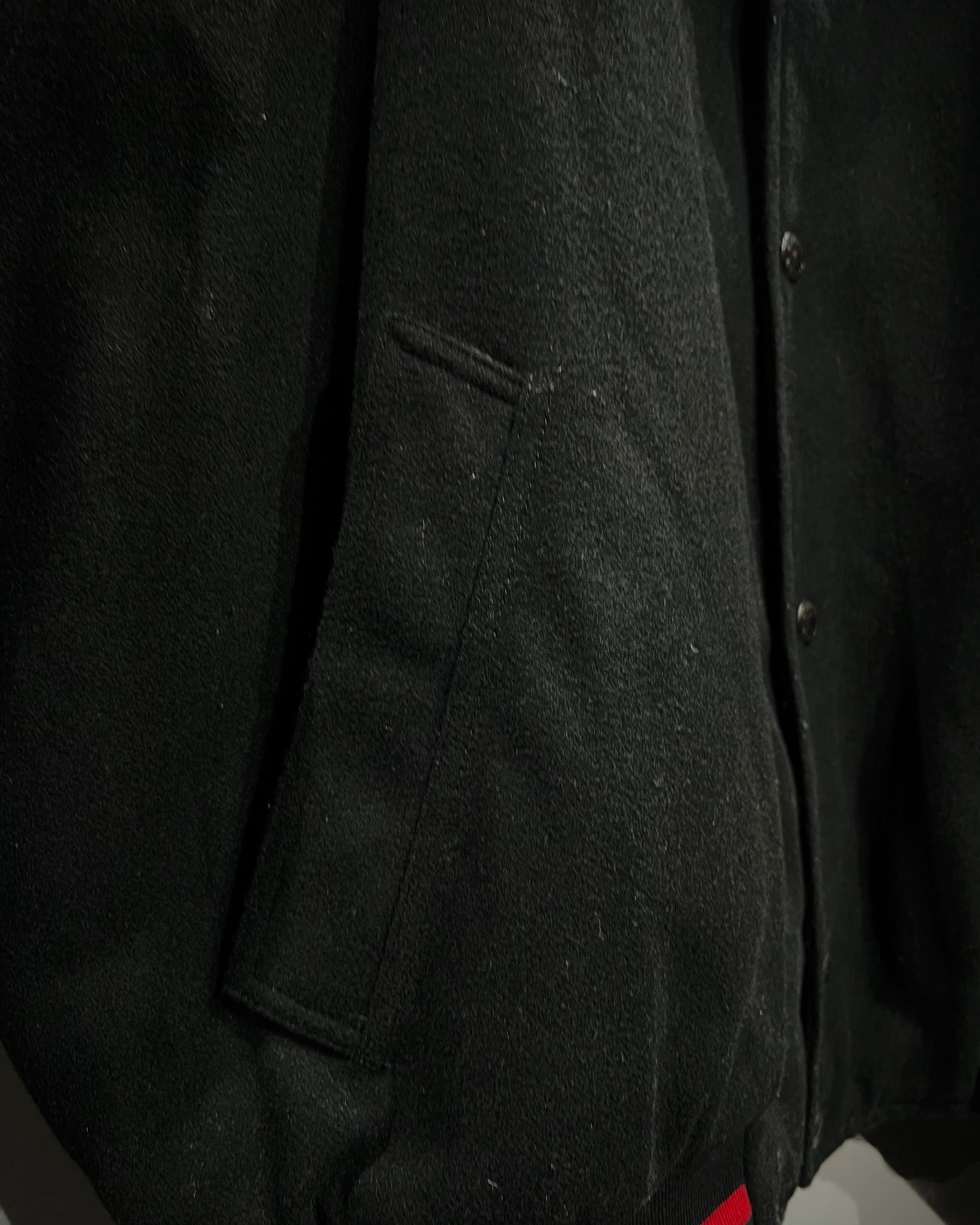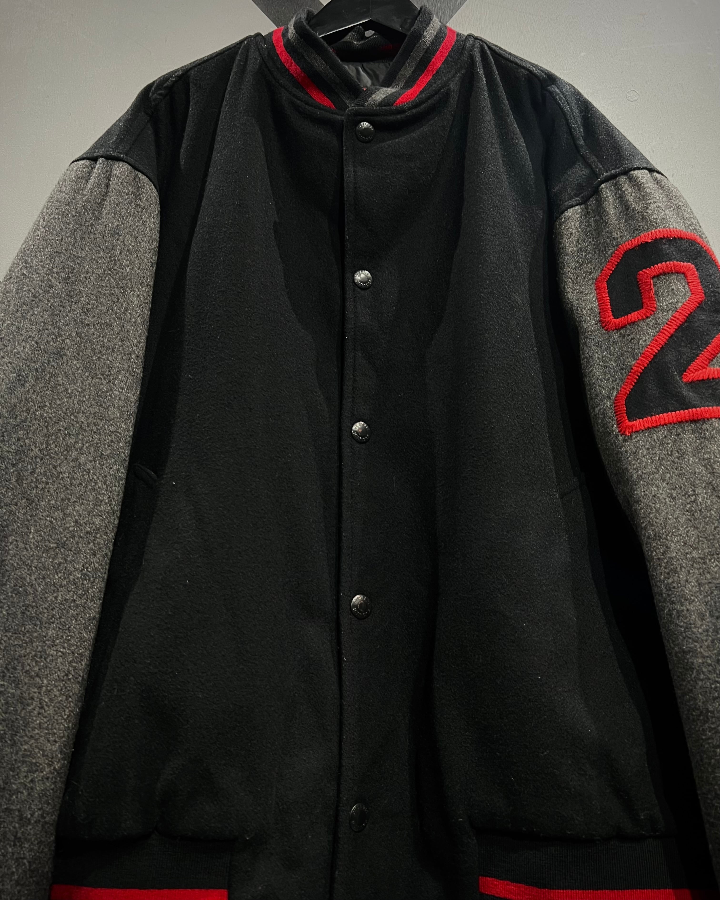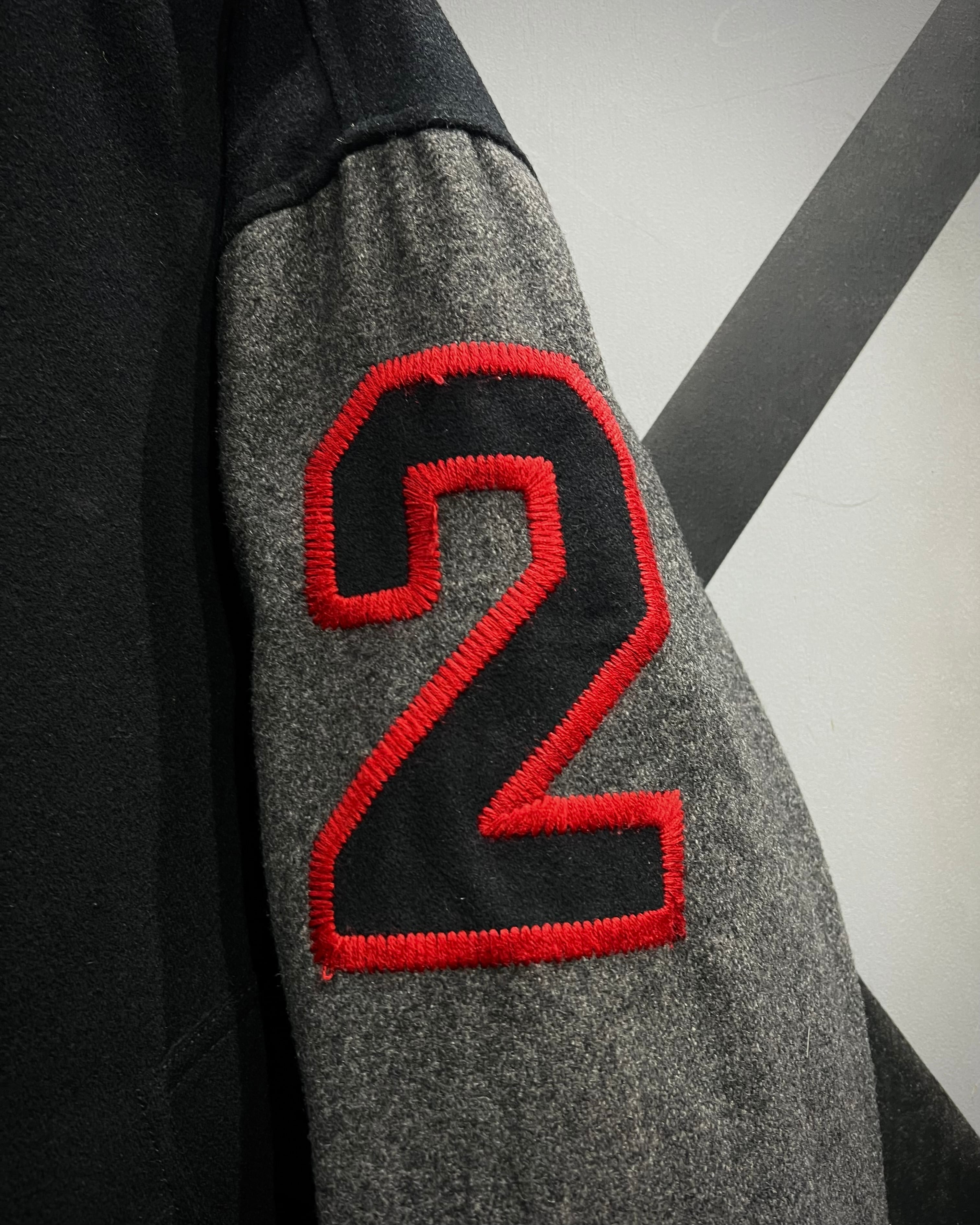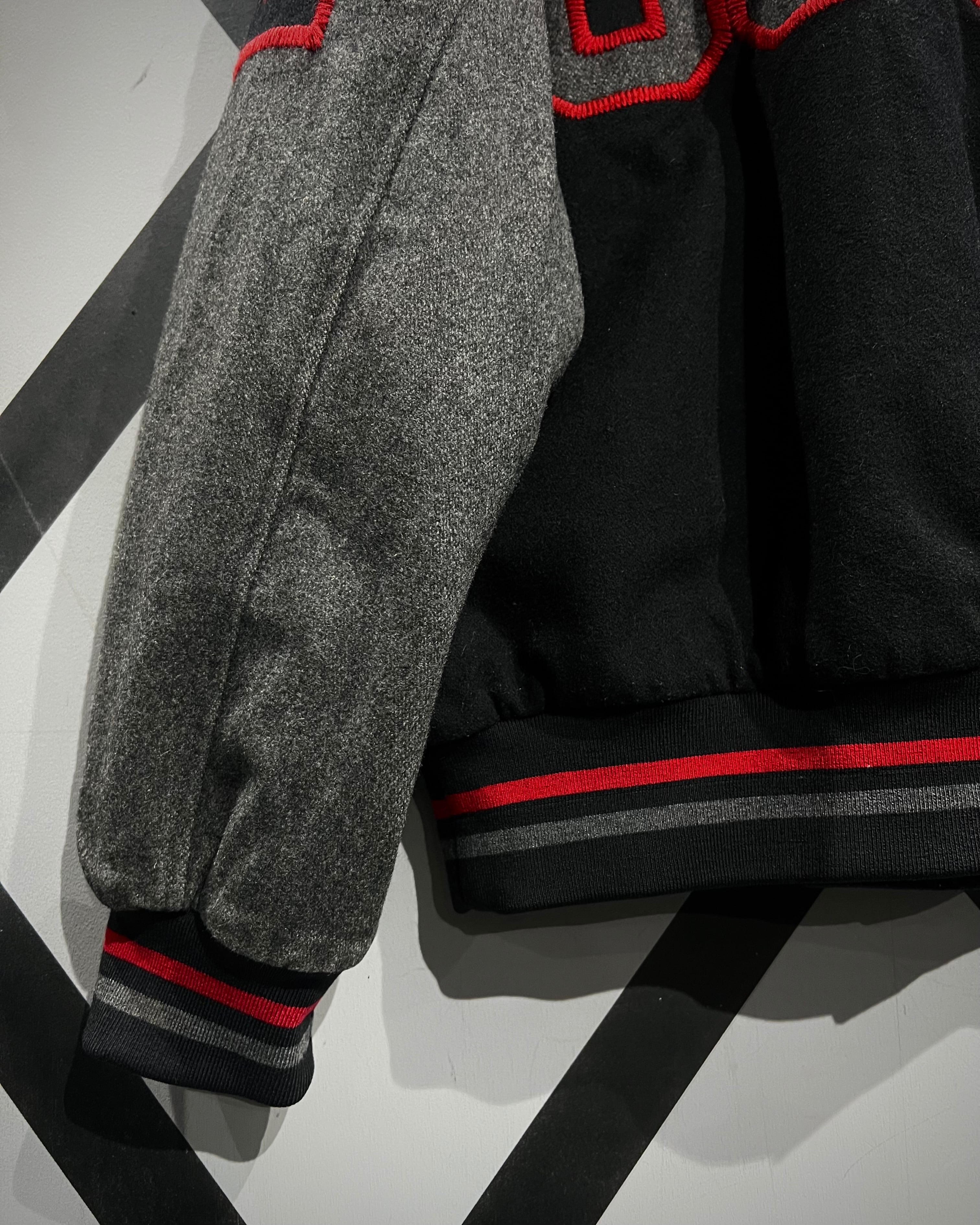 ブラックのウールボディに、グレースリーブを組み合わせた王道ながら完成度の高い配色。肉厚で上質なウール素材を用いることで、スポーツ由来のアイテムでありながら、しっかりとラグジュアリーな空気感を纏っています。