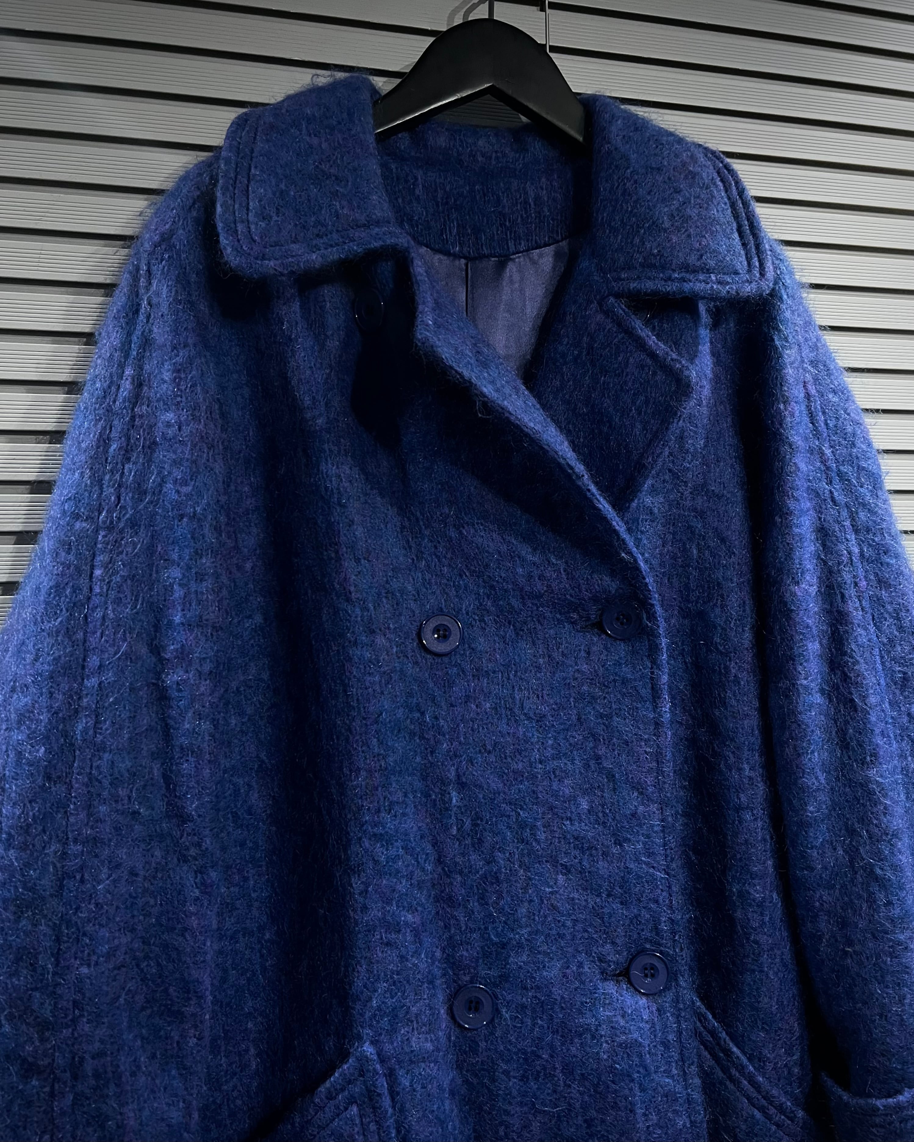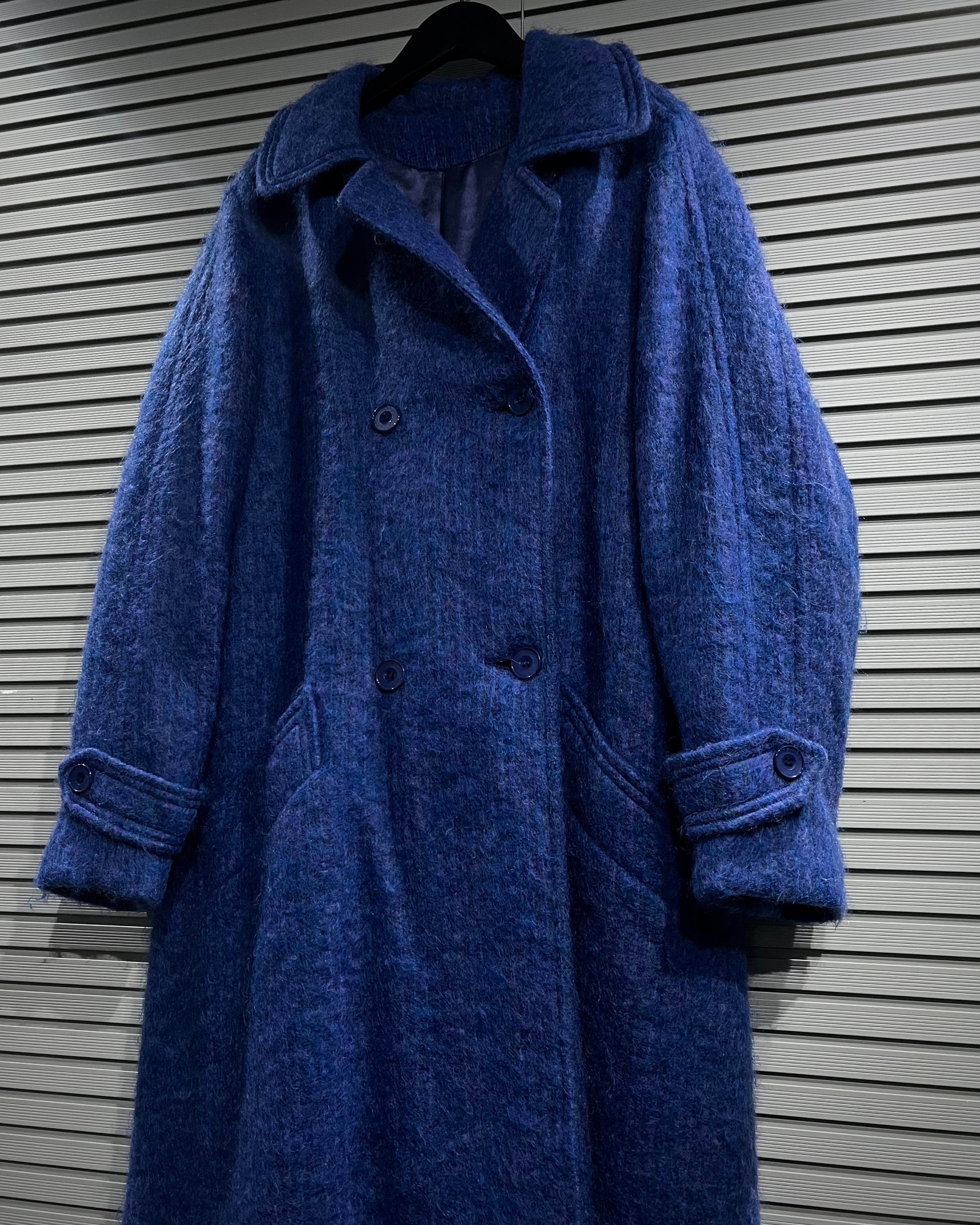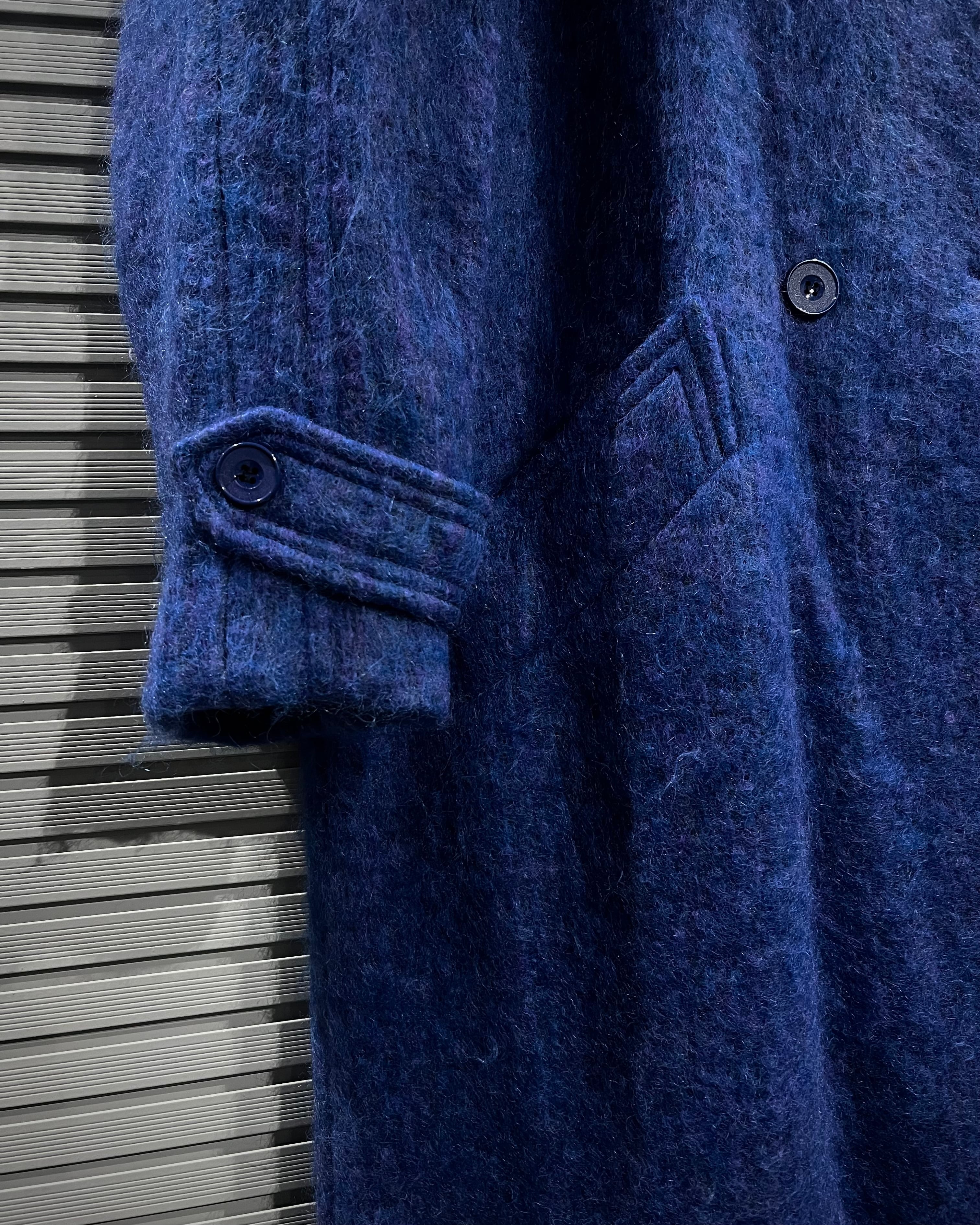 毛足のあるモヘアが主なファブリックを用いた、雰囲気抜群のロングコート。
