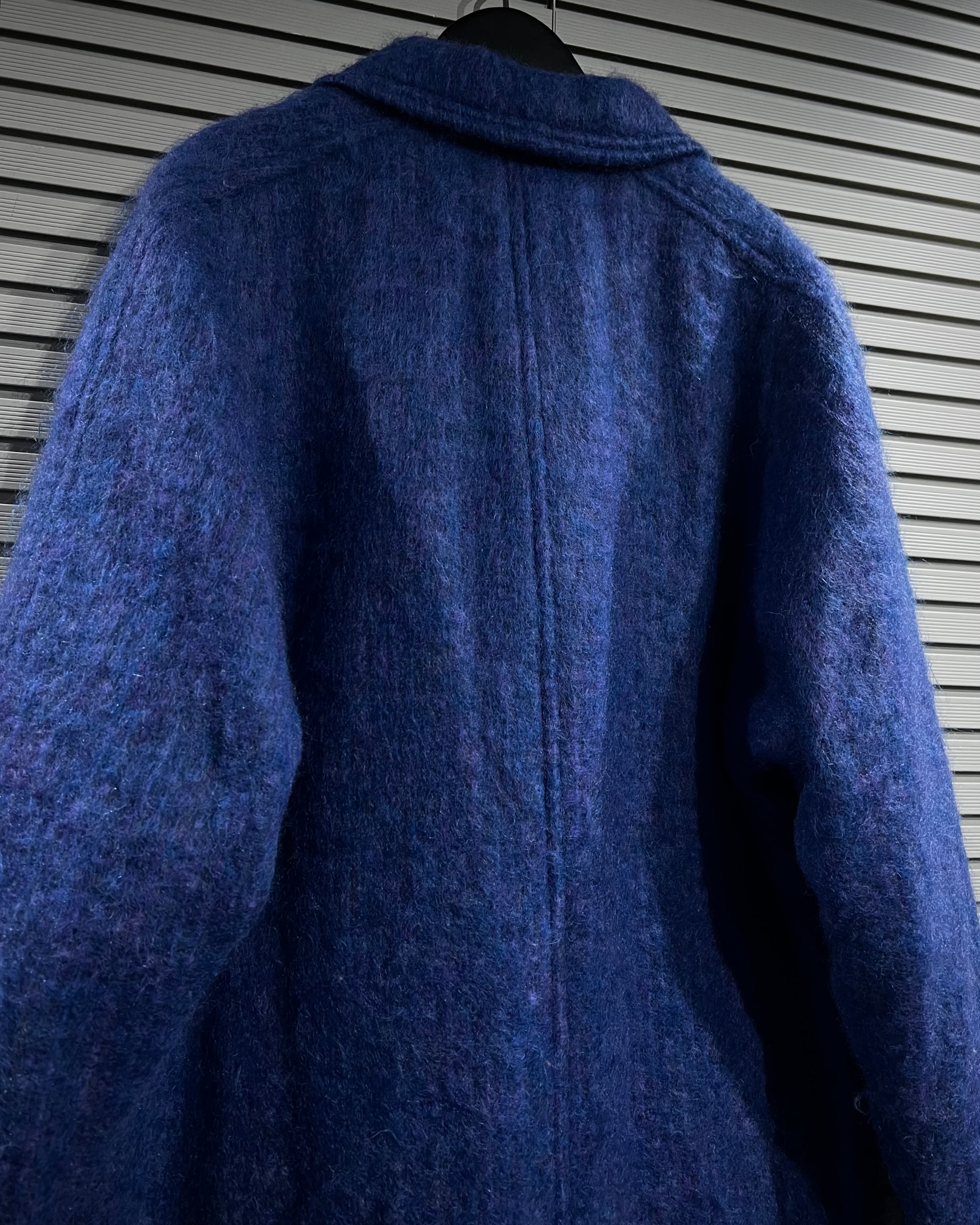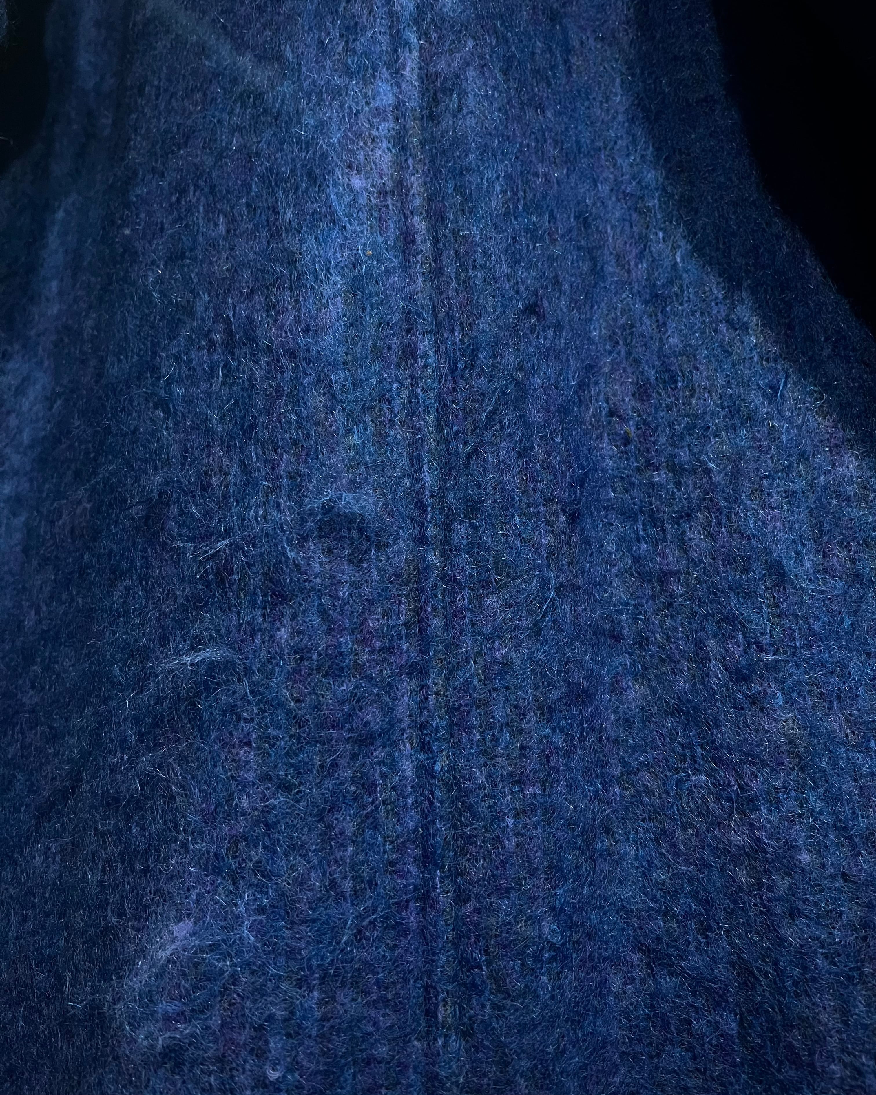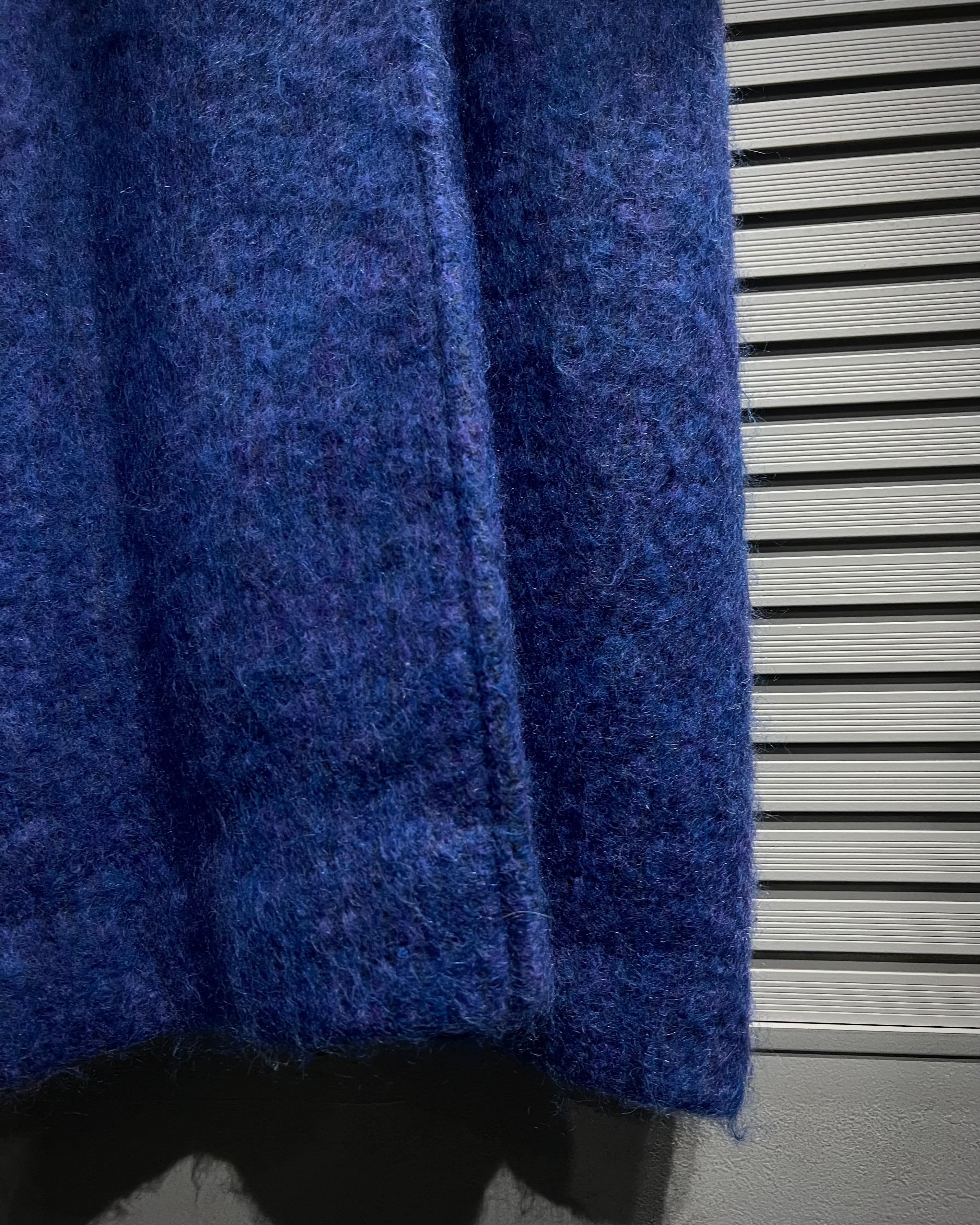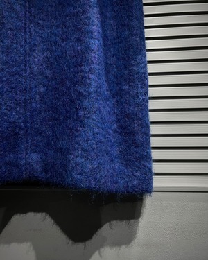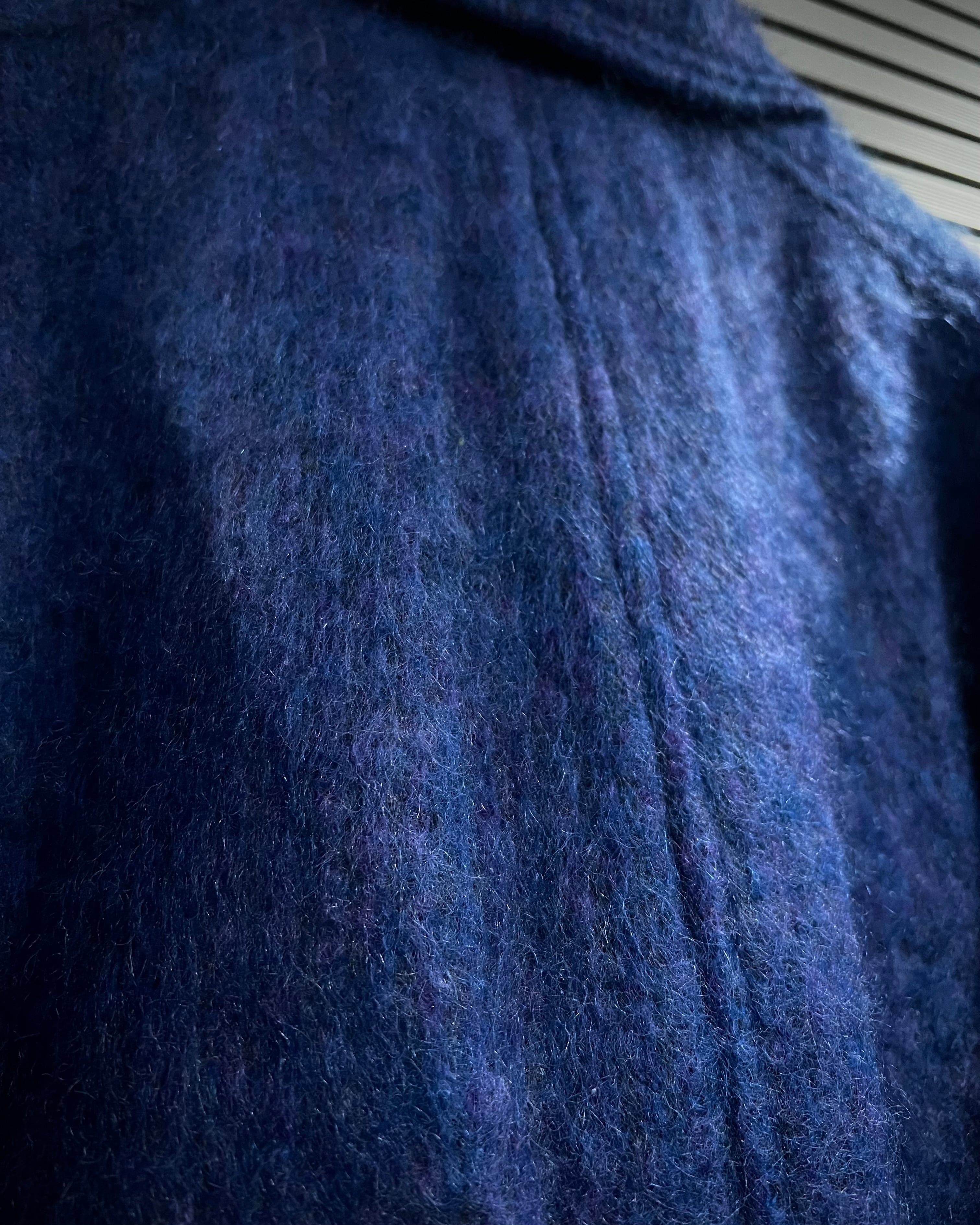 ボディにはモヘア混ウールを採用。起毛感のある柔らかな表情と、奥行きのあるブルートーンが印象的で、光の当たり方によって表情を変える非常に雰囲気のある仕上がりです。