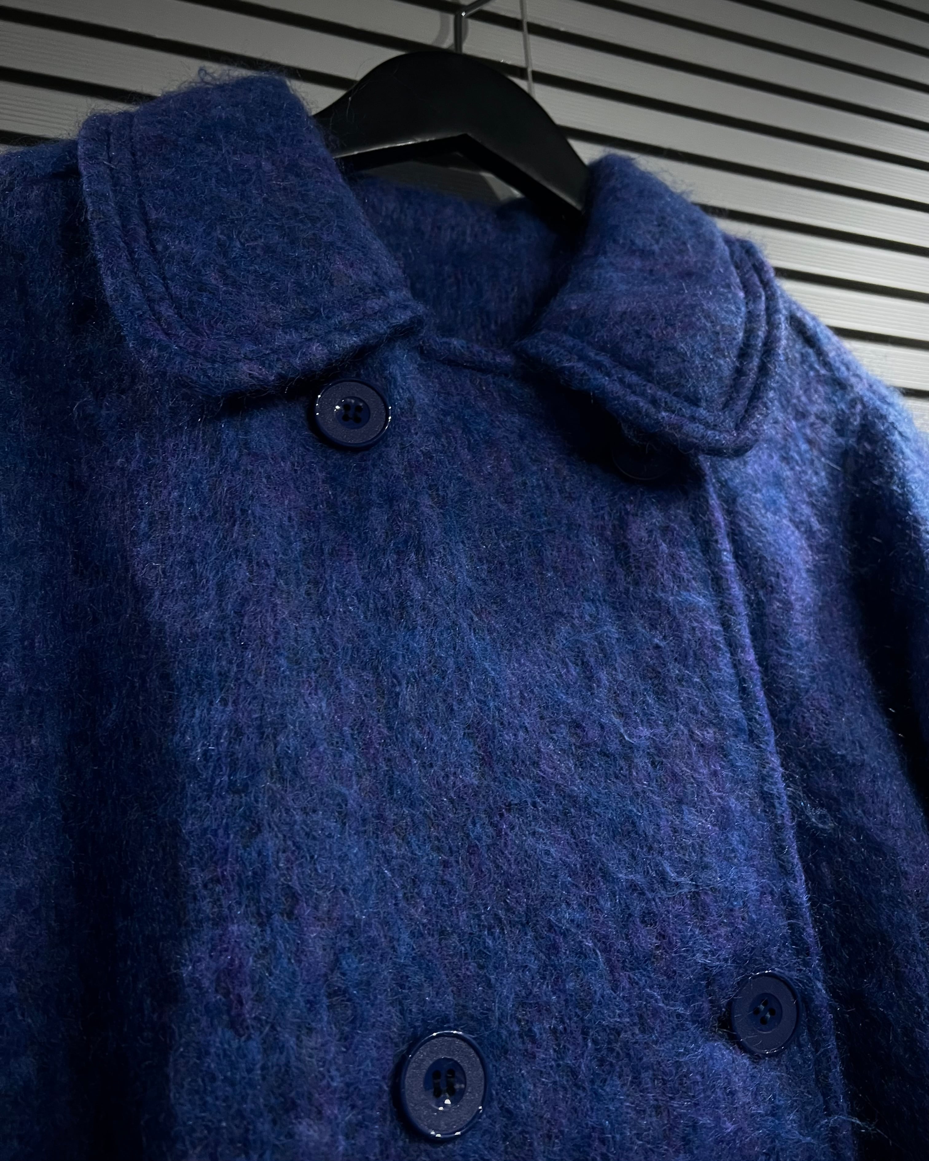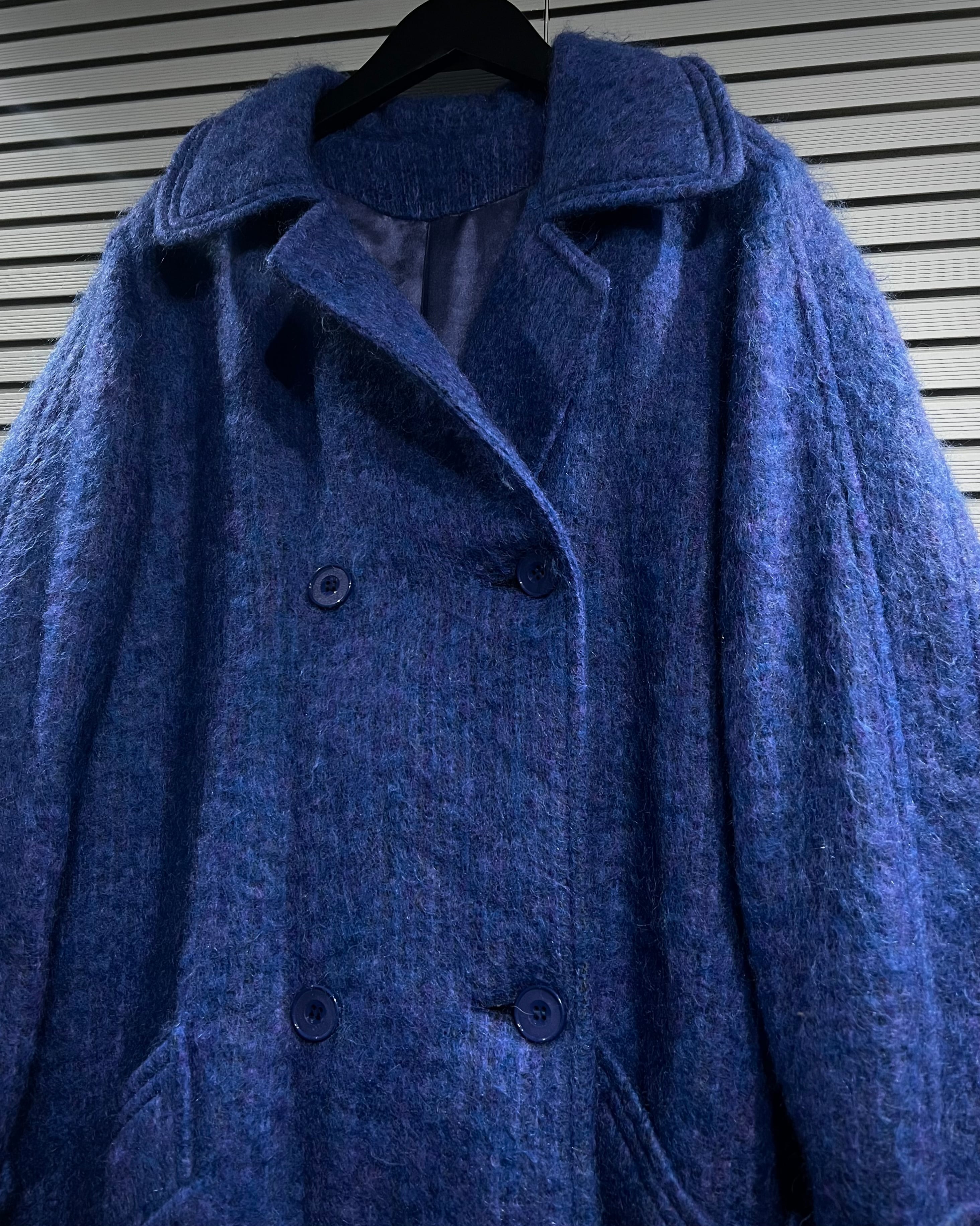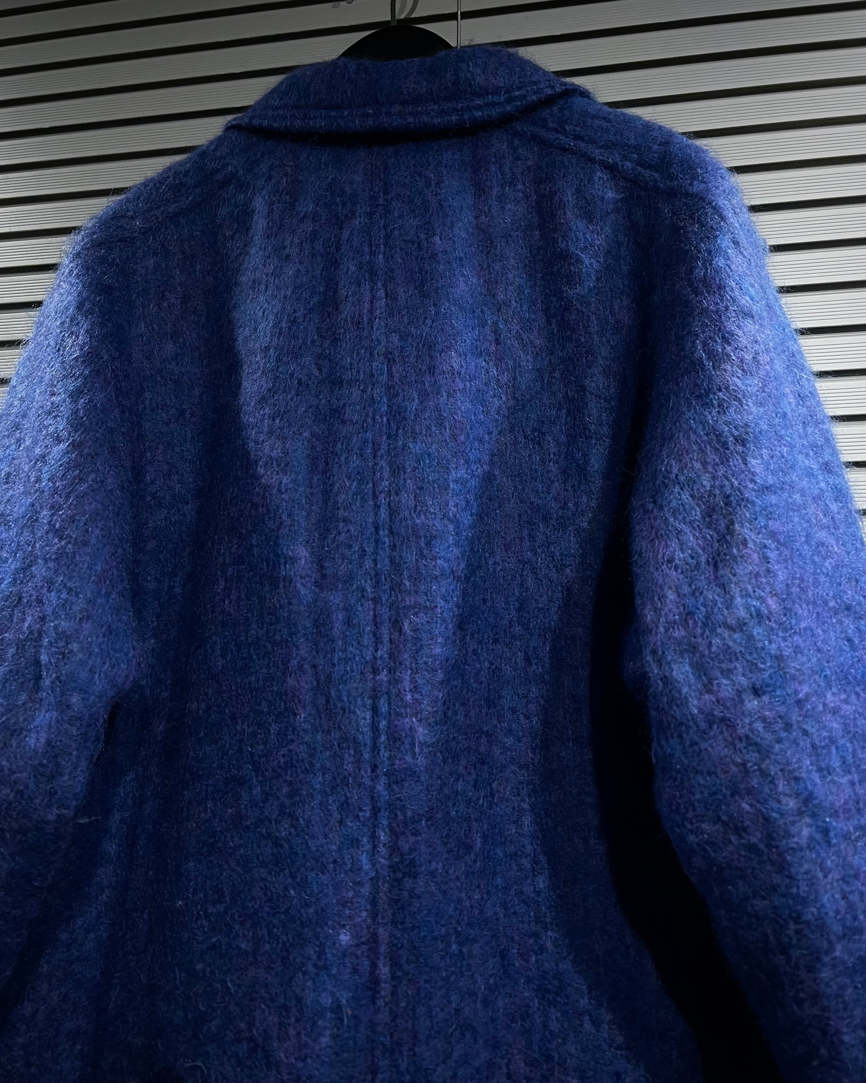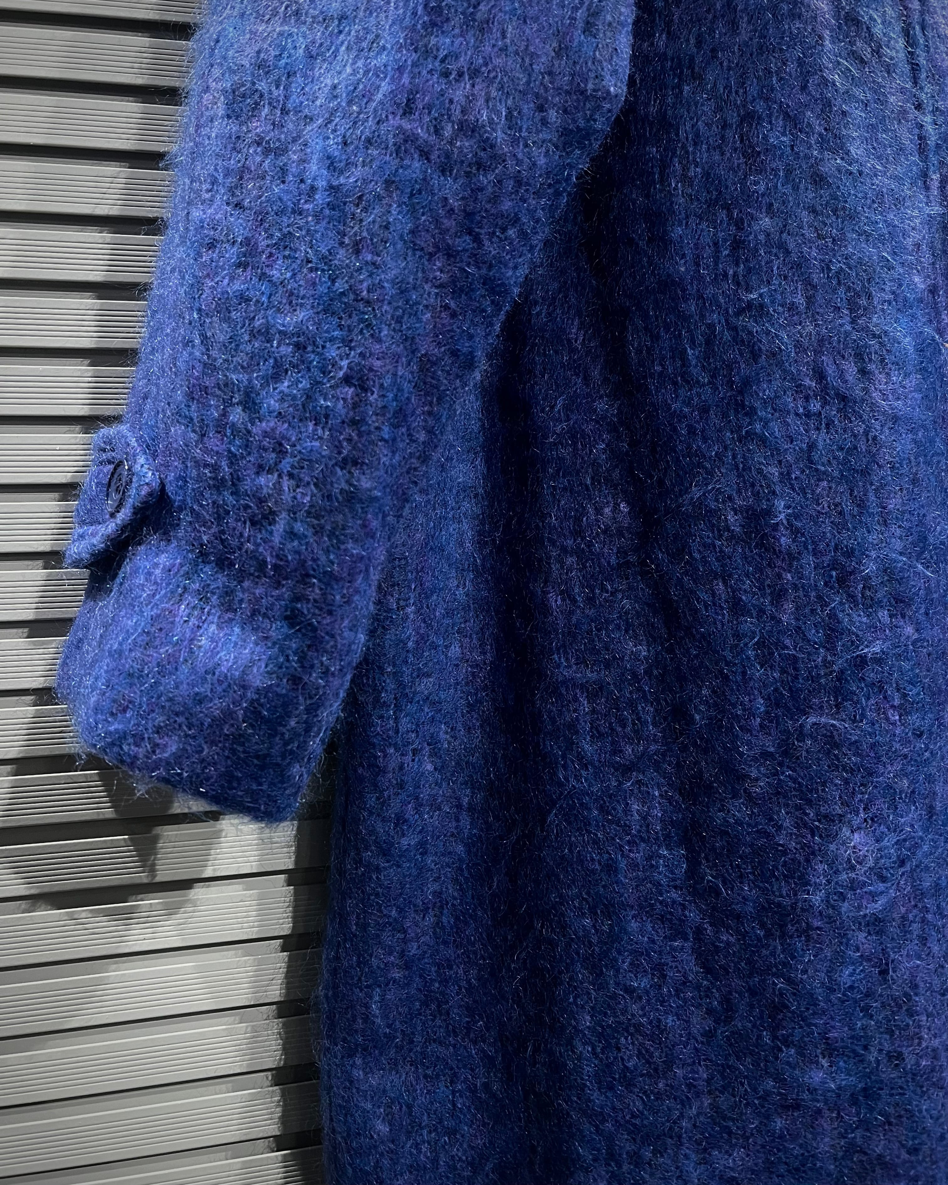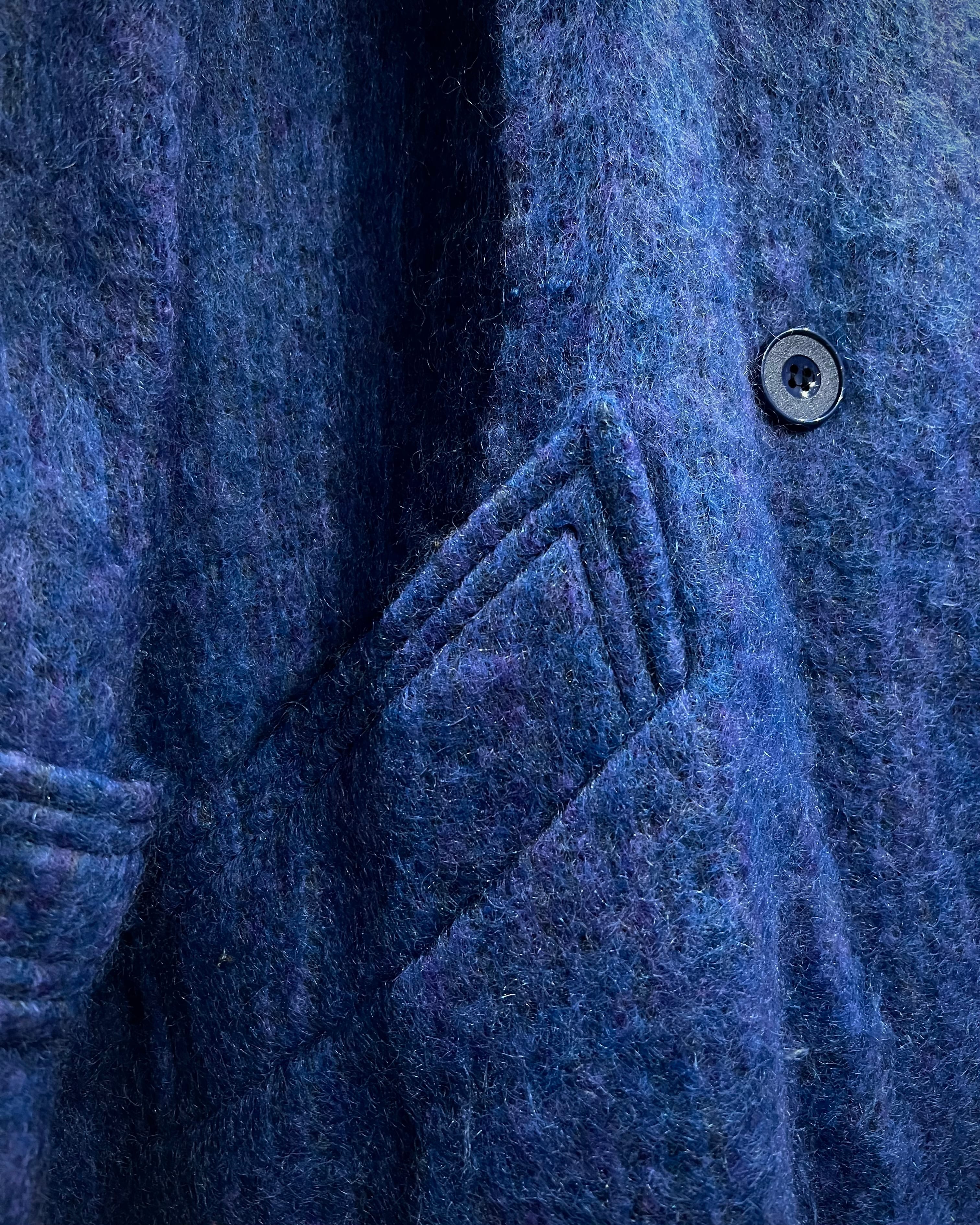 ボディにはモヘア混ウールを採用。起毛感のある柔らかな表情と、奥行きのあるブルートーンが印象的で、光の当たり方によって表情を変える非常に雰囲気のある仕上がりです。