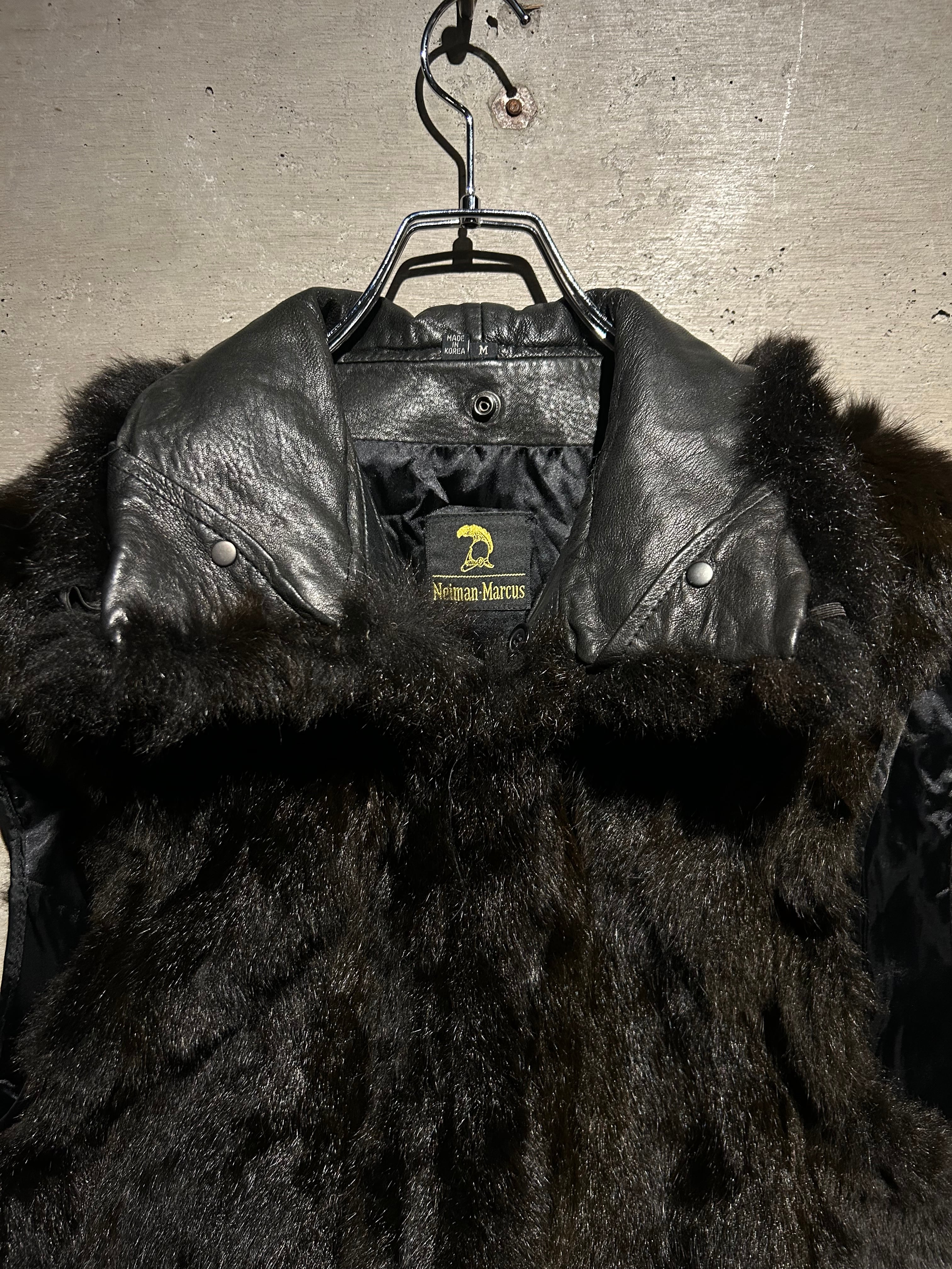 レザー×ファーというラグジュアリーな組み合わせを、実用性とデザイン性の両面から完成度高くまとめ上げた“Neiman Marcus” のスペシャルな1着です。