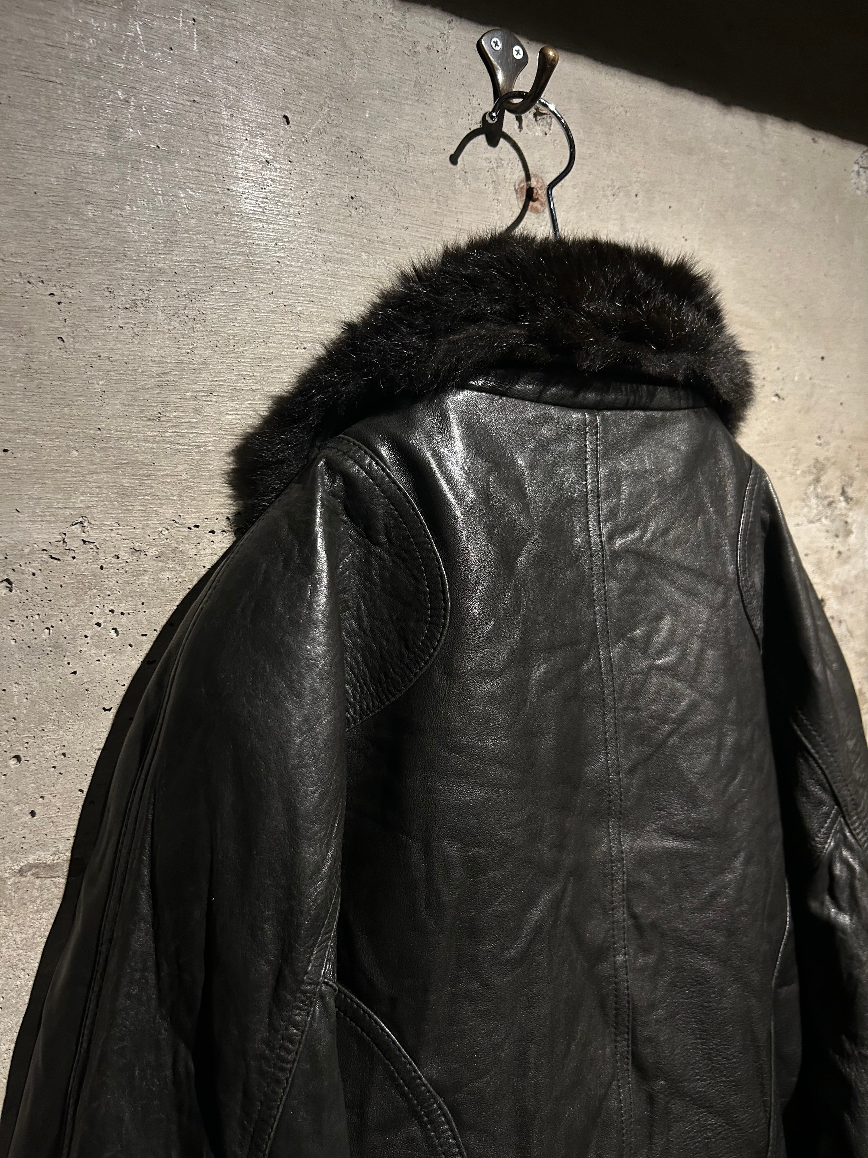 上質でしなやかなブラックレザーをボディに用い、取り外し可能なフェイクファーのライナーを備えたラグジュアリーかつモードな風貌を見せる1着。