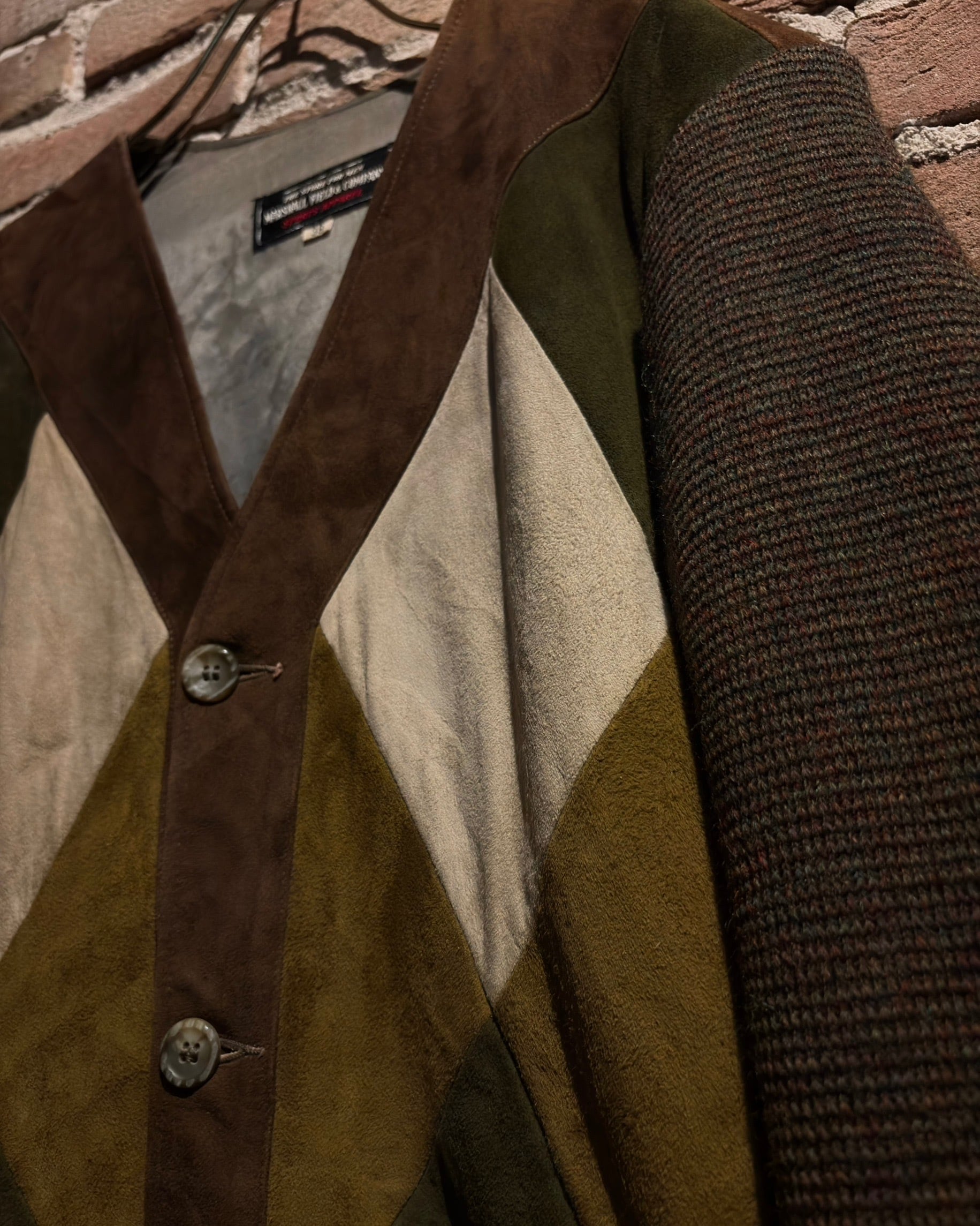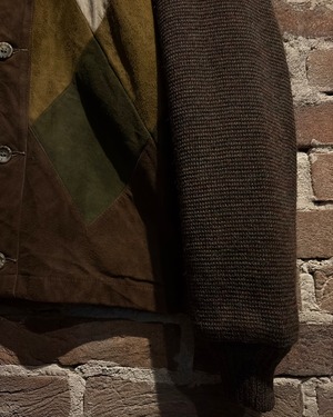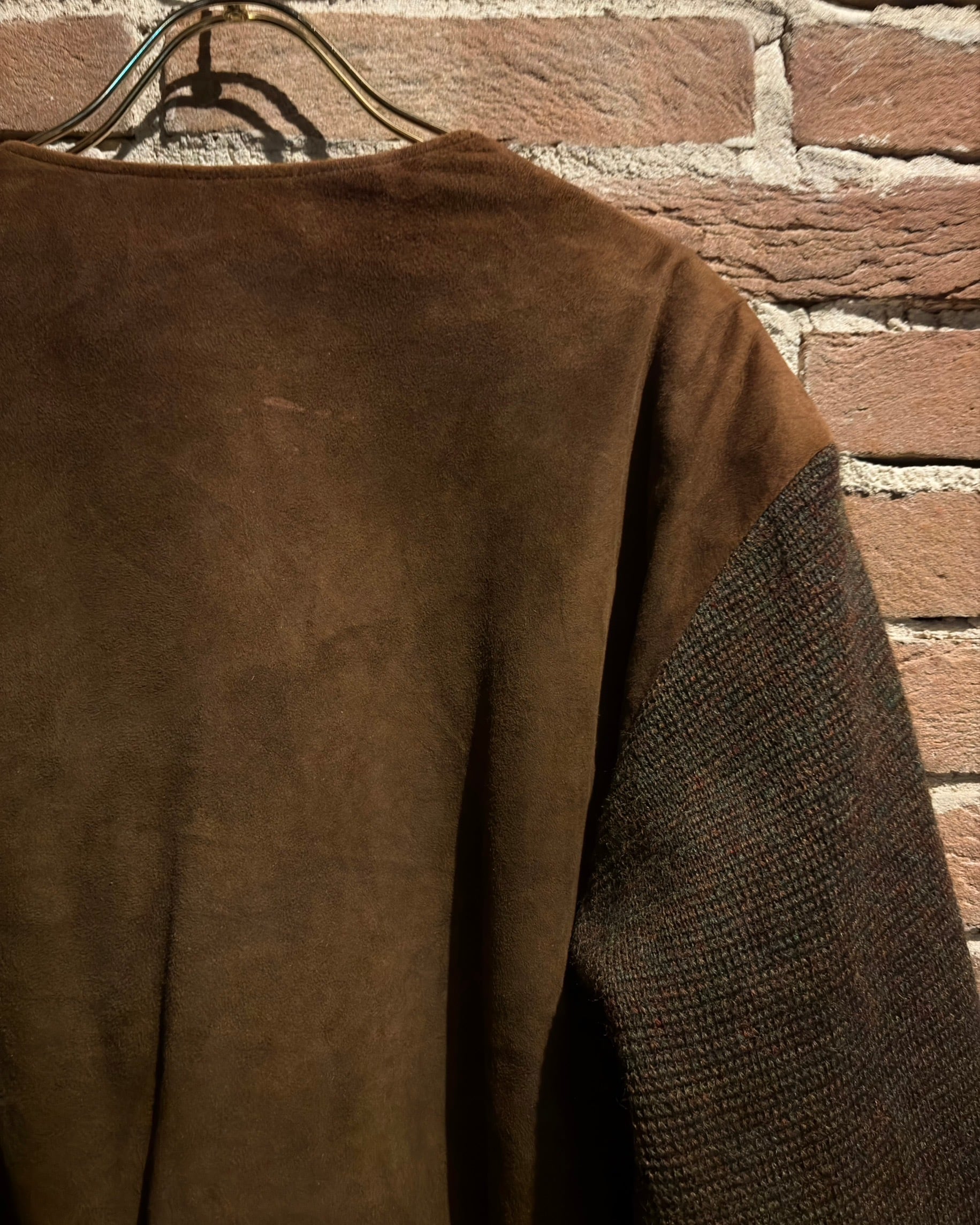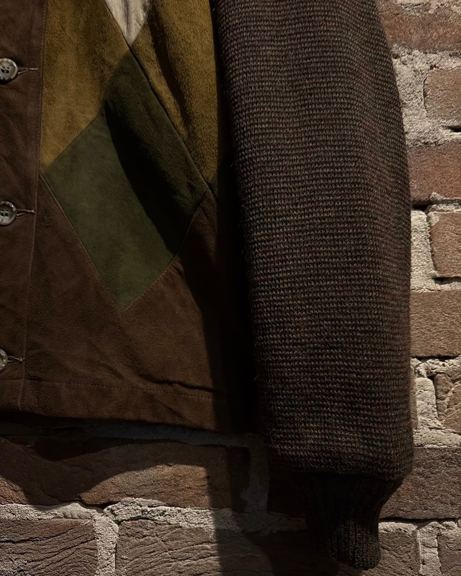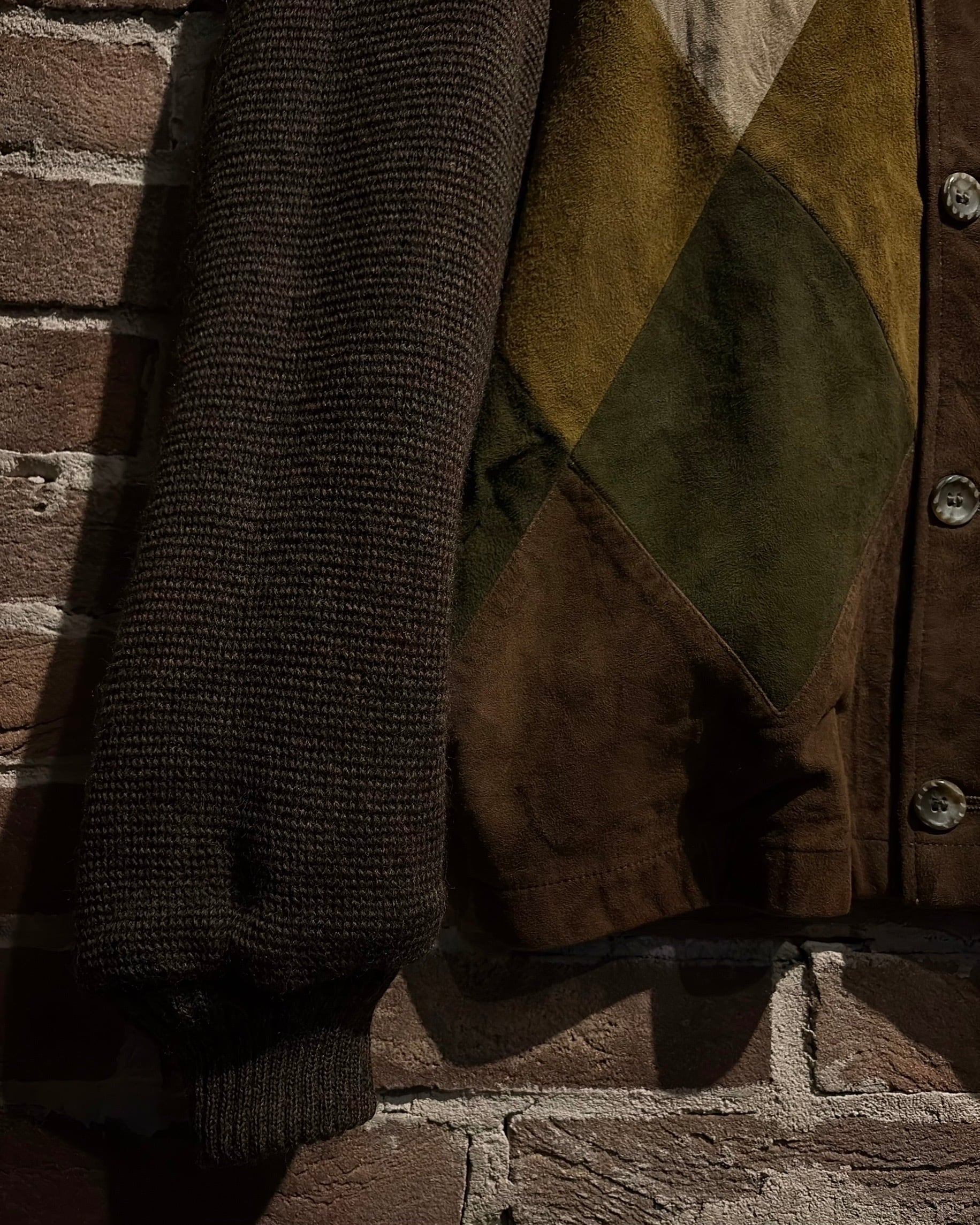 身頃にスエードレザーを切り替えた、異素材のコントラストが際立つ60’sヴィンテージのニットカーディガン。