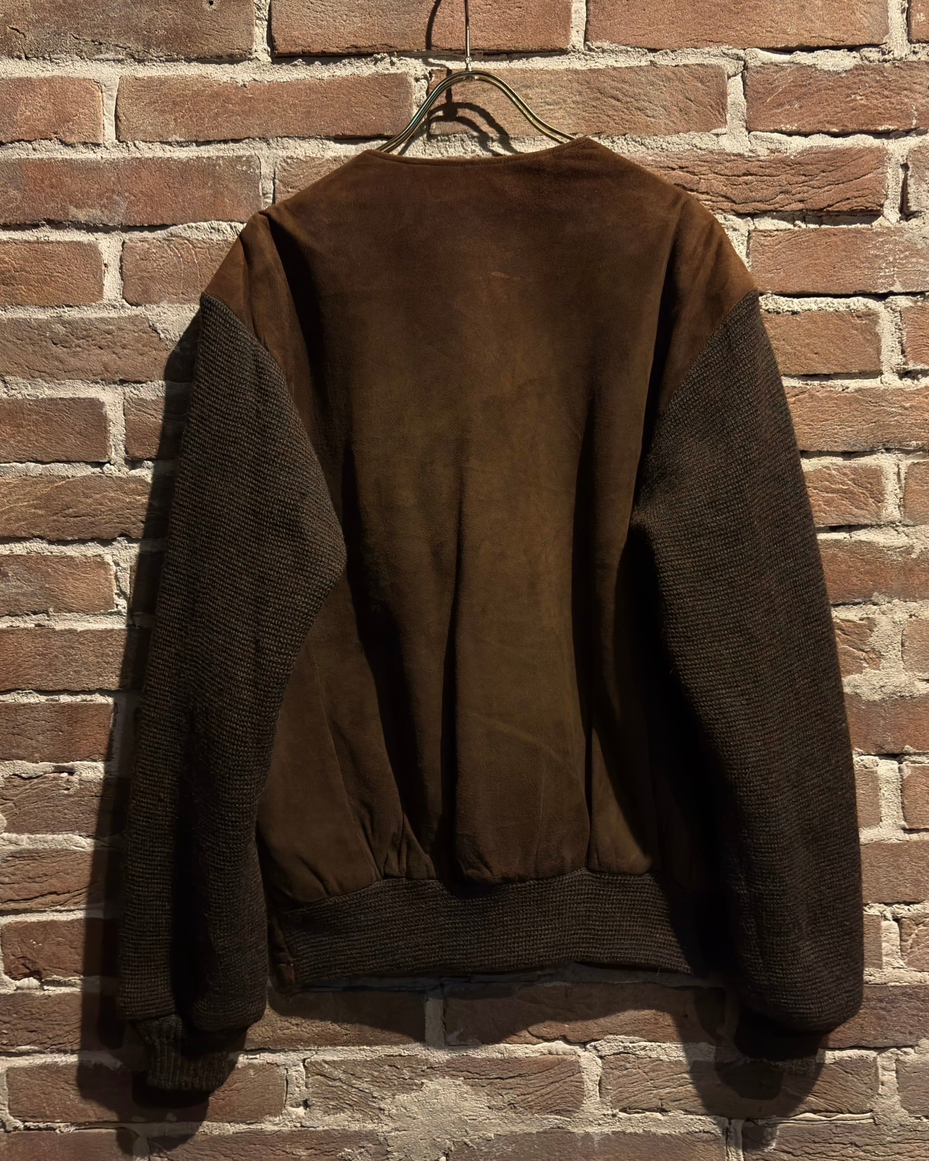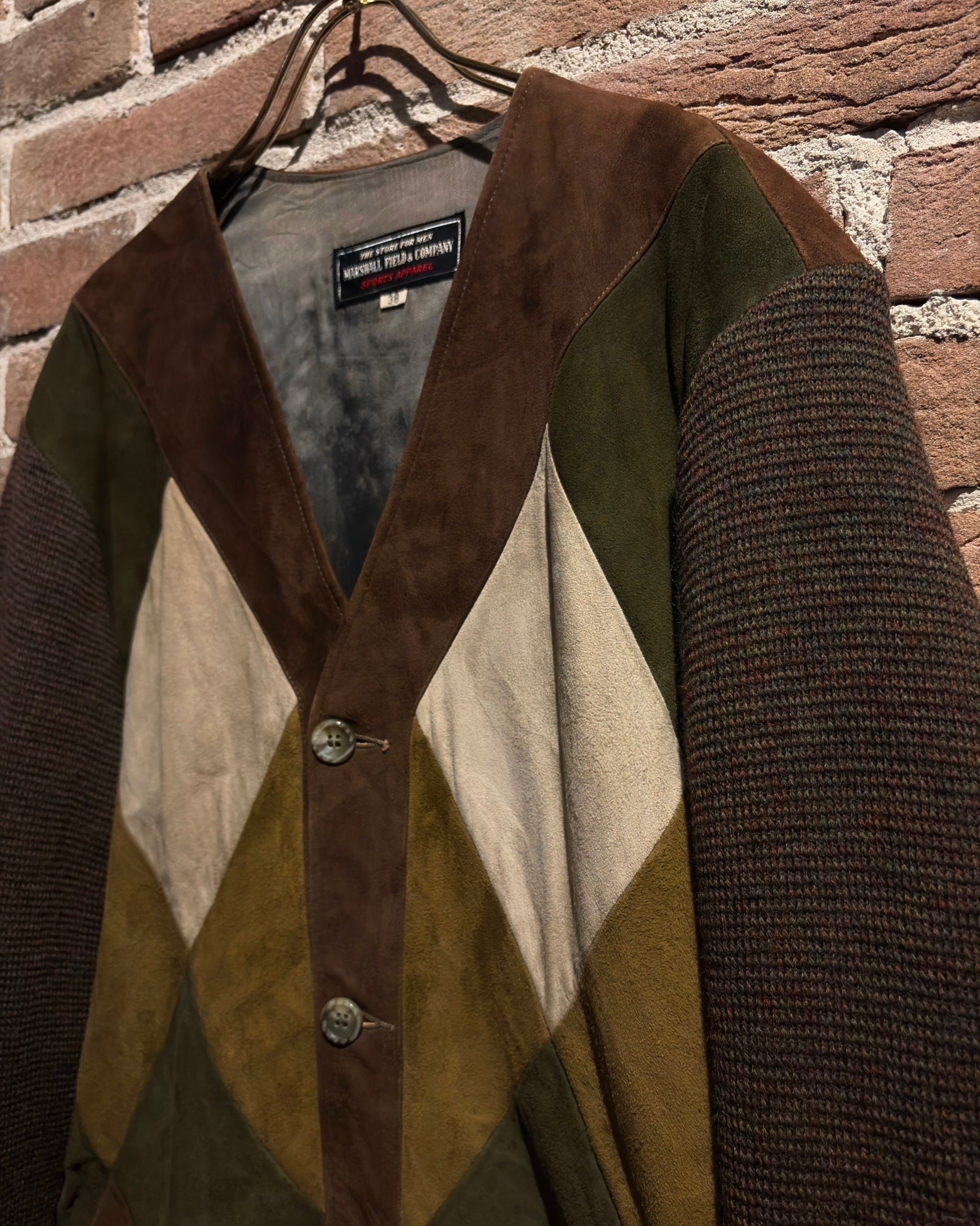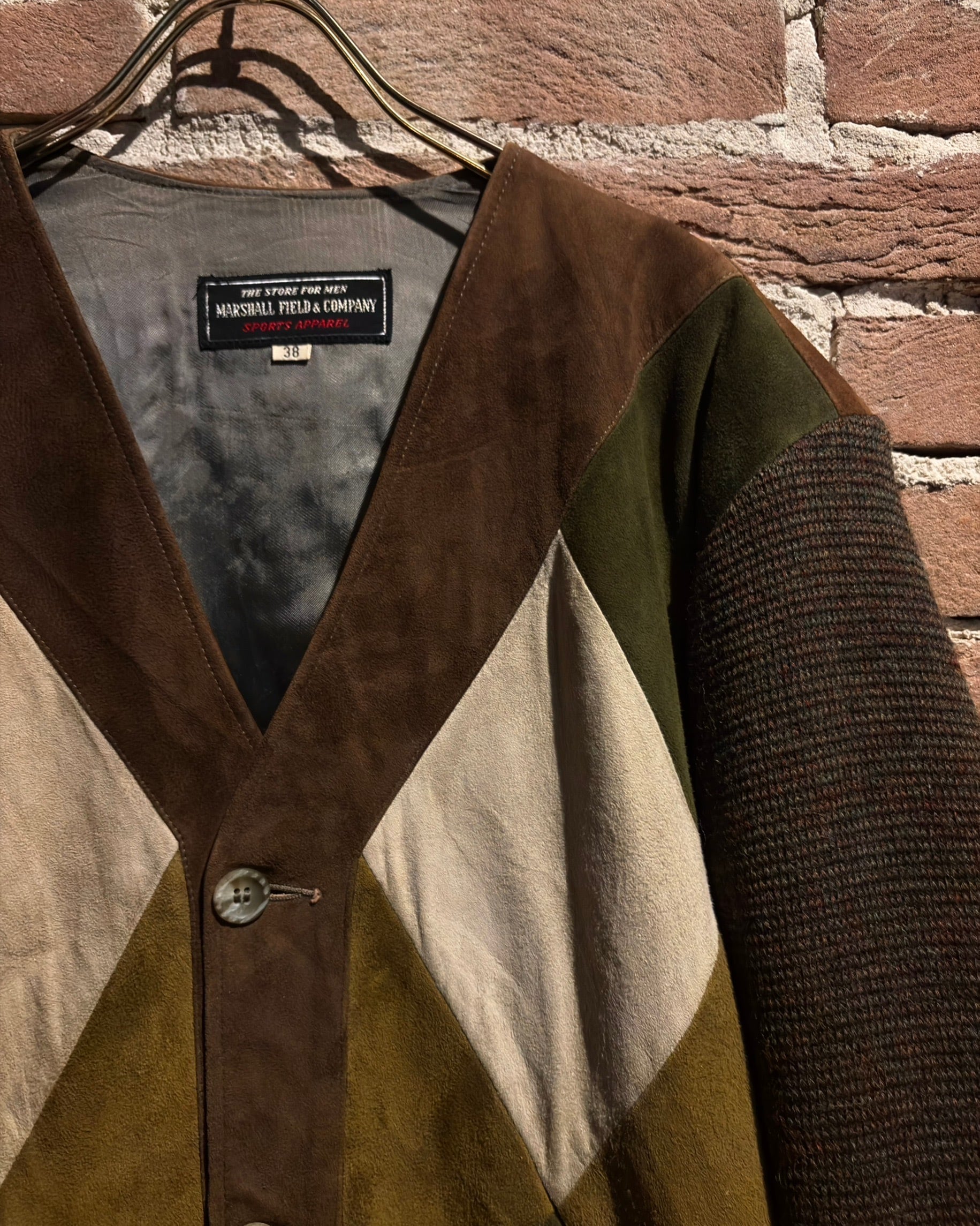 身頃にスエードレザーを切り替えた、異素材のコントラストが際立つ60’sヴィンテージのニットカーディガン。