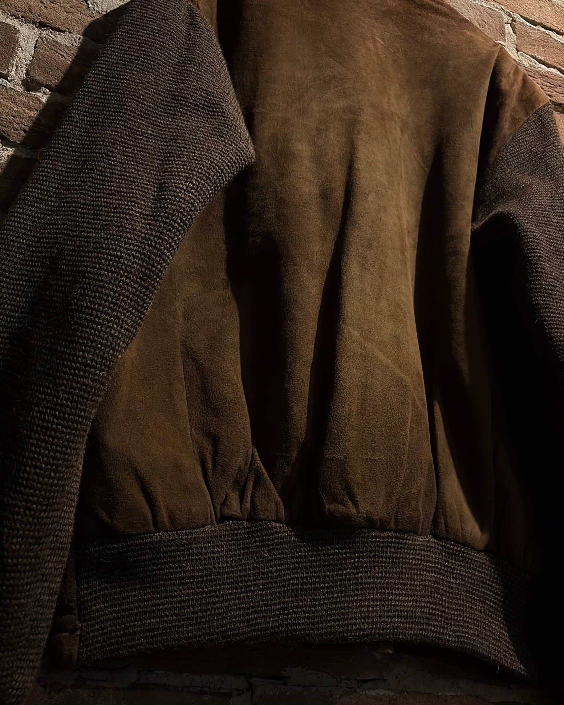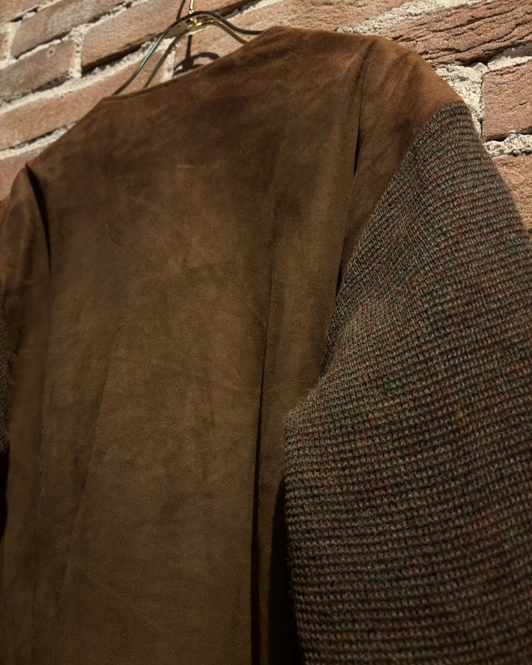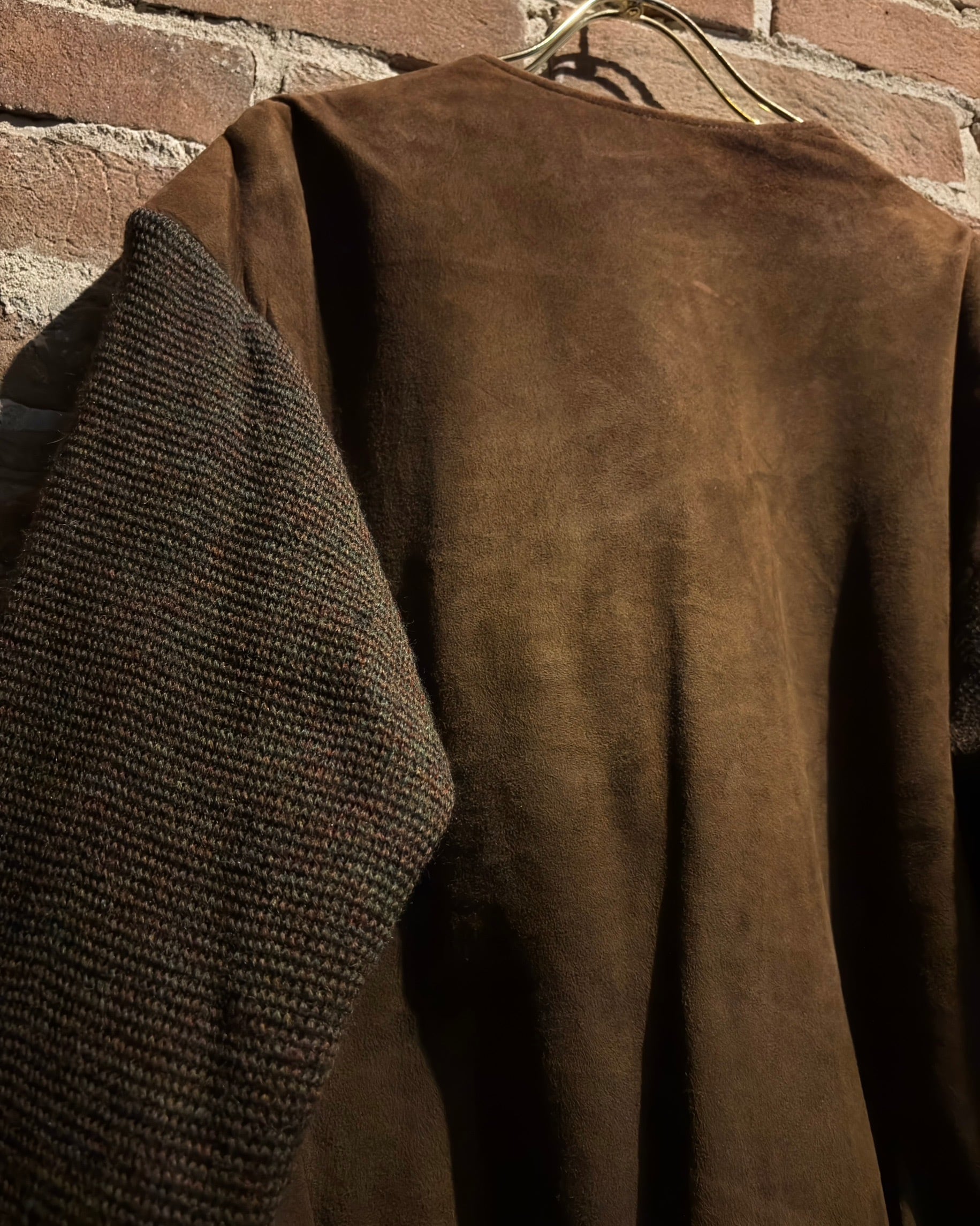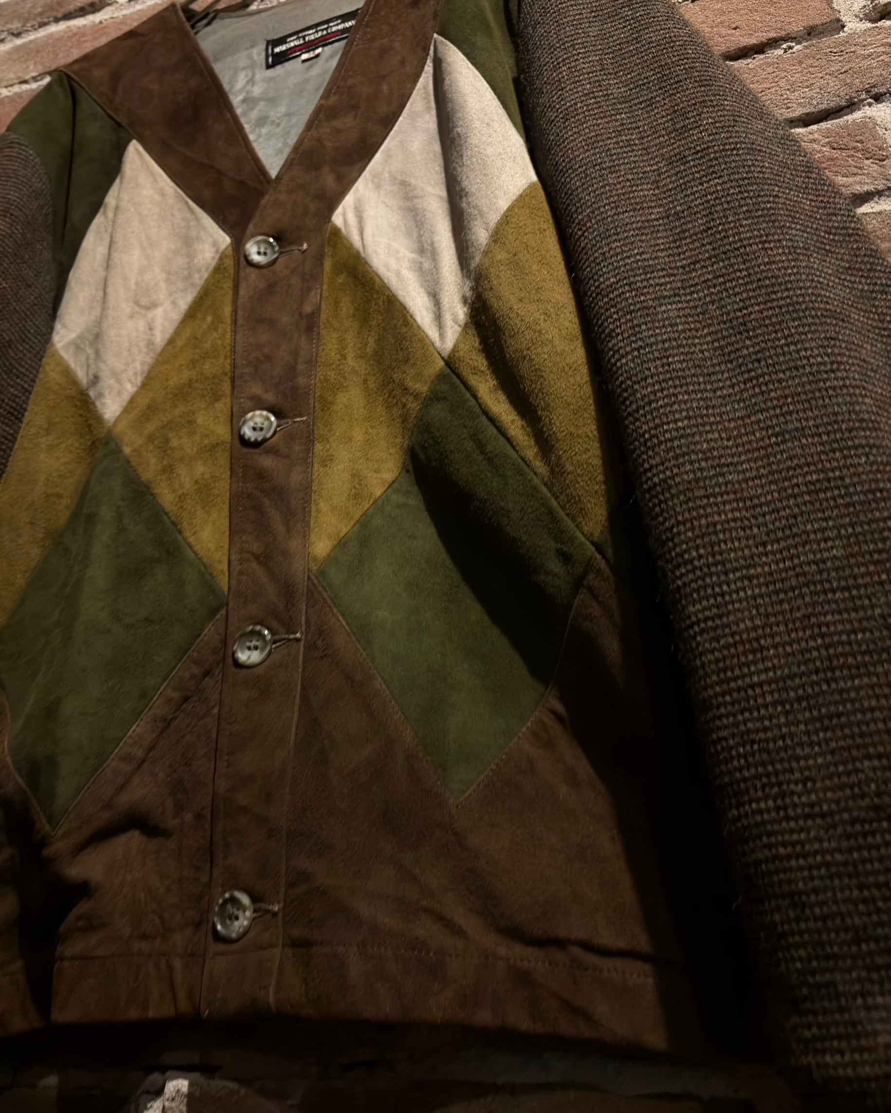 身頃にスエードレザーを切り替えた、異素材のコントラストが際立つ60’sヴィンテージのニットカーディガン。