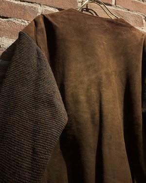 ニット×スエードの組み合わせにより、見た目以上に軽やかな着心地。滑らかな裏地付きでレイヤードもしやすく、今時期のインナーから春先のアウターまで幅広く活躍してくれるかと。