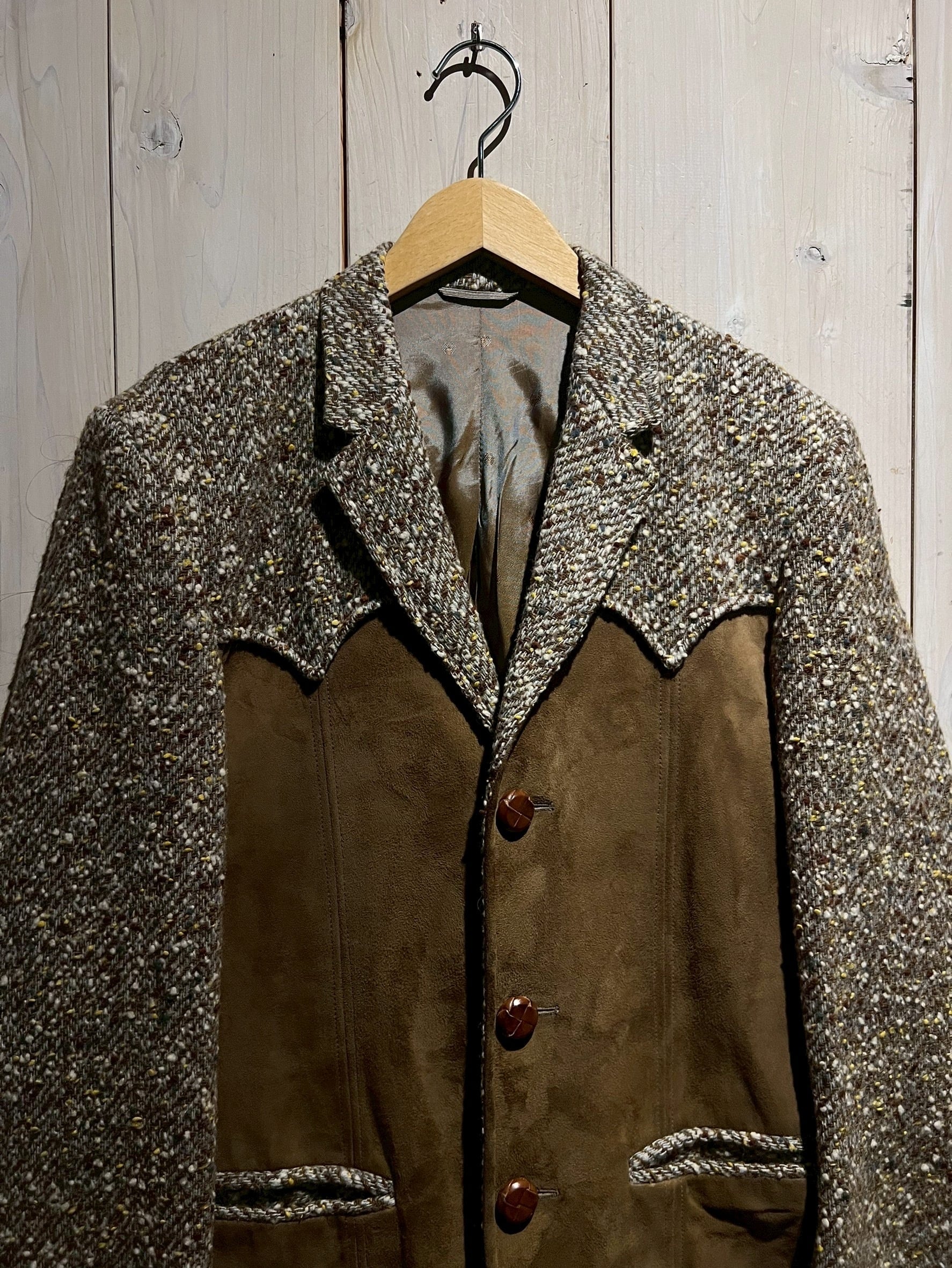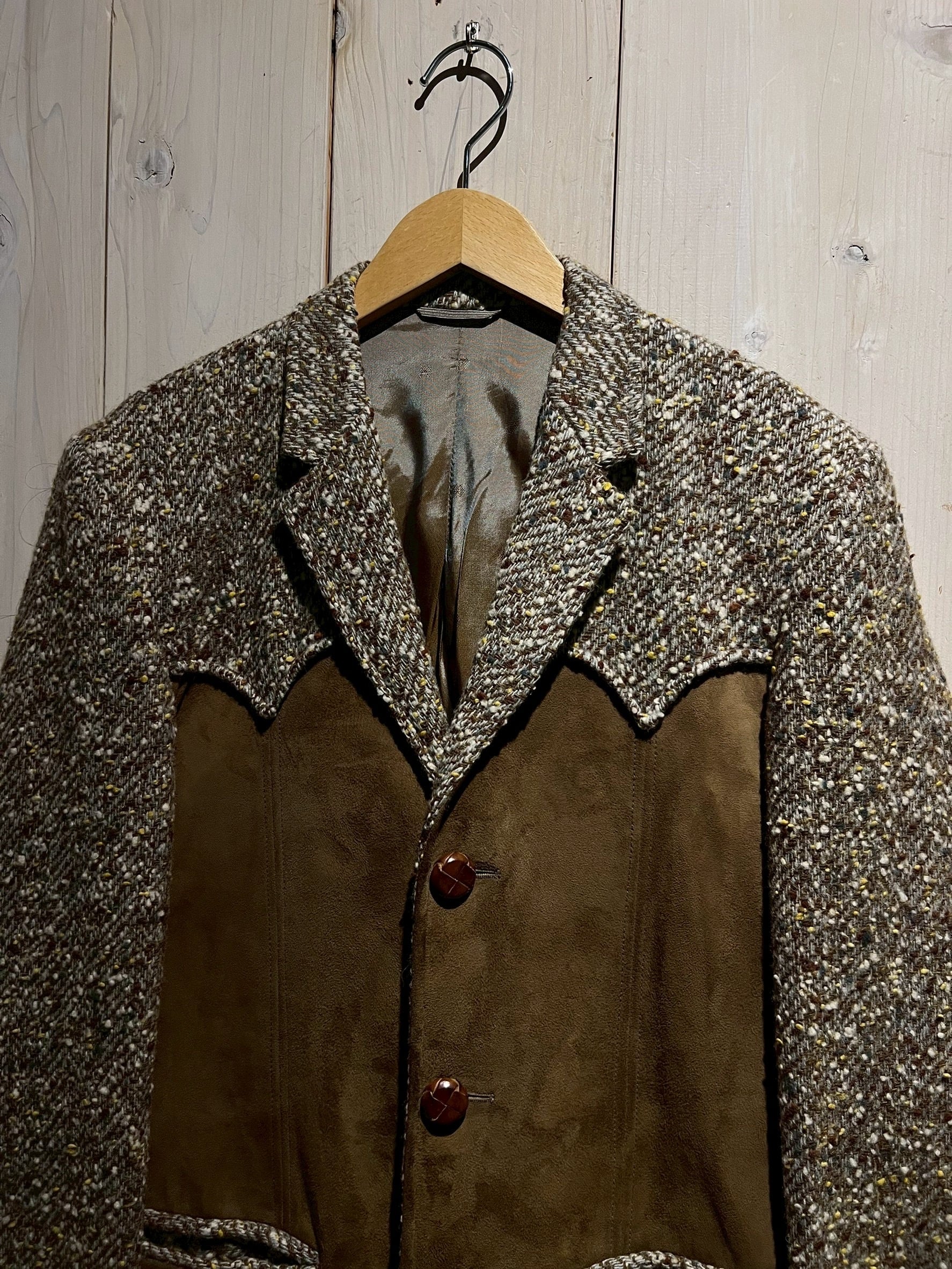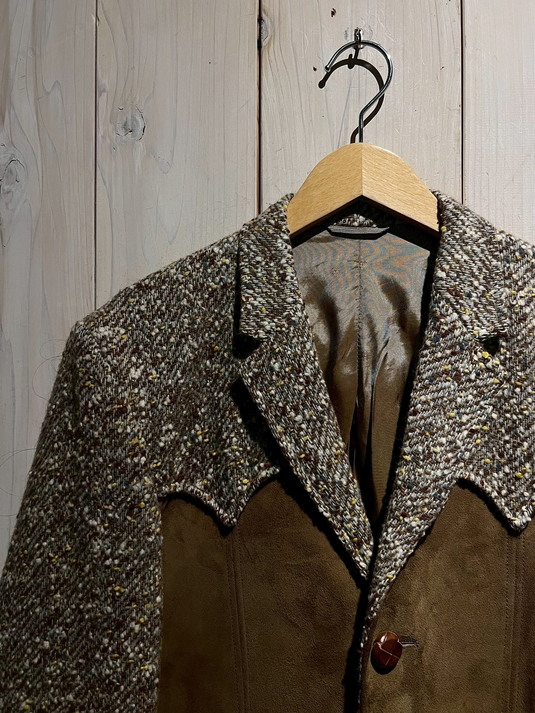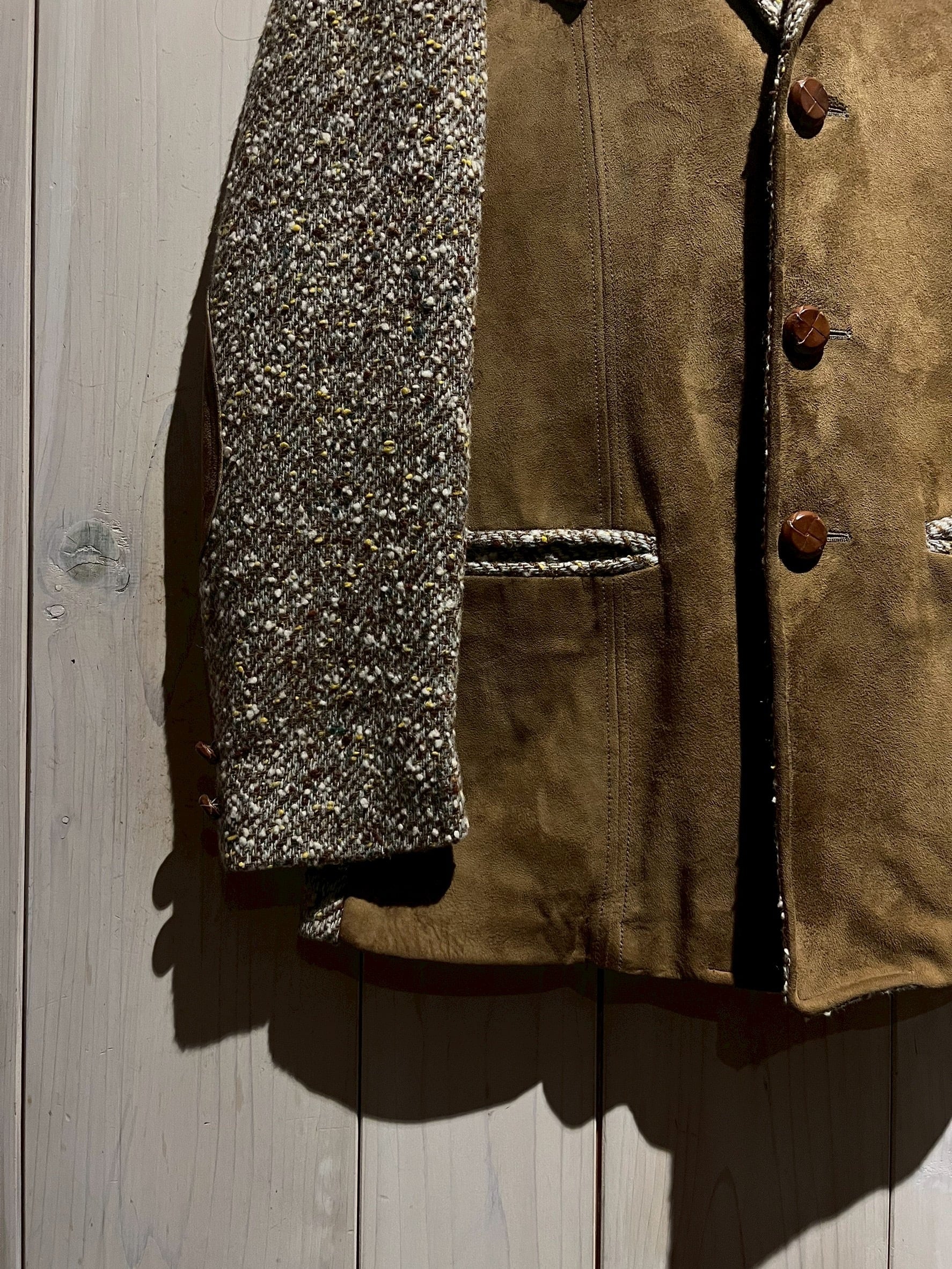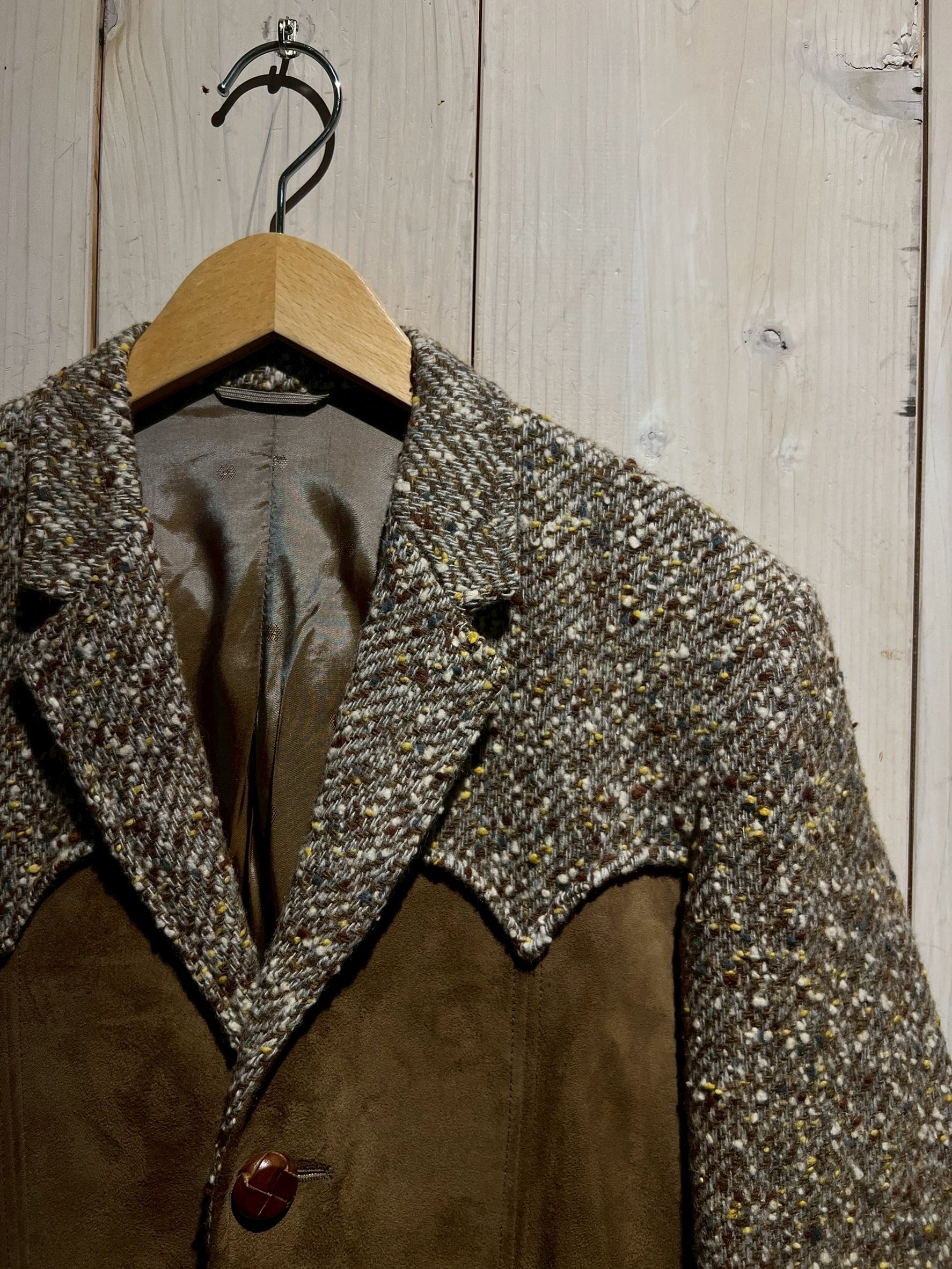 ネップツイード×スエードレザーという異素材使いが光る、60's〜70'sヴィンテージのテーラードジャケット。