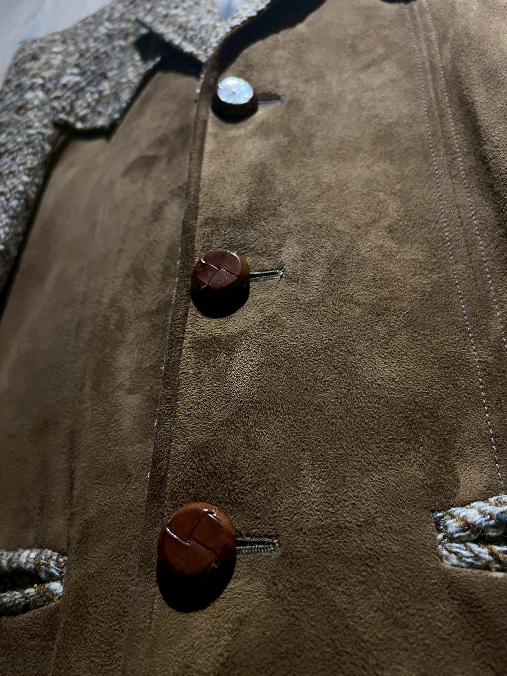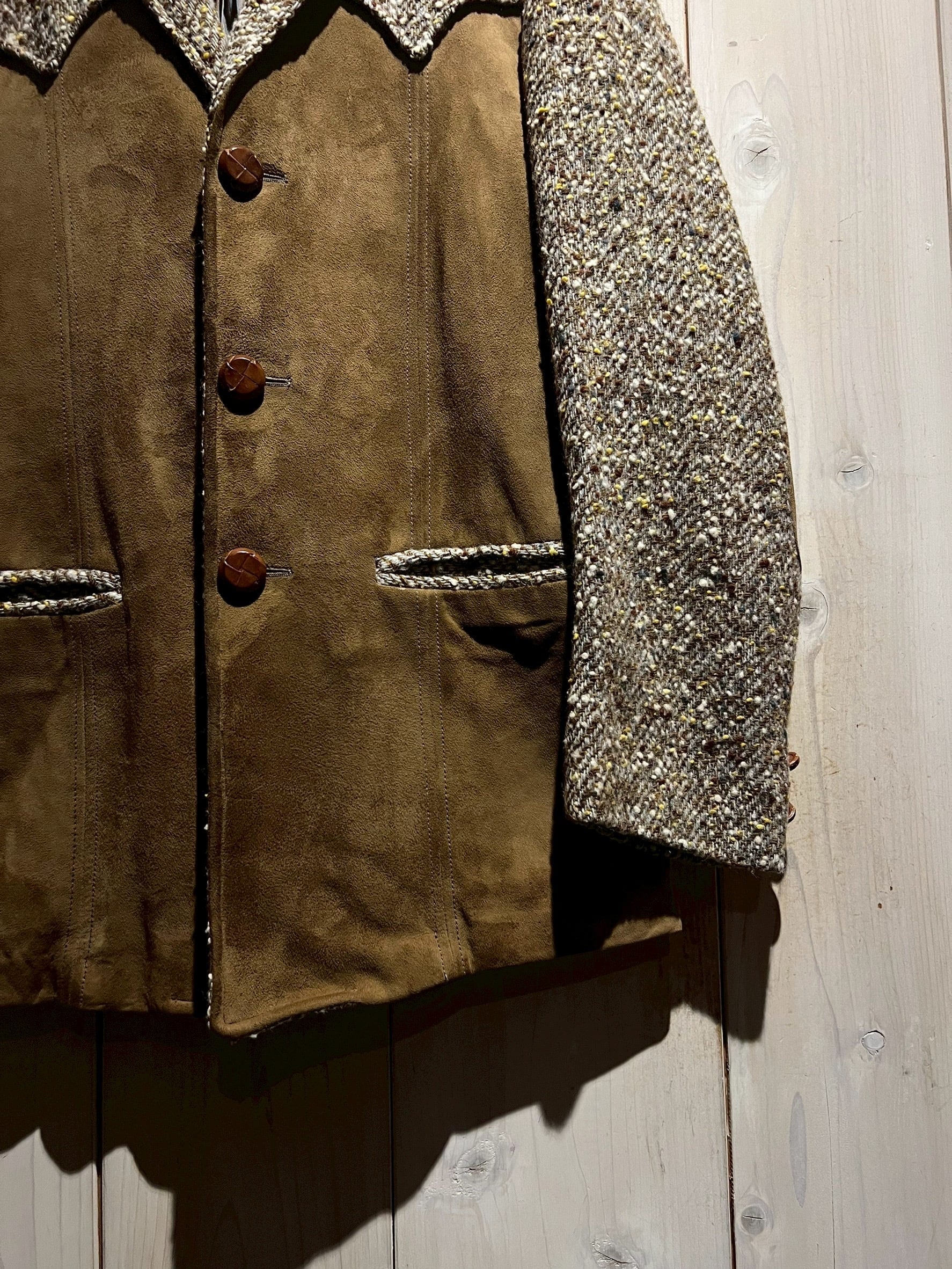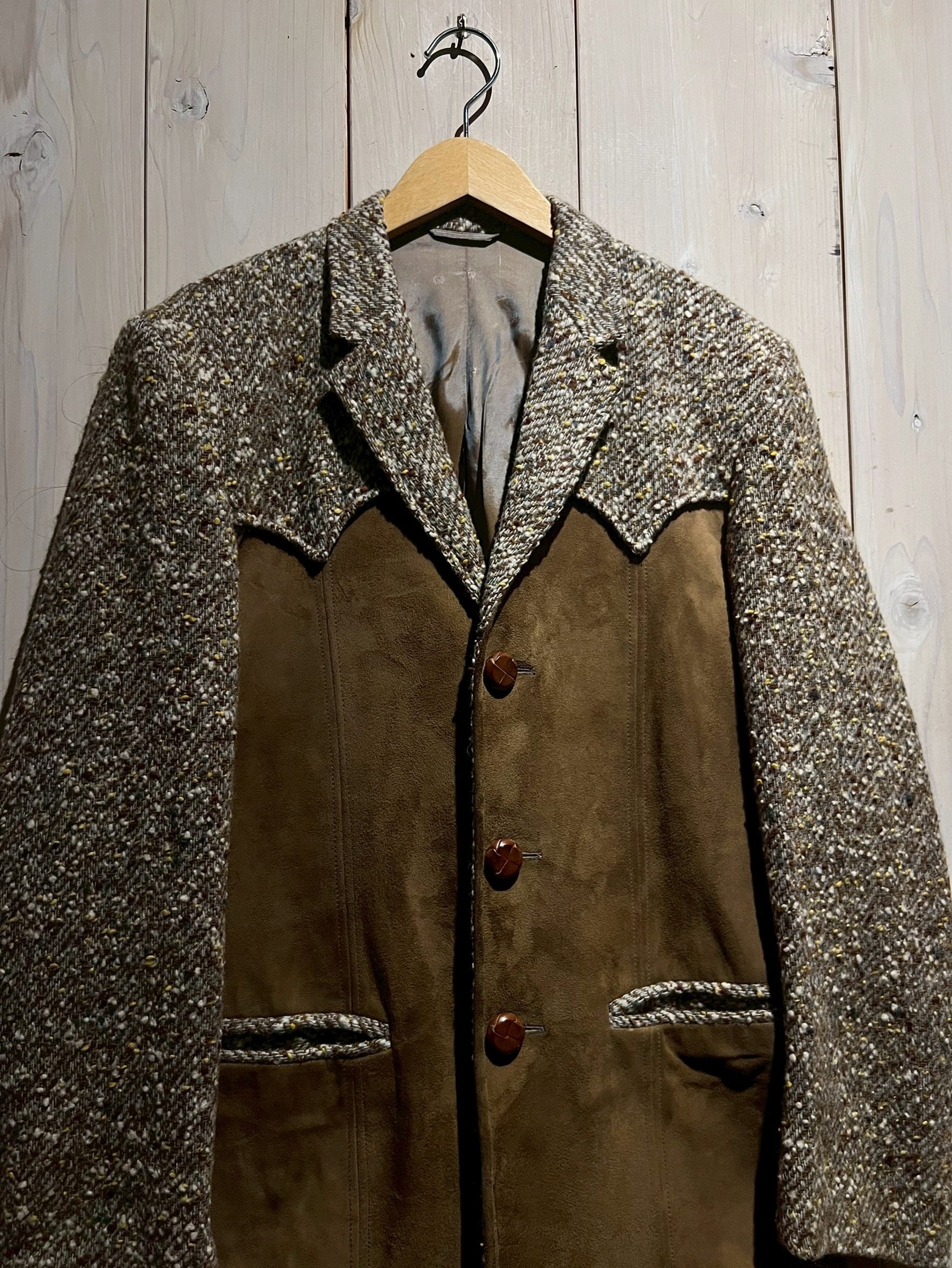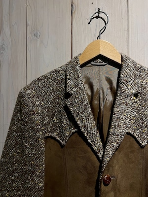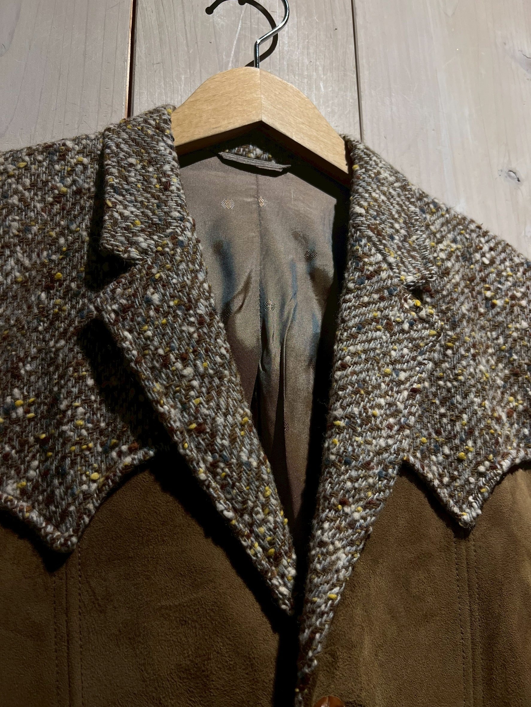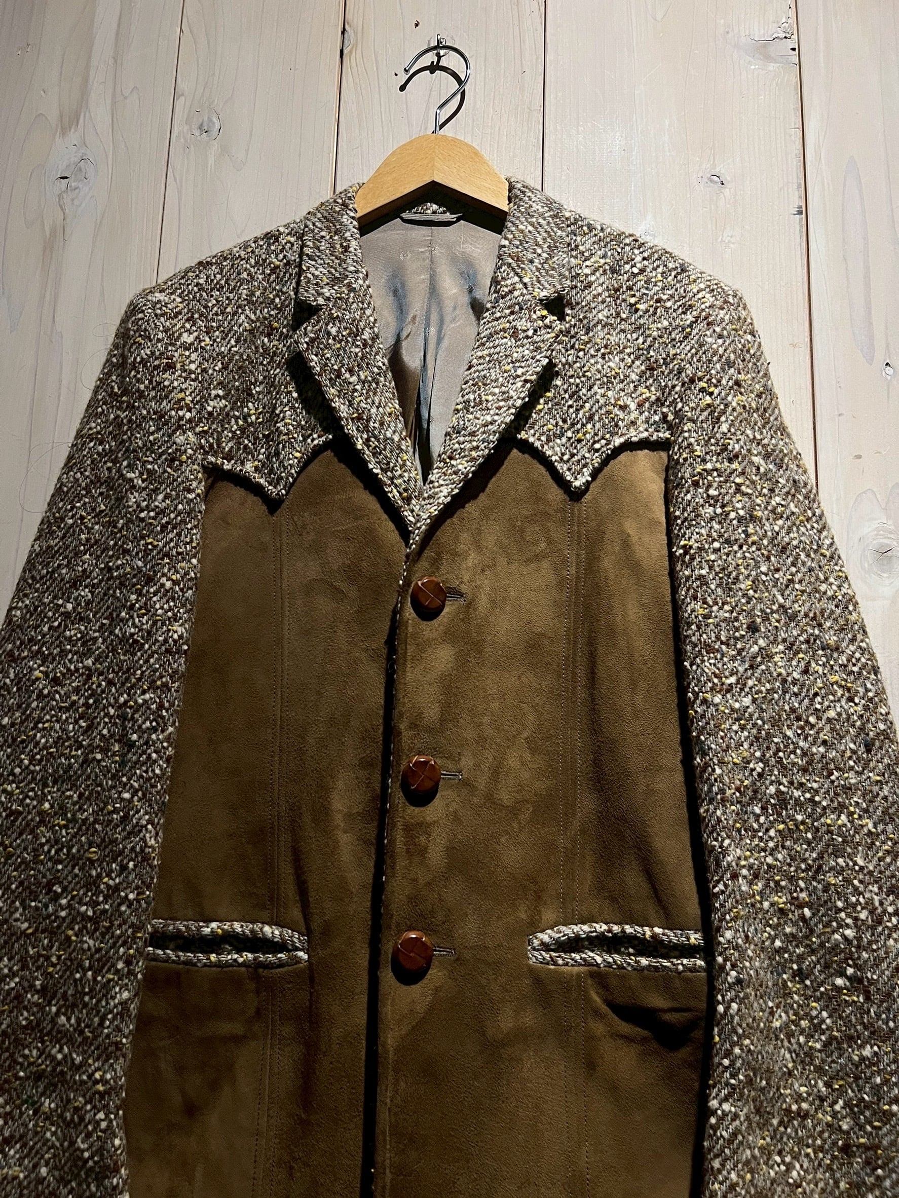 ネップツイード×スエードレザーという異素材使いが光る、60's〜70'sヴィンテージのテーラードジャケット。